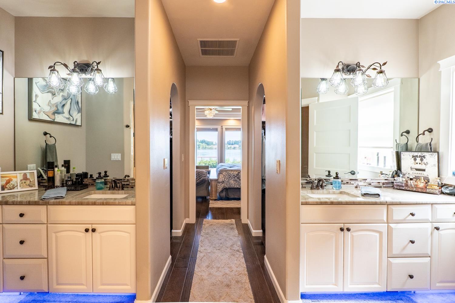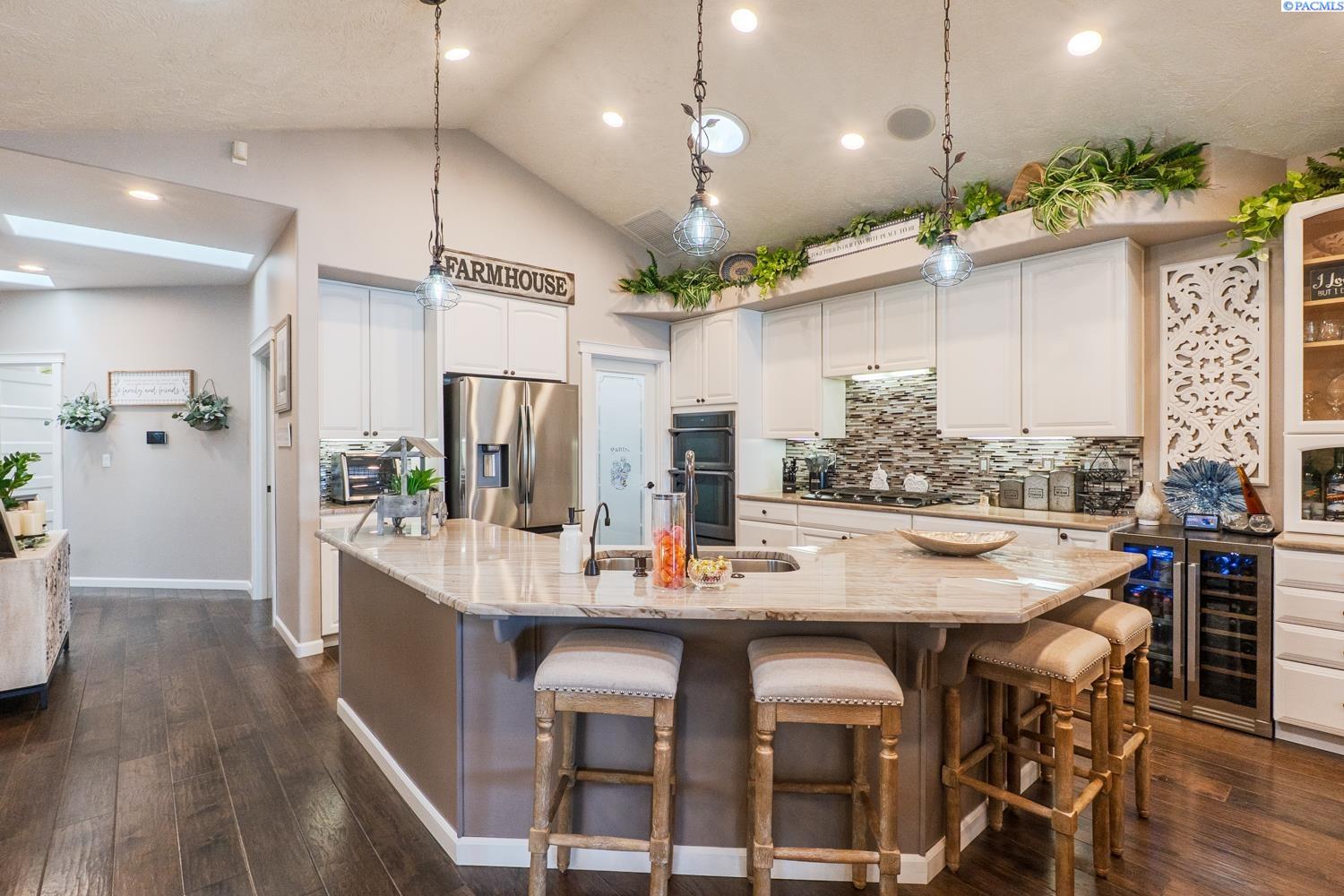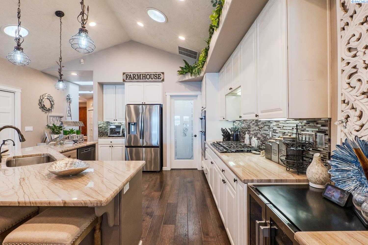 MLS# 284045 Experience sophisticated riverfront living in this stunning high-end condo within the coveted Marina Vista Estates at Columbia Point. Perfectly positioned along the Columbia River and bordering the Columbia Point Golf Course, this 3 BD 3 BA residence offers an extraordinary blend of elegance, comfort, and breathtaking views. Step into an open-concept great room where beautiful hardwood flooring flows throughout, and a wall of windows frames unobstructed views of the river. A cozy gas fireplace and remote-controlled Hunter Douglas blinds add both warmth and convenience to the living space. The gourmet kitchen is designed to impress with granite countertops, a stylish tiled backsplash, large island, and a spacious walk-in pantryâideal for entertaining or everyday luxury. The expansive primary suite is a private retreat featuring patio door access, dual walk-in closets, dual vanities, a jetted soaking tub, and a separate walk-in shower. Enjoy outdoor living year-round on the back patio, thoughtfully outfitted with a Bromec 1600W infrared heater, natural gas hookup, gas fire table with under-mounted LED lighting, and Bluetooth-enabled weatherproof speakersâoffering an unbeatable vantage point for river views and evening ambiance. A finished, attached two-car garage delivers showroom quality with colored lacquer epoxy flooring and custom hexagon lightingâan ideal space for car enthusiasts or additional storage. Located just steps from the Richland riverwalk and all the lifestyle offerings of Columbia Point, this is luxury riverfront living at its finest.