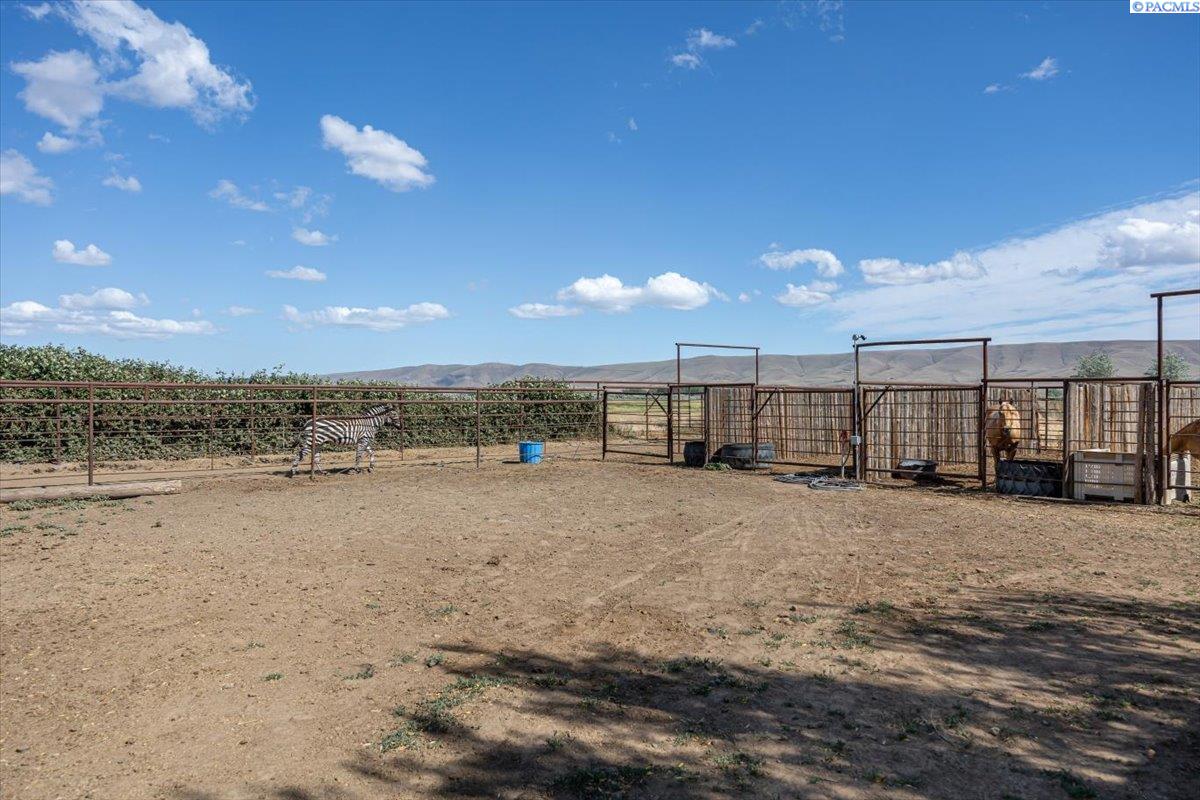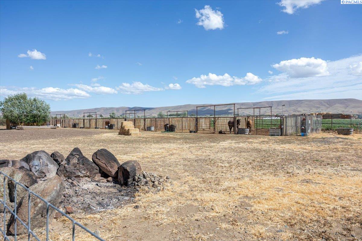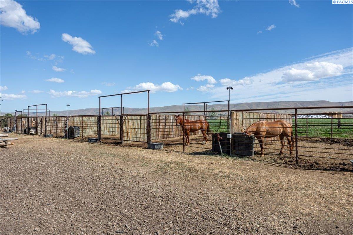 MLS# 284618 Enjoy this quiet and pristine setting with a vast and expansive view of the Horse Heaven Hills ridgeline nestled on just shy of 7 acres. The home sits back off the road ensuring a peaceful and quiet lifestyle for you and your loved ones. This stunning executive 5 bedroom, 3 bath, 2 story home is surrounded by lush green grass and well-appointed mature landscaping and encompasses a spacious kitchen, home office, media room/bonus room, large mudroom, & laundry chute⦠this home has it all.  Designed for comfort and efficiency, the master suite is on the main floor with a large walk-in closet, jetted tub, and dual-head spacious shower for two. The remaining 4 bedrooms await upstairs (no bedroom walls touch allowing for maximum noise protection & privacy). This home exudes the comfort you should demand from a country style retreat, enjoy the movie theater in your upstairs getaway with surround sound and a large screen to display your favorite adventure movie.  No detail has been missed here, find 9-foot ceilings throughout the home, an oversize garage, video surveillance, wired alarm system & donât forget the 3 separate zoning temperature-controlled HVAC system assures optimal comfort in different areas of the home. Outside you will find abundant room for whatever your hobby desires may be in the expansive 48 x 36 fully insulated & heated shop. Your horses will enjoy roaming the pasture and feel right at home with the 11 sturdy livestock pens equipped with power, water, and light to each one.