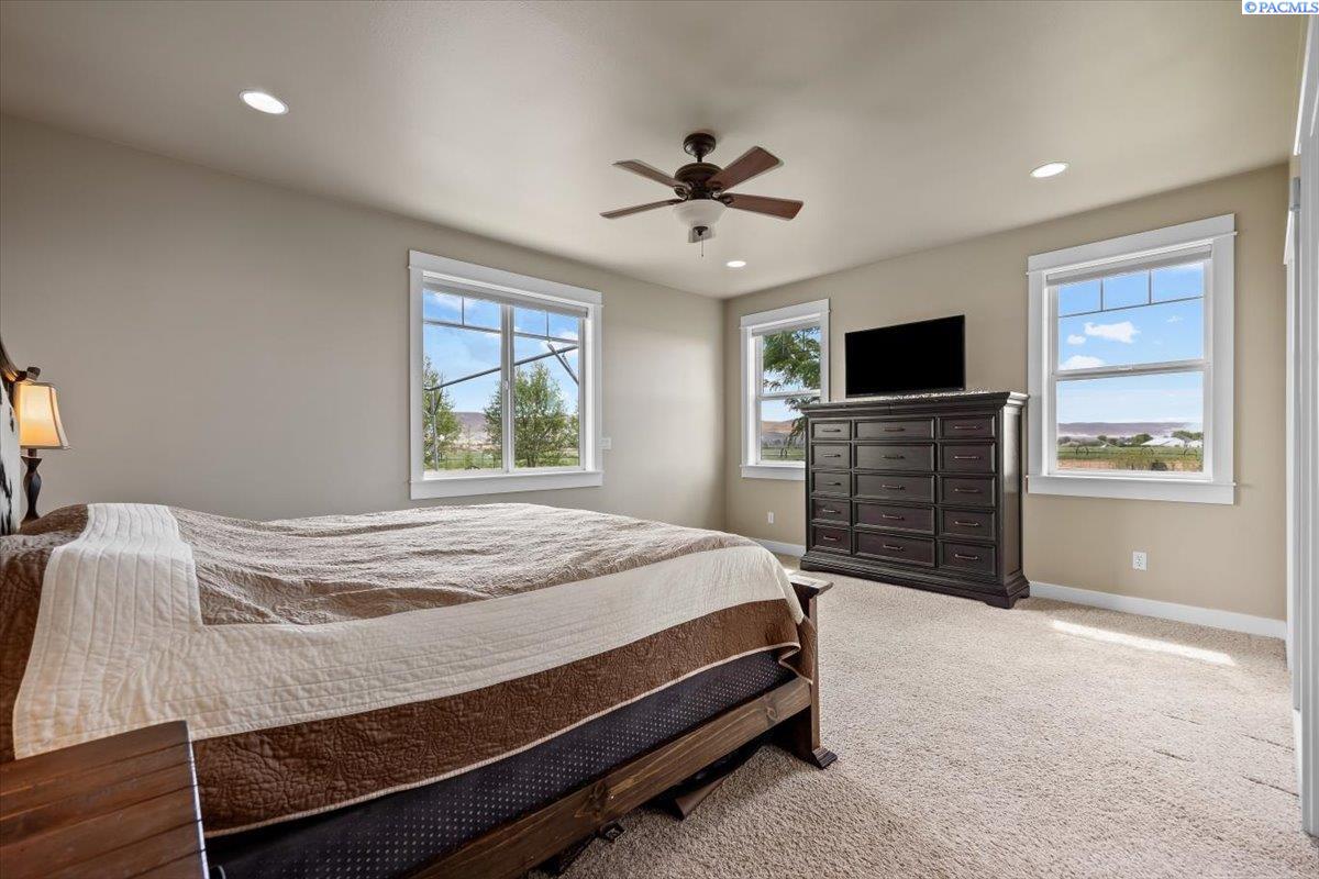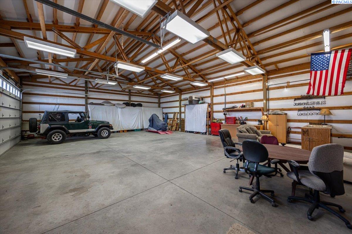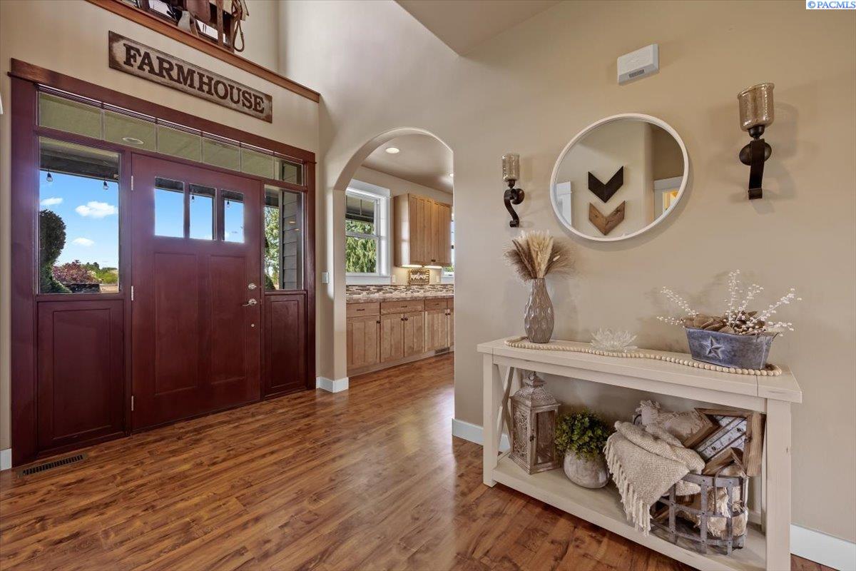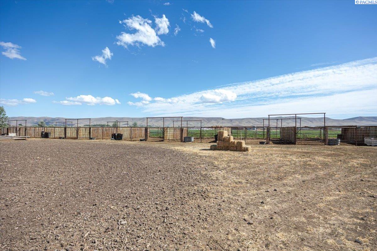 MLS# 284618 Enjoy this quiet and pristine setting with a vast and expansive view of the Horse Heaven Hills ridgeline nestled on just shy of 7 acres. The home sits back off the road ensuring a peaceful and quiet lifestyle for you and your loved ones. This stunning executive 5 bedroom, 3 bath, 2 story home is surrounded by lush green grass and well-appointed mature landscaping and encompasses a spacious kitchen, home office, media room/bonus room, large mudroom, & laundry chute⦠this home has it all.  Designed for comfort and efficiency, the master suite is on the main floor with a large walk-in closet, jetted tub, and dual-head spacious shower for two. The remaining 4 bedrooms await upstairs (no bedroom walls touch allowing for maximum noise protection & privacy). This home exudes the comfort you should demand from a country style retreat, enjoy the movie theater in your upstairs getaway with surround sound and a large screen to display your favorite adventure movie.  No detail has been missed here, find 9-foot ceilings throughout the home, an oversize garage, video surveillance, wired alarm system & donât forget the 3 separate zoning temperature-controlled HVAC system assures optimal comfort in different areas of the home. Outside you will find abundant room for whatever your hobby desires may be in the expansive 48 x 36 fully insulated & heated shop. Your horses will enjoy roaming the pasture and feel right at home with the 11 sturdy livestock pens equipped with power, water, and light to each one.