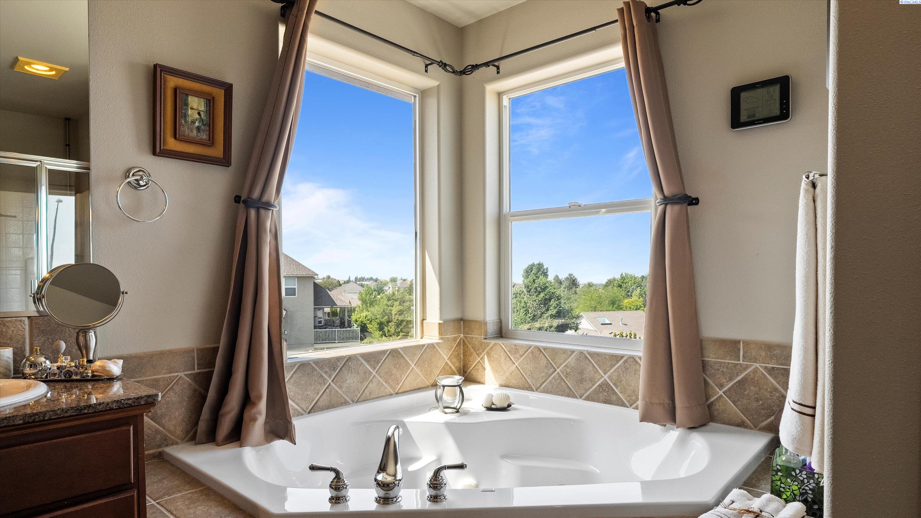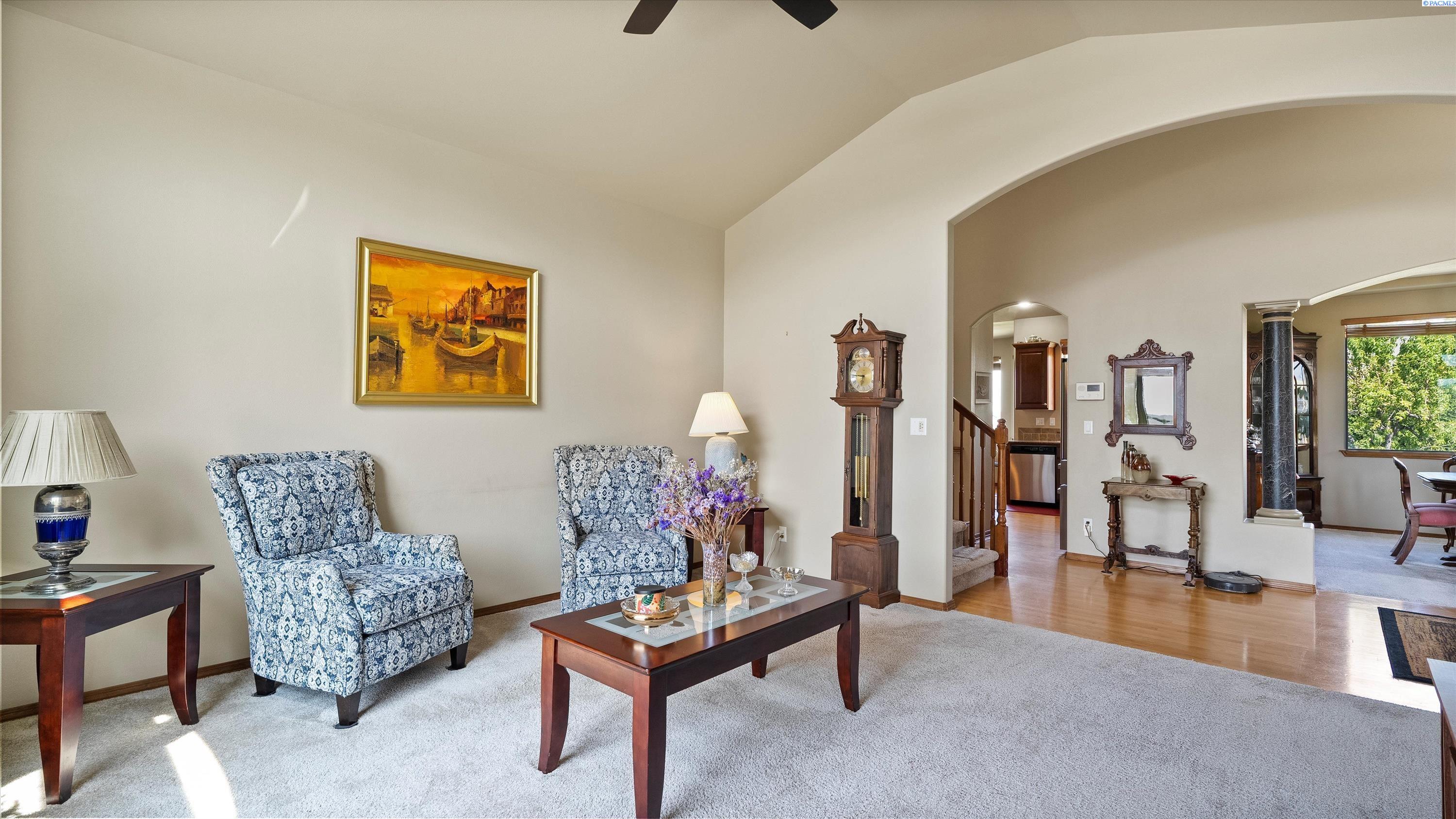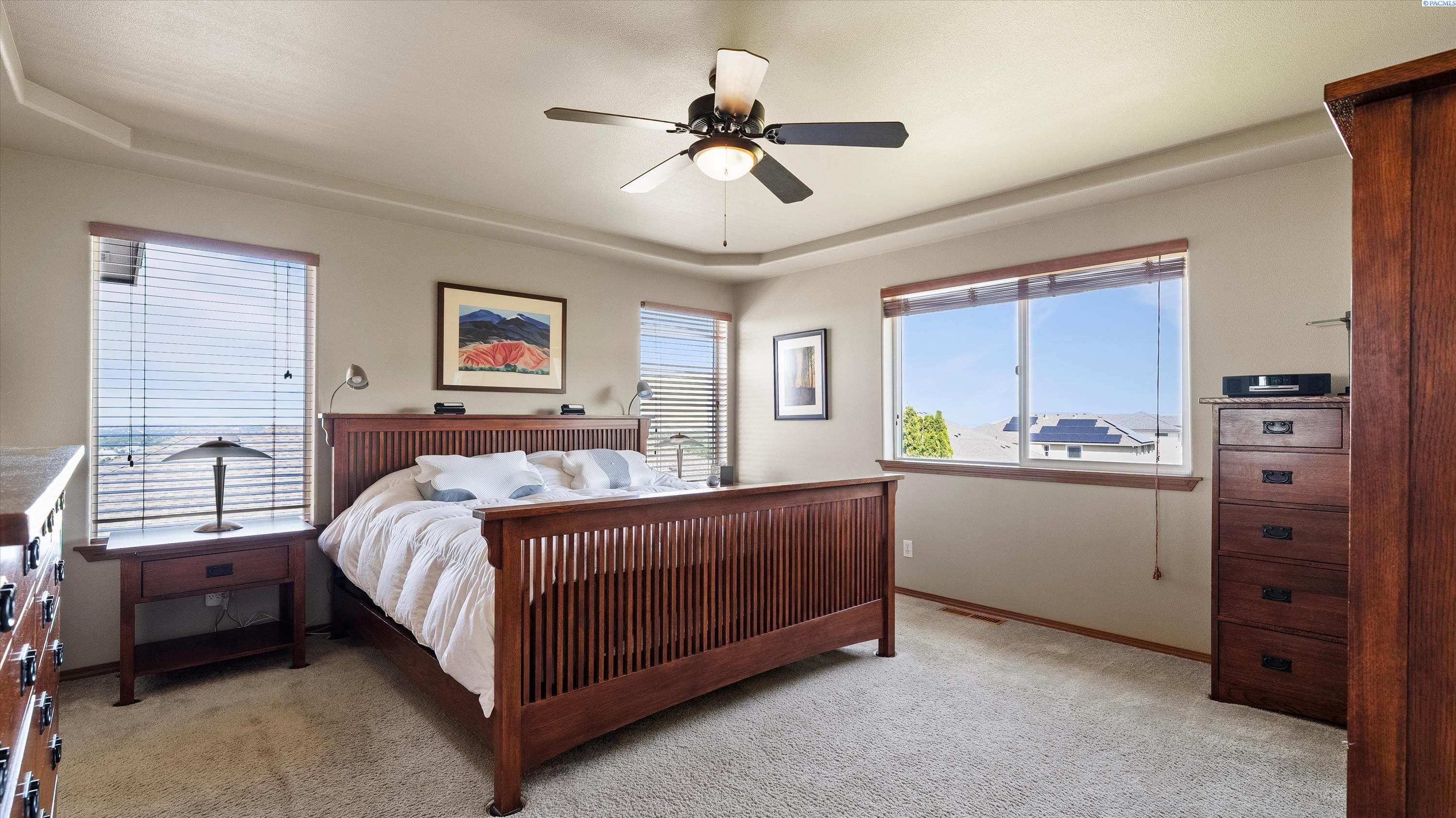 MLS #285138. Experience elevated living in this stunning 4-bedroom, 3-bath tri-level home nestled in the highly sought-after Heights of Canyon Lakes community. Boasting 2,565 square feet of beautifully designed space, this residence is filled with natural light and showcases breathtaking territorial viewsâincluding iconic sights of the Cable Bridge and Blue Bridge. Step inside to find generously sized bedrooms, a bright and inviting layout, and thoughtful design throughout. The spacious living areas flow seamlessly, perfect for both relaxing and entertaining. Enjoy the outdoors from the expansive patio, ideal for gatherings or peaceful evenings taking in the view. The home features a well-manicured yard and a finished 3-car garage, offering both curb appeal and functionality. With its prime location, panoramic vistas, and inviting layout, this is a rare opportunity to own a true gem in one of the Tri-Citiesâ most desirable neighborhoods. If you enjoy golfing, you will really love this location as it sits above the amazing Tri-Cities golf course of Canyon Lakes. This home is close enough to simply drive your golf cart to the course. Donât wait, schedule your private viewing with your favorite realtor. Recent Updates: New HVAC installed in 2020, with new exterior paint in 2020 and three new Renewal By Andersen windows installed in 2024 (a few front windows and a kitchen window).
