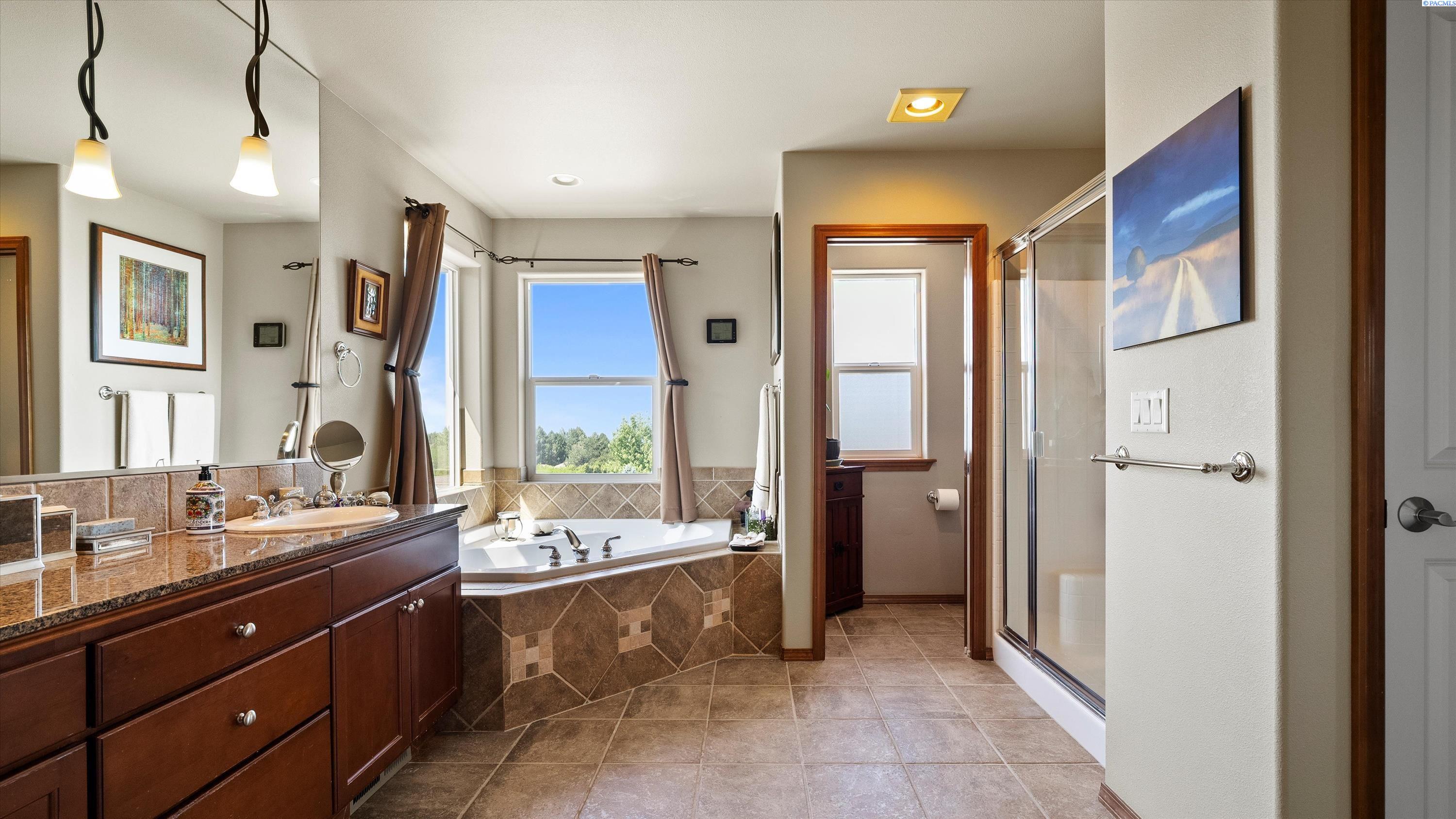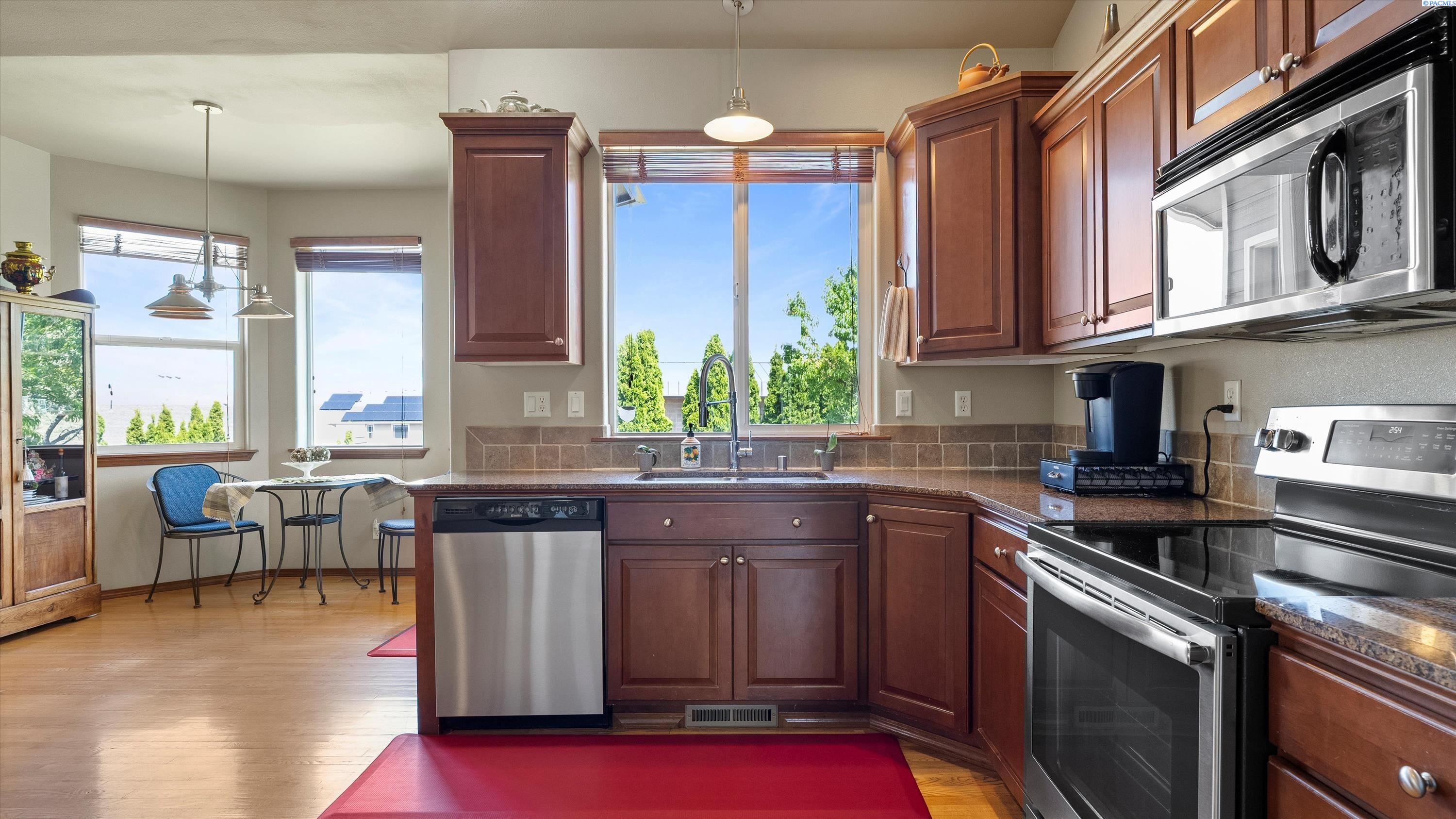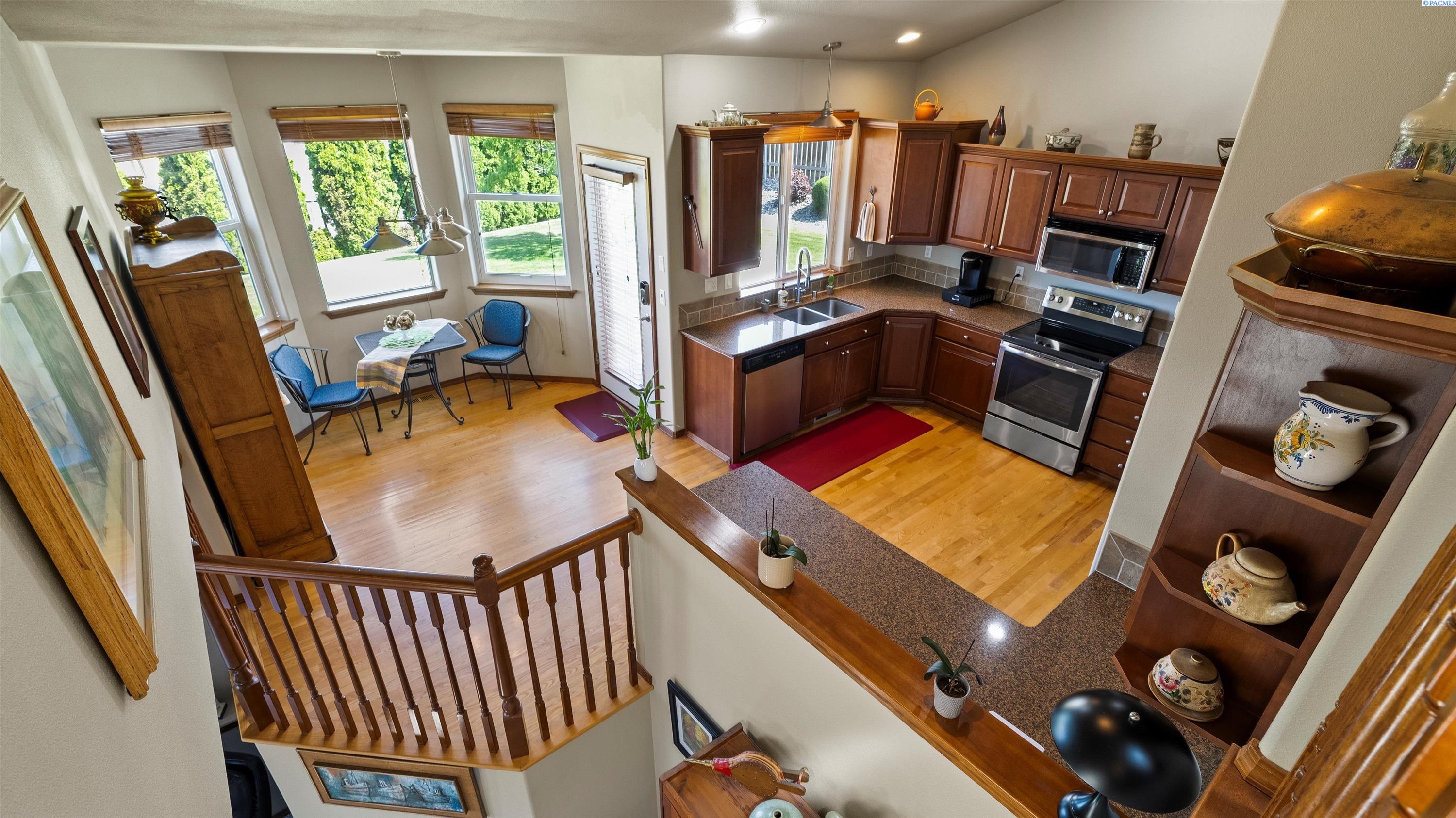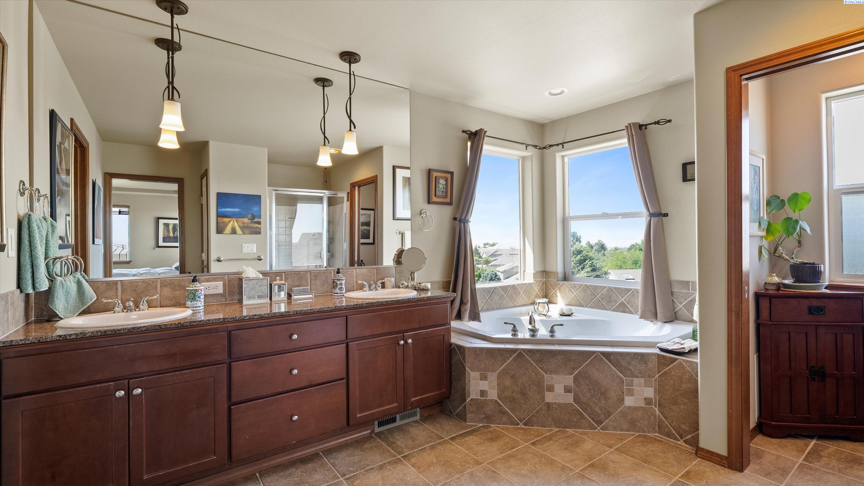 MLS #285138. Experience elevated living in this stunning 4-bedroom, 3-bath tri-level home nestled in the highly sought-after Heights of Canyon Lakes community. Boasting 2,565 square feet of beautifully designed space, this residence is filled with natural light and showcases breathtaking territorial viewsâincluding iconic sights of the Cable Bridge and Blue Bridge. Step inside to find generously sized bedrooms, a bright and inviting layout, and thoughtful design throughout. The spacious living areas flow seamlessly, perfect for both relaxing and entertaining. Enjoy the outdoors from the expansive patio, ideal for gatherings or peaceful evenings taking in the view. The home features a well-manicured yard and a finished 3-car garage, offering both curb appeal and functionality. With its prime location, panoramic vistas, and inviting layout, this is a rare opportunity to own a true gem in one of the Tri-Citiesâ most desirable neighborhoods. If you enjoy golfing, you will really love this location as it sits above the amazing Tri-Cities golf course of Canyon Lakes. This home is close enough to simply drive your golf cart to the course. Donât wait, schedule your private viewing with your favorite realtor. Recent Updates: New HVAC installed in 2020, with new exterior paint in 2020 and three new Renewal By Andersen windows installed in 2024 (a few front windows and a kitchen window).