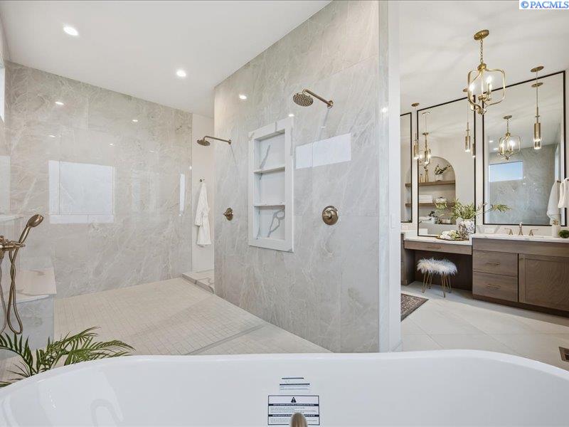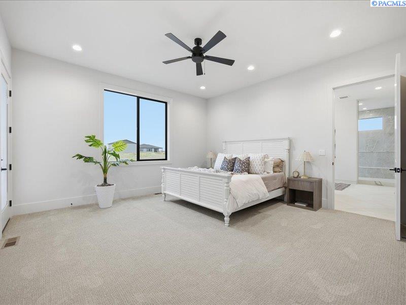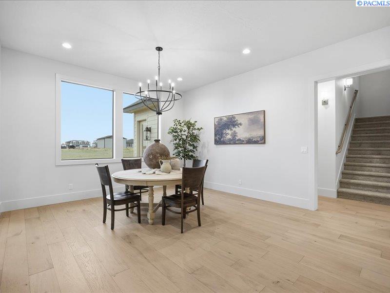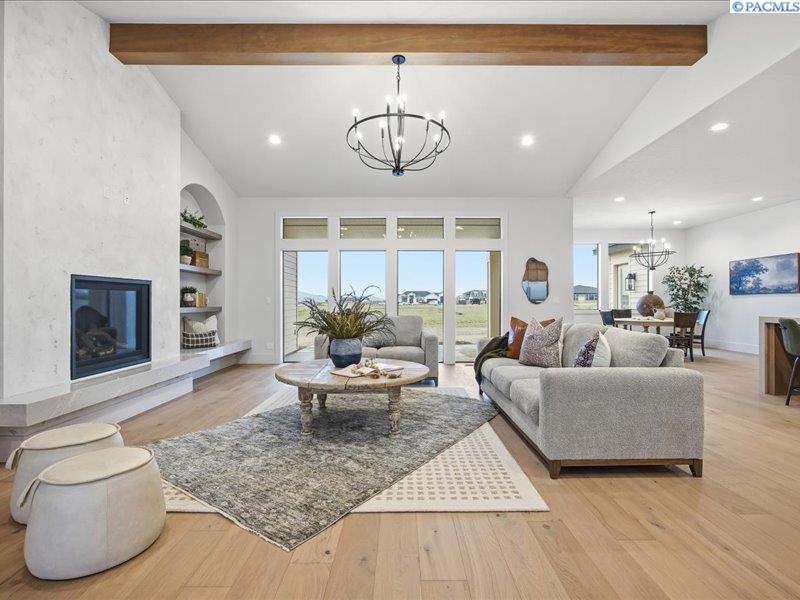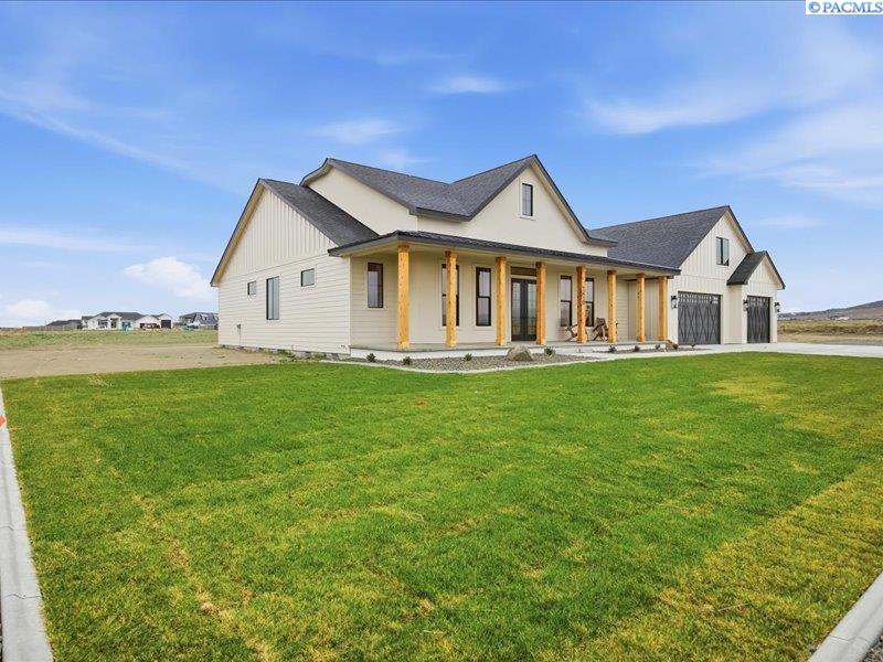 MLS# 286089 Now complete and move in ready! Welcome to Harvest Ridge, where timeless design meets wide open space on a full acre in one of the Tri Citiesâ most peaceful acreage communities. This stunning new Brett Lott home offers over 4,000 sq ft of beautifully designed, light filled living with 5 bedrooms and 4 baths. A flexible floor plan includes a separate office and a bonus room with its own mini split that easily functions as a fifth bedroom, ideal for guests, a playroom, or a home gym. Entertain with ease in the gourmet kitchen featuring a 36 inch Bosch gas range, built in fridge and freezer, and generous prep space, all overlooking spacious living areas accentuated by vaulted ceilings, black framed floor to ceiling windows, rich engineered hardwoods, and custom archways. The luxurious primary suite showcases stained ceiling beams, a spa inspired bath with freestanding tub, and a walk through shower. A 4 car garage provides ample room for vehicles and toys, while included landscaping enhances curb appeal. Preferred lender Eric Melling is offering incentives of up to 1 percent toward a rate buy up or closing costs are available. Donât miss your chance to own this exceptional luxury acreage home!