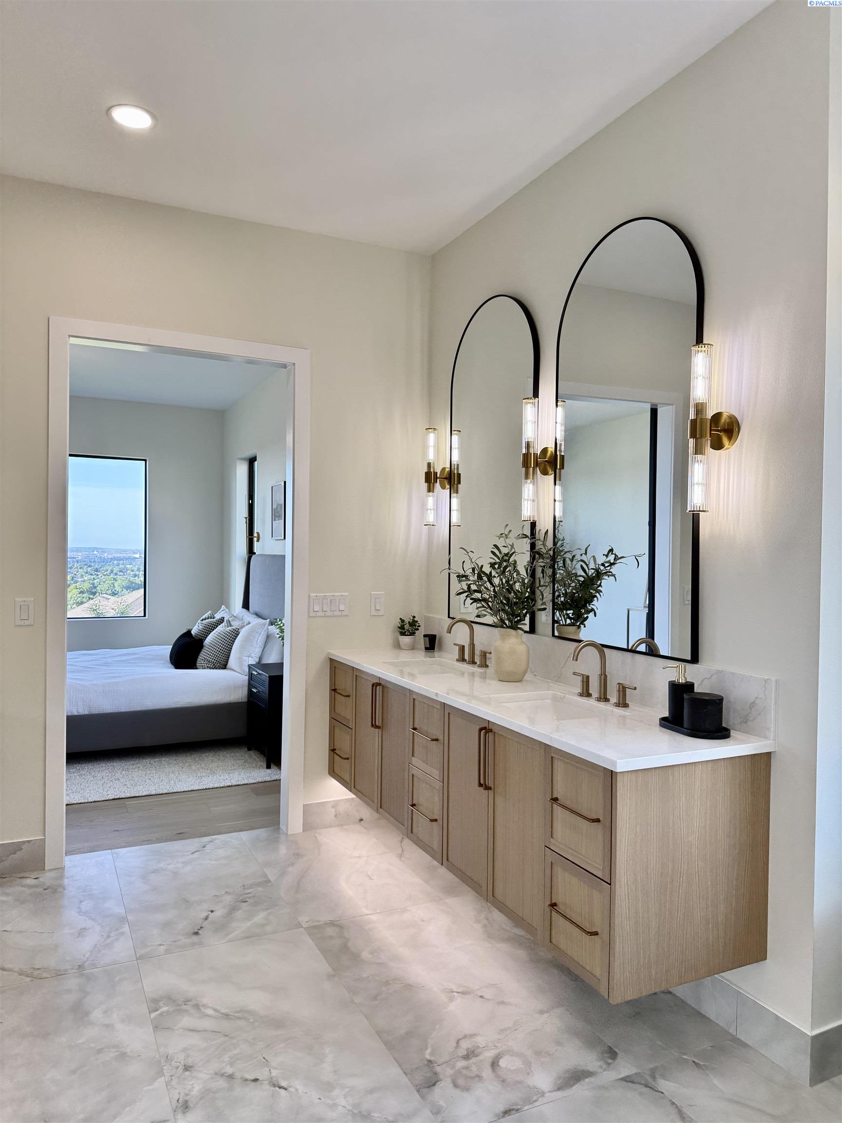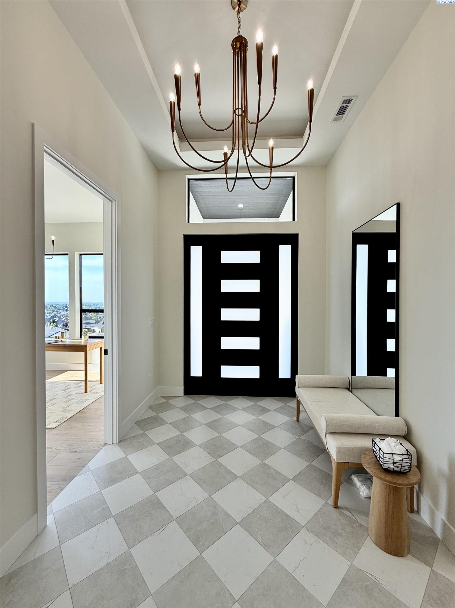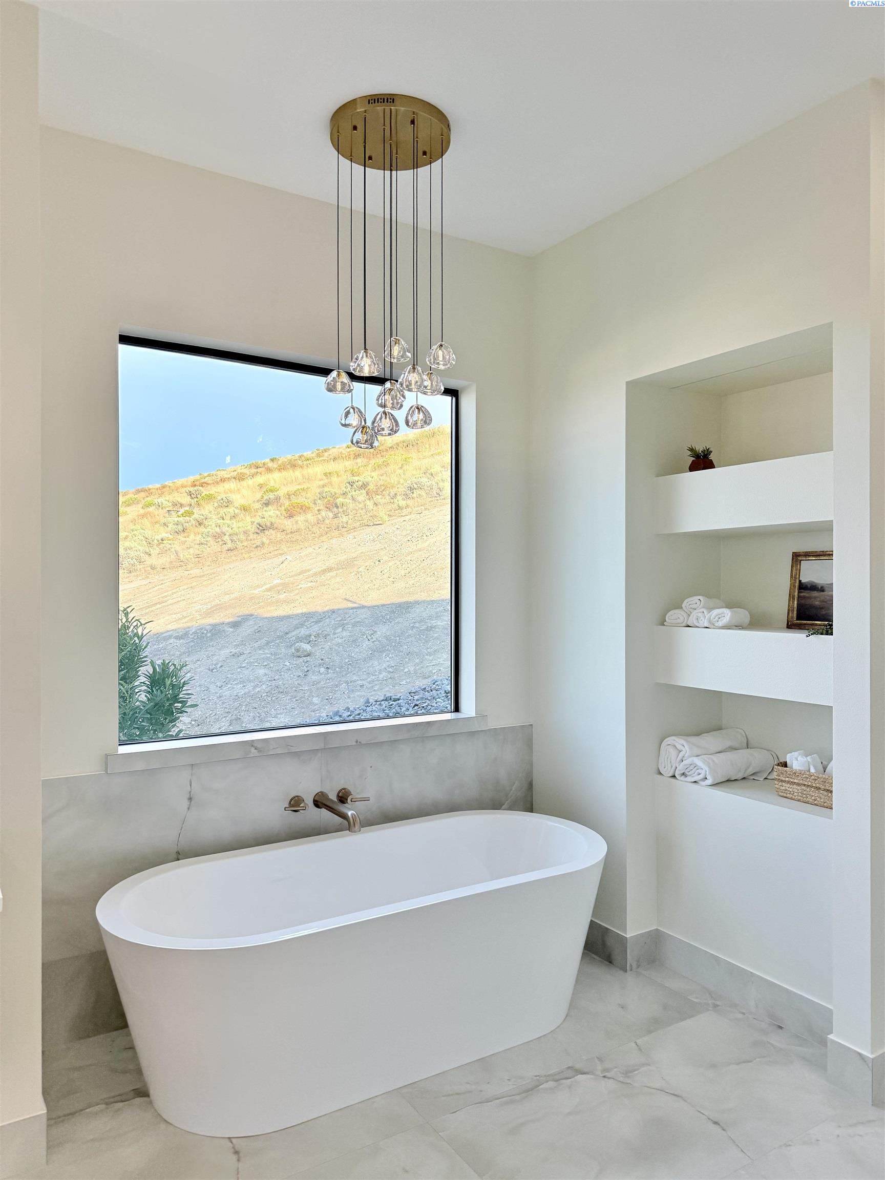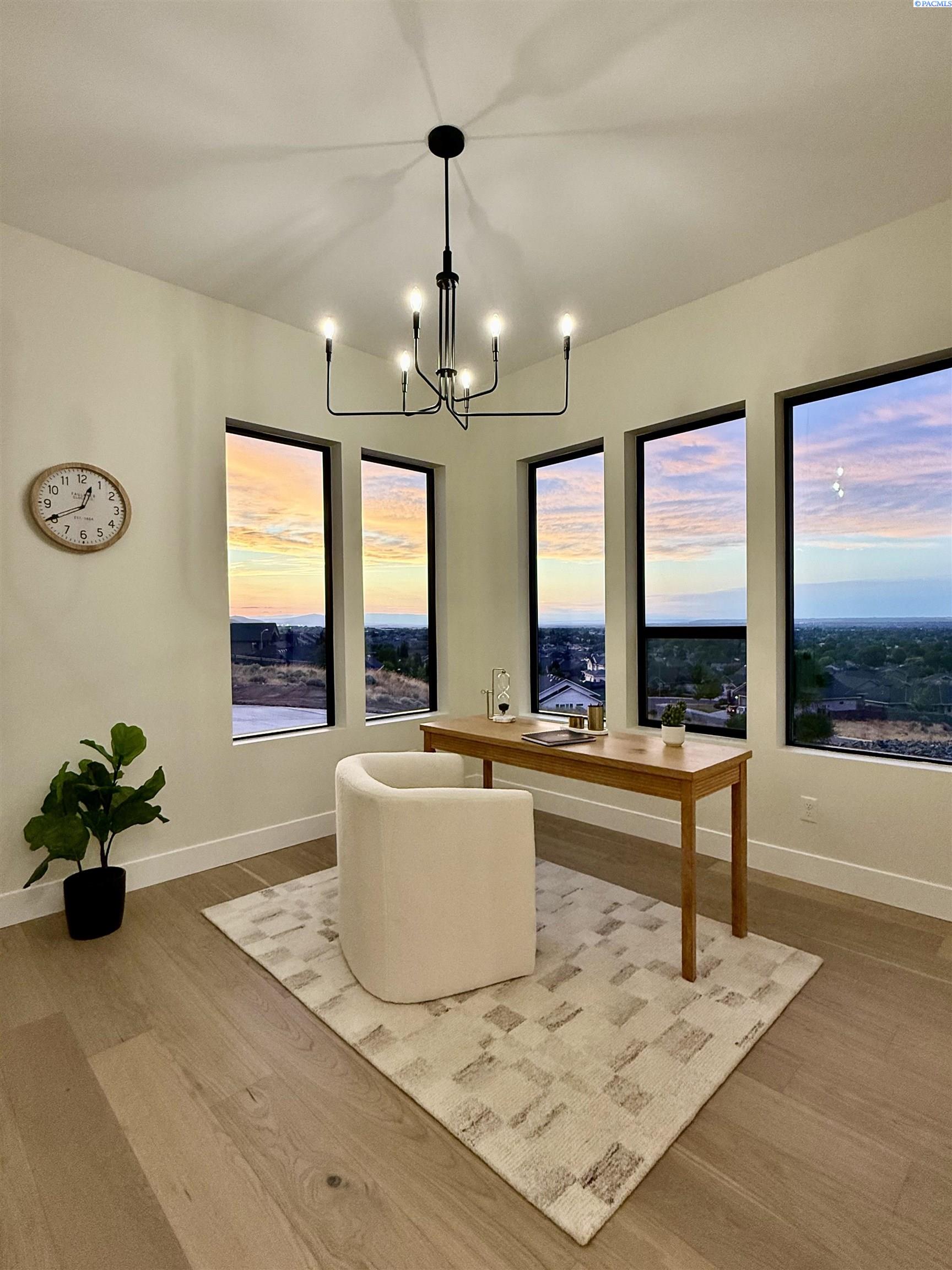 MLS# 286327 This exquisite 4-BR + Den, 3.5-BA rambler is situated in the esteemed Inspiration Estates. This home has a linear style, highlighted by black windows for you to enjoy the view sweeping from Badger Mt to the Blue Mountains, making for incredible sunrises and sunsets. The privacy-glassed, oversized garage gives extra space for projects or storage. This home comes fully landscaped with TUGS. This architectural masterpiece features a no-step entry, ensuring convenience and accessibility. The covered patio is perfect to extend your entertainment area and the BBQ stub is ready for your grill or future outdoor kitchen. The solar panels, EV outlet in garage and the tankless water heater increase energy efficiency. The designed flow starts with a grand entry foyer, leading into the Great Room with 12â ceilings, open concept with the kitchen and dining room. The fireplace is strategically placed in the hand-troweled limestone column in the Great Room with built in shelving that is illuminated by sconces. The ceiling shows off the custom beam work that shares options in an overhead lighting system and a dimmable, gold ring chandelier. Engineered white oak hardwood flooring is in main living areas and Berber carpet in the bedrooms. All bathrooms are tiled âno fiberglass here! There are Quartz countertops throughout the kitchen, bathrooms and Mudroom. Creating in this kitchen will be a total joy with the Z-Line 48â SS Professional Range/Oven with Champagne Bronze Accents. It has an electric Double oven with 6.7 cu ft for larger cooking and a side, baking oven. The 8 auto-re ignition gas burners combine the elegance of a hand-finished porcelain cooktop with an electric convection oven. Sconces are placed on either side of the limestone vent hood for ambiance. Matching Z-Line Drawer Microwave and Dishwasher compliment this impressive look. Custom stained cabinets are showcased with the toe-kick lighting, and under island lighting as well. The 10â x 4â quartz waterfall island has full cabinet storage beneath. The pantry has generous shelving. The Main BR is spacious and has breathtaking views. The Ownerâs Bath is welcoming and set apart by a privacy-tinted glass sliding door; featuring a makeup bar with lighted mirror, tiled shower with undershelf lighting, free-standing tub with chandelier, built in shelving with dimmable lighting, large closet with custom shelving, and separate area for the Owners Washer/Dryer. 2 yr snow removal included with full price.