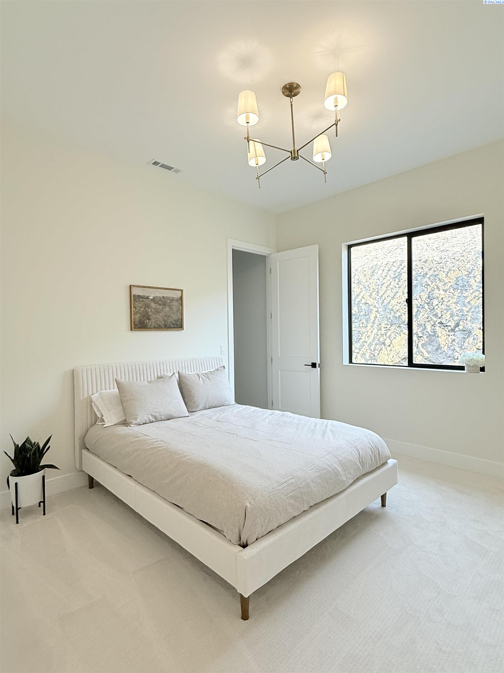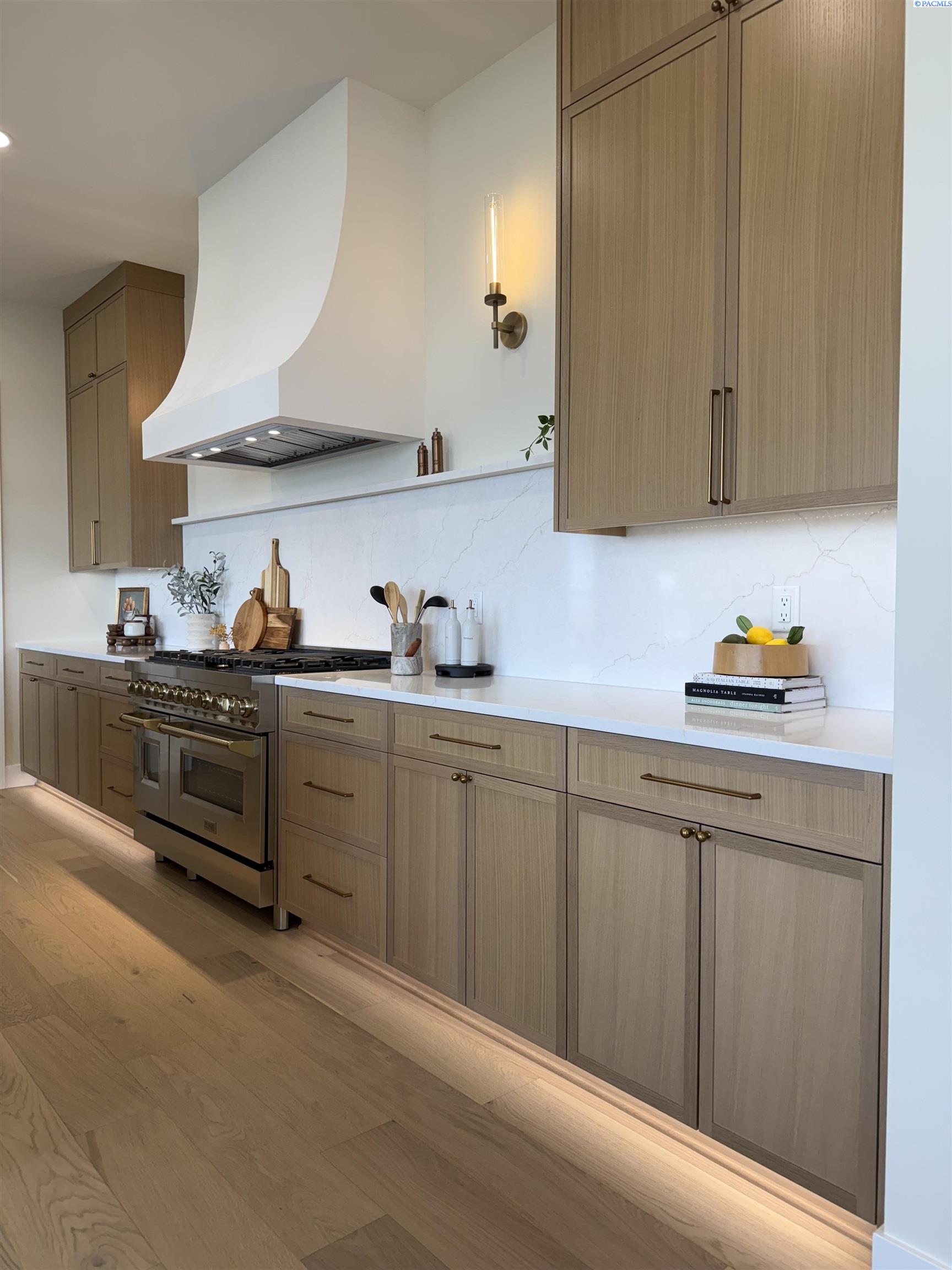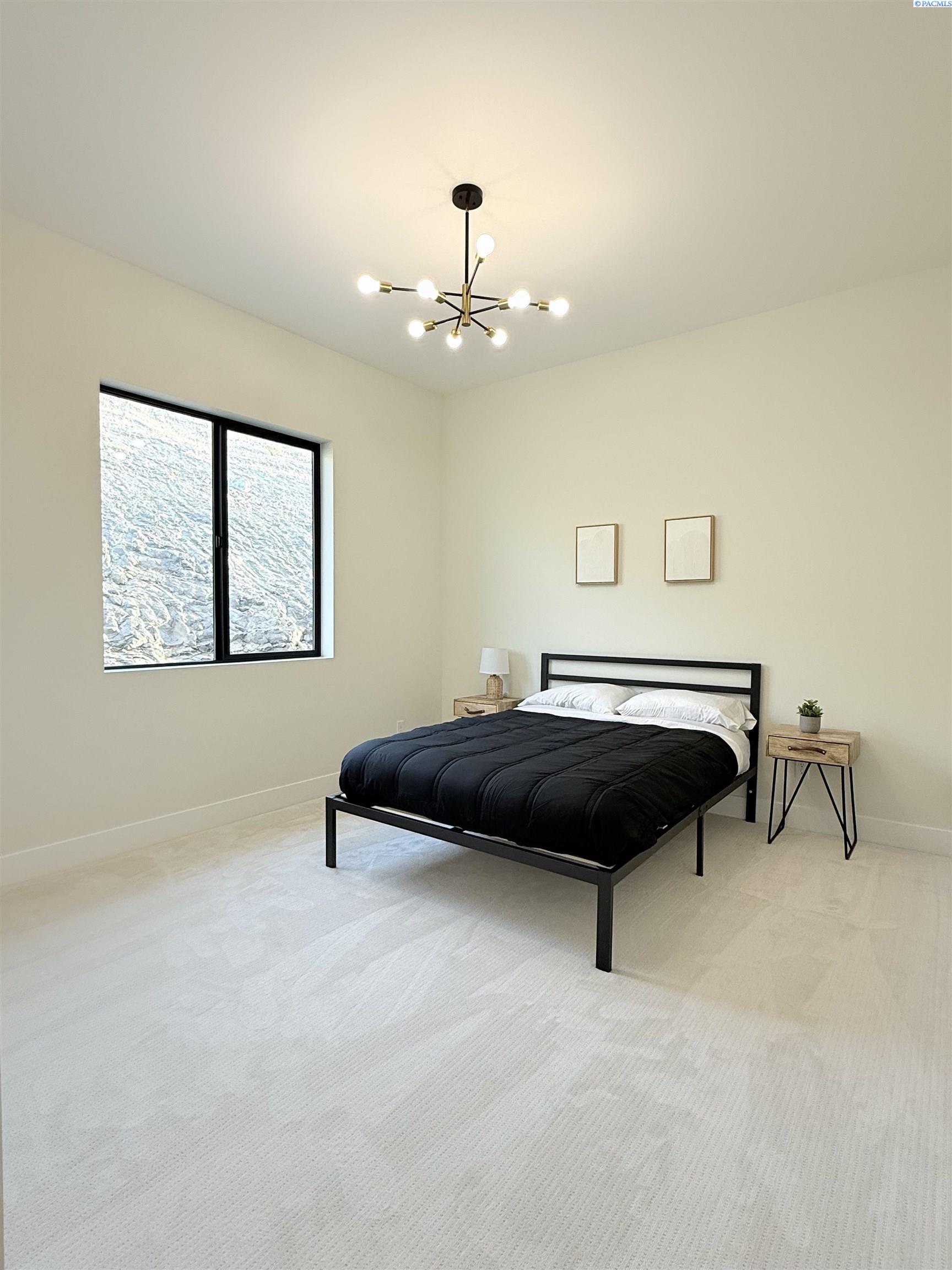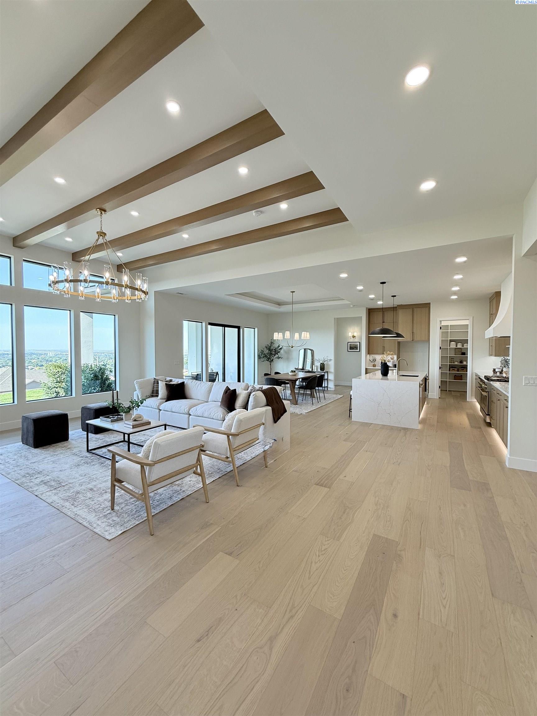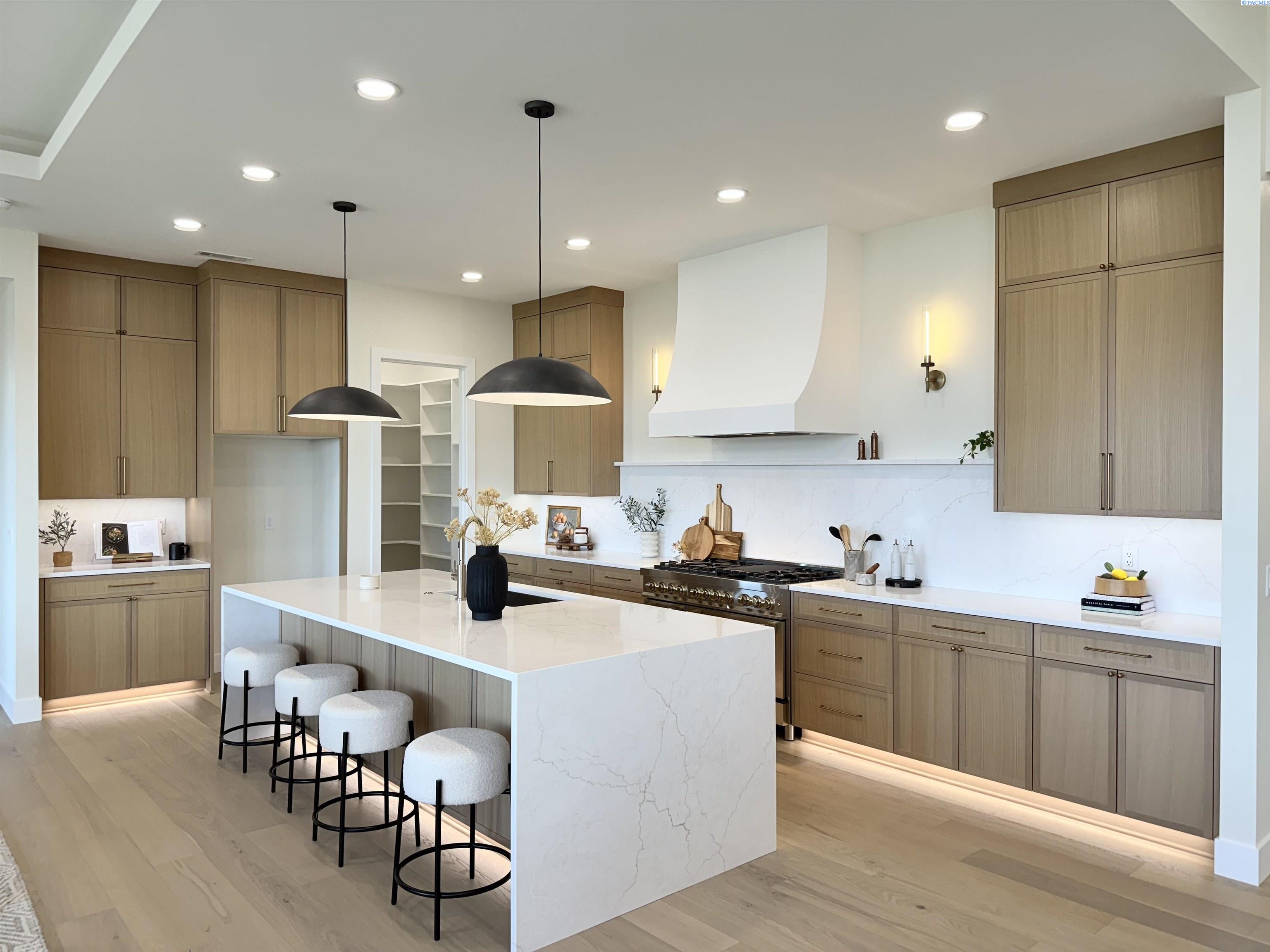 MLS# 286327 This exquisite 4-BR + Den, 3.5-BA rambler is situated in the esteemed Inspiration Estates. This home has a linear style, highlighted by black windows for you to enjoy the view sweeping from Badger Mt to the Blue Mountains, making for incredible sunrises and sunsets. The privacy-glassed, oversized garage gives extra space for projects or storage. This home comes fully landscaped with TUGS. This architectural masterpiece features a no-step entry, ensuring convenience and accessibility. The covered patio is perfect to extend your entertainment area and the BBQ stub is ready for your grill or future outdoor kitchen. The solar panels, EV outlet in garage and the tankless water heater increase energy efficiency. The designed flow starts with a grand entry foyer, leading into the Great Room with 12â ceilings, open concept with the kitchen and dining room. The fireplace is strategically placed in the hand-troweled limestone column in the Great Room with built in shelving that is illuminated by sconces. The ceiling shows off the custom beam work that shares options in an overhead lighting system and a dimmable, gold ring chandelier. Engineered white oak hardwood flooring is in main living areas and Berber carpet in the bedrooms. All bathrooms are tiled âno fiberglass here! There are Quartz countertops throughout the kitchen, bathrooms and Mudroom. Creating in this kitchen will be a total joy with the Z-Line 48â SS Professional Range/Oven with Champagne Bronze Accents. It has an electric Double oven with 6.7 cu ft for larger cooking and a side, baking oven. The 8 auto-re ignition gas burners combine the elegance of a hand-finished porcelain cooktop with an electric convection oven. Sconces are placed on either side of the limestone vent hood for ambiance. Matching Z-Line Drawer Microwave and Dishwasher compliment this impressive look. Custom stained cabinets are showcased with the toe-kick lighting, and under island lighting as well. The 10â x 4â quartz waterfall island has full cabinet storage beneath. The pantry has generous shelving. The Main BR is spacious and has breathtaking views. The Ownerâs Bath is welcoming and set apart by a privacy-tinted glass sliding door; featuring a makeup bar with lighted mirror, tiled shower with undershelf lighting, free-standing tub with chandelier, built in shelving with dimmable lighting, large closet with custom shelving, and separate area for the Owners Washer/Dryer. 2 yr snow removal included with full price.