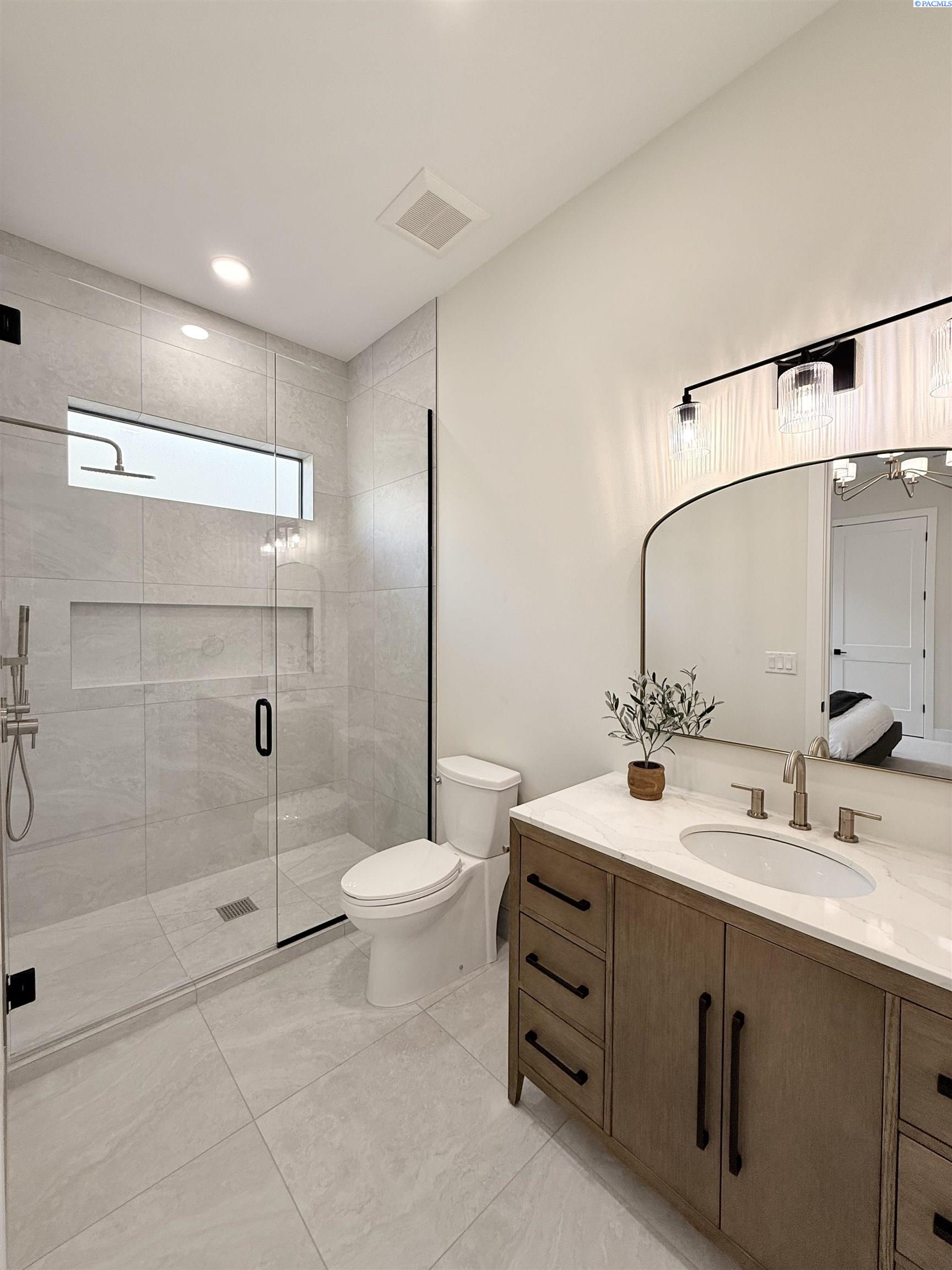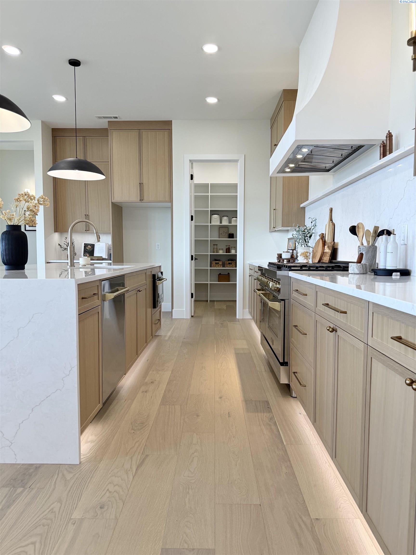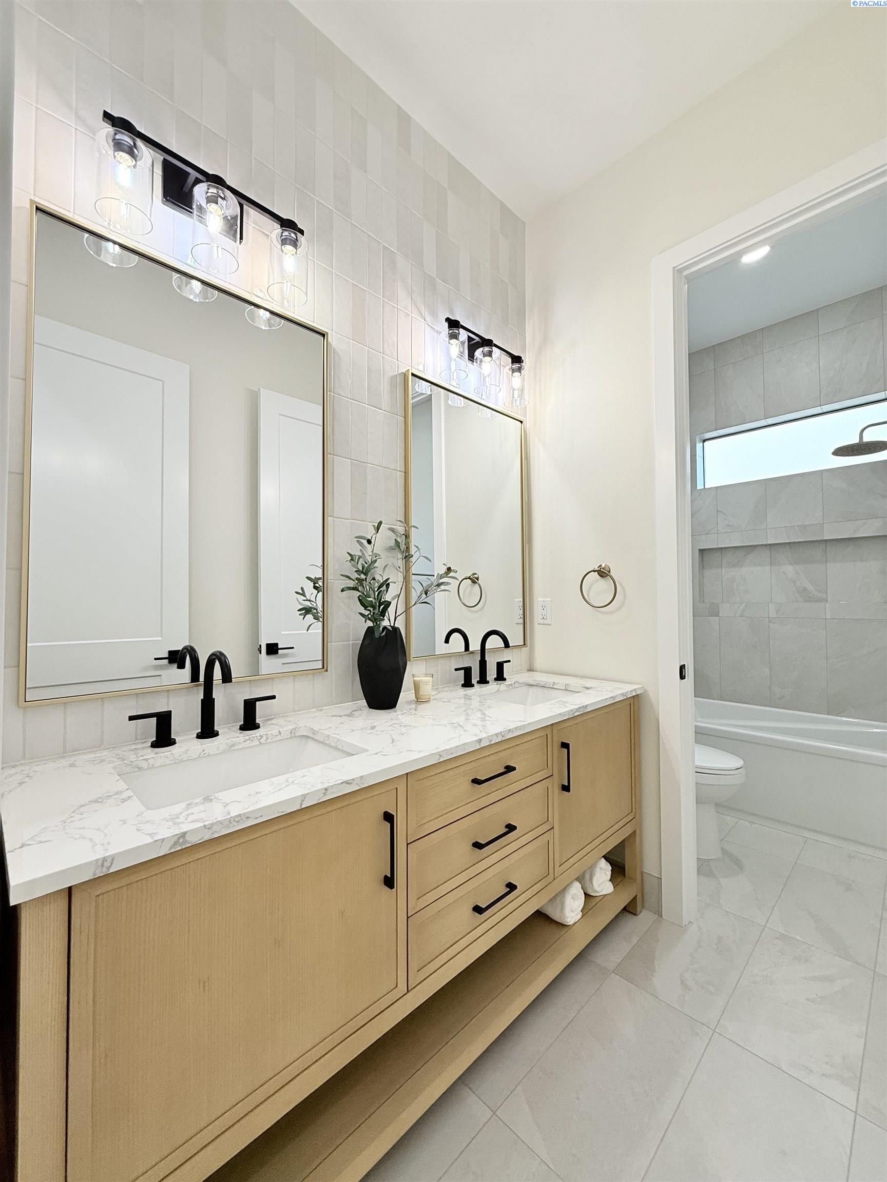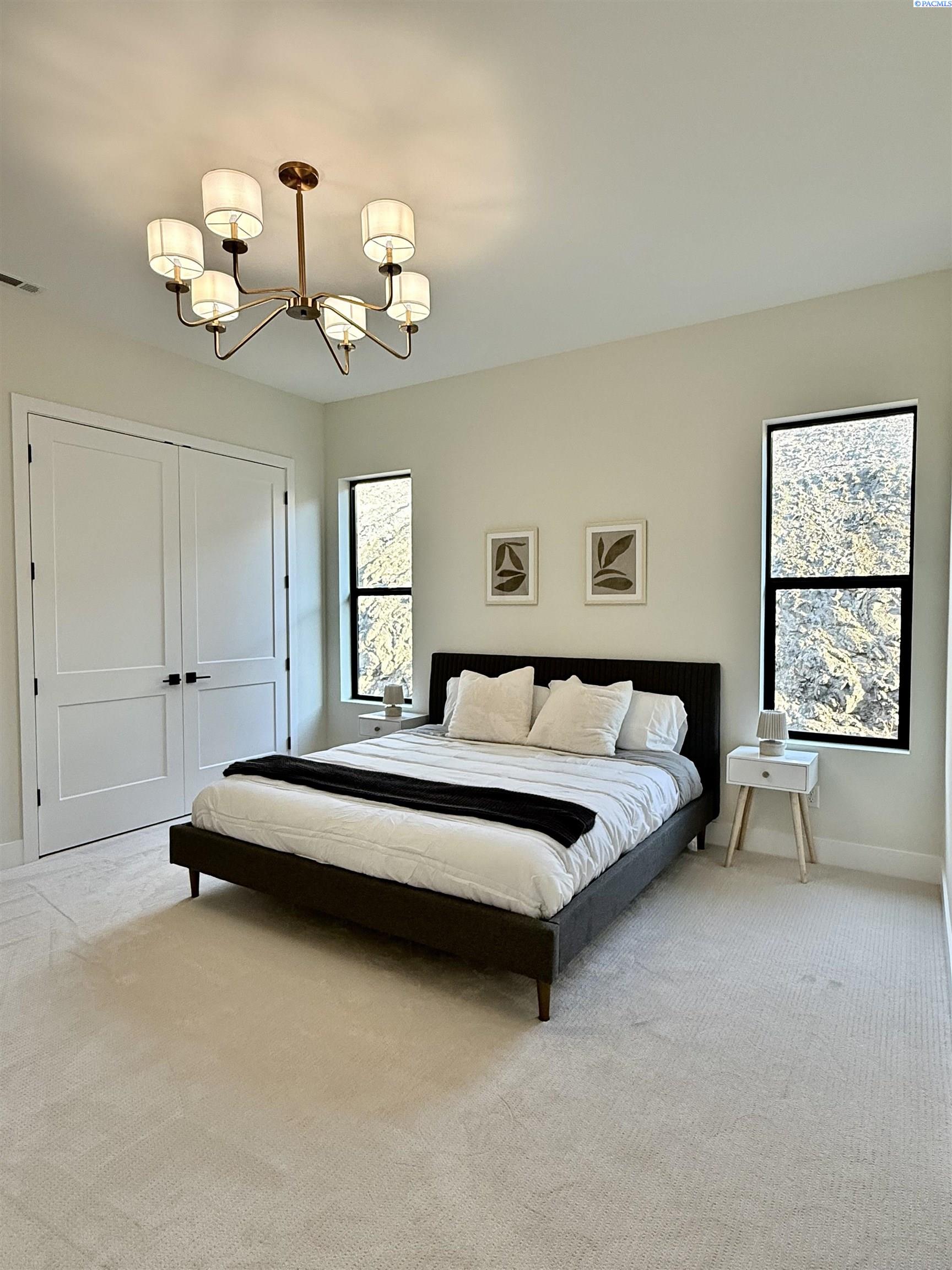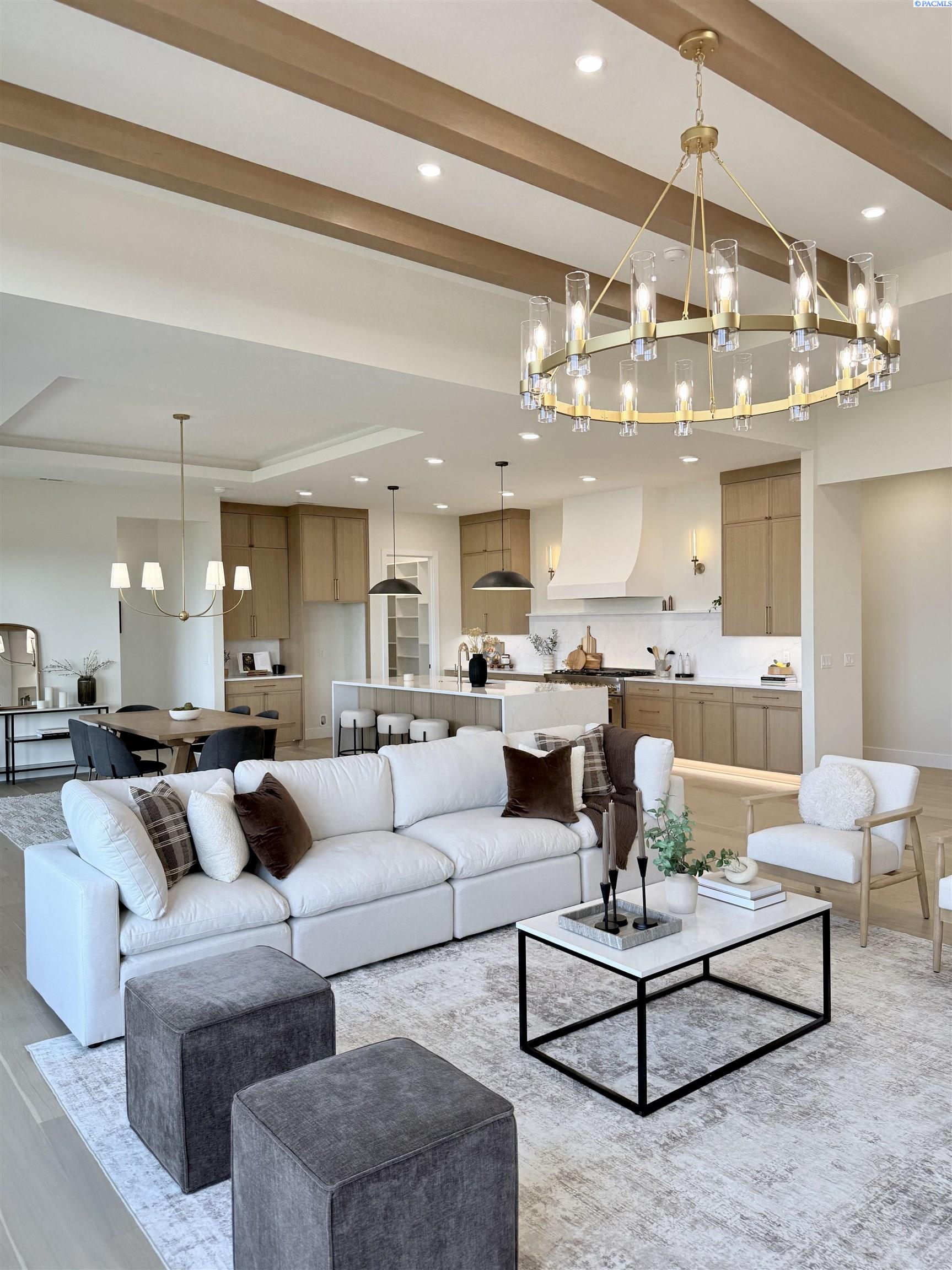 MLS# 286327 This exquisite 4-BR + Den, 3.5-BA rambler is situated in the esteemed Inspiration Estates. This home has a linear style, highlighted by black windows for you to enjoy the view sweeping from Badger Mt to the Blue Mountains, making for incredible sunrises and sunsets. The privacy-glassed, oversized garage gives extra space for projects or storage. This home comes fully landscaped with TUGS. This architectural masterpiece features a no-step entry, ensuring convenience and accessibility. The covered patio is perfect to extend your entertainment area and the BBQ stub is ready for your grill or future outdoor kitchen. The solar panels, EV outlet in garage and the tankless water heater increase energy efficiency. The designed flow starts with a grand entry foyer, leading into the Great Room with 12â ceilings, open concept with the kitchen and dining room. The fireplace is strategically placed in the hand-troweled limestone column in the Great Room with built in shelving that is illuminated by sconces. The ceiling shows off the custom beam work that shares options in an overhead lighting system and a dimmable, gold ring chandelier. Engineered white oak hardwood flooring is in main living areas and Berber carpet in the bedrooms. All bathrooms are tiled âno fiberglass here! There are Quartz countertops throughout the kitchen, bathrooms and Mudroom. Creating in this kitchen will be a total joy with the Z-Line 48â SS Professional Range/Oven with Champagne Bronze Accents. It has an electric Double oven with 6.7 cu ft for larger cooking and a side, baking oven. The 8 auto-re ignition gas burners combine the elegance of a hand-finished porcelain cooktop with an electric convection oven. Sconces are placed on either side of the limestone vent hood for ambiance. Matching Z-Line Drawer Microwave and Dishwasher compliment this impressive look. Custom stained cabinets are showcased with the toe-kick lighting, and under island lighting as well. The 10â x 4â quartz waterfall island has full cabinet storage beneath. The pantry has generous shelving. The Main BR is spacious and has breathtaking views. The Ownerâs Bath is welcoming and set apart by a privacy-tinted glass sliding door; featuring a makeup bar with lighted mirror, tiled shower with undershelf lighting, free-standing tub with chandelier, built in shelving with dimmable lighting, large closet with custom shelving, and separate area for the Owners Washer/Dryer. 2 yr snow removal included with full price.