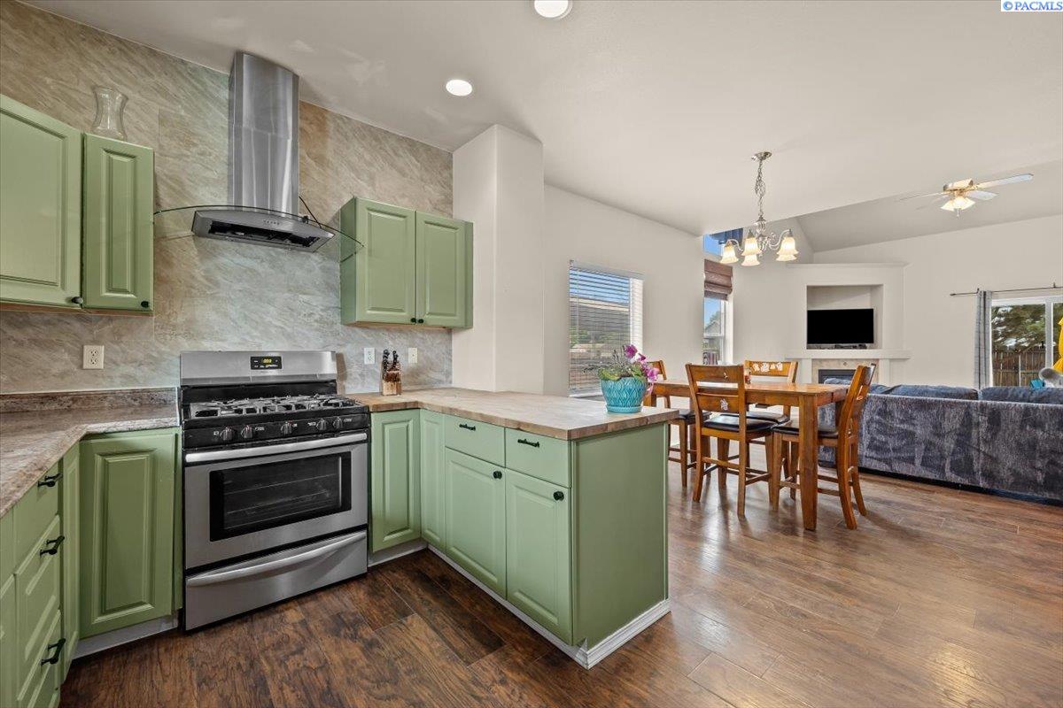 MLS# 286368 Youâre going to love this spacious 1,904 SF 3 bed, 2.5 bath, 2-story home with a versatile bonus room! Step inside to a warm tile entry and stunning laminate wood flooring that flows throughout most of the home. The open great room features soaring vaulted ceilings, a cozy gas fireplace, and impressive floor-to-ceiling windows that fill the space with natural light.The kitchen is a dream for any home chef, showcasing a beautiful butcher block peninsula, perfect for prepping, entertaining, or a quick bite. Youâll love the stainless steel gas range with a sleek SS range hood, and thereâs no shortage of storage with ample cabinets and a pantry. On the main floor, youâll also find a convenient half bath for guests, and a private primary suite complete with a dual-sink vanity, separate shower/toilet room, and a walk-in closet. The laundry room includes a utility sink and additional cabinetryâgreat for storing cleaning supplies or handling larger cleanup tasks. Upstairs, enjoy two generously sized guest bedrooms, a full bath, and a flexible bonus spaceâperfect for an office, playroom, workout area, or whatever suits your lifestyle! The fully fenced backyard is low-maintenance and ready for your personal touch. Donât waitâcontact your favorite Realtor today for a private tour!