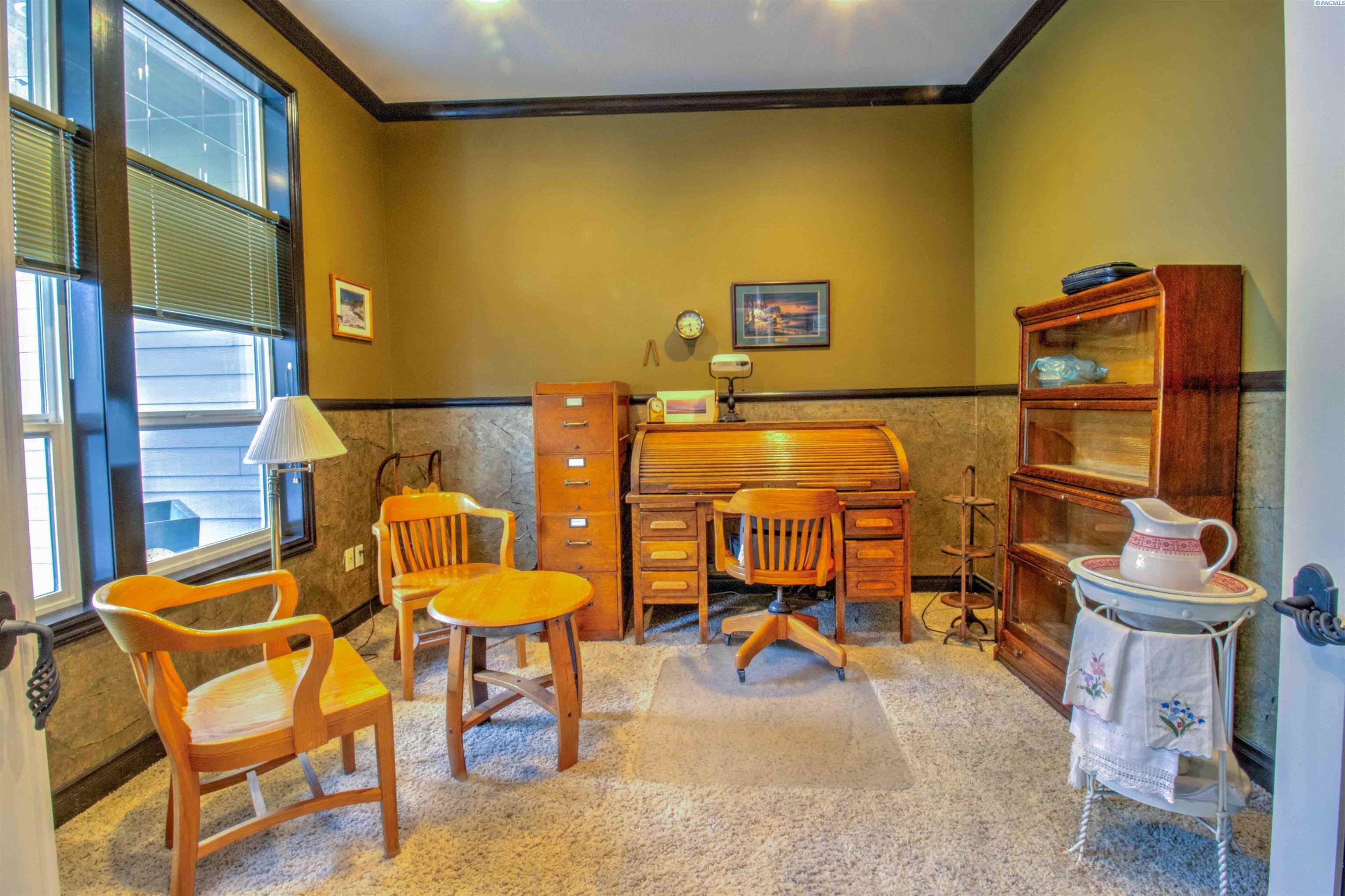 MLS# 286523 Welcome to a home that was featured in the Parade of Homes in 2005! It has extras everywhere, including solar panels! The homeâs 10-foot ceilings and large windows create light-filled space. Crown moldings grace the formal dining room and living room with a gas fireplace. Adjacent is a spacious office that could be converted to a bedroom. The kitchen, with solid wood cupboards and a gas cooktop, opens to a great room with its own gas fireplace, an informal eating area, and surround-sound speakers. A half-bath serves guests. The wide hallway leads to the spacious primary bedroom with a walk-in closet and a large bathroom with double sinks, a two-seated double shower, and a jetted tub. Two more bedrooms are next to a full bathroom with double sinks. The backyard has a terraced garden, mature shade trees, a gas fire pit, a patio with a retractable awning, and a separate dog run. The three-car garage is lined with built-in wood cupboards. The quiet, friendly neighborhood is in a great subdivision that offers boat or RV parking spaces for rent. Donât miss your opportunity to see this stunning home today!