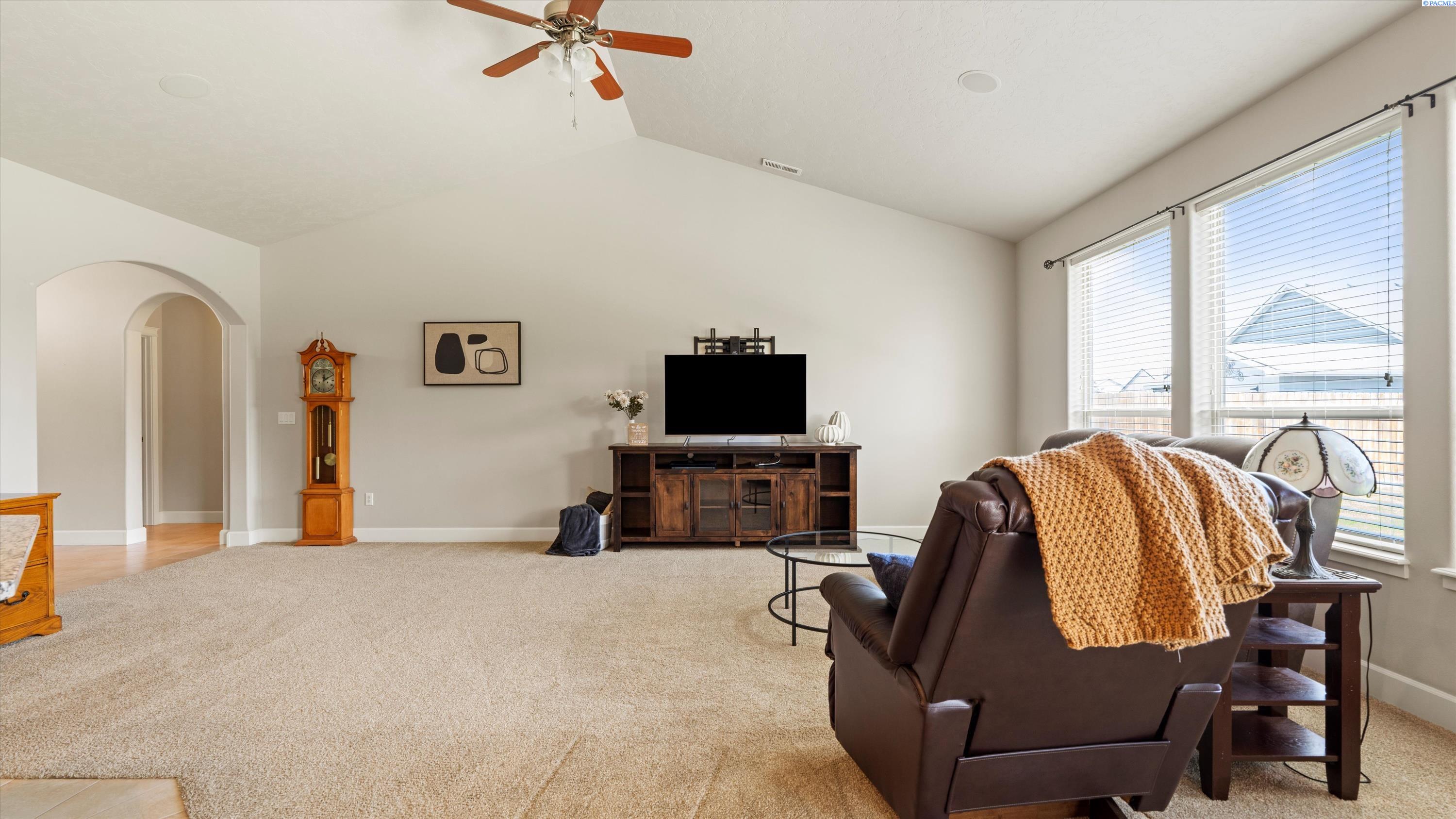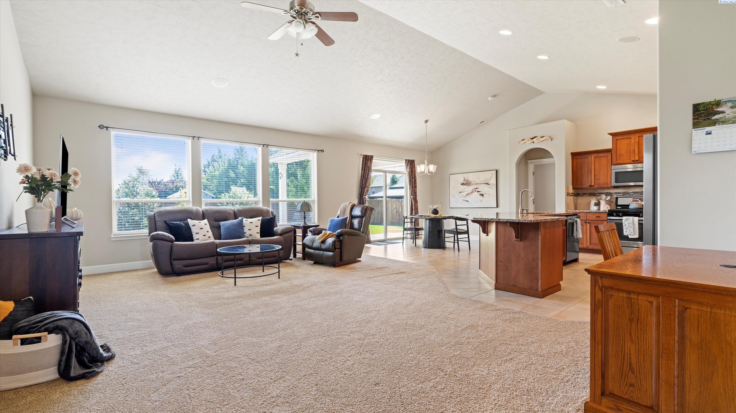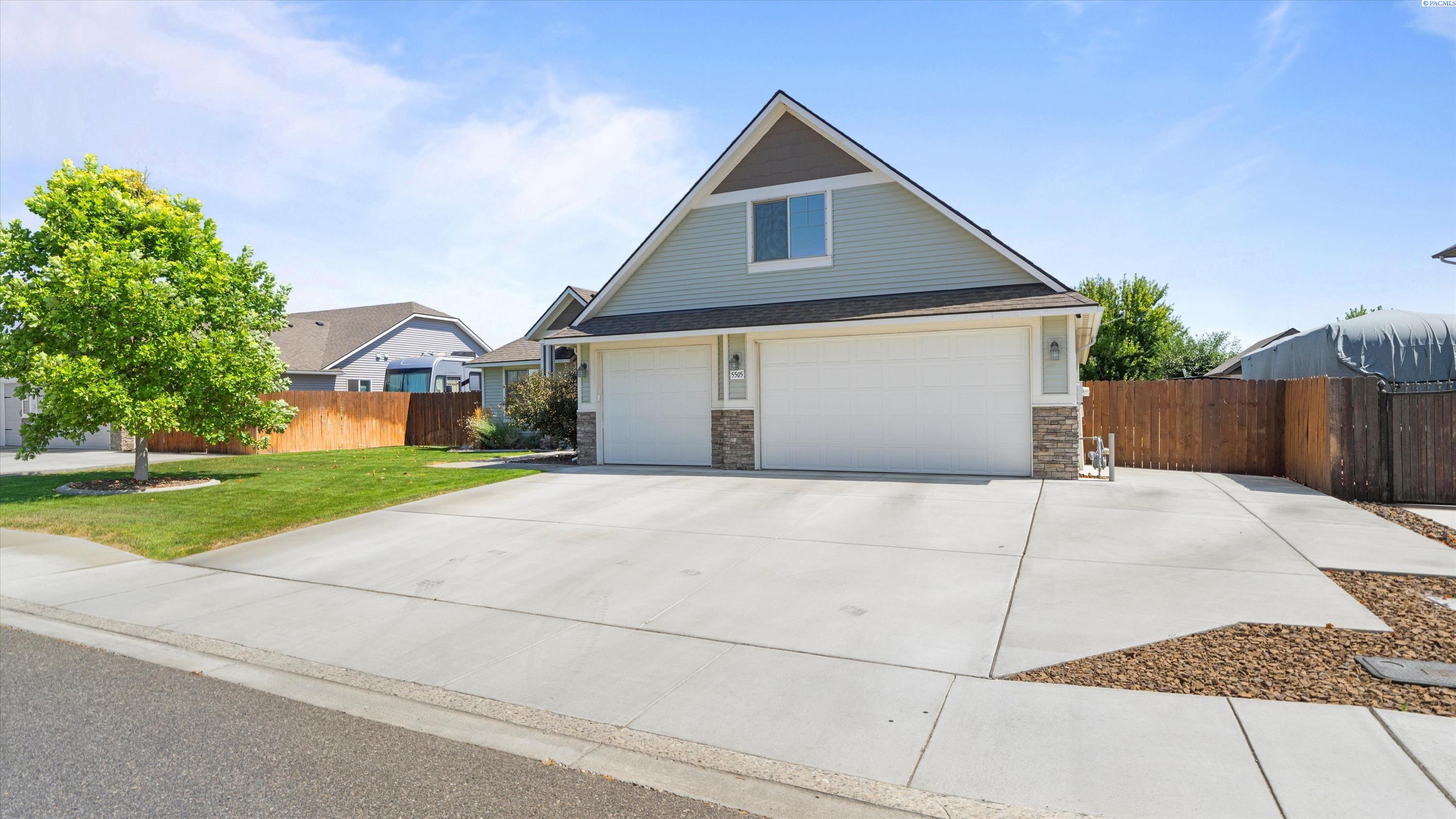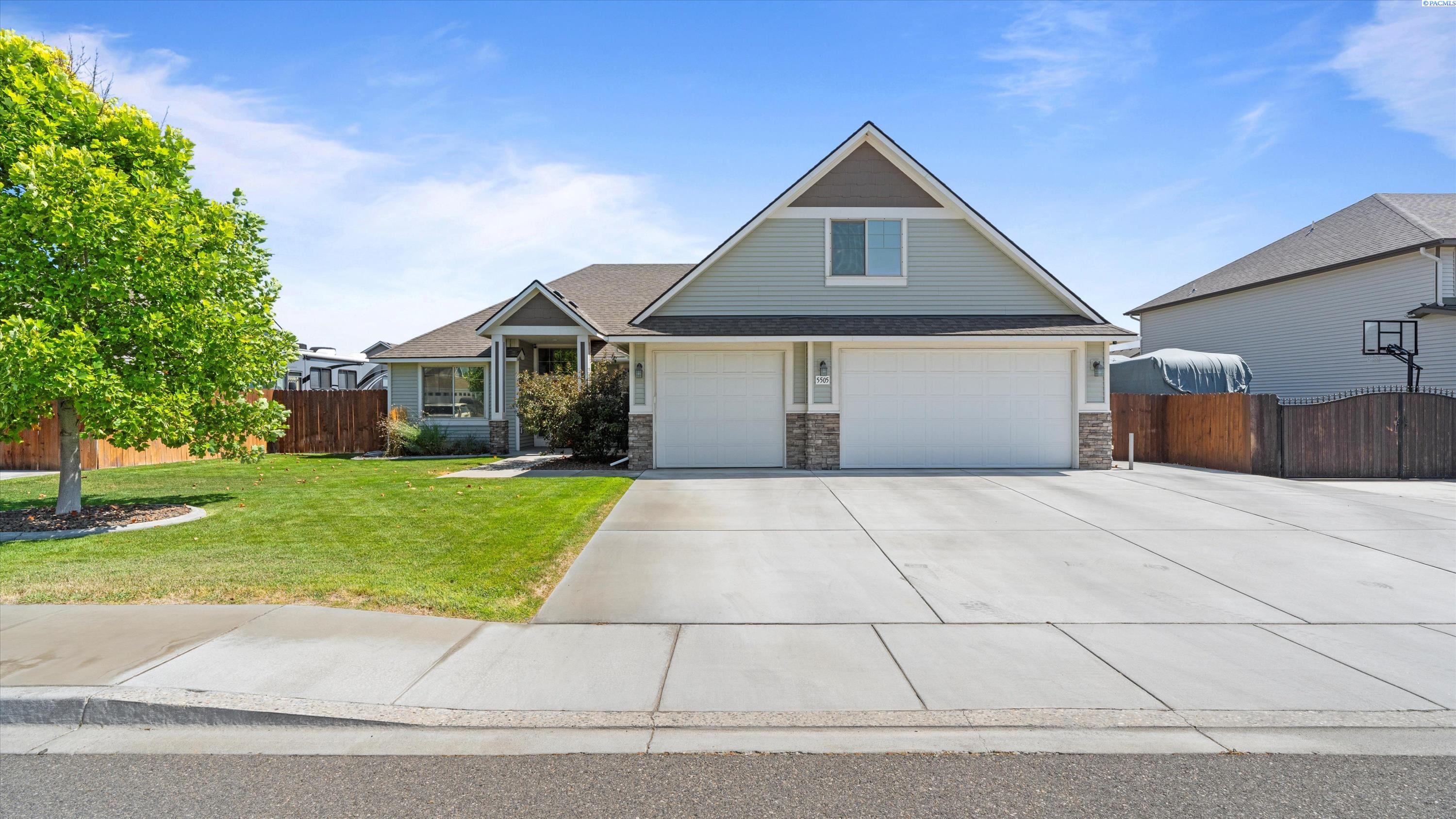 MLS# 286732 Welcome to 5505 Fayette Ln in desirable Madison Park Estates! This beautiful rambler with a bonus room offers 4 bedrooms and 2.5 bathrooms, providing flexible space for any lifestyle. The spacious bonus room includes its own half bathâideal for a guest suite, home office, or media room. The open-concept great room features vaulted ceilings, custom cabinetry, surround sound, and big Open windows. The kitchen is finished with granite countertops, stainless steel appliances, tile flooring, and a full tile backsplash. The luxurious primary suite includes his-and-her closets, double sinks with a soaking tub centered between them, and a walk-in shower. Outside, enjoy a fully fenced, landscaped yard with a covered patio and an extended concrete padâperfect for entertaining. Situated on over a 1/4 acre lot with a 3-car garage plus additional parking, this home offers comfort, style, and functionality in a prime West Pasco location.