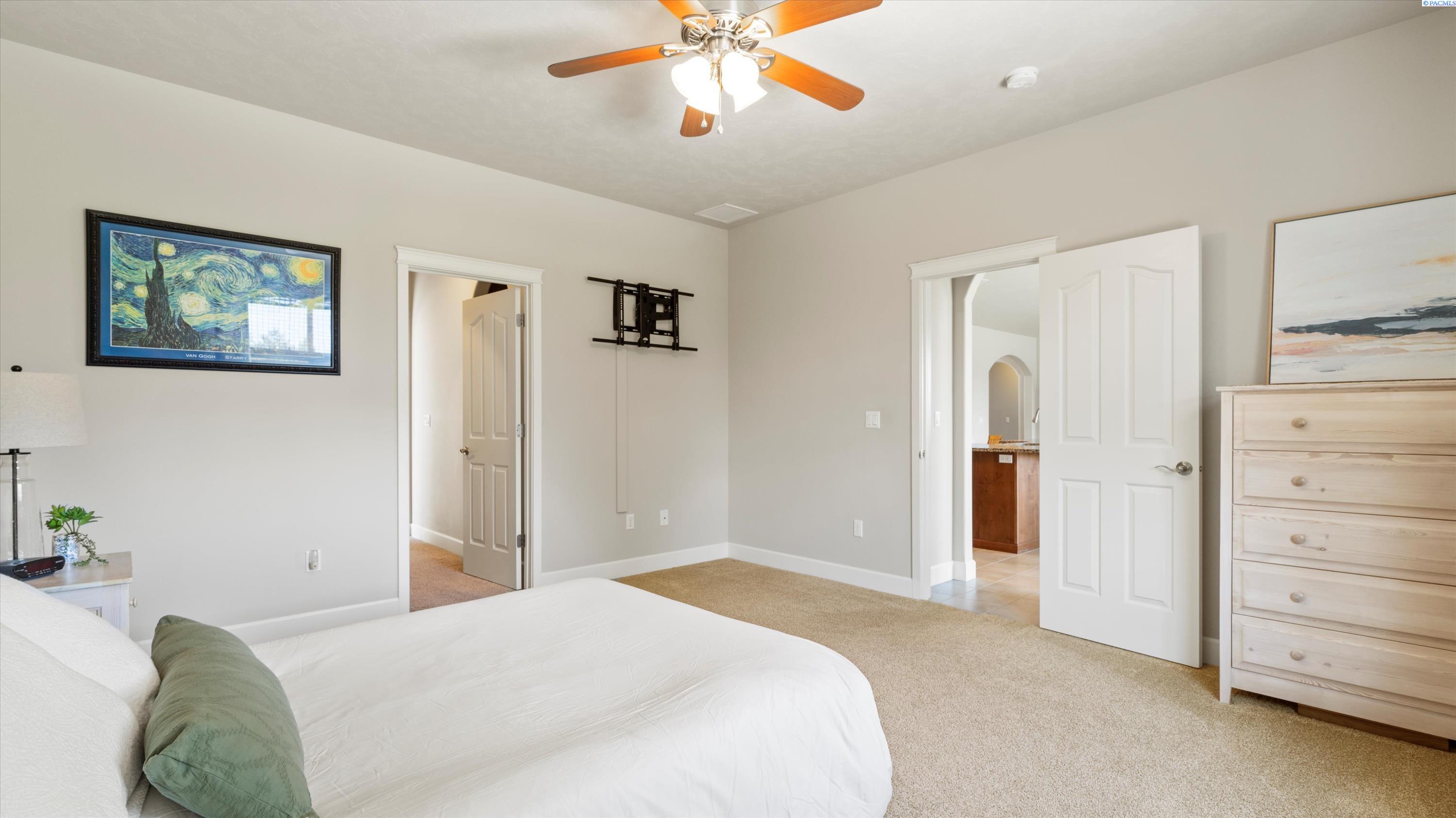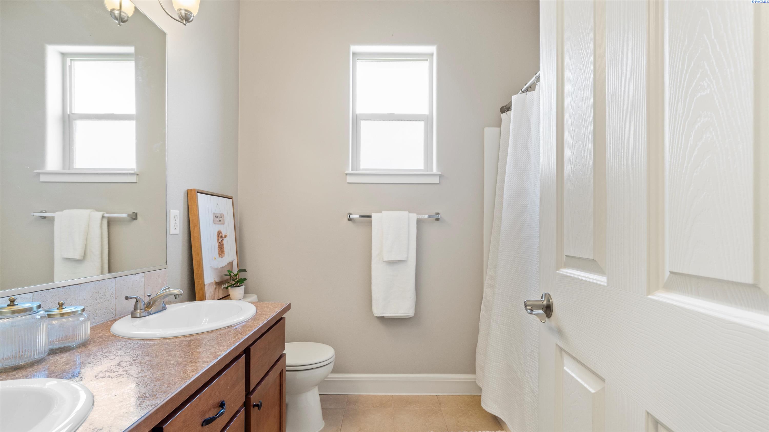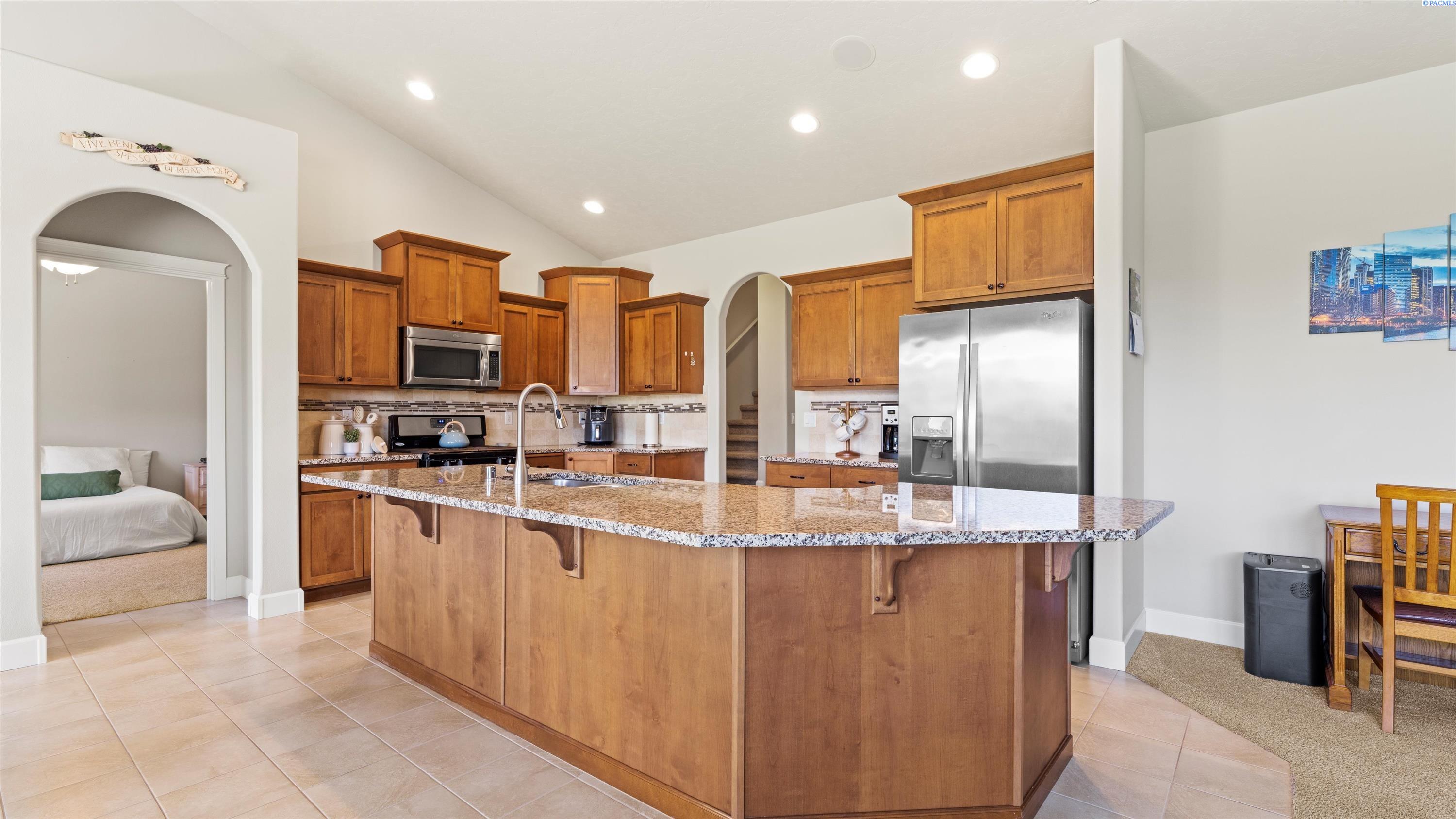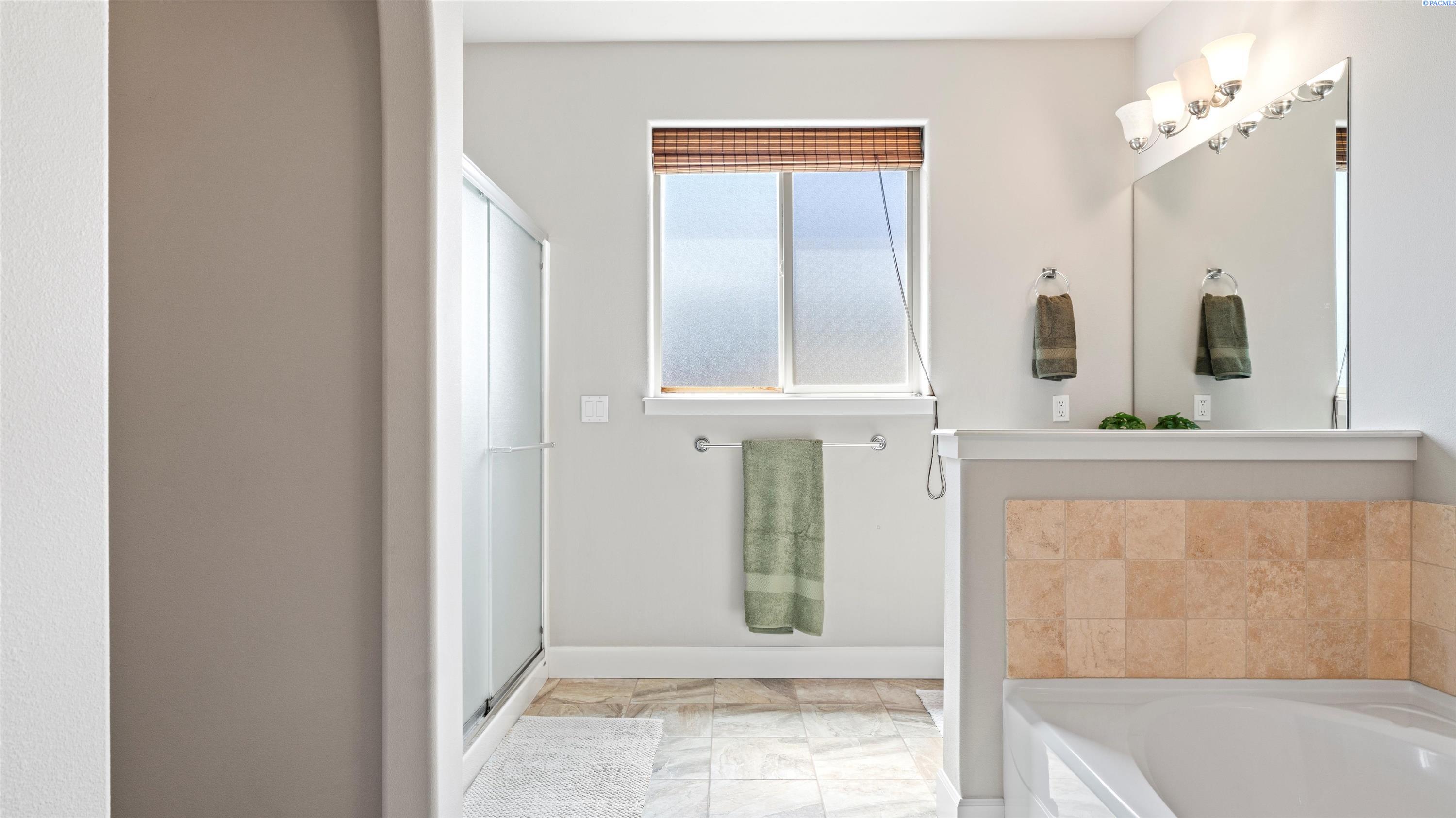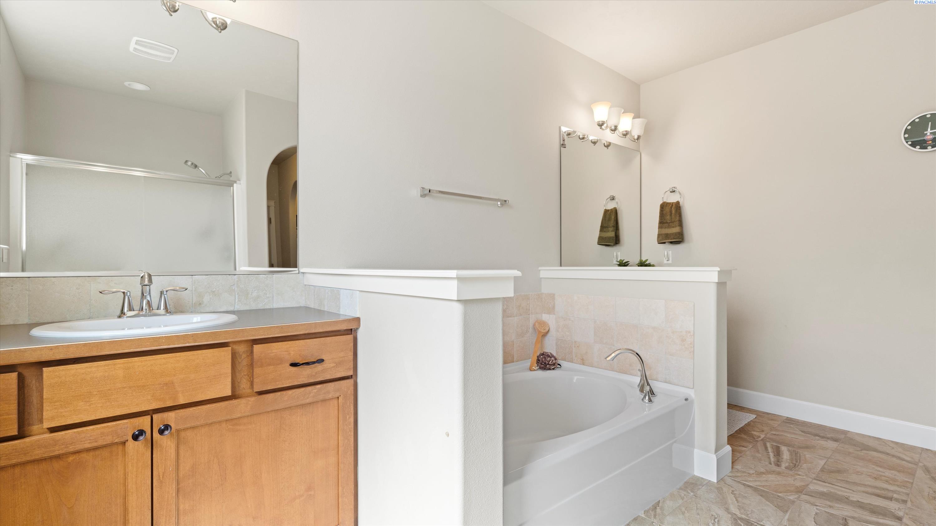 MLS# 286732 Welcome to 5505 Fayette Ln in desirable Madison Park Estates! This beautiful rambler with a bonus room offers 4 bedrooms and 2.5 bathrooms, providing flexible space for any lifestyle. The spacious bonus room includes its own half bathâideal for a guest suite, home office, or media room. The open-concept great room features vaulted ceilings, custom cabinetry, surround sound, and big Open windows. The kitchen is finished with granite countertops, stainless steel appliances, tile flooring, and a full tile backsplash. The luxurious primary suite includes his-and-her closets, double sinks with a soaking tub centered between them, and a walk-in shower. Outside, enjoy a fully fenced, landscaped yard with a covered patio and an extended concrete padâperfect for entertaining. Situated on over a 1/4 acre lot with a 3-car garage plus additional parking, this home offers comfort, style, and functionality in a prime West Pasco location.