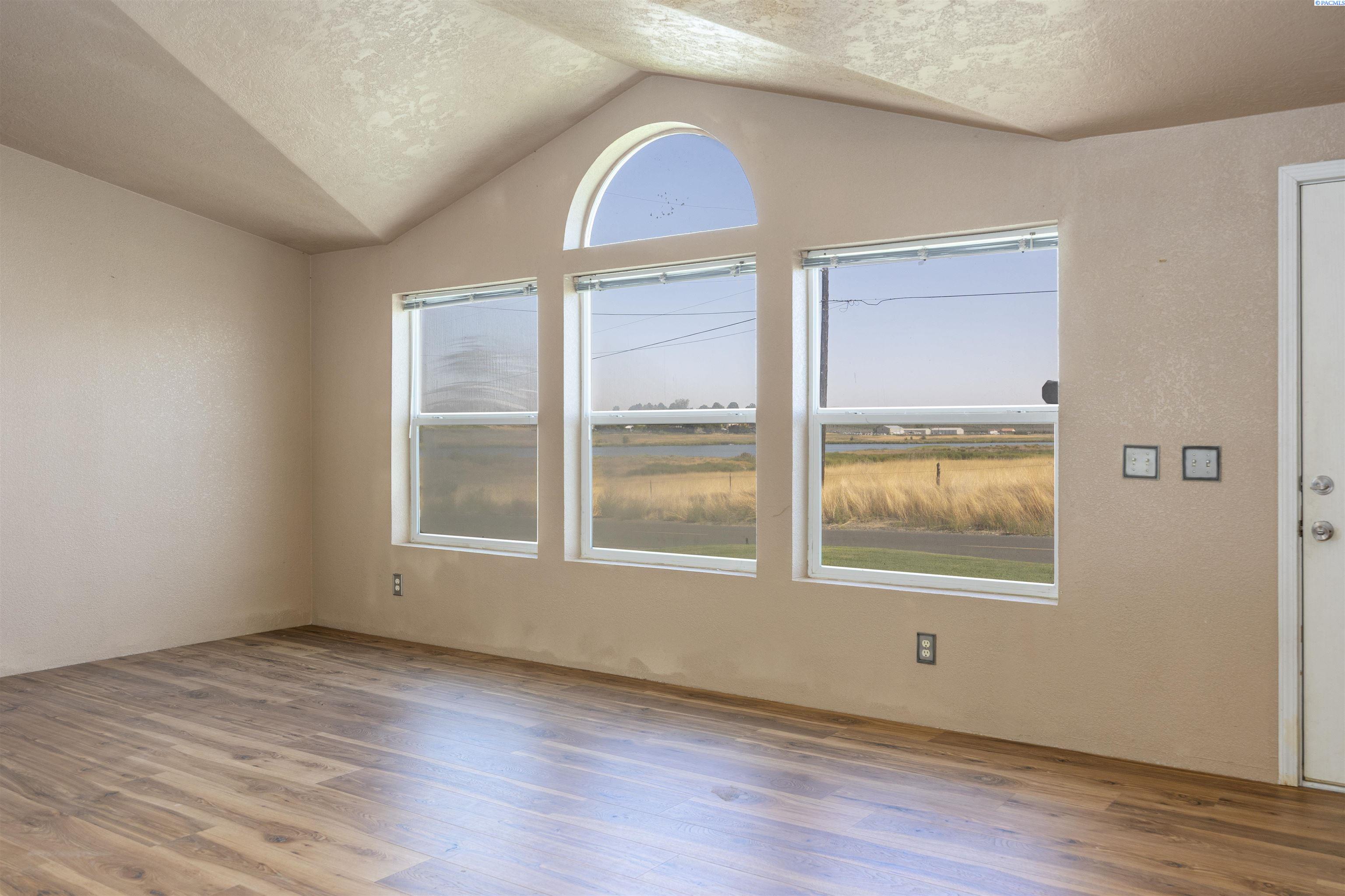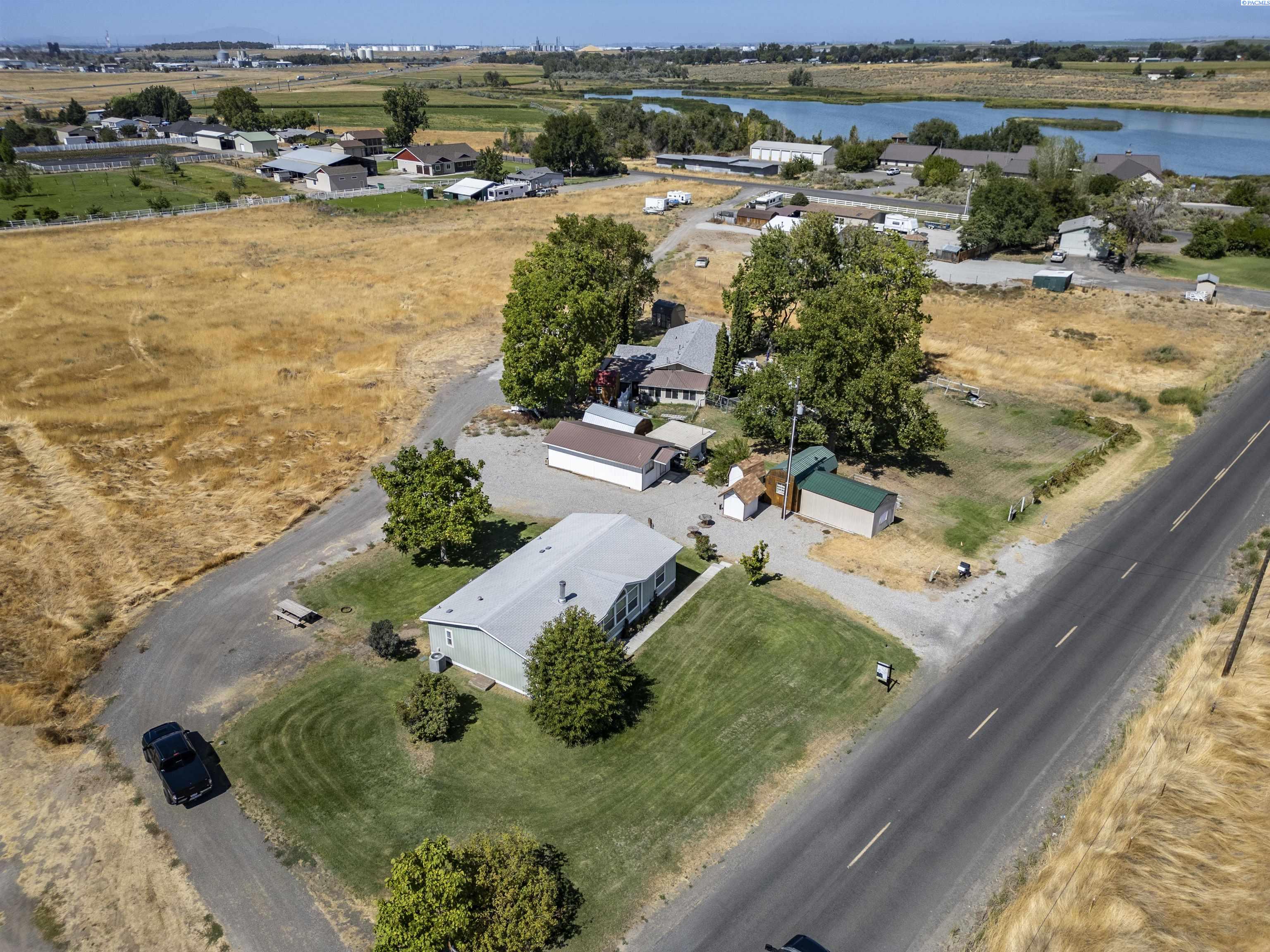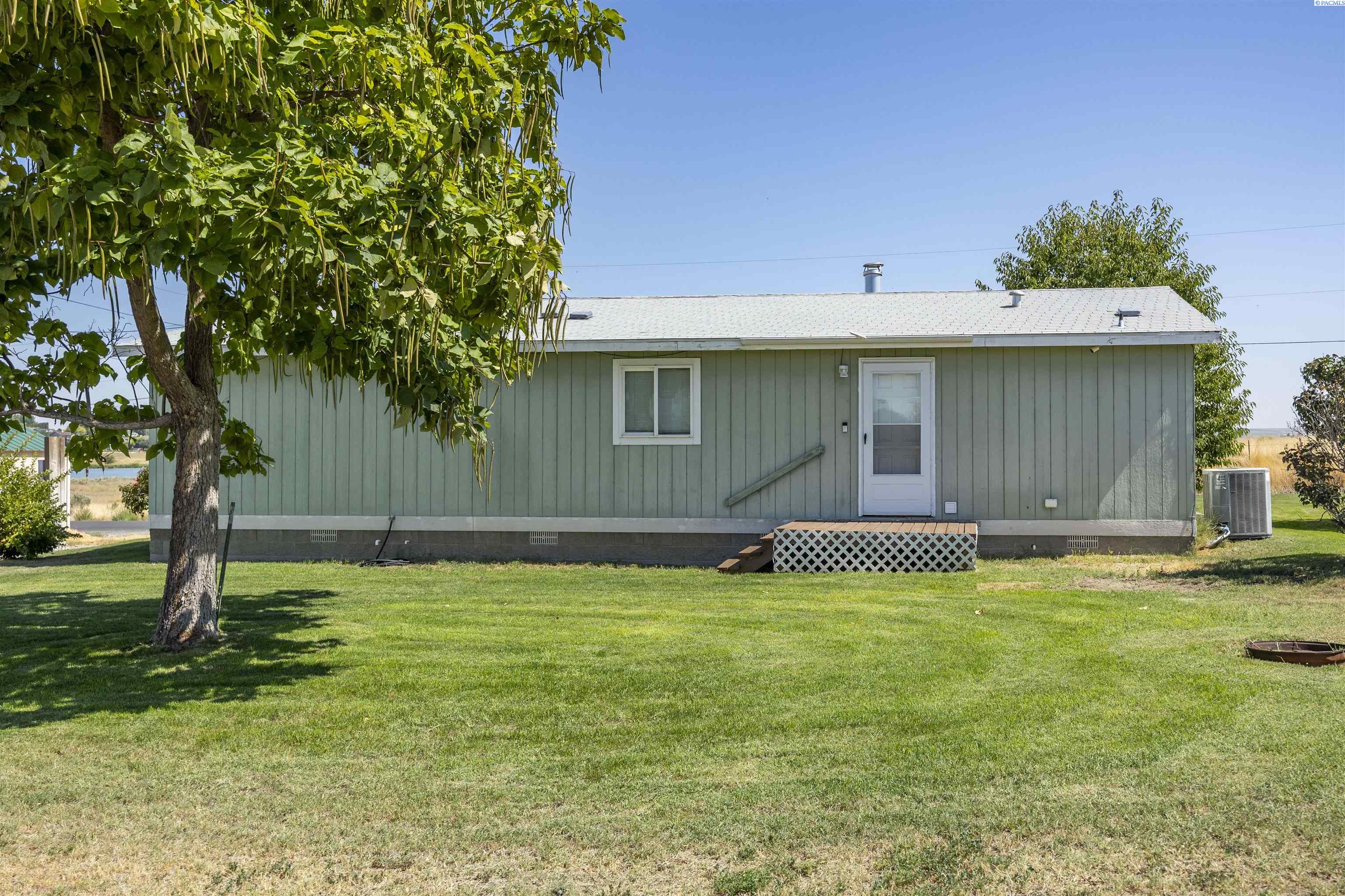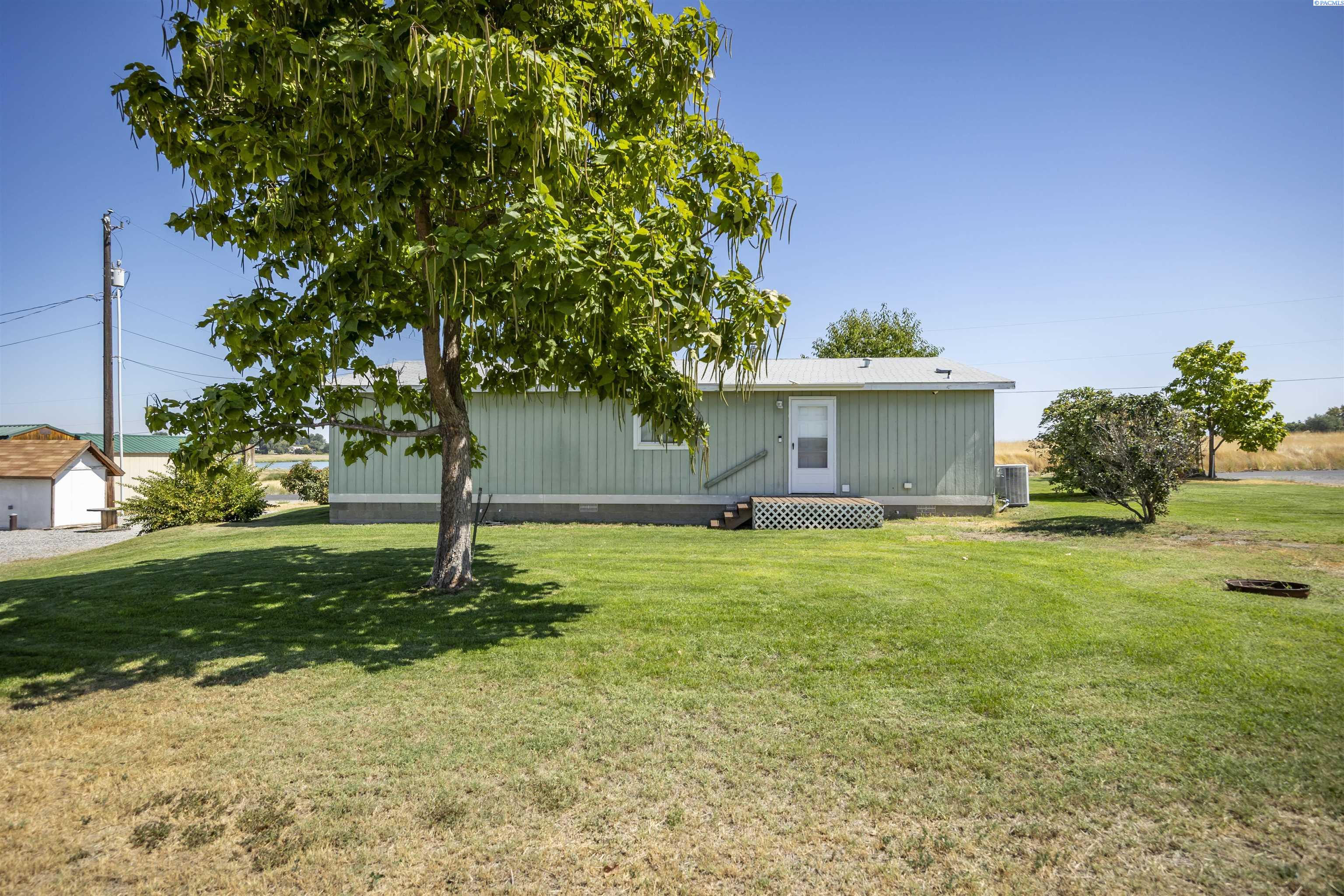 MLS# 286907 Enjoy breathtaking views of the water and the McNary National Wildlife Refuge from this affordable Burbank property! This well maintained manufactured home offers 1,296 square feet of comfortable living space, featuring 3 bedrooms and 2 bathrooms. Inside, you'll find vaulted ceilings that create an open and airy atmosphere, large windows to take in the views, durable laminate flooring, ample extra storage, ceiling fans, and the comfort of central heating and air conditioning. The kitchen offers plenty of cabinetry and counter space for meal prep, room for your table, and features a pass-through to the living area. Spacious primary suite with a large closet and private bathroom. Situated on a spacious 0.38-acre lot, the property includes a detached workshop and mature trees. Additional highlights include open RV parking for your convenience. Take advantage of nearby boat launches, fishing spots, and a variety of outdoor activities, making this home an ideal retreat for nature lovers and adventure seekers alike.