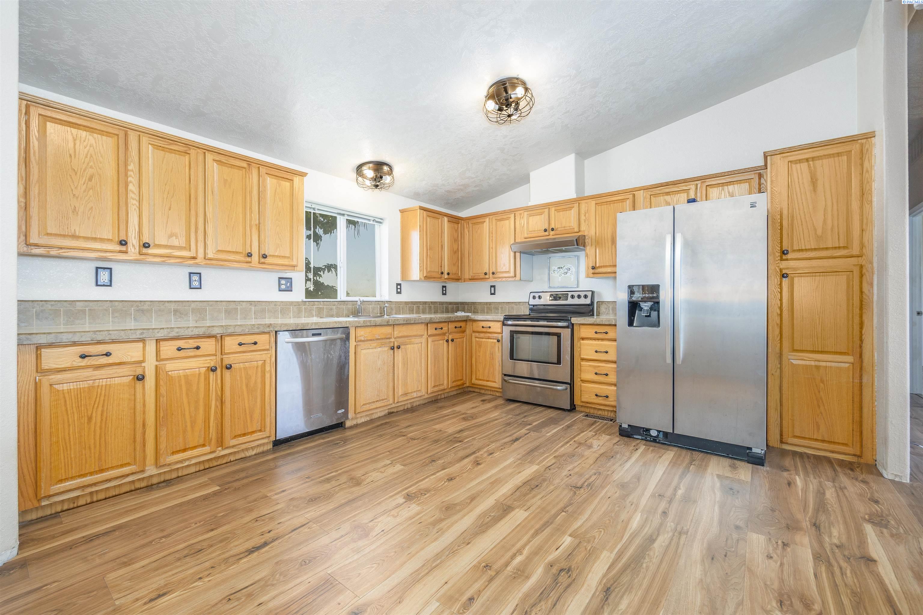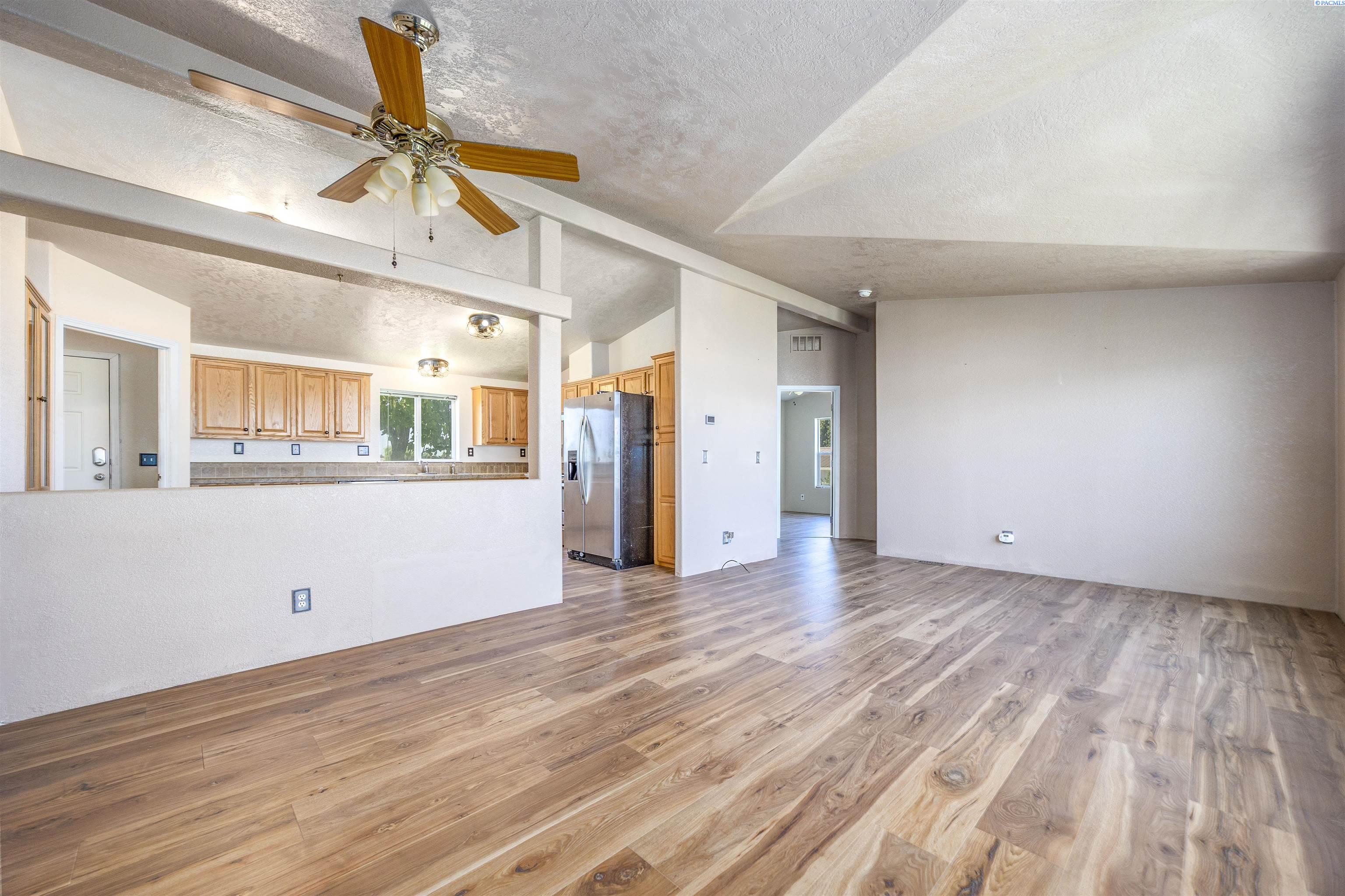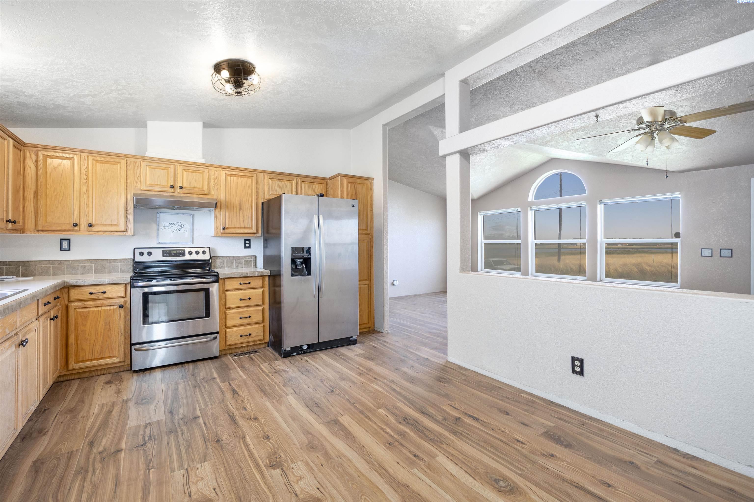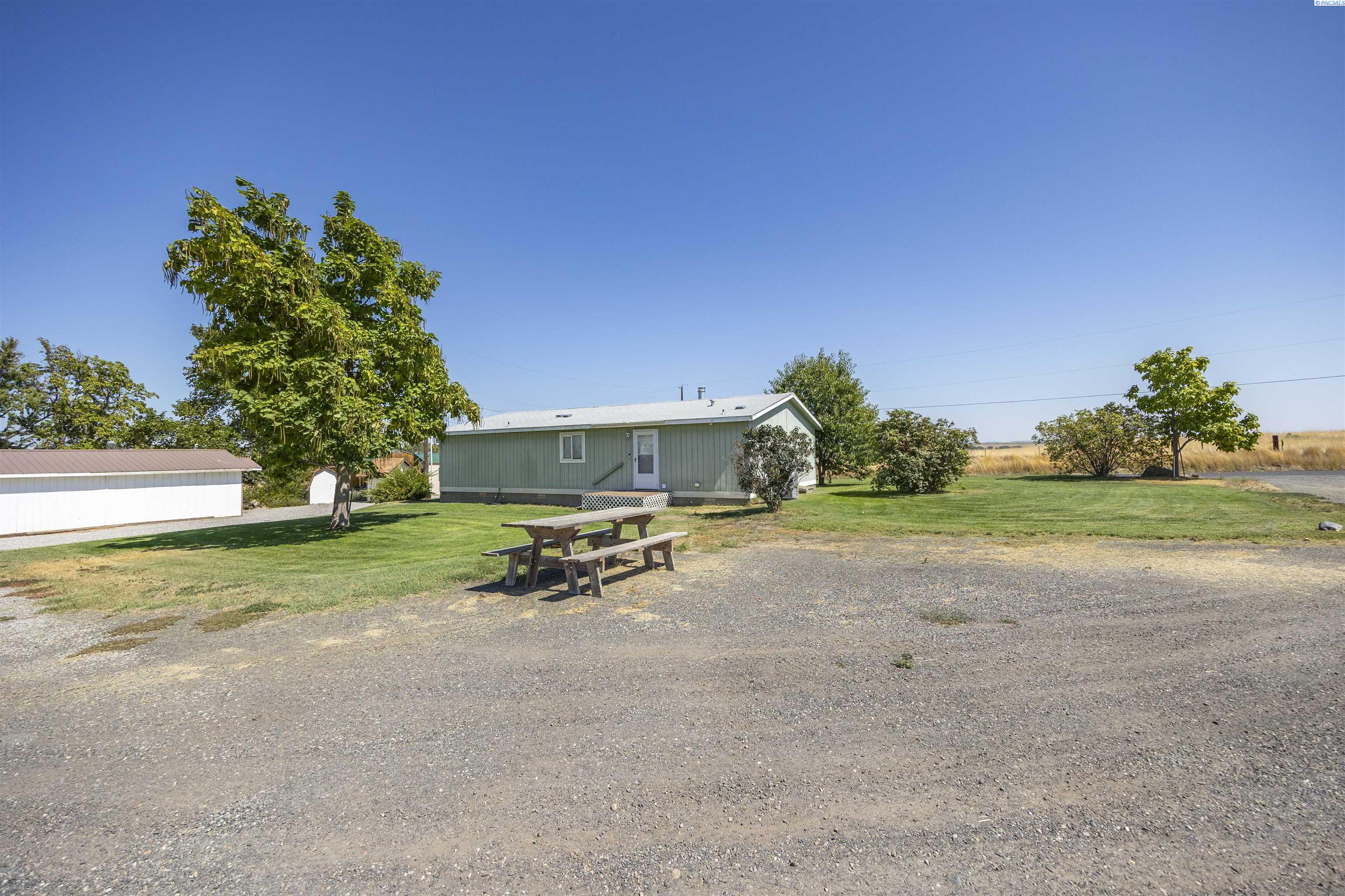 MLS# 286907 Enjoy breathtaking views of the water and the McNary National Wildlife Refuge from this affordable Burbank property! This well maintained manufactured home offers 1,296 square feet of comfortable living space, featuring 3 bedrooms and 2 bathrooms. Inside, you'll find vaulted ceilings that create an open and airy atmosphere, large windows to take in the views, durable laminate flooring, ample extra storage, ceiling fans, and the comfort of central heating and air conditioning. The kitchen offers plenty of cabinetry and counter space for meal prep, room for your table, and features a pass-through to the living area. Spacious primary suite with a large closet and private bathroom. Situated on a spacious 0.38-acre lot, the property includes a detached workshop and mature trees. Additional highlights include open RV parking for your convenience. Take advantage of nearby boat launches, fishing spots, and a variety of outdoor activities, making this home an ideal retreat for nature lovers and adventure seekers alike.