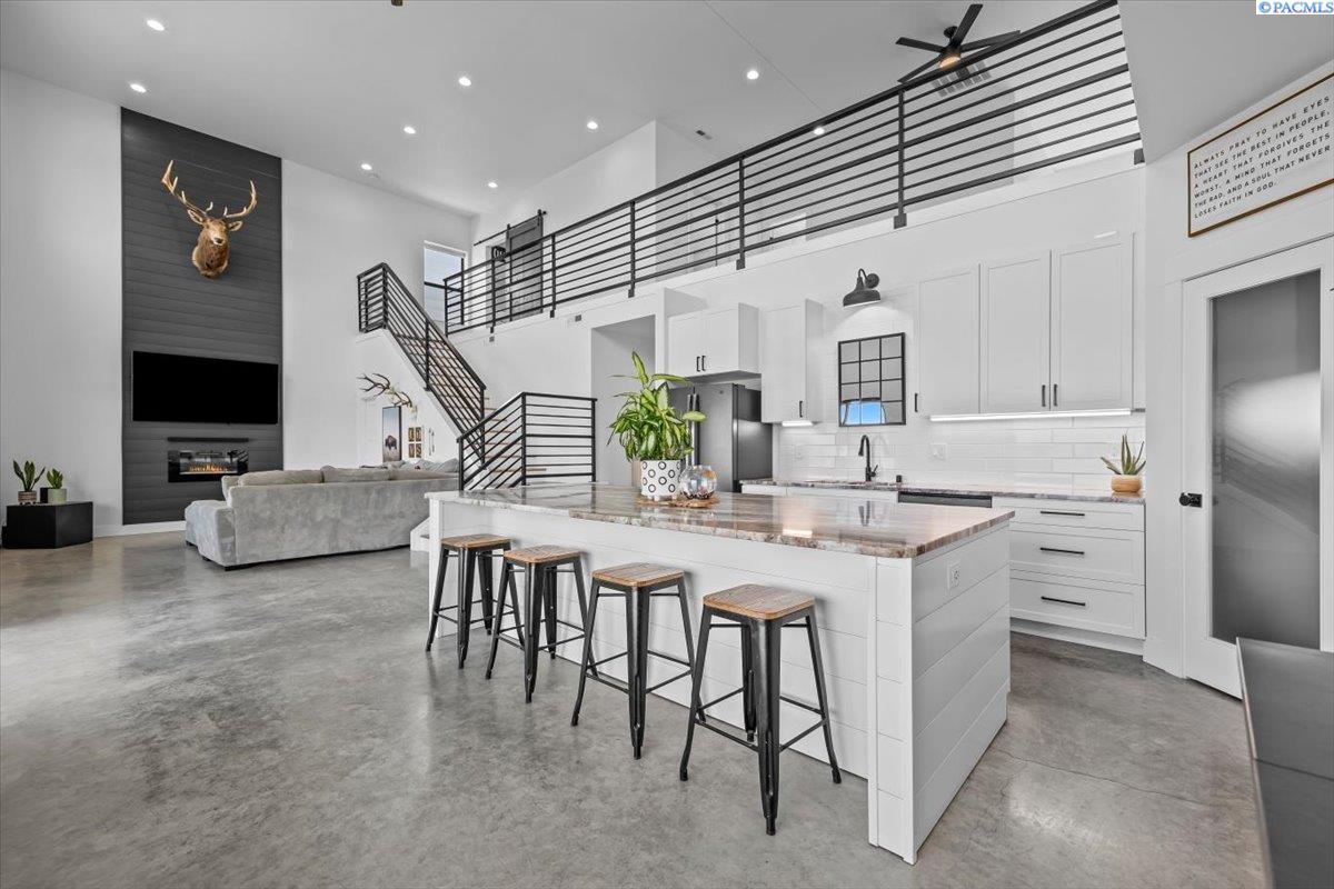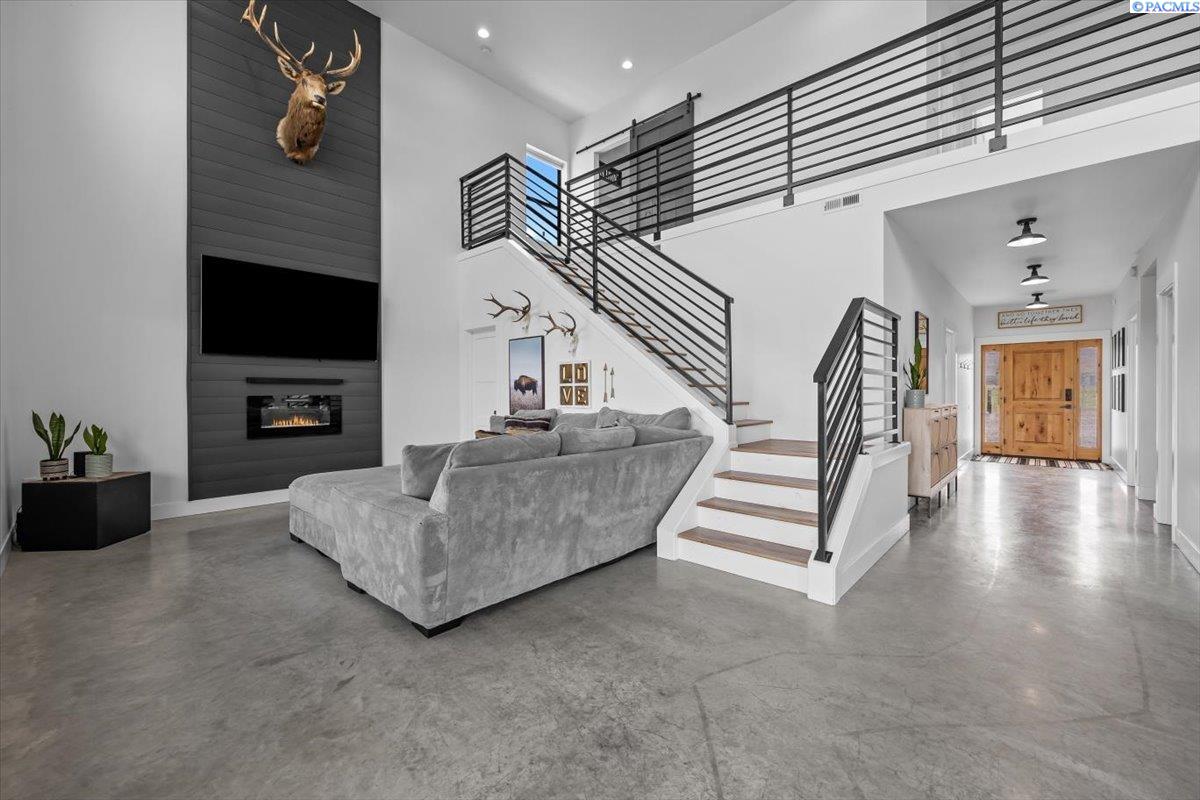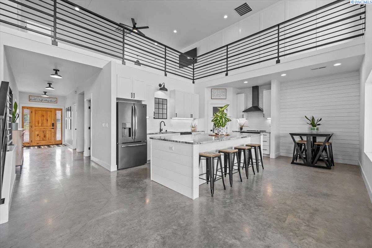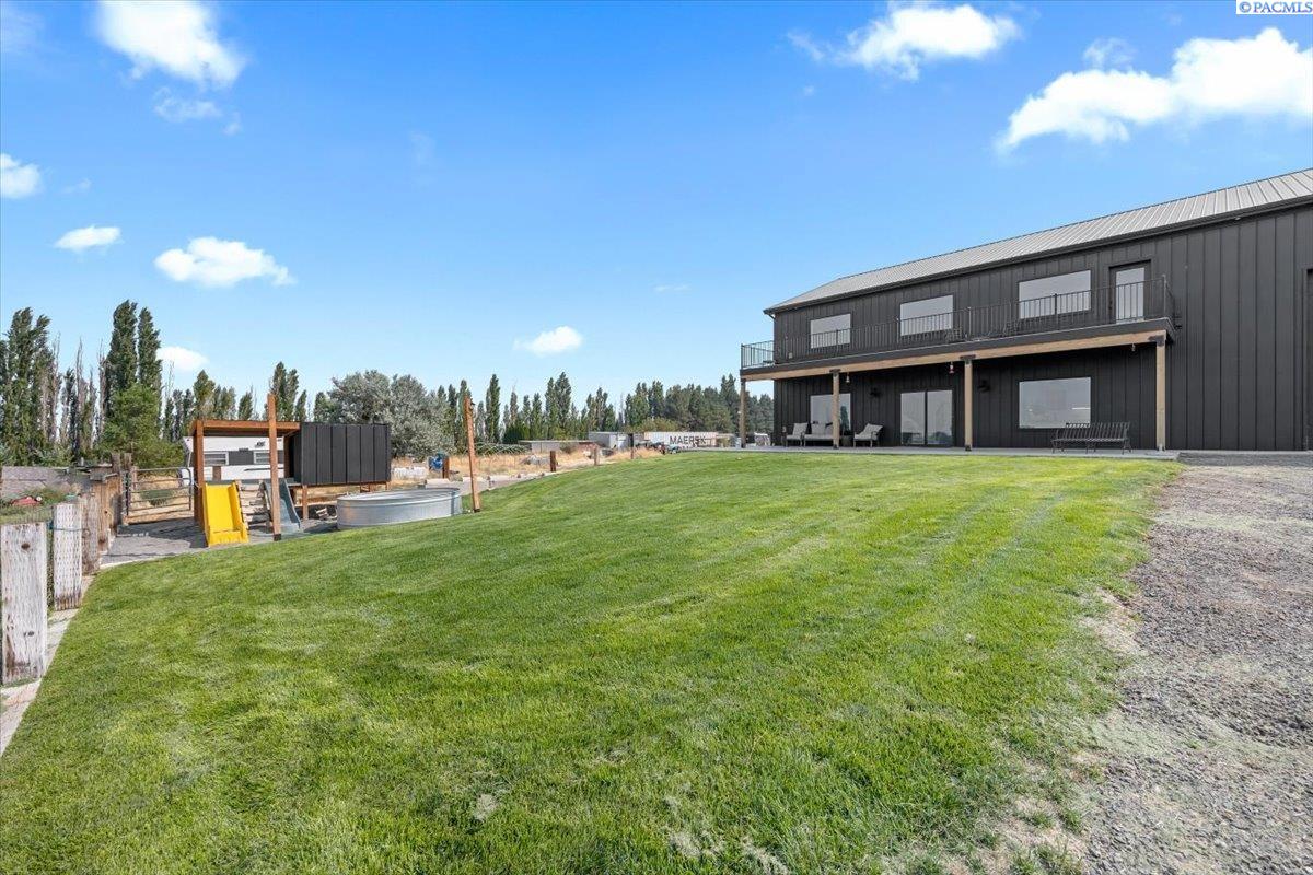 MLS# 287101 SELLER OFFERING 2:1 BUYDOWN or 2% CLOSING COSTS. Welcome to this one of a kind custom 2020 built Barndominium, situated on 9 acres in a Country setting. This home has views of the Mountains and the Columbia River right out it's back yard and even better off of its upper 328 SQ FT elevated upper Balcony. Walking into the home you will see all the love and attention to detail that was put into the 3178 SQ FT of living space. Epoxy floors will greet you right at the entrance of this open Floor plan. With plenty of natural light coming from the large windows and beautiful color choices you can see things have been carefully chosen to make this home a one of a kind. White cabinets thru-out and Full white Tile backsplash in the Kitchen as well as a large kitchen island. Master is situated on the main level along with one other bedroom, laundry room and the main bathroom. As you head upstairs you will see another laundry room, 2 bedrooms, bathroom and a nice open space that can be used as an extra living room. As you take a walk back downstairs you will find the massive 1884 SQ FT garage/shop with a few Tandem 14-foot garage doors, drinking fountain and even a Basketball hoop to be able to play inside. This large area can store an RV, boat and even host parties inside of it. But wait.... there is more. There is a 528 SQ FT exercise room that is included into the total square footage of the home with a partially finished bathroom and a separate 444 SQ Ft partially completed area that could be used as an in laws area or apartment in the upper level. Outside has a Chicken coop with 6 chickens, kids playhouse and plenty of space for your Livestock. Property is Irrigated and ready for you.There are so many more amazing things about this property that you will need to get inside to see it all. Call your agent today to get you in this one of a kind home!!