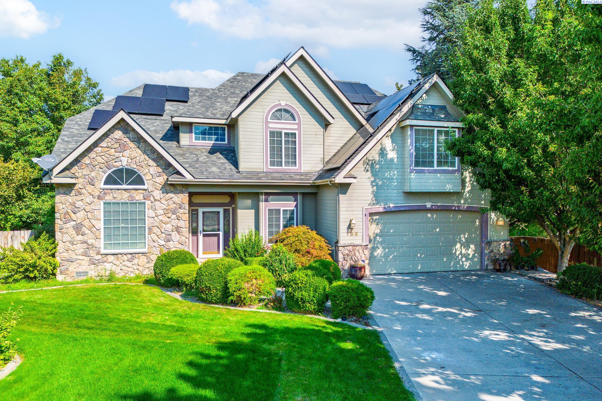 MLS# 287136 Tucked away in South Richland, this 4 BR, 4 BA two-story is the kind of home that makes life feel easy and fun. First off, the setting is a dreamâmature landscaping, solar panels to help with energy costs, and a park with walking path access right next to you. And the cherry on top? No HOA! Youâre just minutes from schools, amenities, and restaurantsâso convenience is built right in. Step inside and youâll find all the spaces that make a house feel like home. Thereâs a bright office that practically begs for plants, a formal dining room perfect for dinners or holiday parties, and a handy half bath nearby. The living room is the cozy heart of it all, with built-in shelves and a gas fireplaceâwhether itâs football Sundays, holiday gatherings, or a quiet night in, this room fits it all. The kitchen and dining combo is open and cheerful, with plenty of storage in the built-in pantry (and yes, the fridge is staying!). Head outside and youâve got a fully fenced backyard shaded by mature trees, an open patio for BBQs, and a fire pit just waiting for sâmores and late-night conversations. The garage is more than just a garageâitâs a two-car plus tandem, which means extra space for storage, projects, or all your toys. Upstairs is where this home really shines. The primary suite is a true retreat with light-filled windows, a cozy nook for coffee or reading, a massive walk-in closet, and a spa-like bathroom featuring dual sinks, a jetted tub, and a separate shower. Two of the bedrooms are connected by a stylish Jack & Jill full bathâperfect for kids, guests, or anyone who loves a little convenience. And the fourth bedroom has its very own full bathroom, giving everyone their own space and privacy.This home is packed with charm, full of thoughtful details, and ready for its next adventureâmaybe with you!