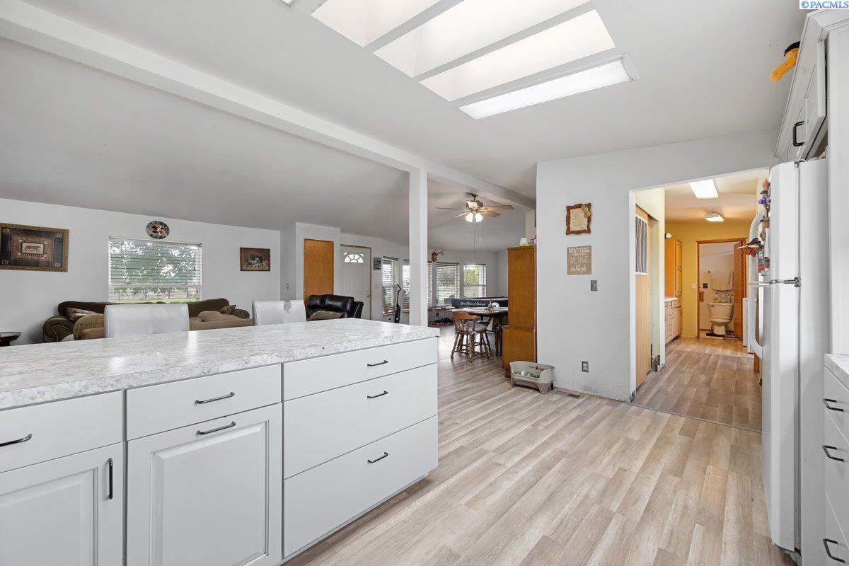 MLS# 287198 Step inside to 1,809 sq. ft. of inviting living space, featuring a freshly remodeled kitchen and newer flooring throughout that give the home a crisp, contemporary feel. The spacious primary suite is a true retreat, complete with a large walk-in closet and a bathroom designed for relaxation. A brand-new water heater adds efficiency and peace of mind.Love hobbies or need extra storage? The huge shop is ready for all your projects, toys, or even a home-based business. Outdoors, youâll find plenty of room to breatheâwhether itâs gardening, raising chickens, or simply soaking in the quiet beauty of your surroundings. With a covered patio and wide-open skies, itâs the perfect place to enjoy your mornings or unwind at sunset.This home checks all the boxes: modern updates, generous space, and that hard-to-find country charmâall while being just a short drive from the conveniences of Kennewick. Donât miss your chance to call it yours!