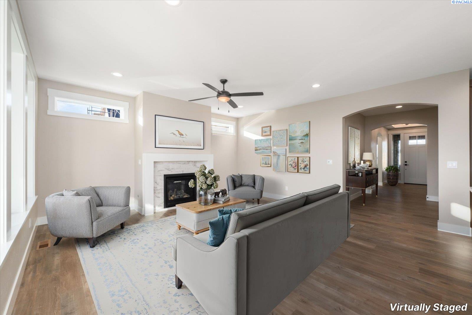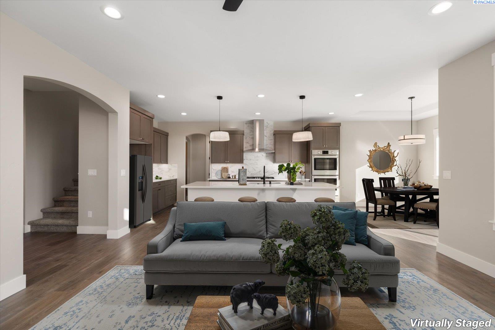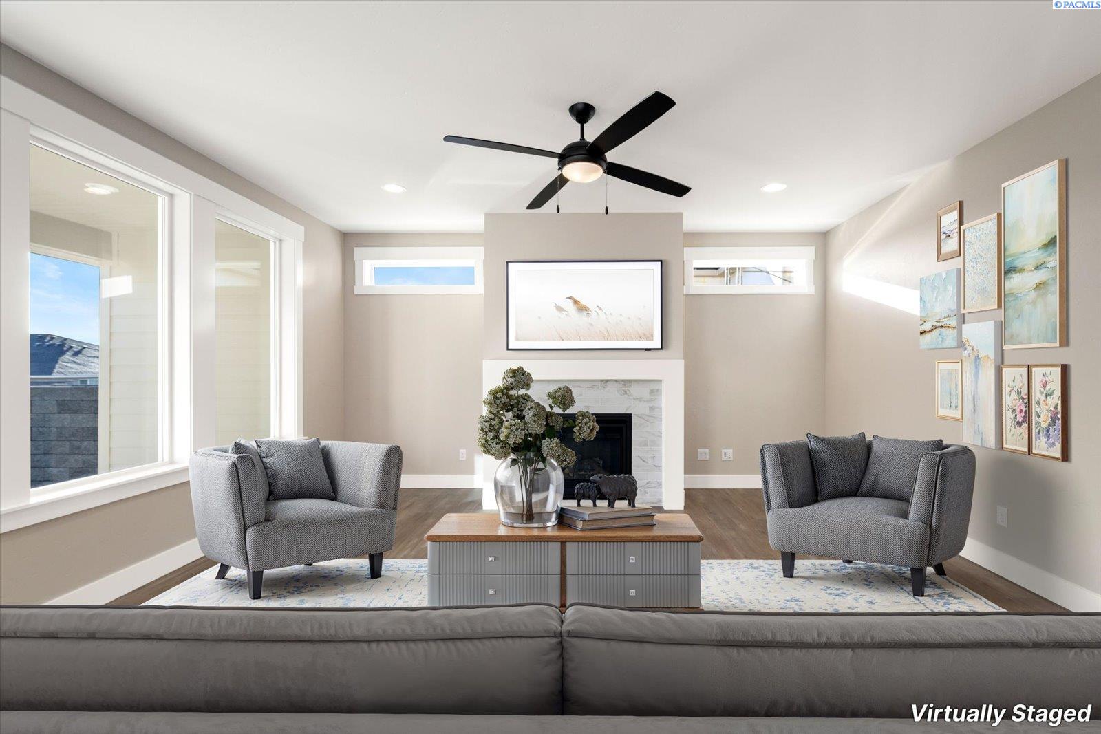 MLS# 287247"$10,000 builder incentive available on this home â use it toward a rate buy-down and/or closing costs." Welcome to The Cascade with Bonus Room by Riverwood Homes!This stunning 2,571 sq. ft. single-level home with an upstairs bonus suite is located in the highly sought-after Siena Hills community. Designed with both style and comfort in mind, it sits in a vibrant neighborhood featuring walking paths, a community park, and a pool.The Cascade offers 3 spacious bedrooms and 3.5 bathrooms, including a private bathroom in the bonus roomâperfect for a guest suite, home office, or media space. Its open floor plan highlights a gourmet kitchen with Bosch stainless steel appliances, quartz countertops, a wall oven, and a large walk-in pantry. Soft-close drawers and luxurious tile flooring in the bathrooms and laundry room add everyday convenience.The master suite is a true retreat, featuring a coffered ceiling, ceiling fan, a beautifully tiled shower, and generous storage. Throughout the home, youâll find elegant touches like hand-textured walls and wood-wrapped windows. A cozy fireplace with stone or tile surround adds warmth and charm to the family room.Built for efficiency and peace of mind, this home includes a gas tankless water heater, solar panel system, and conditioned crawl space. Outside, the covered patioâpre-wired for ceiling fansâoverlooks a professionally landscaped yard with sprinklers, sod, shrubs, and decorative rock accents.The oversized 3-car garage is equipped with an EV plug, providing plenty of space and future-ready convenience.Whether entertaining guests or enjoying quiet evenings at home, The Cascade with Bonus Room combines modern design with practical features in a premier location.For directions, simply enter âSiena Hills â Richland, WAâ into Google Maps and come explore this beautiful new community!