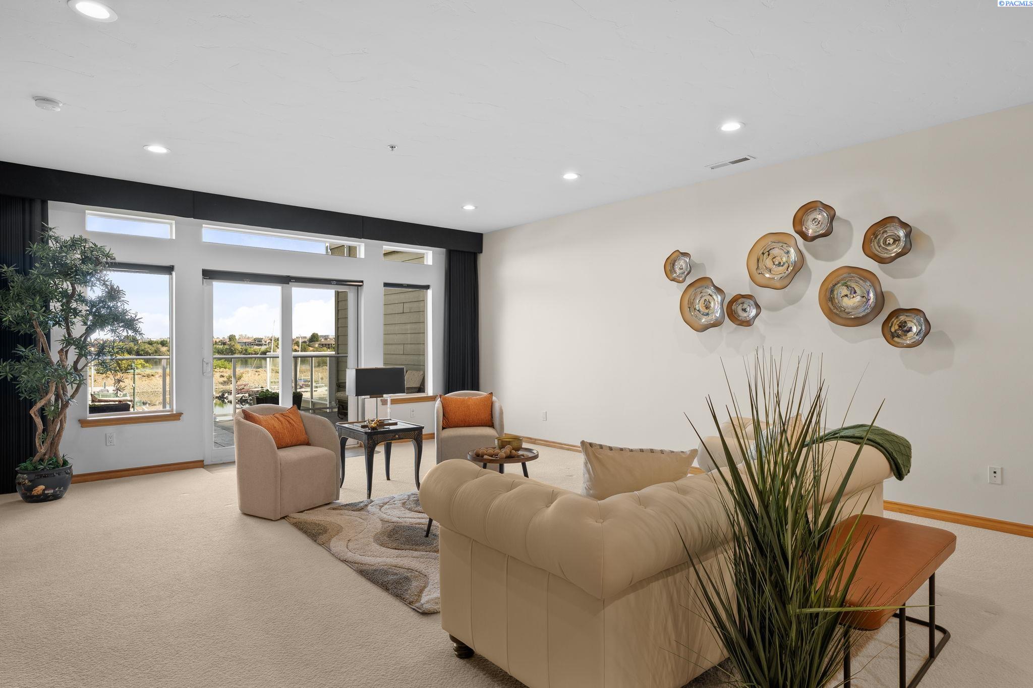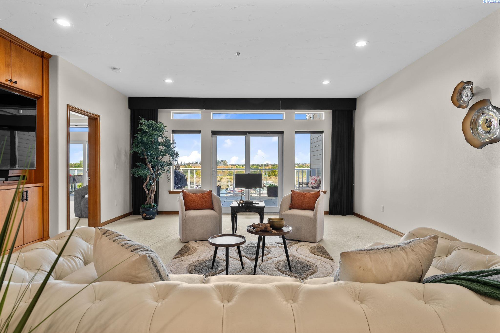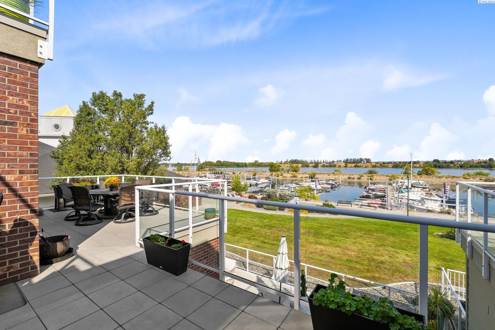 MLS# 287394 Welcome to The Moorings at Columbia PointâTri-Cities premier destination with million-dollar views! This exclusive, single-level end unit condo offers unmatched marina and riverfront views, upscale finishes, and a lifestyle that blends comfort with class. Step inside and feel the elegance immediately. A welcoming entry features coffered ceilings with cove lighting, setting the tone for the thoughtful design throughout this spacious 3-bedroom plus flex room home. The gourmet kitchen is a true showstopper, featuring quartz counters, full-height tile backsplash, under-cabinet lighting, and a premium appliance package including a Filli Bertazzoni Italia induction cooktop, GE Cafe double wall ovens, wine fridge, and compactor. The oversized walk-in pantry includes a fridge/freezer combo. Designed for effortless entertaining, the kitchen opens to a casual dining area, a formal dining room, and an expansive great room with a tile surround gas fireplace and custom built-ins. Sliding glass doors lead to a private waterfront balcony with automatic blinds, offering panoramic views of the Columbia River. The ownerâs retreat offers private balcony access and a spa-style bathroom featuring a soaking tub, full-tile walk-in shower with bench, bidet, oversized vanity with granite counters, and a custom walk-in closet. The two secondary bedrooms also feature large custom walk-in closets, while the family room offers versatility and could be a dedicated home office, study, or guest room. A huge 12x11 storage room is tucked off the oversized laundry room (washer and dryer included), and the home is complete with a central vacuum system and an attached two-car garage below with additional storage. Additional highlights include- direct elevator access directly to the condo, golf course next door, and close proximity to shopping, parks, and freeway access. Youâll also enjoy access to the 9.5-mile paved riverfront trail just below. This low-maintenance, lock-and-leave lifestyle is everything youâve been waiting for. Experience luxury waterfront living, where every detail has been carefully curated, and million-dollar views greet you daily. Plus, you're just a short walk to Tri-Cities top restaurants including Anthonyâs, Buddâs, and Perch Restaurant. Donât miss your chance to own a slice of waterfront paradiseâschedule your private tour today!