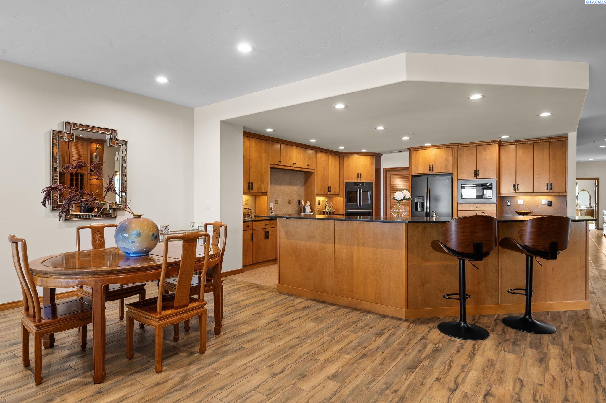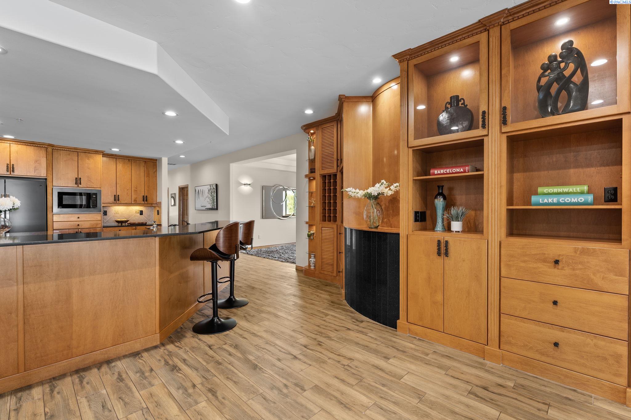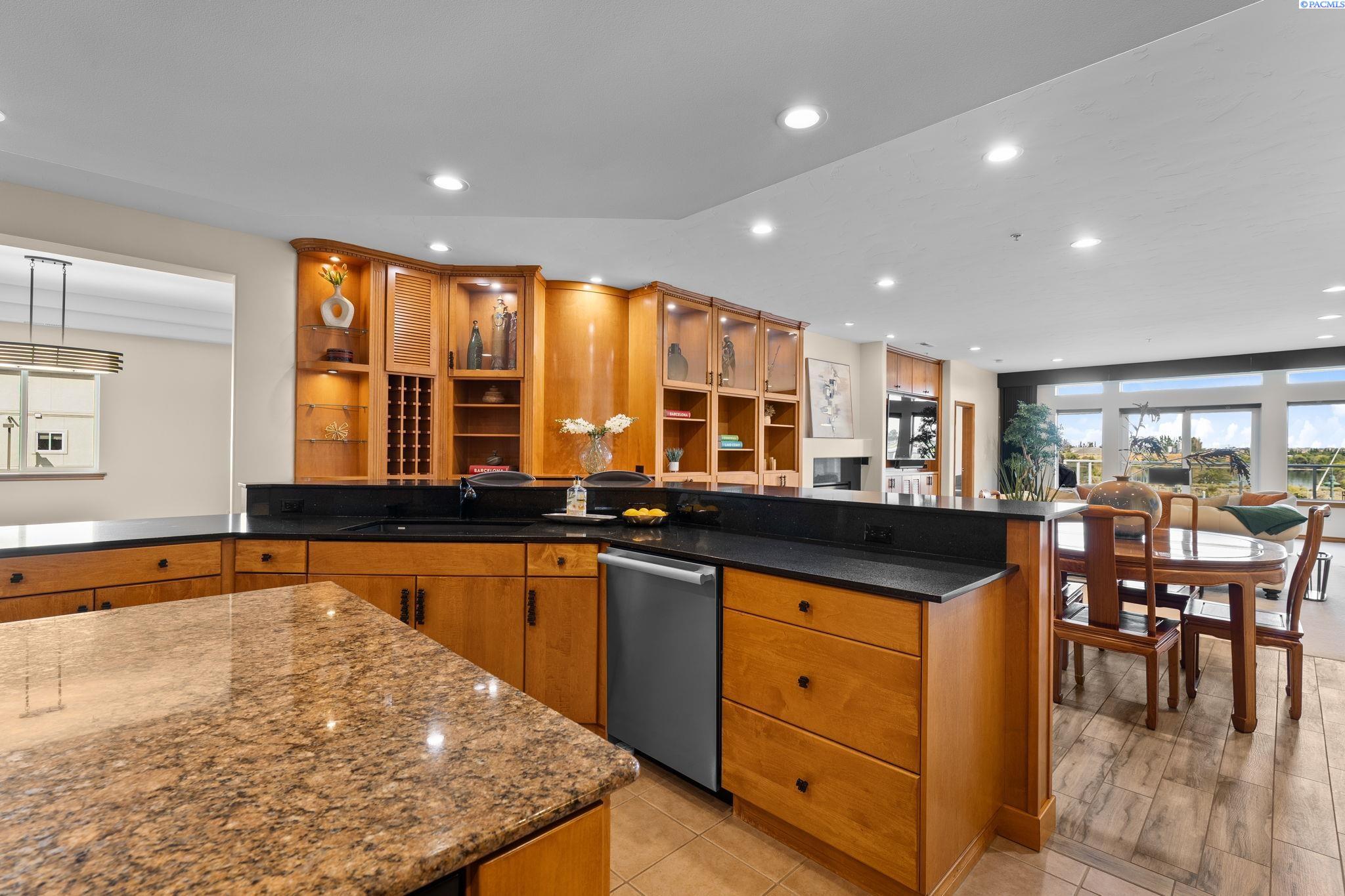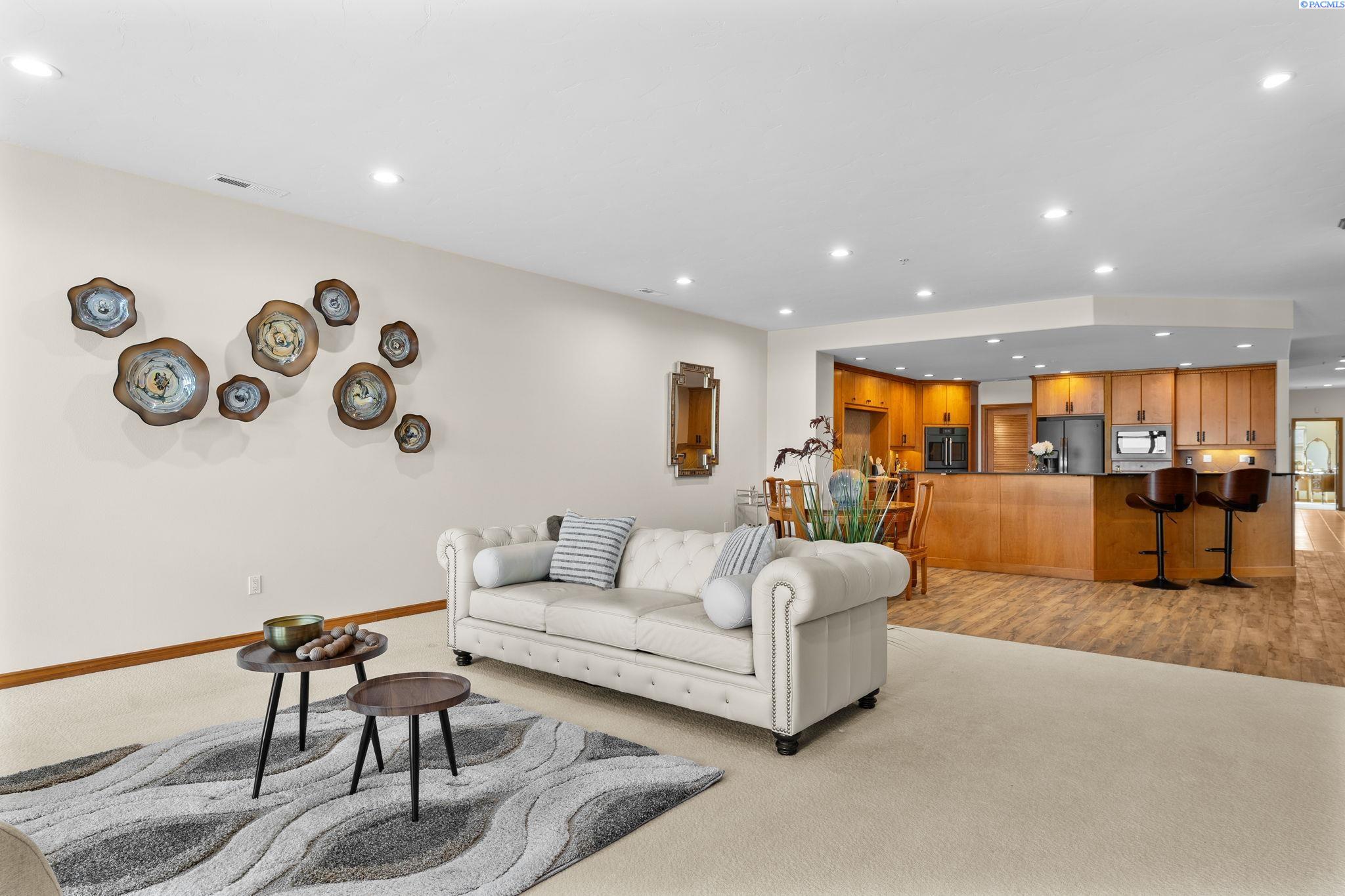 MLS# 287394 Welcome to The Moorings at Columbia PointâTri-Cities premier destination with million-dollar views! This exclusive, single-level end unit condo offers unmatched marina and riverfront views, upscale finishes, and a lifestyle that blends comfort with class. Step inside and feel the elegance immediately. A welcoming entry features coffered ceilings with cove lighting, setting the tone for the thoughtful design throughout this spacious 3-bedroom plus flex room home. The gourmet kitchen is a true showstopper, featuring quartz counters, full-height tile backsplash, under-cabinet lighting, and a premium appliance package including a Filli Bertazzoni Italia induction cooktop, GE Cafe double wall ovens, wine fridge, and compactor. The oversized walk-in pantry includes a fridge/freezer combo. Designed for effortless entertaining, the kitchen opens to a casual dining area, a formal dining room, and an expansive great room with a tile surround gas fireplace and custom built-ins. Sliding glass doors lead to a private waterfront balcony with automatic blinds, offering panoramic views of the Columbia River. The ownerâs retreat offers private balcony access and a spa-style bathroom featuring a soaking tub, full-tile walk-in shower with bench, bidet, oversized vanity with granite counters, and a custom walk-in closet. The two secondary bedrooms also feature large custom walk-in closets, while the family room offers versatility and could be a dedicated home office, study, or guest room. A huge 12x11 storage room is tucked off the oversized laundry room (washer and dryer included), and the home is complete with a central vacuum system and an attached two-car garage below with additional storage. Additional highlights include- direct elevator access directly to the condo, golf course next door, and close proximity to shopping, parks, and freeway access. Youâll also enjoy access to the 9.5-mile paved riverfront trail just below. This low-maintenance, lock-and-leave lifestyle is everything youâve been waiting for. Experience luxury waterfront living, where every detail has been carefully curated, and million-dollar views greet you daily. Plus, you're just a short walk to Tri-Cities top restaurants including Anthonyâs, Buddâs, and Perch Restaurant. Donât miss your chance to own a slice of waterfront paradiseâschedule your private tour today!