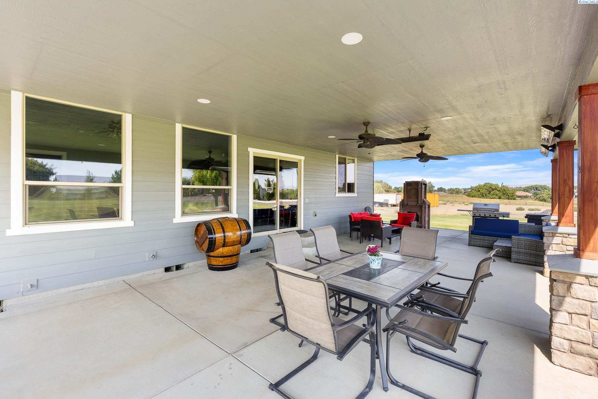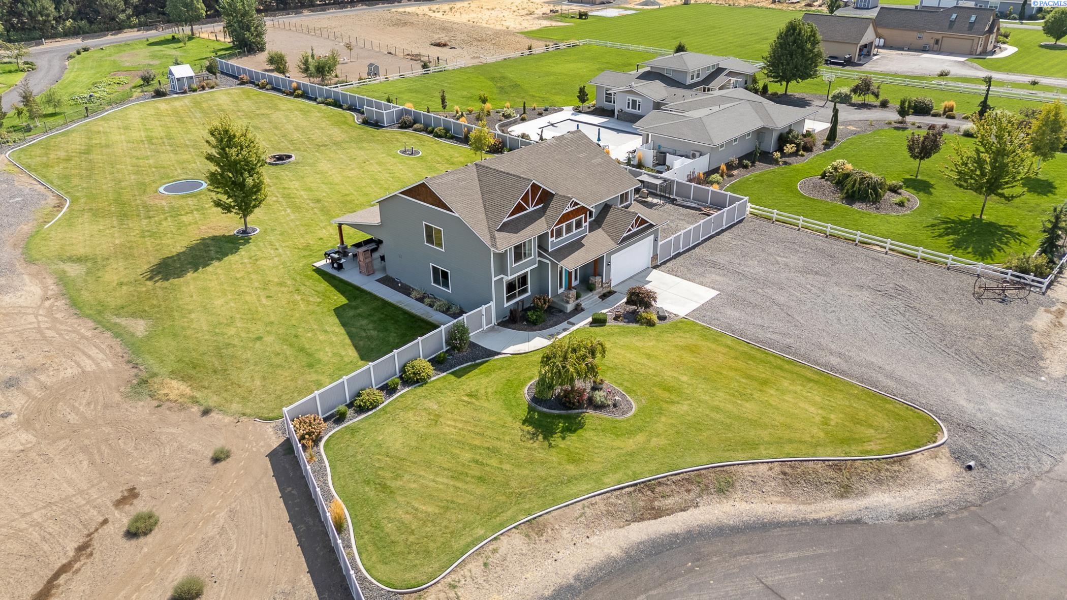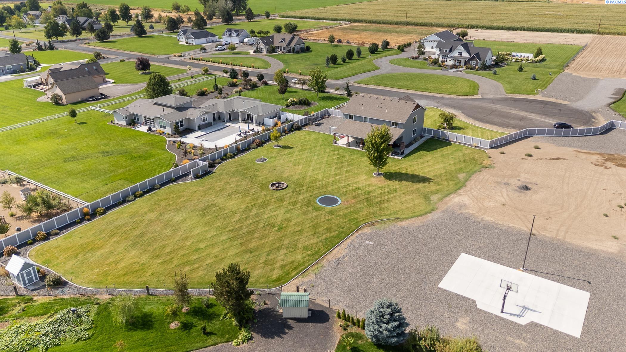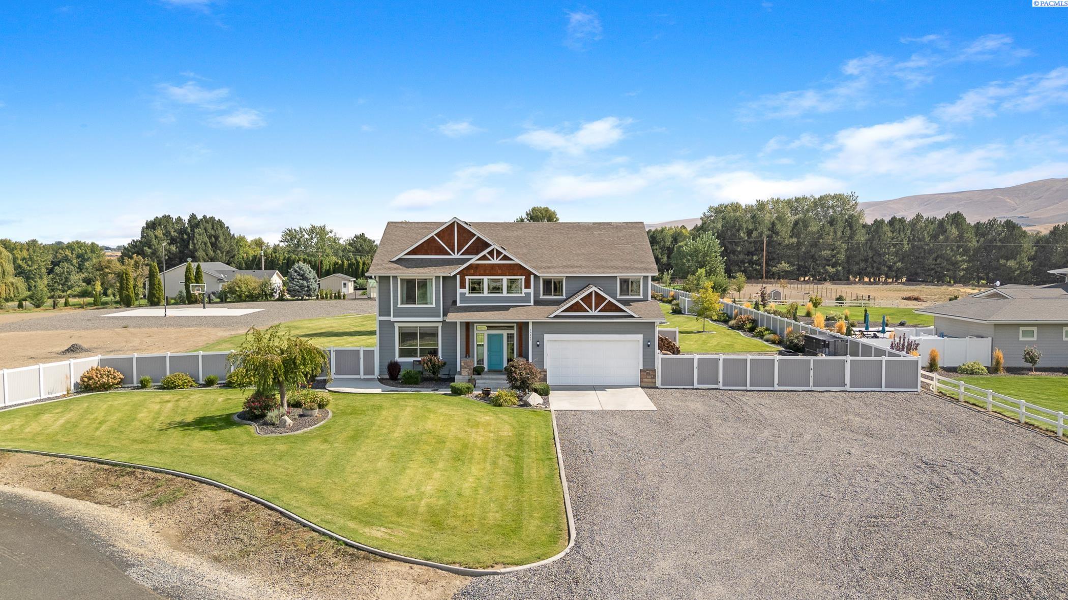 MLS# 287454 Quietly tucked away in a cul-de-sac within one of Prosserâs most desirable neighborhoods, this stunning home boasts more than 3,000 sq. ft. of living space on nearly 3 acres. Enjoy peekaboo views of the Yakima River and Mt. Adams from your fully fenced property, complete with a freshly painted exterior featuring custom cedar plank accents. Outdoor amenities are designed for year-round enjoyment â a spacious patio with built-in heaters, a fire pit, sport court with lighting, underground sprinklers, and even a chicken coop.Inside, youâll find 4 bedrooms plus a dedicated office with custom furniture that stays with the home, 3 bathrooms, and an open kitchen with stainless steel appliances. Unique features abound, including a hidden wine cellar, massive primary suite with soaking tub, upstairs laundry, and an epoxied 3-car garage with custom cabinetry. This home blends comfort, function, and style in a truly exceptional setting.