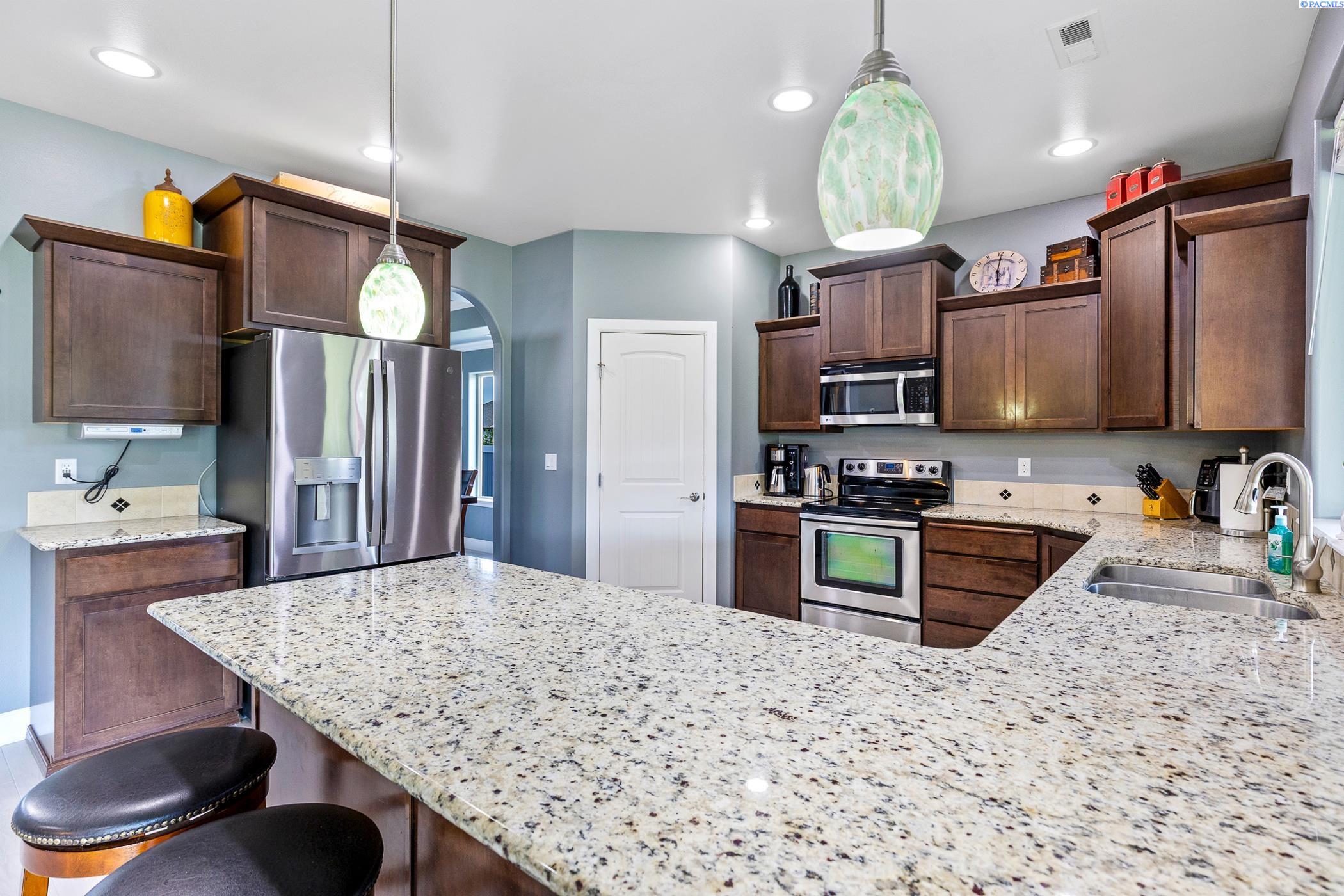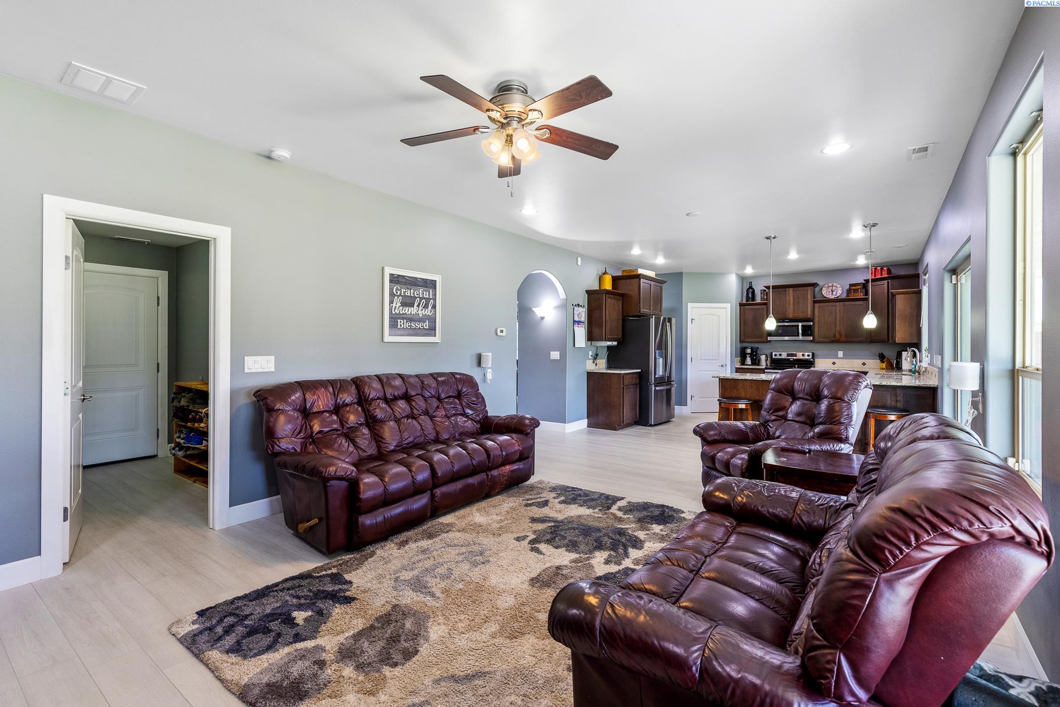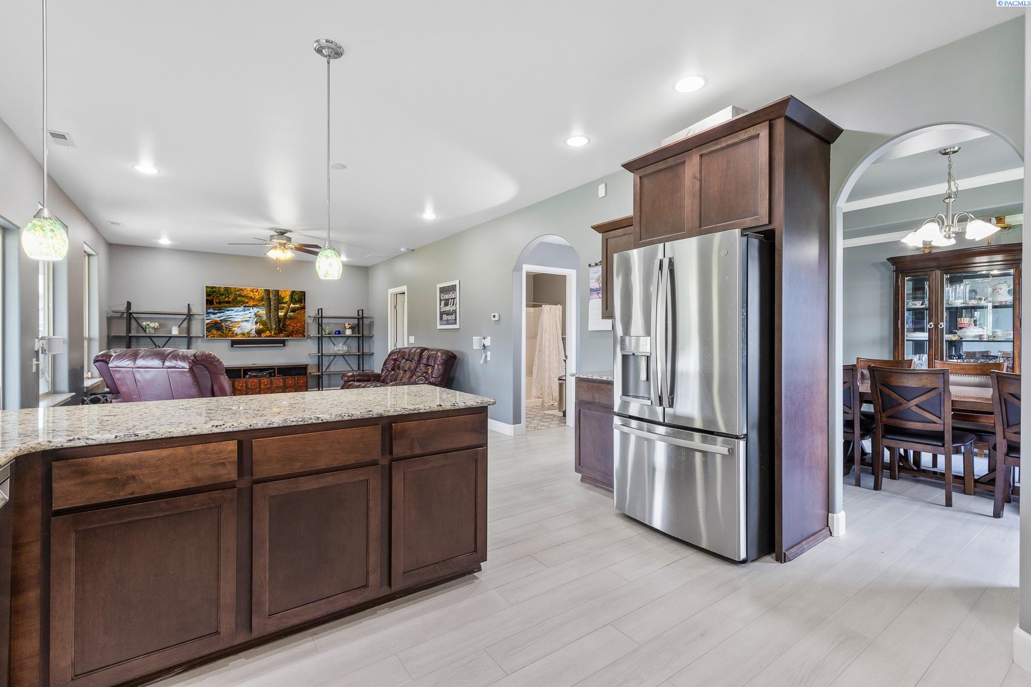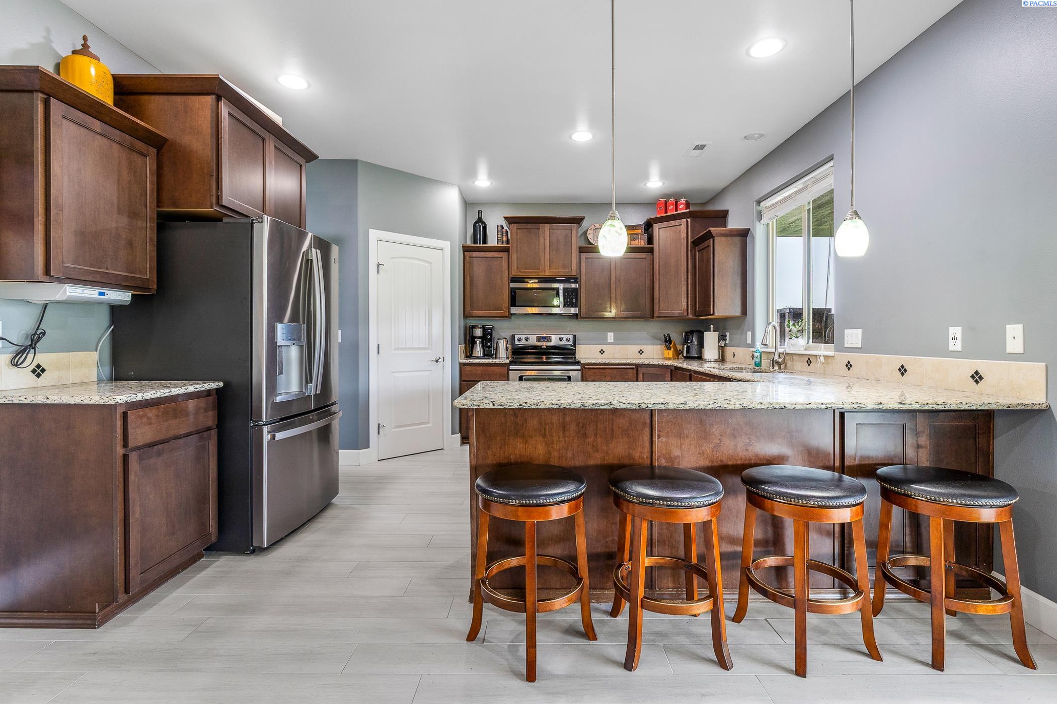 MLS# 287454 Quietly tucked away in a cul-de-sac within one of Prosserâs most desirable neighborhoods, this stunning home boasts more than 3,000 sq. ft. of living space on nearly 3 acres. Enjoy peekaboo views of the Yakima River and Mt. Adams from your fully fenced property, complete with a freshly painted exterior featuring custom cedar plank accents. Outdoor amenities are designed for year-round enjoyment â a spacious patio with built-in heaters, a fire pit, sport court with lighting, underground sprinklers, and even a chicken coop.Inside, youâll find 4 bedrooms plus a dedicated office with custom furniture that stays with the home, 3 bathrooms, and an open kitchen with stainless steel appliances. Unique features abound, including a hidden wine cellar, massive primary suite with soaking tub, upstairs laundry, and an epoxied 3-car garage with custom cabinetry. This home blends comfort, function, and style in a truly exceptional setting.