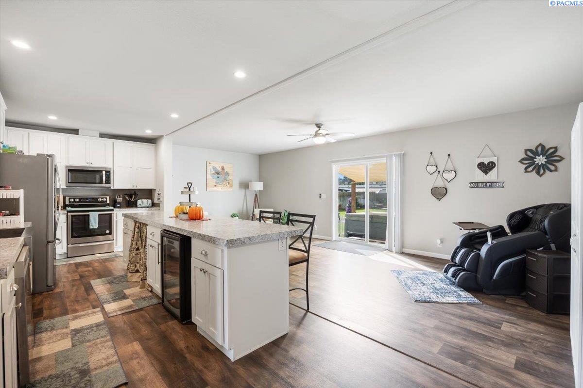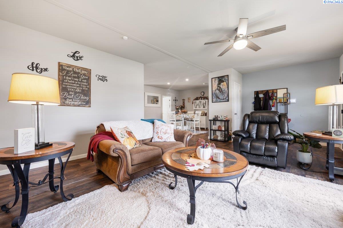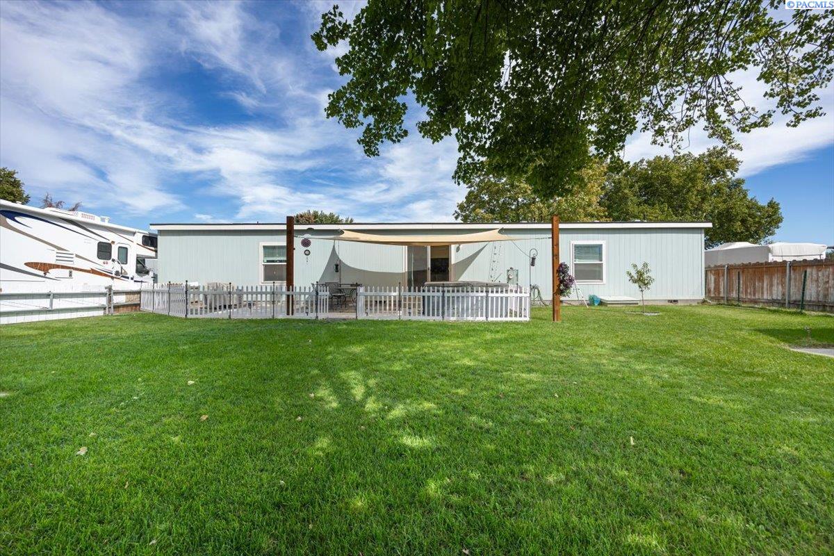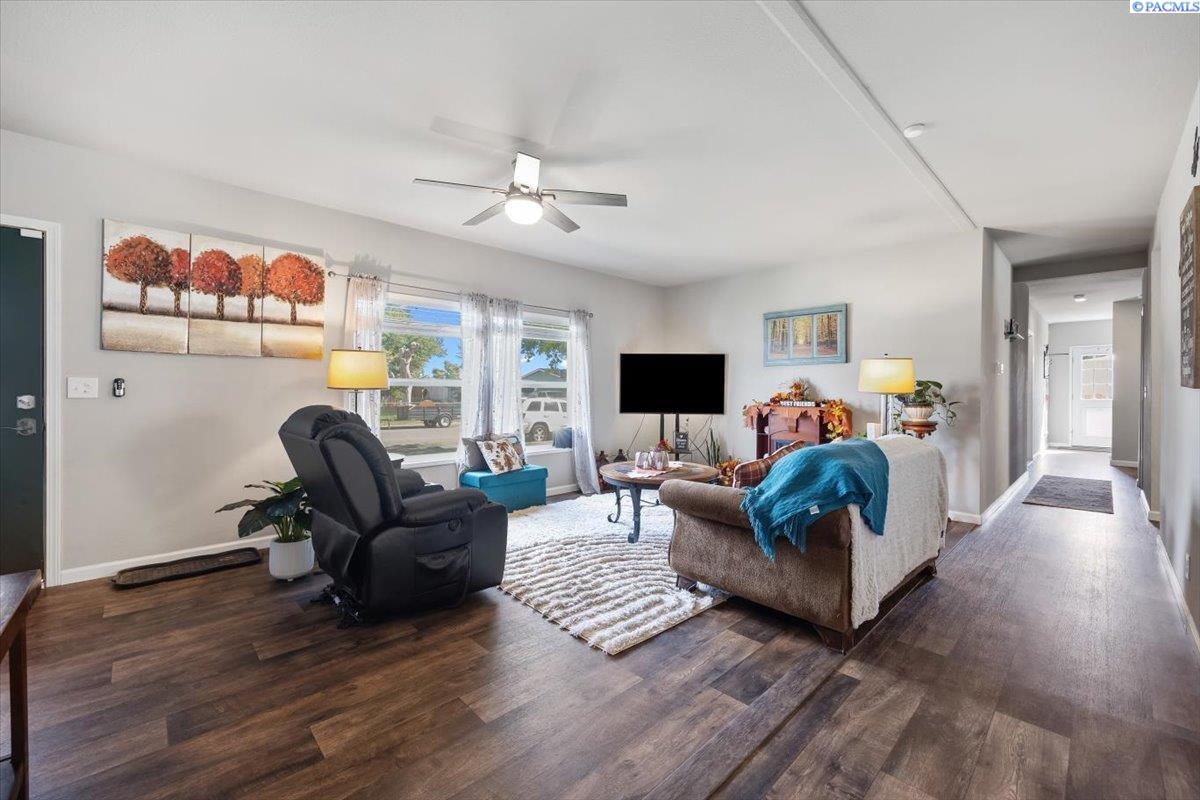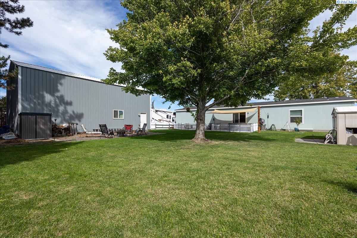 Set on over a third of an acre in West Richland, this stunning 2020-built Triple-Wide Home offers 2,567 square feet of thoughtfully designed living space. Inside, youâll find two spacious living rooms, an open-concept kitchen with stainless steel appliances (including a newer dishwasher), an oversized island, white cabinetry, canned lighting, and ceiling fans throughout. The home features five bedrooms and three full bathrooms, including a private primary suite, as well as a versatile junior suite, that offers flexibility for guests or multigenerational living. The backyard is a true retreat with a lush green lawn maintained by a new sprinkler system, a paved patio perfect for entertaining, and direct access to a 960-square-foot shop with an installed storage loft. Recent updates include city-approved electrical wiring for a hot tub and the installation of a new fire hydrant in the front yard, which may lower insurance costs. Appraised at $484,000 in October of 2023, this home presents an exceptional opportunity to own a spacious, modern property at an incredible value.