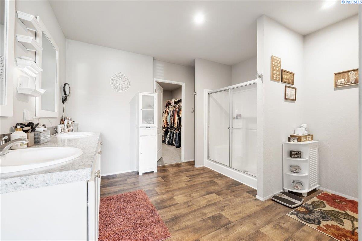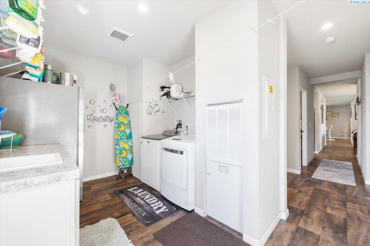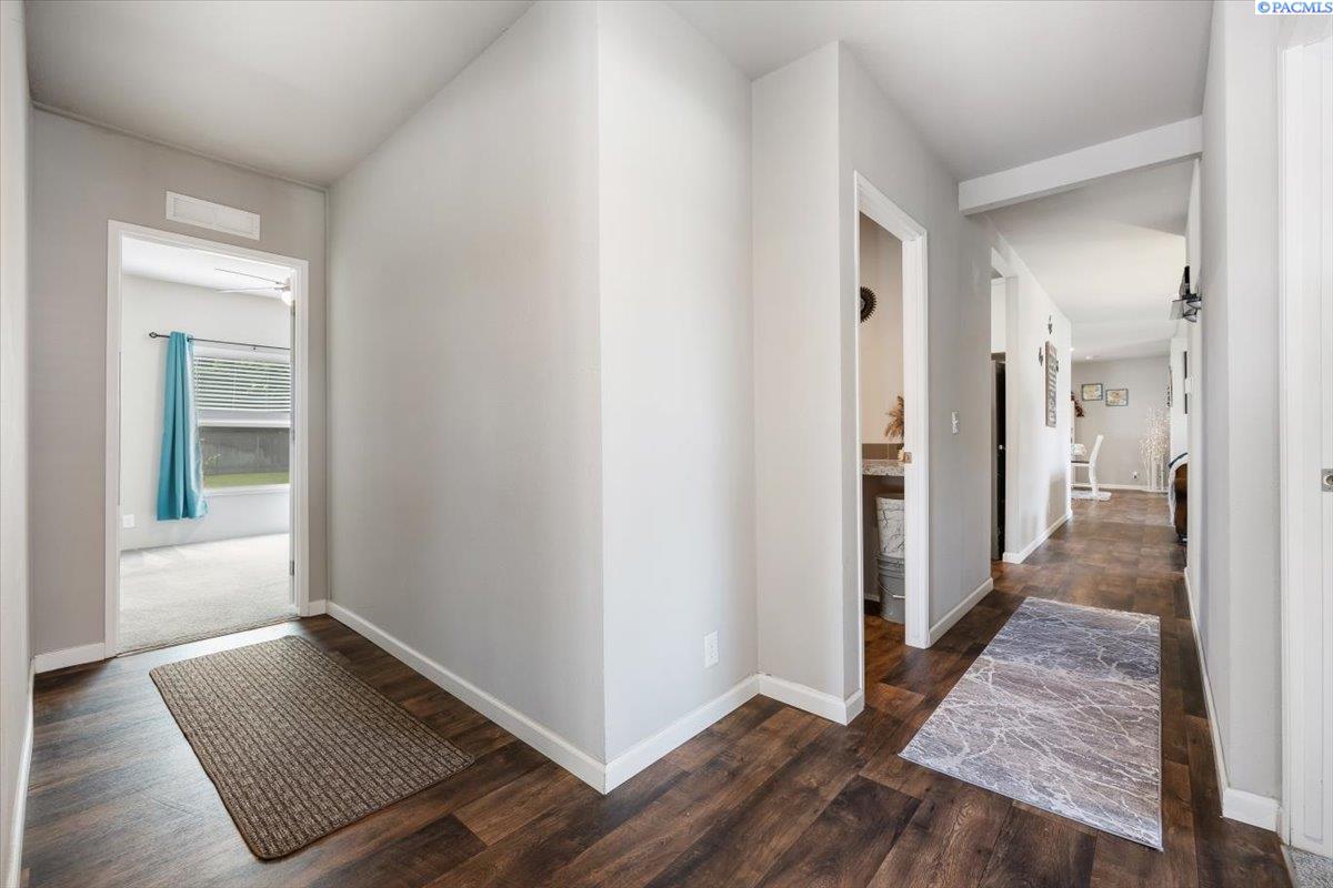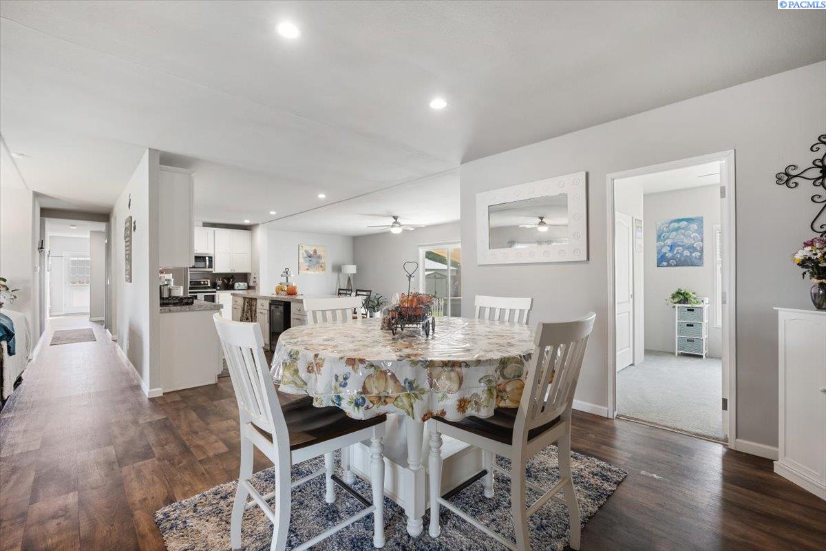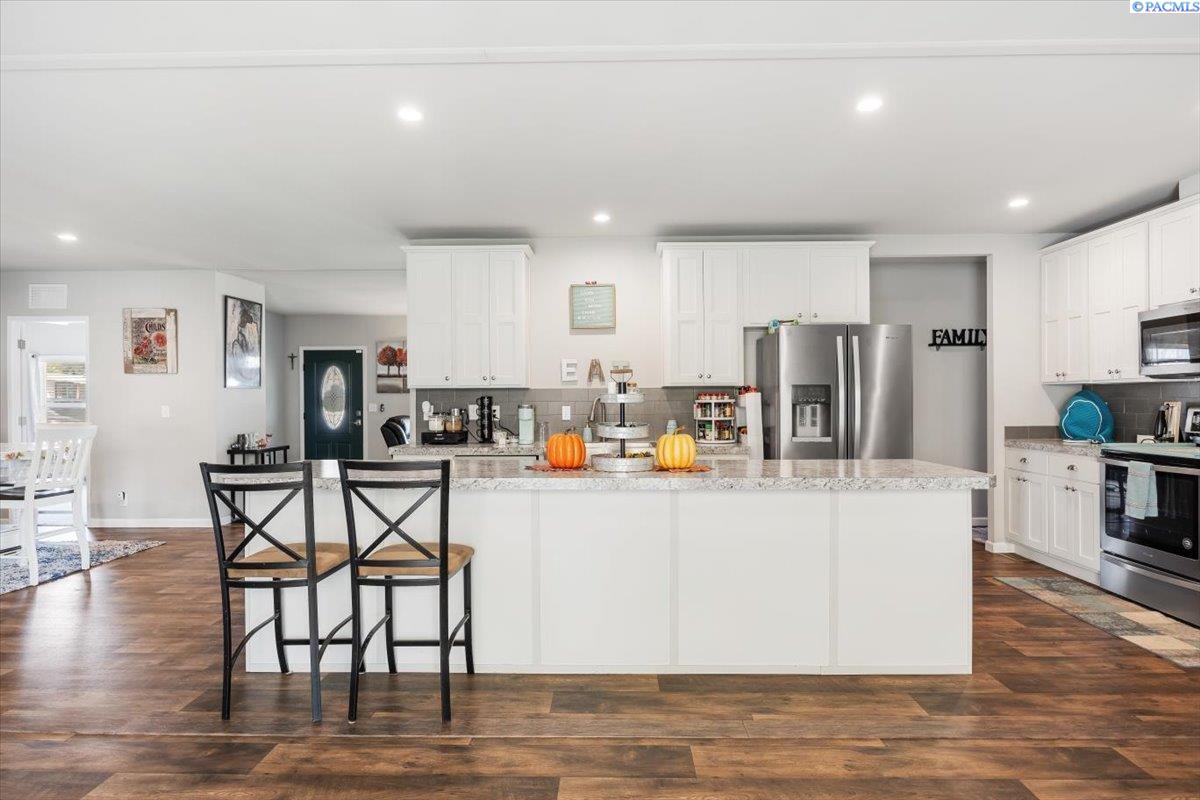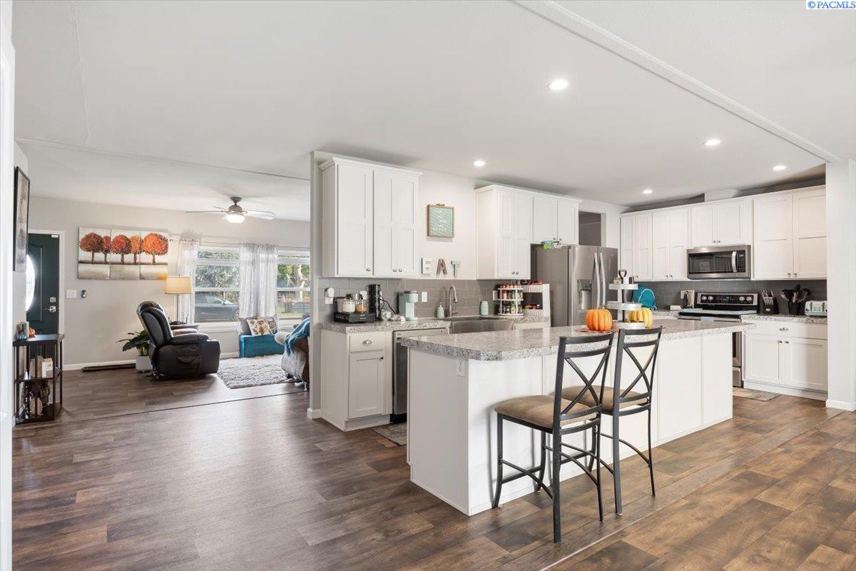 Set on over a third of an acre in West Richland, this stunning 2020-built Triple-Wide Home offers 2,567 square feet of thoughtfully designed living space. Inside, youâll find two spacious living rooms, an open-concept kitchen with stainless steel appliances (including a newer dishwasher), an oversized island, white cabinetry, canned lighting, and ceiling fans throughout. The home features five bedrooms and three full bathrooms, including a private primary suite, as well as a versatile junior suite, that offers flexibility for guests or multigenerational living. The backyard is a true retreat with a lush green lawn maintained by a new sprinkler system, a paved patio perfect for entertaining, and direct access to a 960-square-foot shop with an installed storage loft. Recent updates include city-approved electrical wiring for a hot tub and the installation of a new fire hydrant in the front yard, which may lower insurance costs. Appraised at $484,000 in October of 2023, this home presents an exceptional opportunity to own a spacious, modern property at an incredible value.