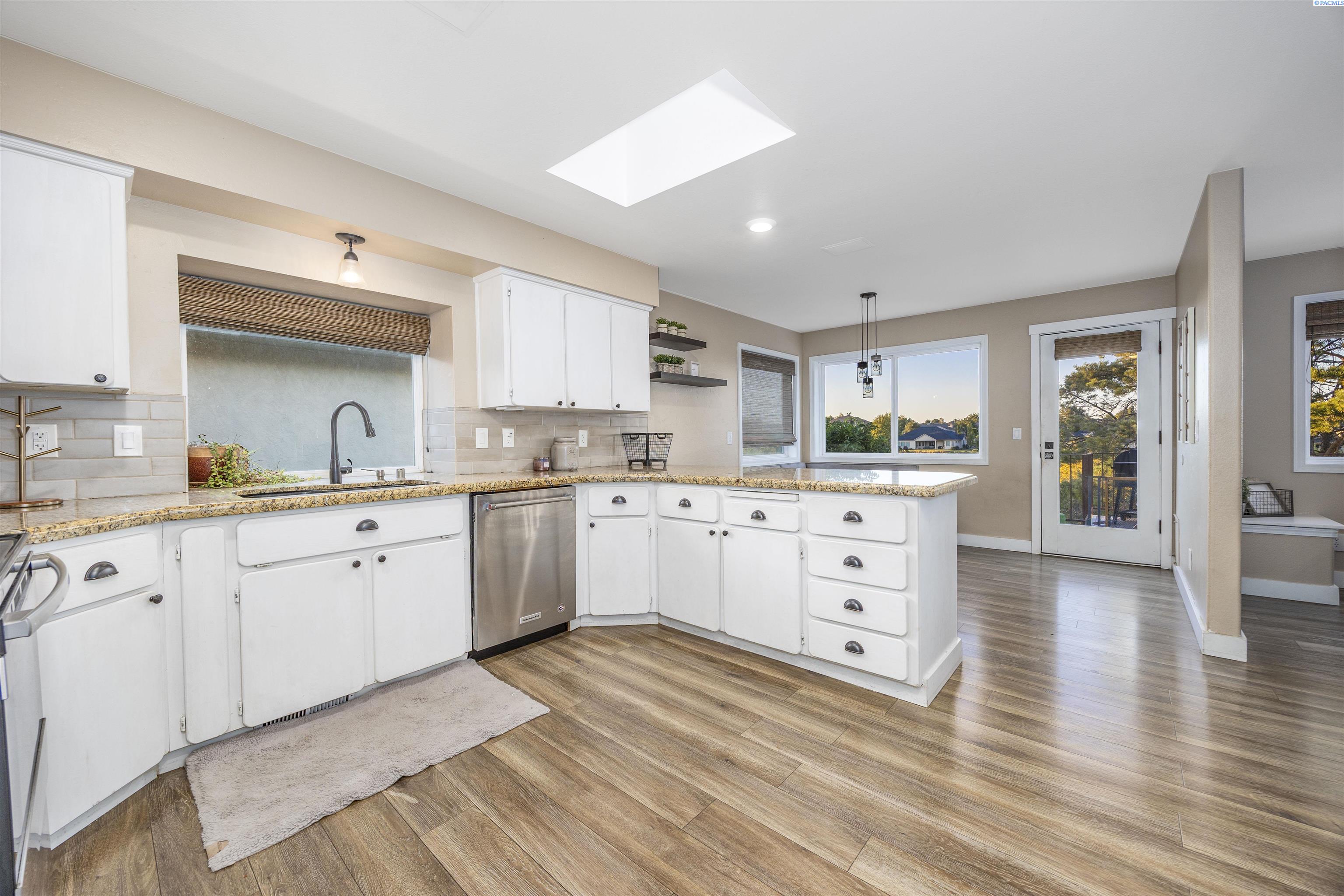 MLS# 287590 NEW PRICE!! GOLF COURSE FRONTAGE! Welcome to this stunning Canyon Lakes home, perfectly positioned on the 1st hole with sweeping golf course views! This beautifully maintained rambler with finished basement offers nearly 4,000 sq. ft. of comfortable living space, featuring 4 bedrooms and 3 bathrooms. Thoughtful updates add confidence and value, including a newer HVAC system (approx. 5â7 years old) and the previous owner installed a 50-year roof ensuring peace of mind for years to come. Step inside to discover beautiful new laminate wood flooring throughout the main level, expansive windows showcasing stunning golf course views, and a fireplace for the upcoming chilly months. An inviting dining area sits just off the living room, offering the perfect space for entertaining or enjoying meals with loved ones. The kitchen has been refreshed with painted cabinets, and a new backsplash, and offers granite countertops, a breakfast bar, and a sunny eating nook with access to the deckâideal for morning coffee. Additional updates include a new front door, custom interior doors with updated hardware, fresh paint, new baseboards, and stylish new light fixtures. Several skylights enhance the bright, airy feel of the home. A craft room with a charming barn-style door provides flexible space that could serve as a den, office, or hobby room. The main-level primary suite features a bay window w/window seat, a spacious closet and bathroom with a soaking tub, shower, and dual-sink vanity. A large laundry room with utility sink, folding counter, and built-in cabinetry adds convenience. On the lower level, a spacious family room with its own fireplace provides ample room to relax or gather, along with additional living space and abundant storage throughout. Outdoor living is equally impressive with a Trex deck that spans across the entire back of the home, ideal for entertaining or soaking in the sunset views. This home boasts a freshly painted exterior, stylish new garage doors, and a convenient lower-level golf cart storage room for easy access to the greens. Nestled on a quiet cul-de-sac in The Villas at Canyon Lakes, this community offers access to a clubhouse, community pool, and tranquil streets with no thru-traffic. With exciting renovations planned at the award-winning Canyon Lakes Golf Course, now is the perfect time to invest in this highly sought-after neighborhood. Donât miss the chance to enjoy spectacular golf course living!
