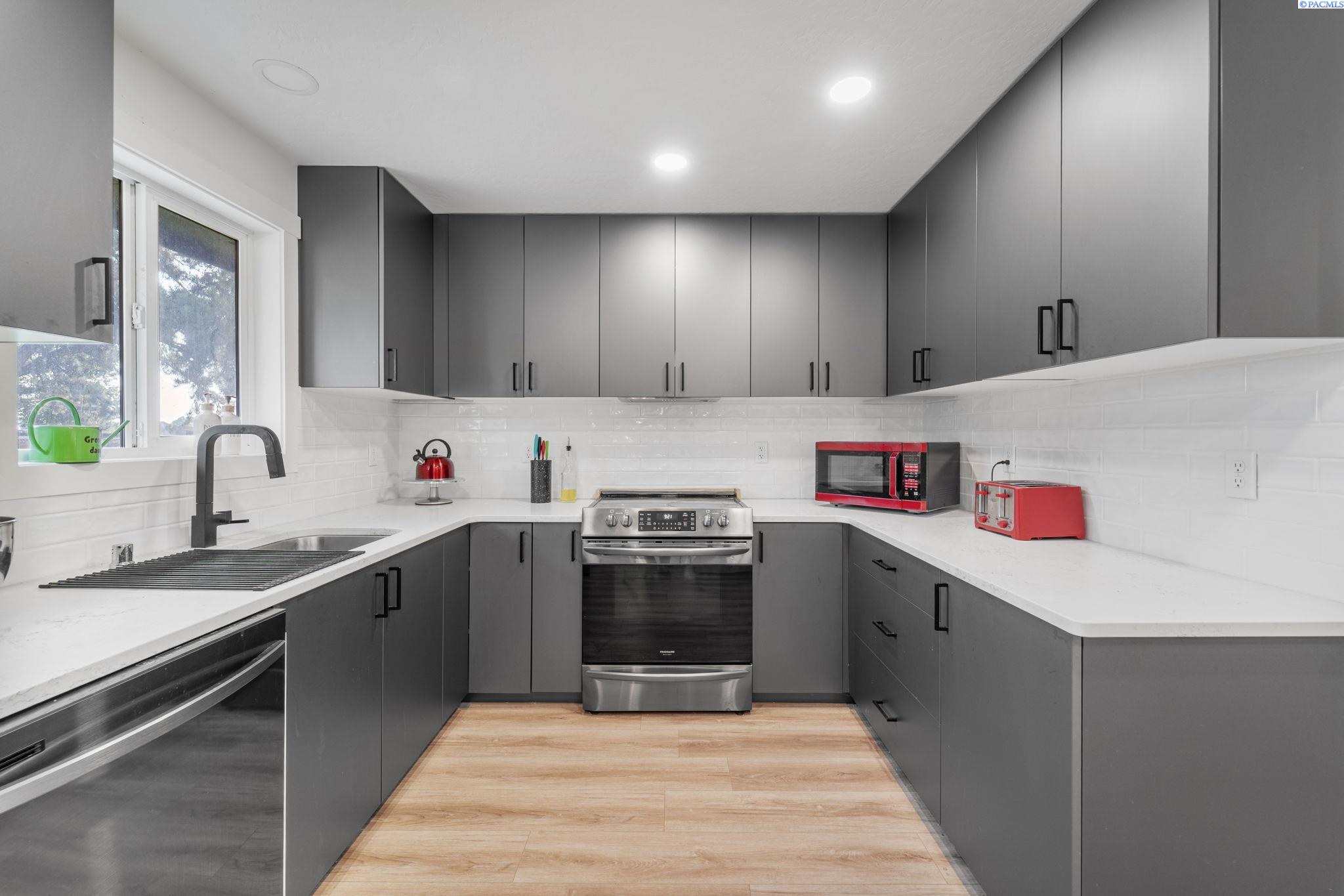 MLS# 287598 Beautifully renovated home from the studs up (2022) with all new plumbing, electric and finishes, seamlessly blending modern comforts with the style and character of midcentury modern construction. You will fall in love with its character as soon as you pull up, with its stylish combination of stained wood and metal siding. This house was designed to turn heads. When you step inside your eye is immediately drawn to the show stopping electric fireplace with its floor to ceiling tile. The fireplace insert adds ambiance and warmth while staying friendly to the environment. The gorgeous wood flooring runs throughout the home tying the space together. The kitchen is as beautiful as it is practical with its oversized island and plenty of built in storage. Whether you are you a culinary savant or just love cooking gadgetry, you will appreciate the walk-in pantry. Just down the hall from the living room are two bedrooms, including the large primary with an oversized ensuite, featuring a walk-in shower with dual rain heads, and modern soaking tub. Downstairs, youâll find a second living area complete with a kitchenette, laundry, office, two additional bedrooms, and a spacious great room with a wood-burning fireplace. With its dedicated entrance, the lower level is perfect for multigenerational living or rental income. Sitting on an oversized .35 acre lot, the backyard is ready to be transformed into your personal oasis, with plenty of space for a garage-mahal, inground pool or mini-homestead this flat lot with easy access is just waiting for your touch. This home is a true one of a kind gem with modern finishes, timeless character, endless possibilities and only blocks from the river and park system.