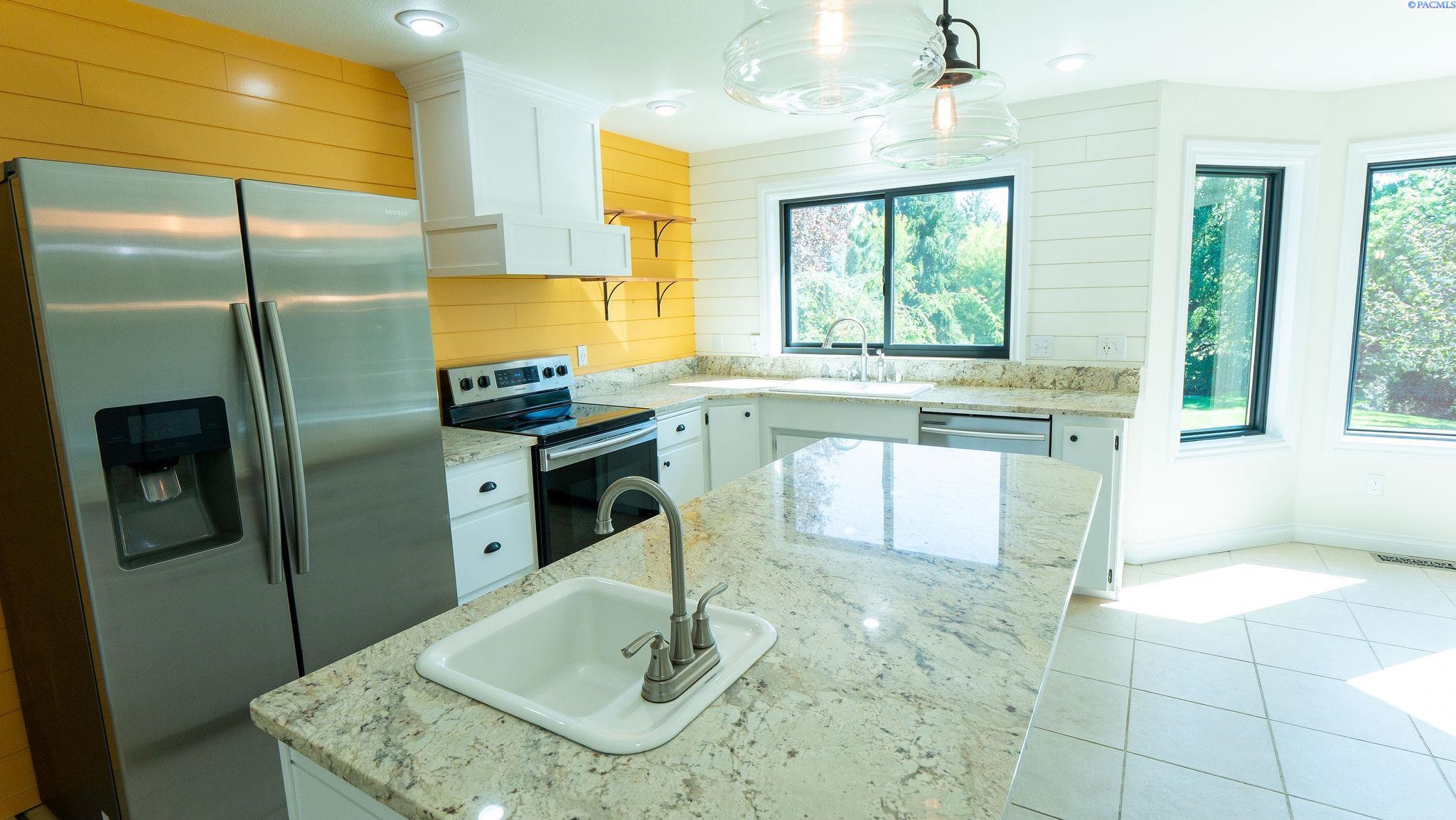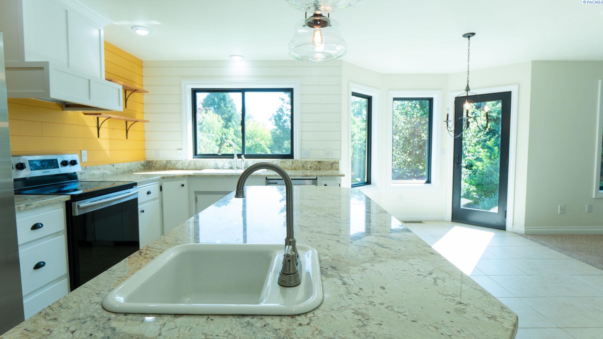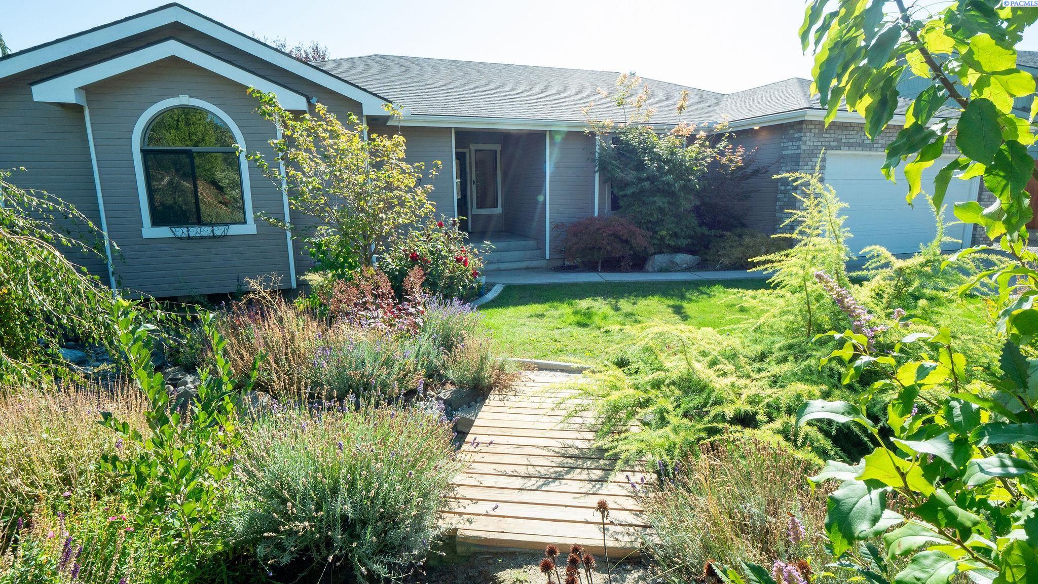 MLS# 287605 Really nice 3 bedroom 2 bath rambler on a HUGE lot in South West Kennewick! Located just west of South Vancouver Street. This home offers 2034 sq ft of living space, 3 bedrooms including a large primary suite and 2 full baths. 2 separate living spaces include a front living room and a great room off the kitchen. Newer black framed windows accent the interior and exterior of the home. Formal dining is extra special with custom bookcases to create a very intimate space. Kitchen is farmhouse chic with ship lap accent wall behind the range oven, custom hood vent, stone sink with bay window overlooking the private grounds of this nearly 3/4 of an acre lot. This is such a secluded setting. You will find many varieties spruce and pine trees, and fruit trees! Plenty of garden space and the entire property is irrigated with timed underground sprinklers. There is a large storage shed at the bottom of the lot for tools & lawn mower or storage. Front entry of the home features custom landscape features and the 2 car garage is very spacious. This home has some very nice custom touches that you should come see to appreciate! Home is easy maintenance with central heat & air and it is connected to city water & city sewer. There has been a pre-inspection on this home. Schedule your showing today!