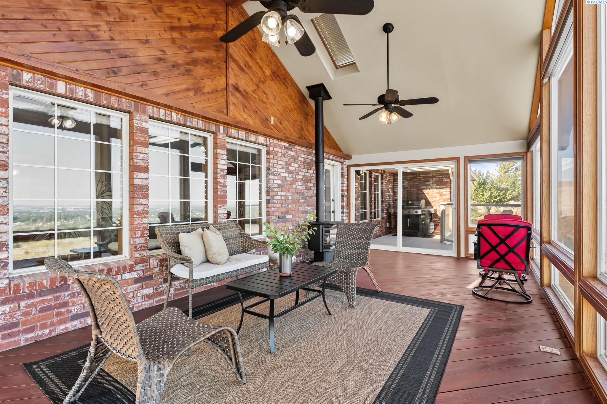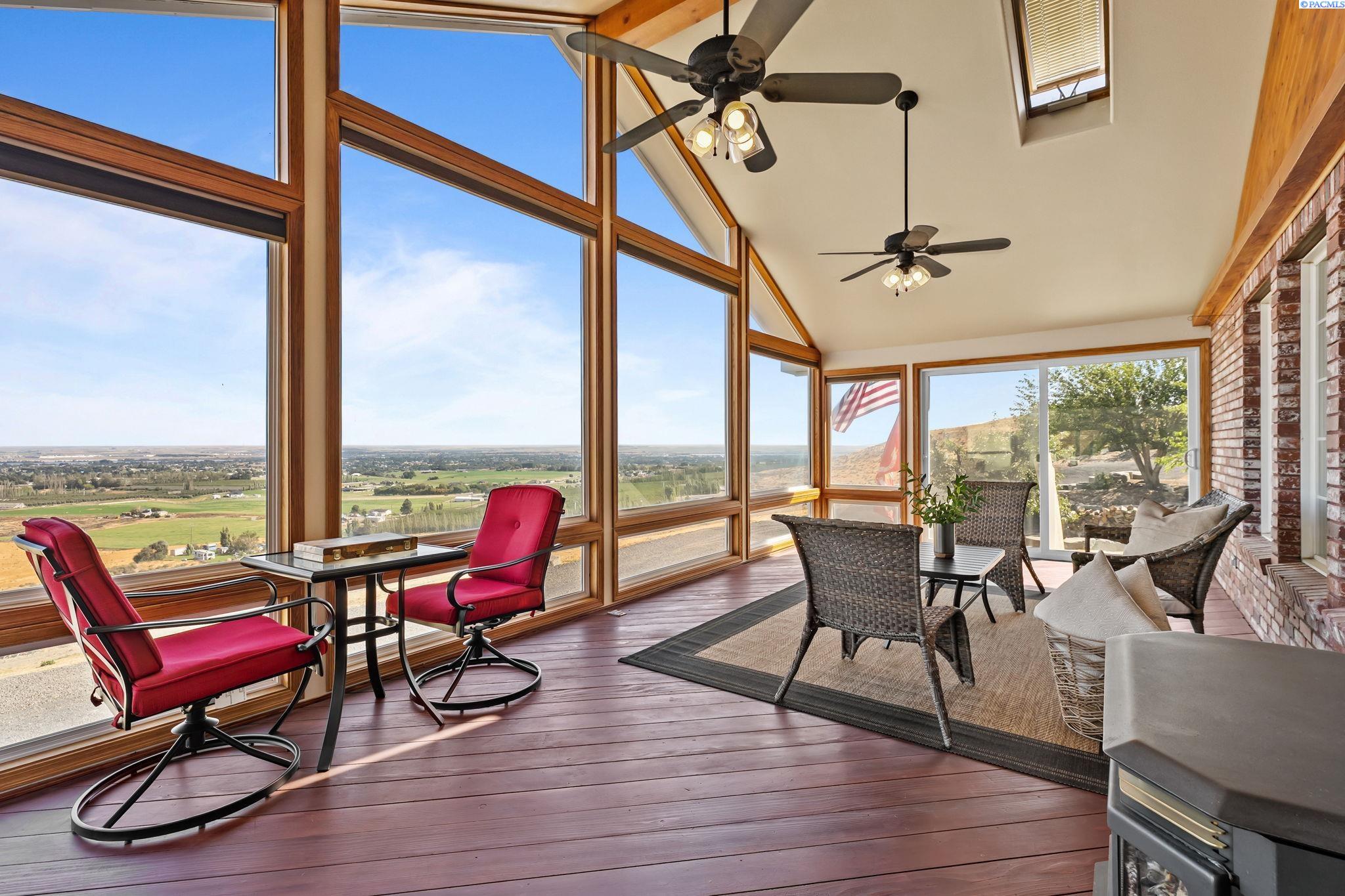 MLS# 287607 Experience the freedom of nearly 20 acres and some of the most breathtaking views in town. This private retreat blends wide-open spaces with a comfortable 4-bedroom home designed to capture the surrounding beauty. The main level features an open living and dining area with a cozy wood-burning fireplace, where windows frame the rolling landscape. A vaulted sunroom with gas fireplace provides a year-round sanctuary to enjoy the sunrise, sunsets, and changing seasons. The home includes one main-floor bedroom (currently an office) and a daylight basement with four additional bedrooms downstairs that include the primary suite. Outdoors, youâll find room for animals, gardening, and hobbies. A large shop with two full bays, an air compressor, a pellet stove for heating during cold months, and generous storage is perfect for projects and toys. Attached is a fully finished 2-bedroom, 2-bath apartment with laundryâideal for guests, multi-generational living, or rental income. The property also features a chicken coop for fresh eggs, and a fire pit where family and friends can gather under the stars. Here youâll enjoy the best of both worlds: the tranquility of country acreage and the convenience of being just 10 minutes from shopping, schools, and everyday needs.