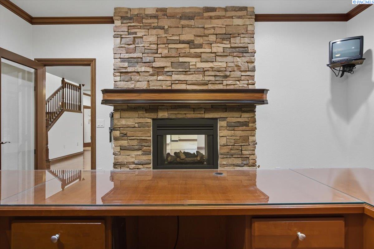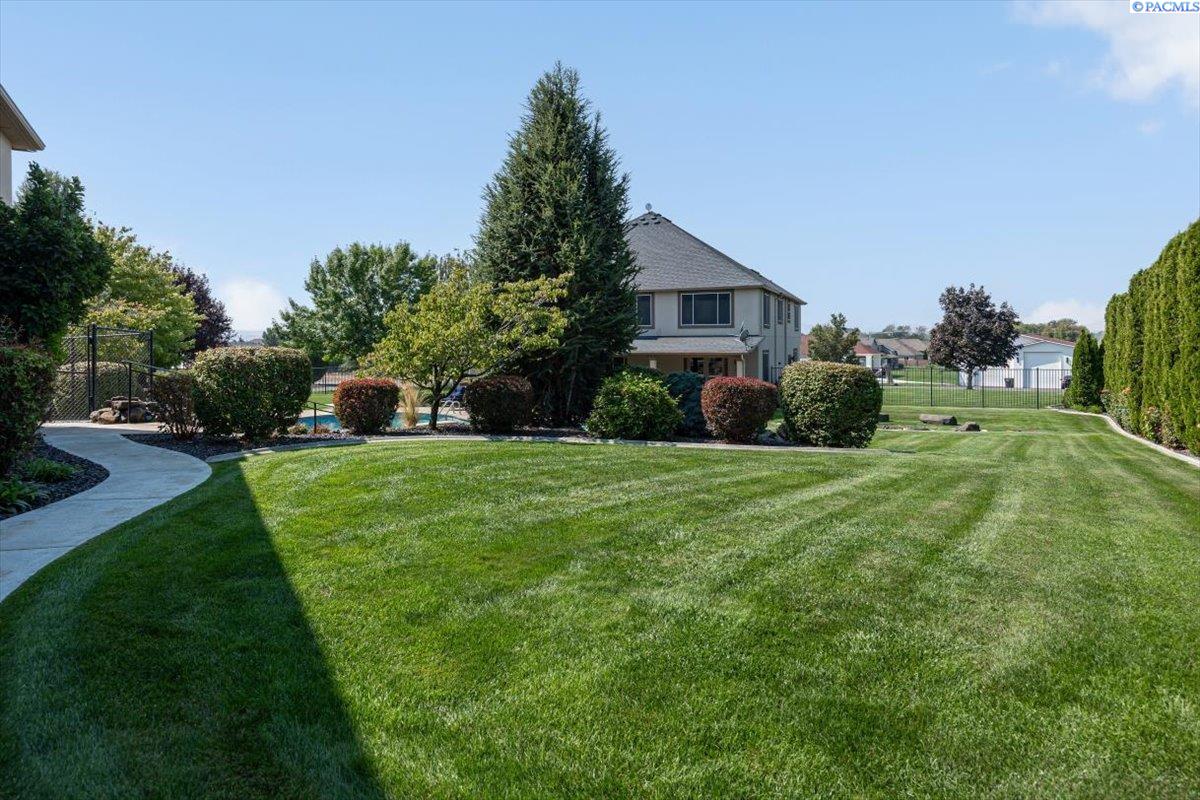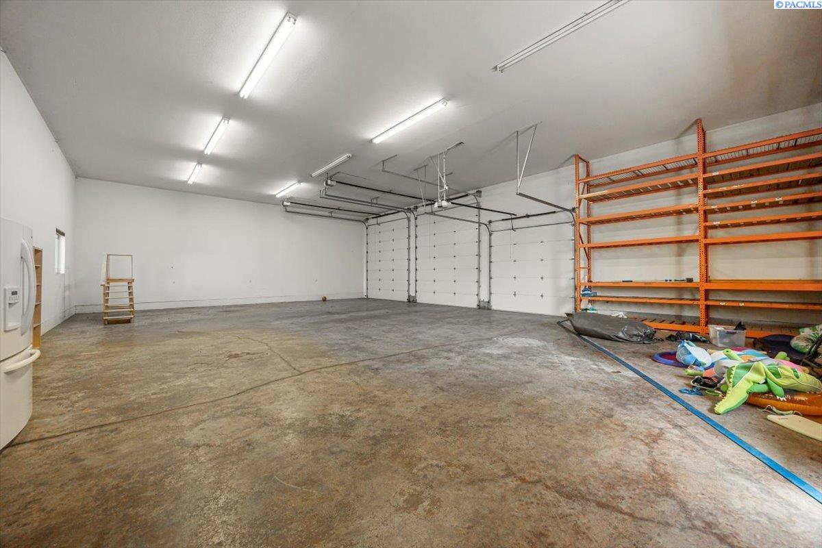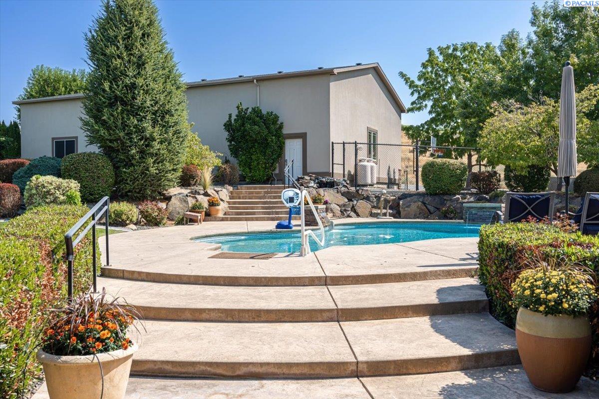 MLS #287676- Discover a stunning and spacious home on a lush one-acre lot near the river. This beautiful home features well-manicured grounds with a grand pool, serene water features, a cozy fire pit, and a covered patio perfect for entertaining. The hot tub hookup is ready for the spa of your dreams. A spacious, insulated, heated 40x60 shop with high ceilings and built-in shelves. The cul-de-sac driveway leading to the shop makes parking a breeze. Don't miss the basketball half court next to the shop. Inside, find rich hardwood floors, an open-concept kitchen with granite countertops, a pantry, two ovens, and options for eat-in or formal dining. The living room boasts a double-sided fireplace into the office, which has a built-in desk and book shelves. The master suite shines with vaulted ceilings, a sitting room, oversized bathroom, and a walk-in closet. Donât miss out on this gem!
