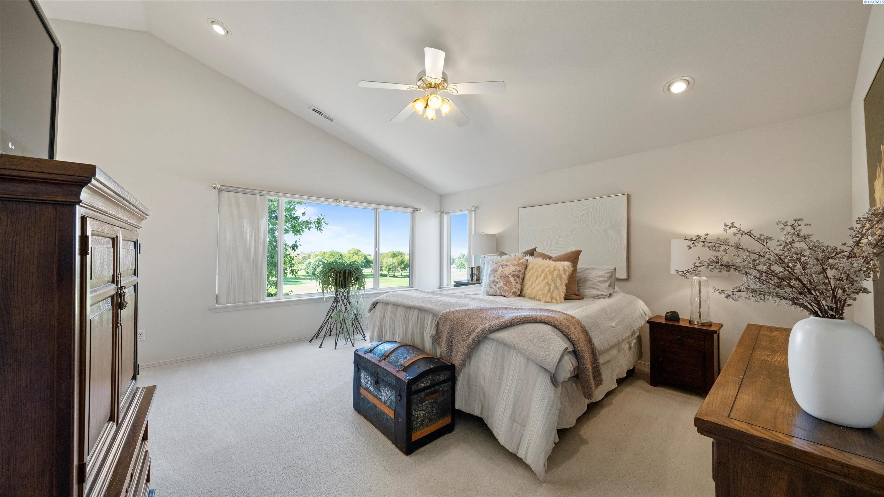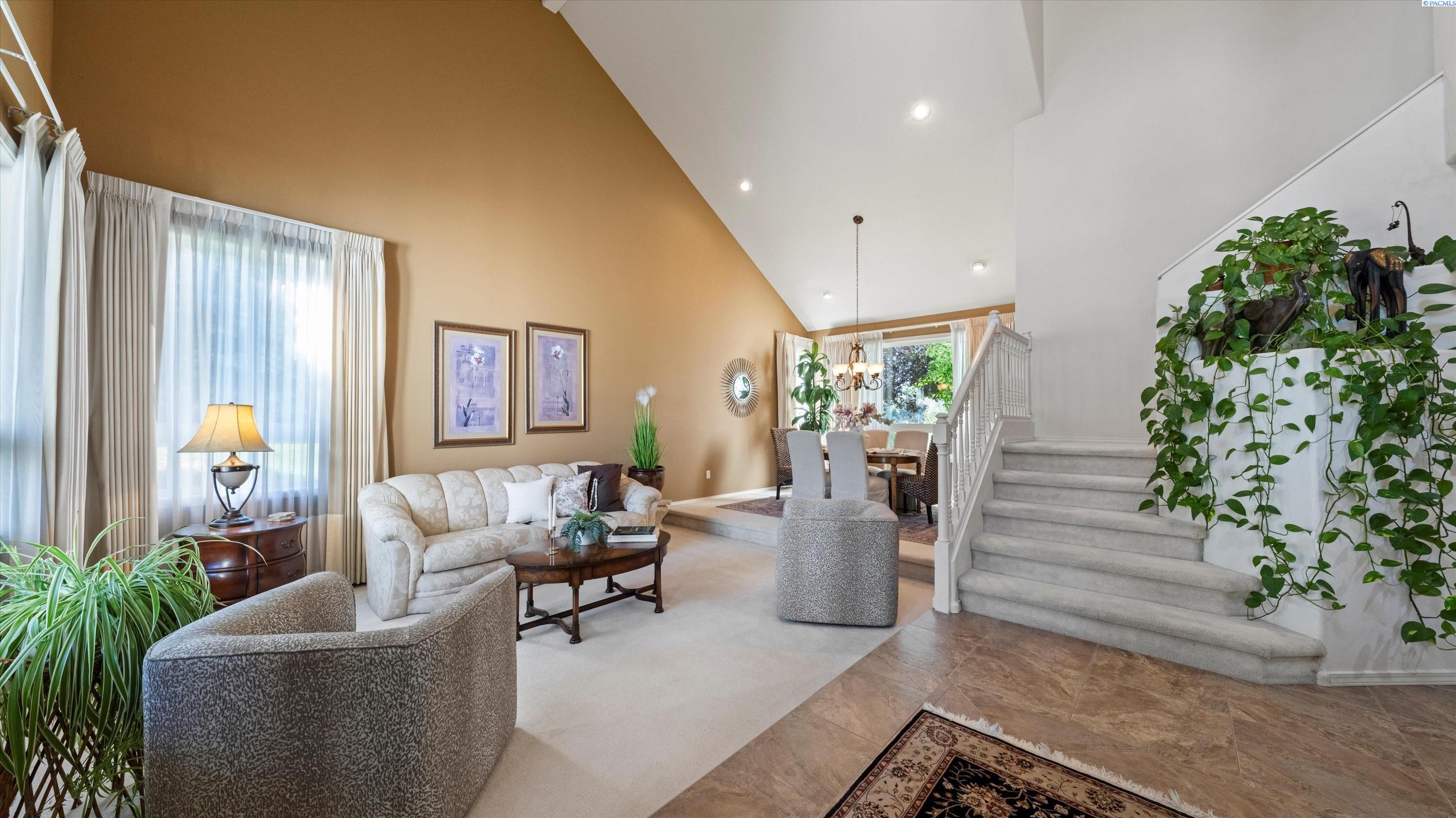 MLS# 287769 Experience timeless elegance and sweeping golf course views in one of South Kennewickâs premier communities. This custom two-story home offers 4 bedrooms, 2.5 baths, and flexible spaces, including a 4th bedroom that can serve as a bonus or media room and an office that could be a 5th bedroom. A two-story foyer, soaring ceilings,and a thoughtful floor plan create comfort and style throughout, while the family room with remote gas fireplace, breakfast nook, formal dining, and spacious primary suite showcase the views. Multiple dining areas and an expansive shaded deck make entertaining seamless indoors and out. Recent updates include a new roof, fresh exterior paint, new HVAC, ceramic tile in the entry and kitchen, plus newer washer, dryer, refrigerator, and microwave, making this home move-in ready. Three car extended garage for workshop area or golf cart storage. Nestled in Canyon Lakes, youâll enjoy walking paths, parks. Additionally there are exciting clubhouse enhancements underwayâincluding Trackman simulator bays, expanded dining, and a new Golf Universe fitting centerâthis is more than just a home, itâs an investment in a growing destination!