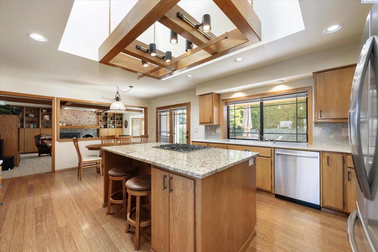 MLS# 287831 Tucked away at the end of a quiet cul-de-sac, 1703 S. Quay Court combines privacy, comfort, and timeless design. Custom built by esteemed Tri-Cities builder Dave Martinâoriginally as his own personal residenceâthis single-story home reflects the unmatched detail and care youâd expect from a builderâs own home. Known for his wonderful reputation in Tri-Cities homebuilding, Martinâs craftsmanship shines through every space. Bamboo engineered hardwood floors, wood-wrapped windows, and two skylights highlight the thoughtful design. With two inviting living areas and a beautiful brick fireplace, the layout provides the perfect balance of space for both lively gatherings and cozy nights in. The primary suite is a true retreat, featuring a spa-like bathroom with heated floors. A three-car garage adds flexibility, with one bay currently used as a home office. Step outside to enjoy a wonderful back deck and a backyard that feels private and sereneâideal for relaxing or entertaining. This is a rare opportunity to own a builderâs personal home where custom craftsmanship, comfort, and location all come together.