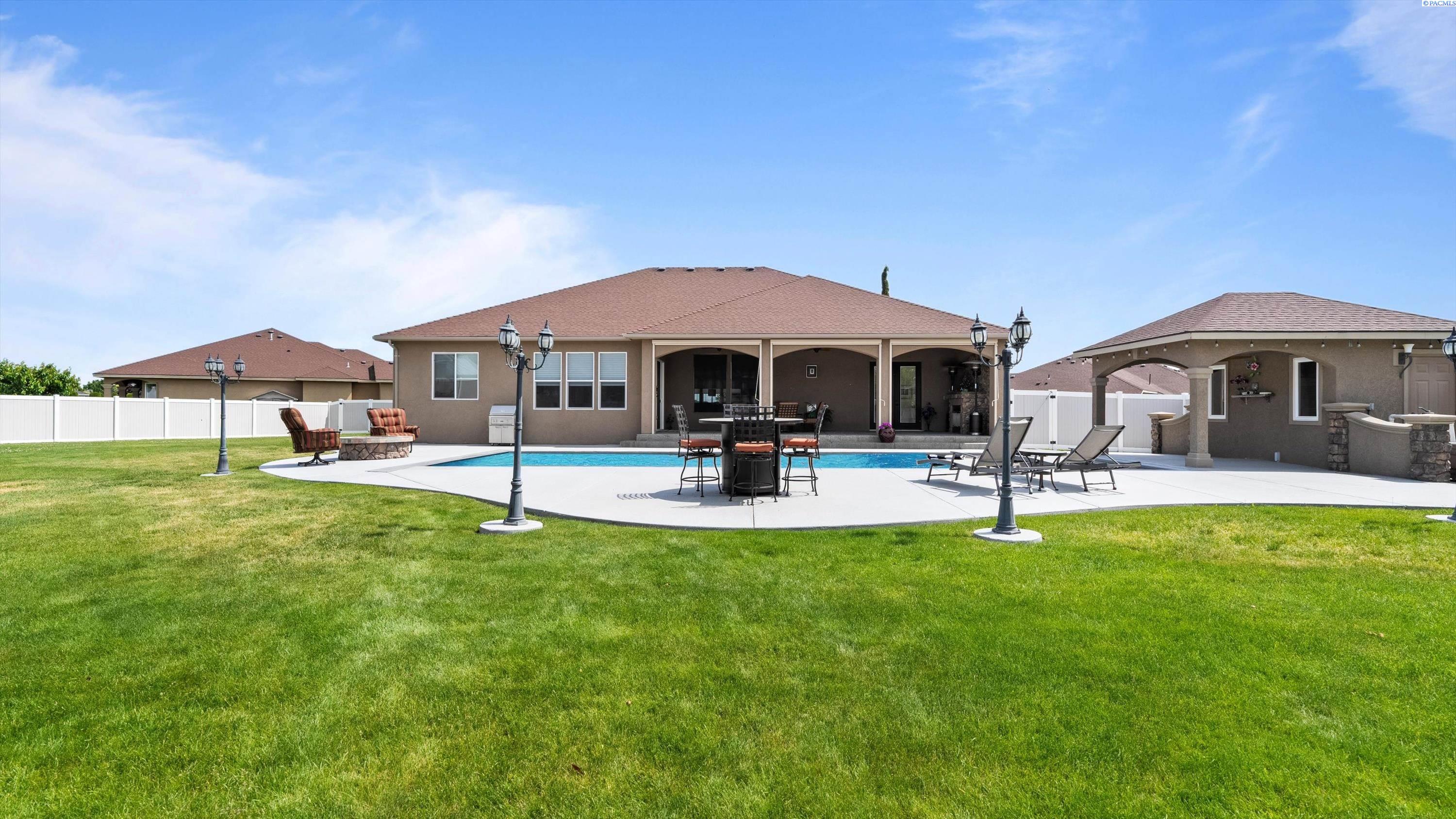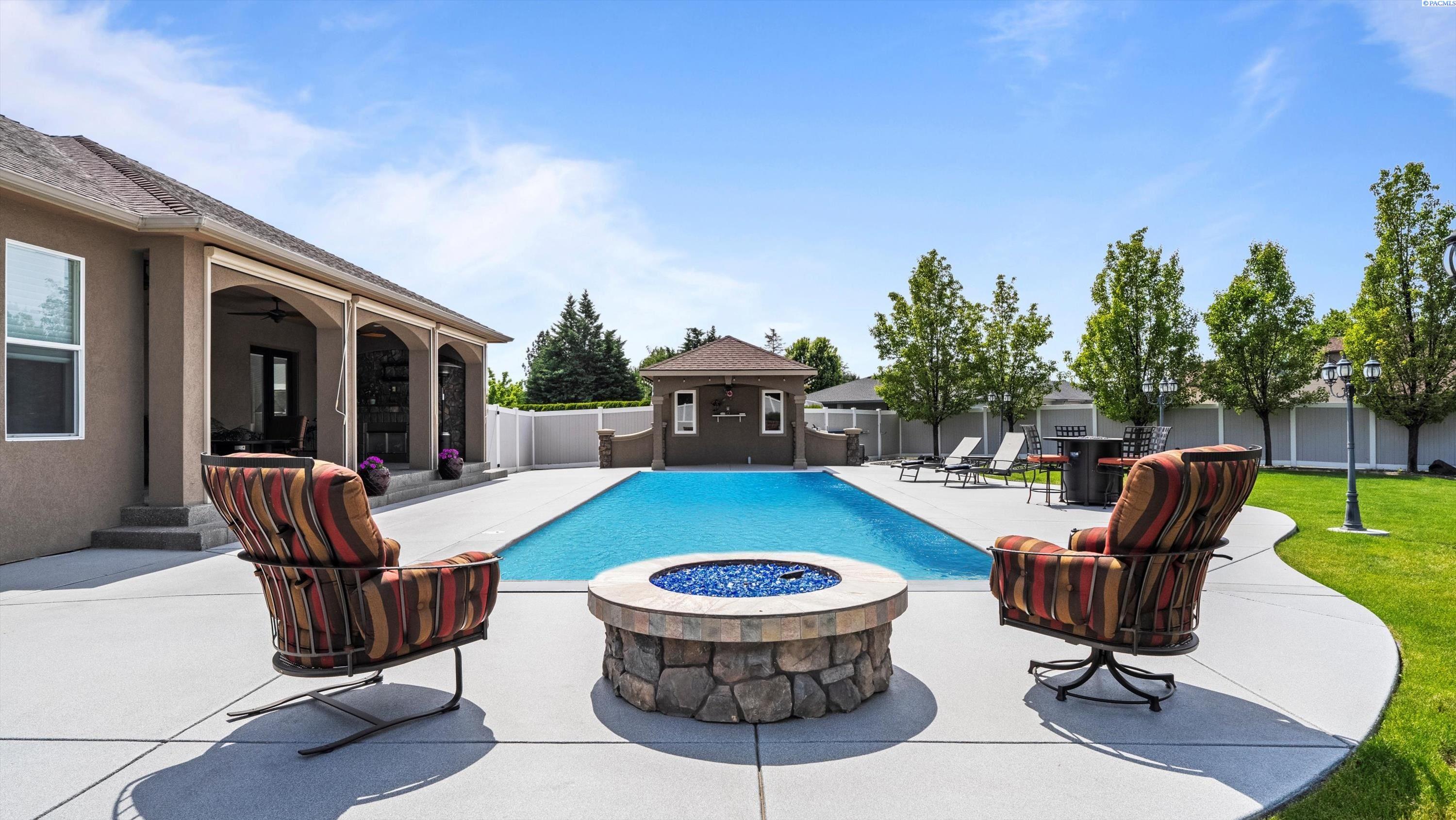 MLS# 287834 Welcome to 3304 Sorento Ct â a beautifully designed 2,692 sq ft home nestled in a quiet cul-de-sac in desirable West Pasco. This meticulously maintained residence offers a perfect blend of comfort, style, and functionality, featuring 4 spacious bedrooms, 3 full bathrooms, and an additional half bath located in the pool house for added convenience.Inside, youâll find elevated finishes throughout, including coffered ceilings, updated countertops, and elegant silhouette blinds. The open-concept layout is filled with natural light, making it ideal for both relaxed living and entertaining. The primary suite is a true retreat, featuring his-and-her closets, a soaking tub, and a walk-in shower.The heart of the home lies in the kitchen and adjoining living spaces, thoughtfully designed for modern living and effortless hosting. Step outside to your private backyard oasis, where a freshly painted pool deck surrounds a stunning 16-by-42-foot in-ground pool â perfect for summer enjoyment, entertaining guests, or peaceful evening swims. The fully fenced yard ensures privacy and space to relax or play.Additional highlights include the dedicated pool house with half bath, and a prime location just minutes from shopping, schools, parks, and freeway access.Donât miss this rare opportunity to own a luxurious property that blends everyday comfort with resort-style amenities. Schedule your private showing today!