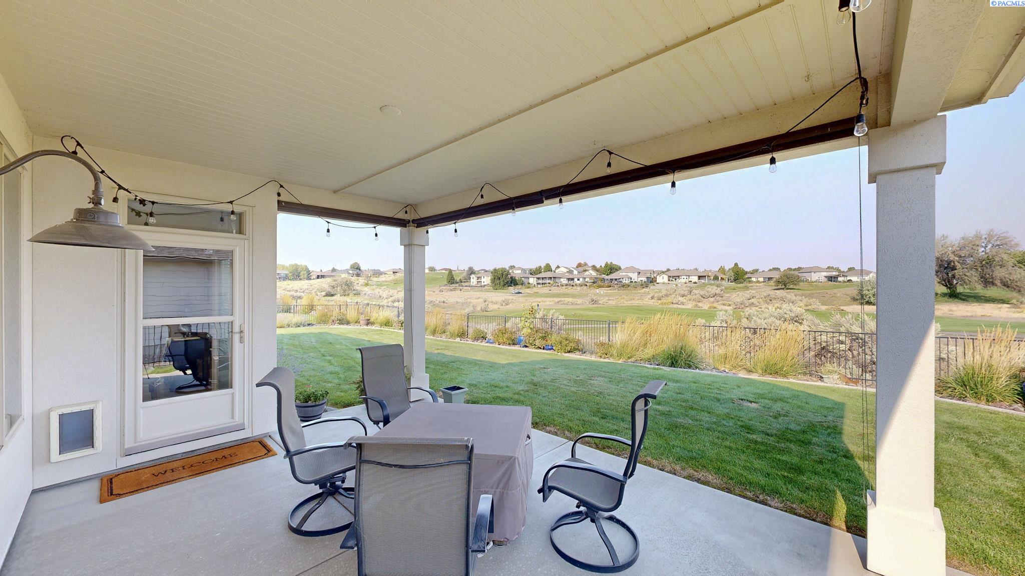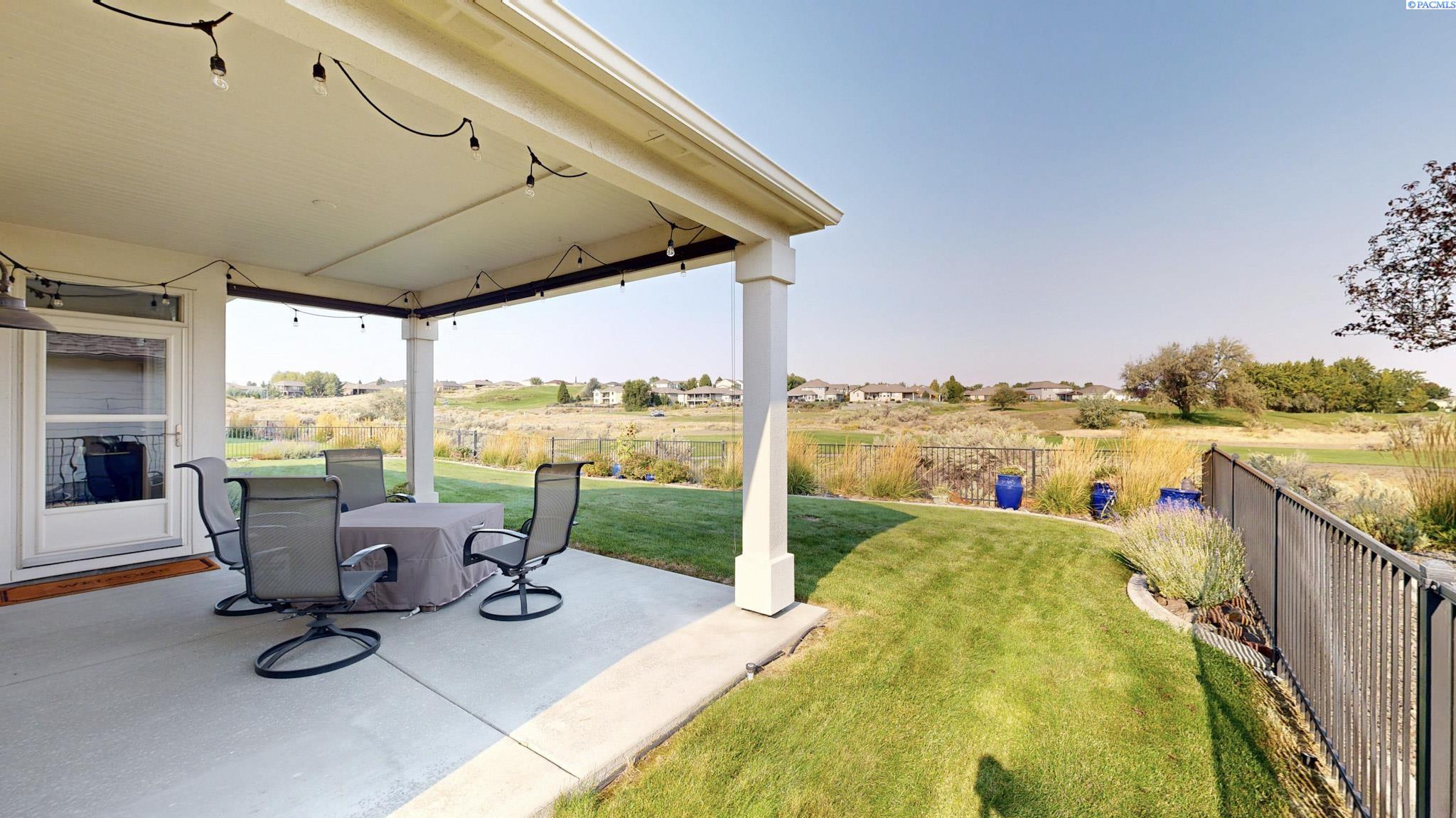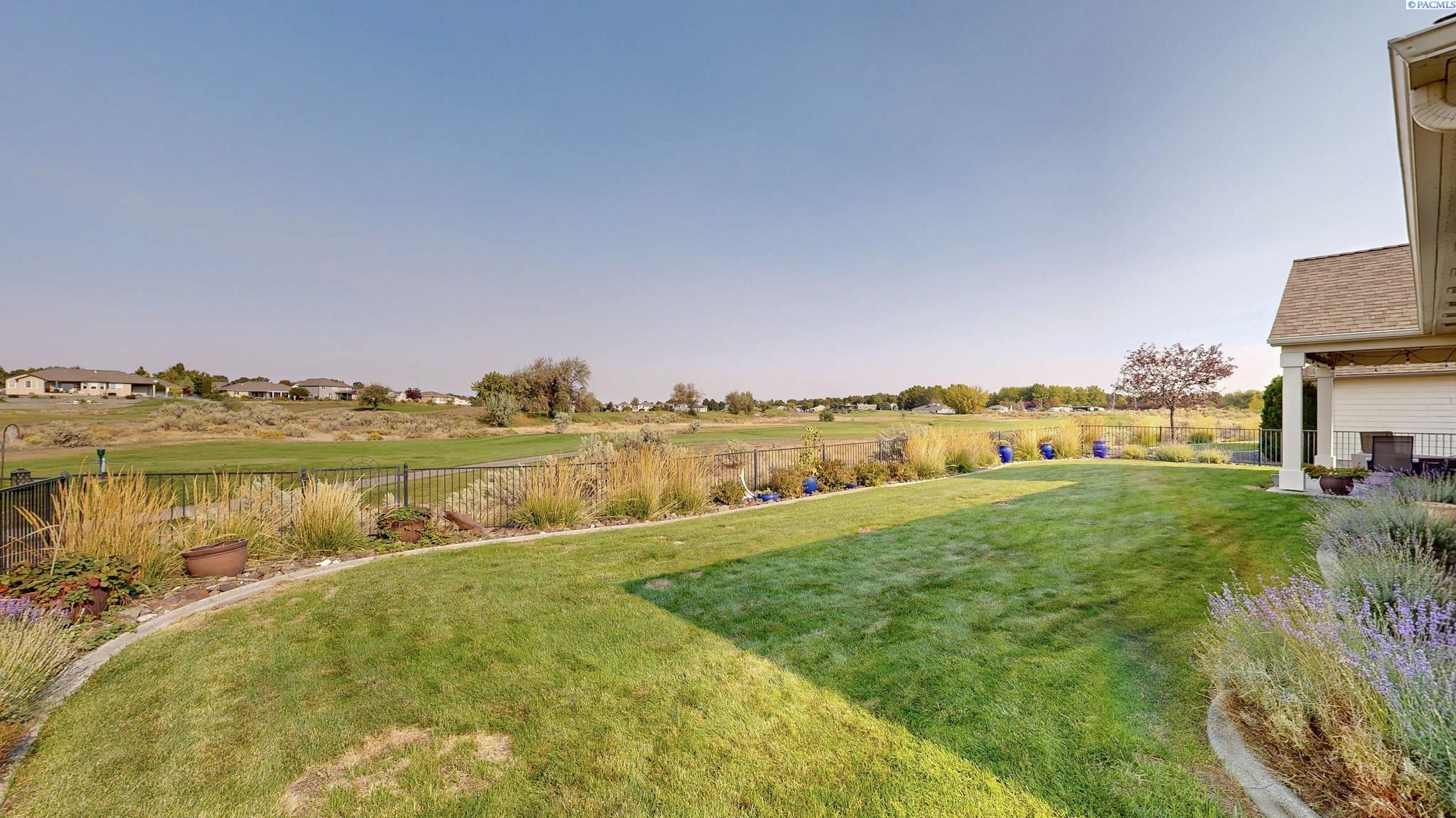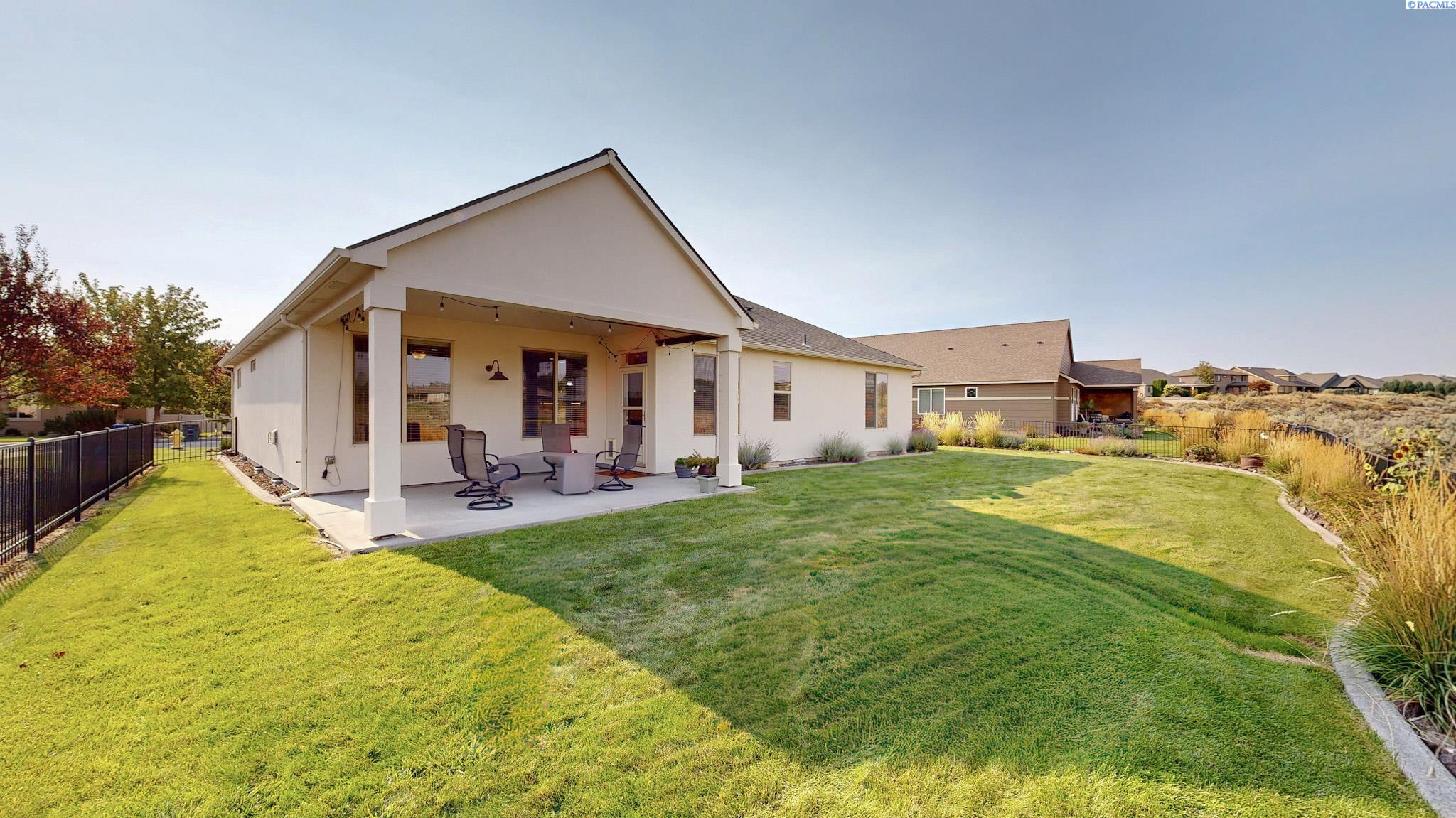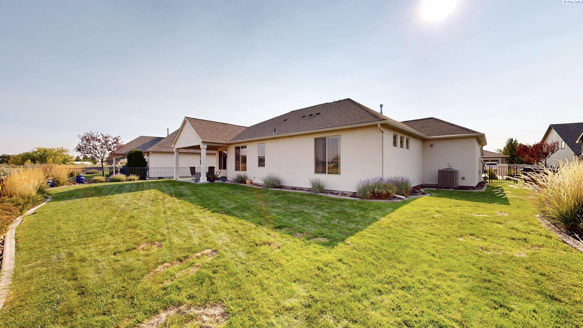 MLS# 287964 Immaculate one-story rambler located on Horn Rapids Golf Course frontage! This home offers stunning curb appeal with beautifully maintained landscaping and welcomes you with an inviting open great room design. The living room showcases a cozy gas fireplace and seamless flow into the kitchen, where youâll find a large island with granite counters, stainless steel appliances, and custom cabinetryâperfect for both everyday living and entertaining. The split-bedroom layout features a private primary suite complete with a dual-sink vanity, soaking tub, separate shower, and a spacious walk-in closet. Step outside to enjoy gorgeous golf course views from the nicely landscaped backyard, fully fenced with sleek iron fencing. Additional highlights include an oversized, finished 3-car garage and access to Horn Rapidsâ exceptional community amenitiesâpool, tennis and pickleball courts, walking paths, and RV parking. A true lifestyle property with both comfort and resort-style living!