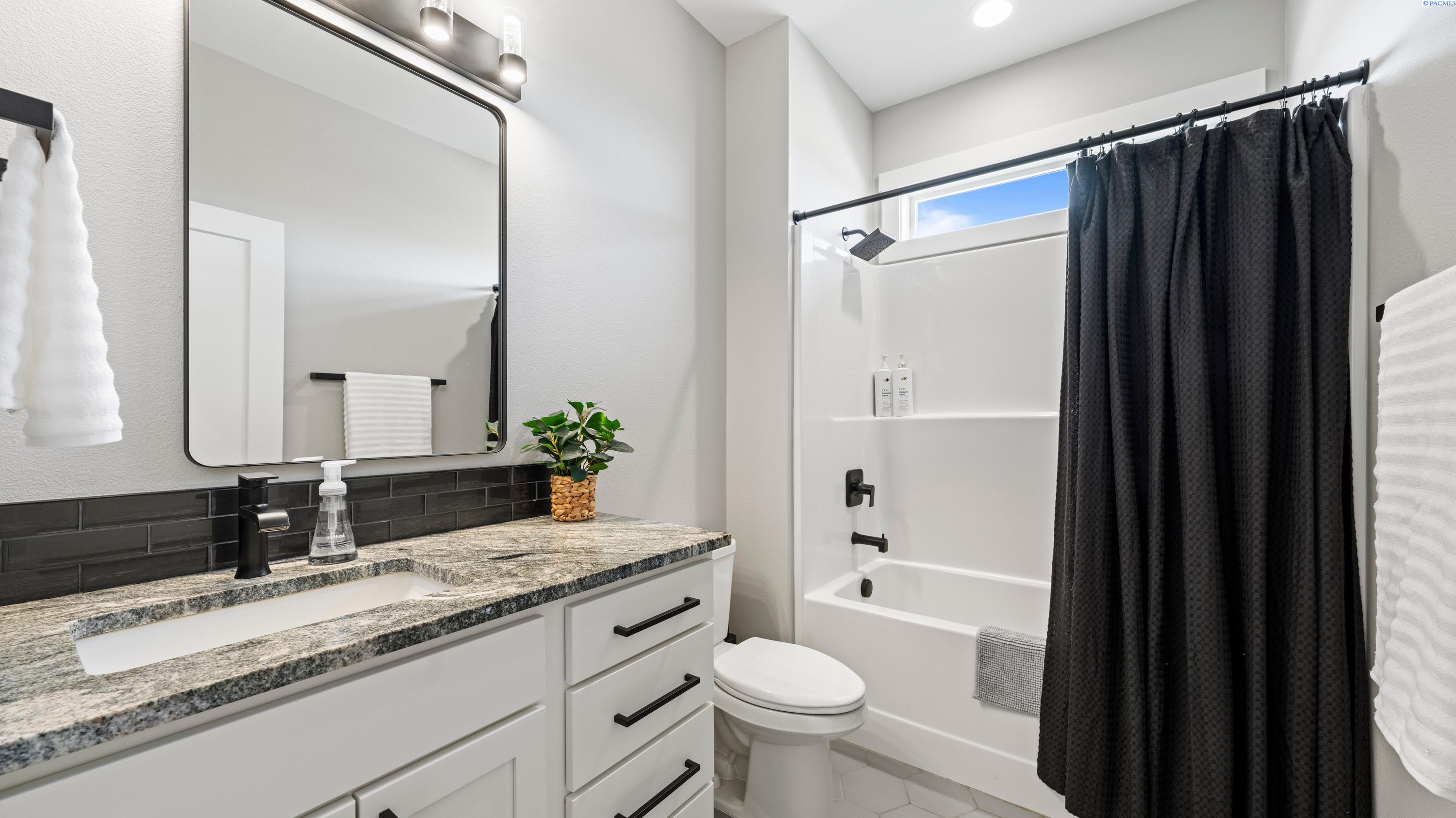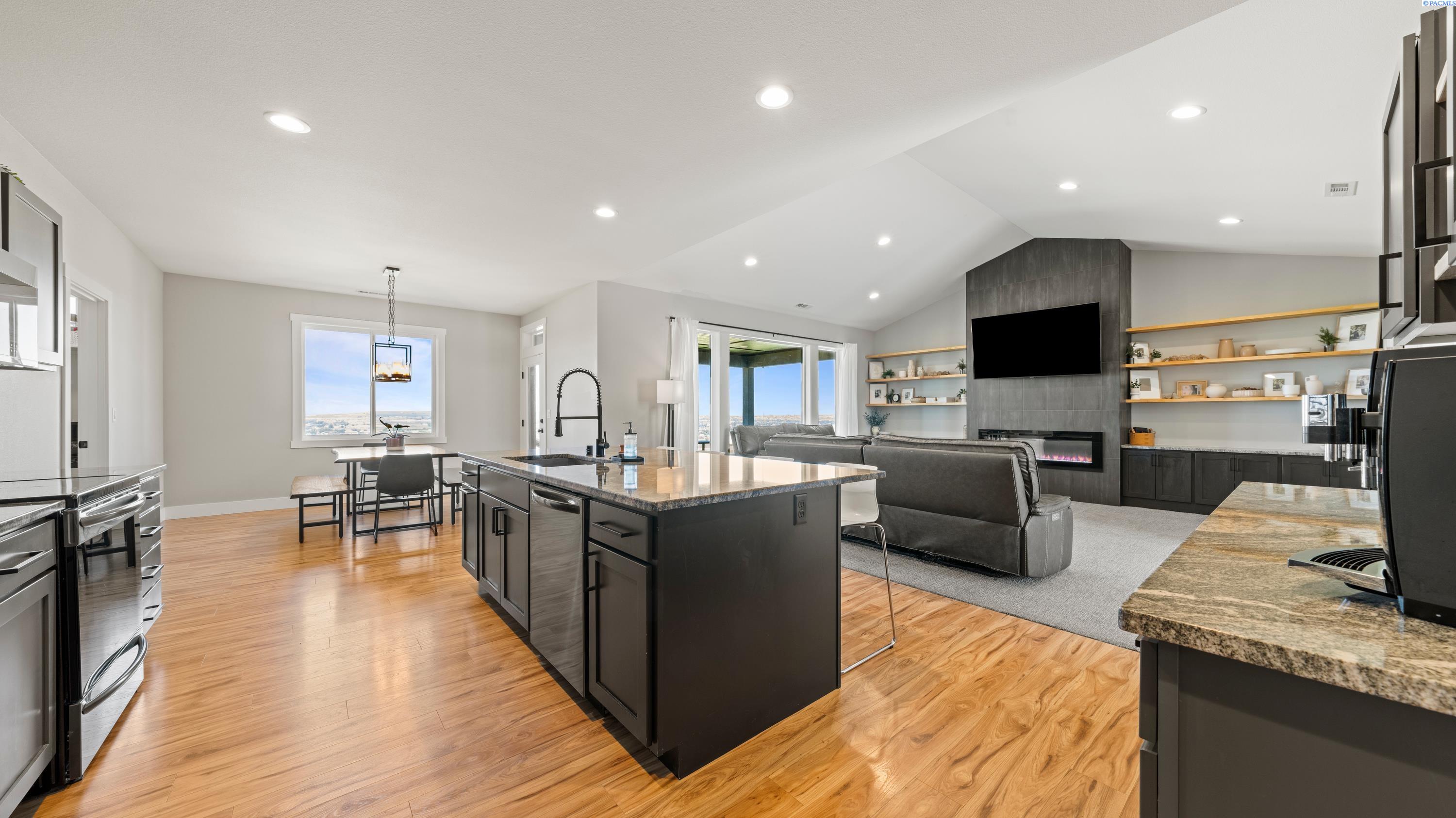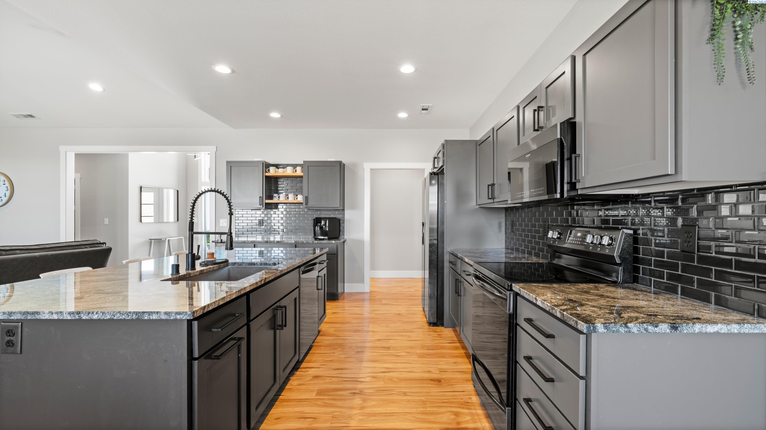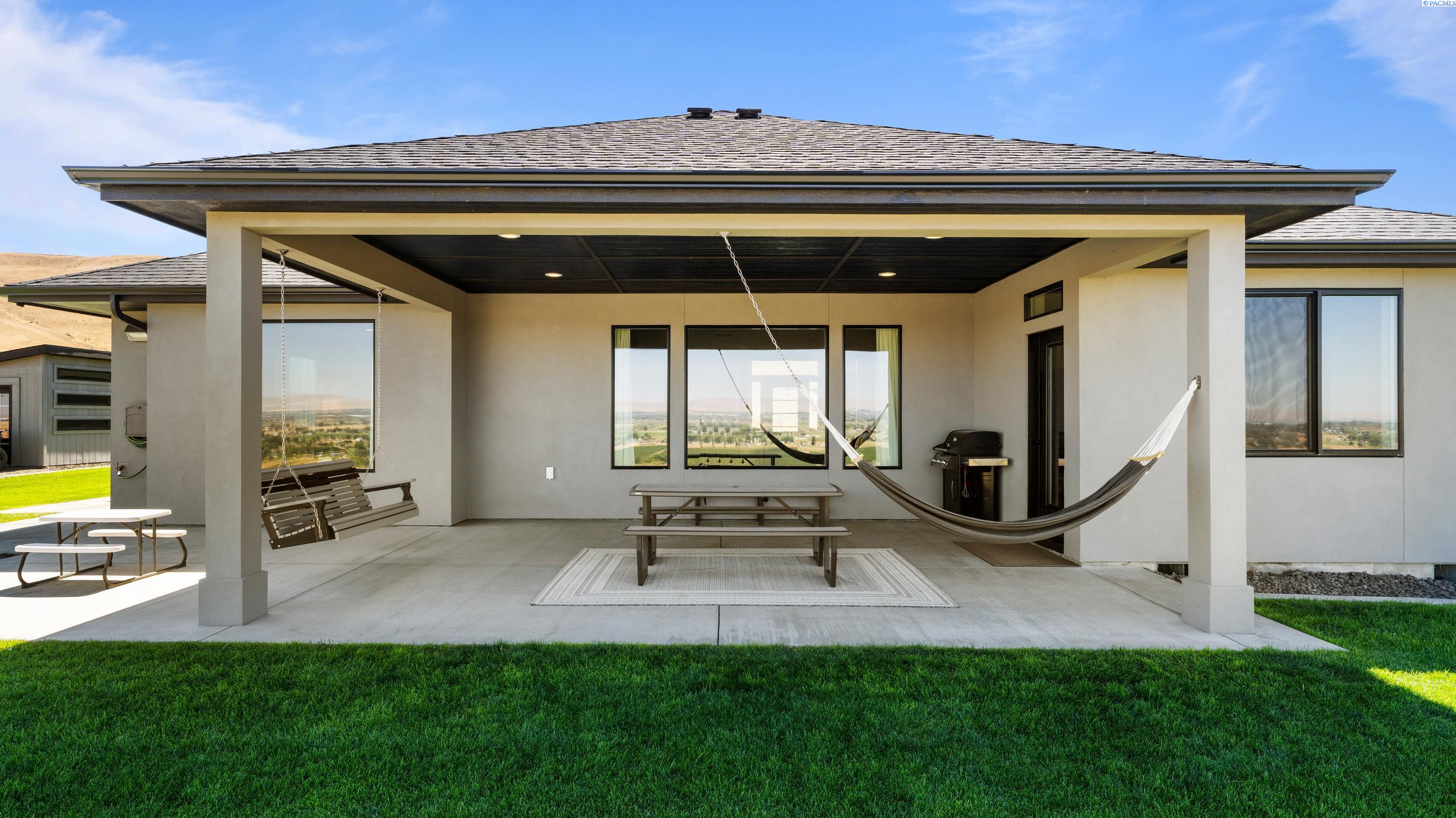 MLS# 287987 This Rambler home welcomes you with Amazing Views of Prosser. You will appreciate the Great layout of this home, 2022 year built, 3 spacious bedrooms, plus office or 4th bedroom, 2 Full Baths, 2426 Sqft & private laundry room. Beautiful kitchen with large island, granite countertops & full tiled backsplash, black stainless appliances & plenty of cabinetry w/soft close doors & walk-in pantry. Spacious master suite with large walking closet. Master bath with Granite counters, Dual vanity & tub/shower with tile walls. Spacious 1250 Sqft 3 car garage that's fully finished & insulated and has it's own mini split for climate control. Man door makes way to open RV parking area with full hookups & garden shed. Sits on 10 Acres, Room for Shop & Pool! Plenty of parking spaces, nice playground area, professionally landscaped around the home w/ ugs & curbing & fenced pasture of approx. 4 acres. Located close to downtown Prosser, Wineries and more. Schedule your showing today!