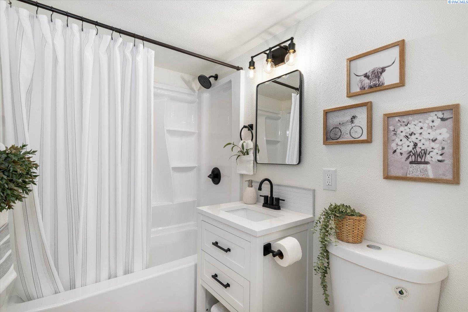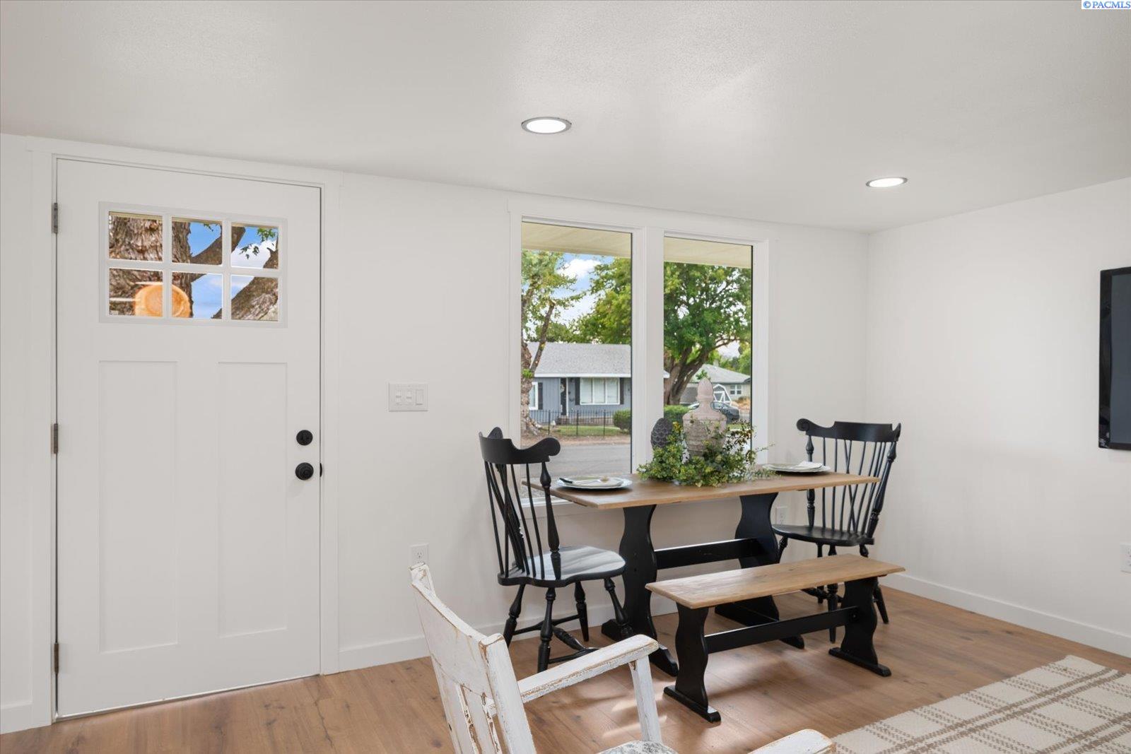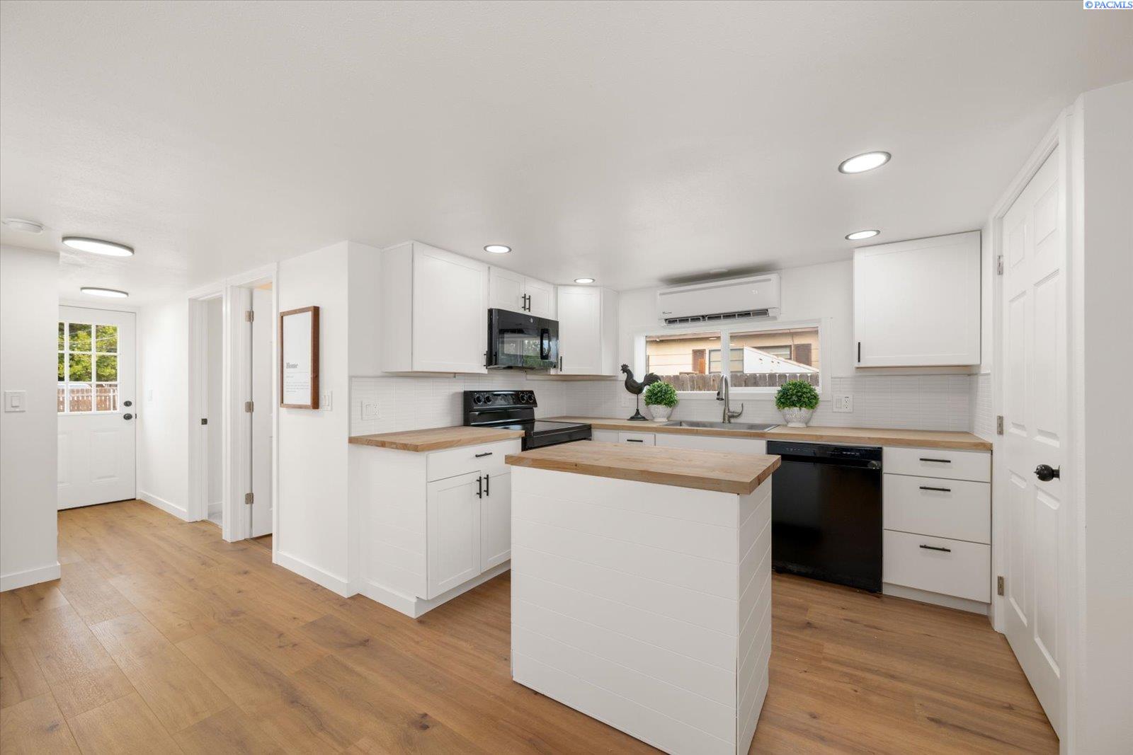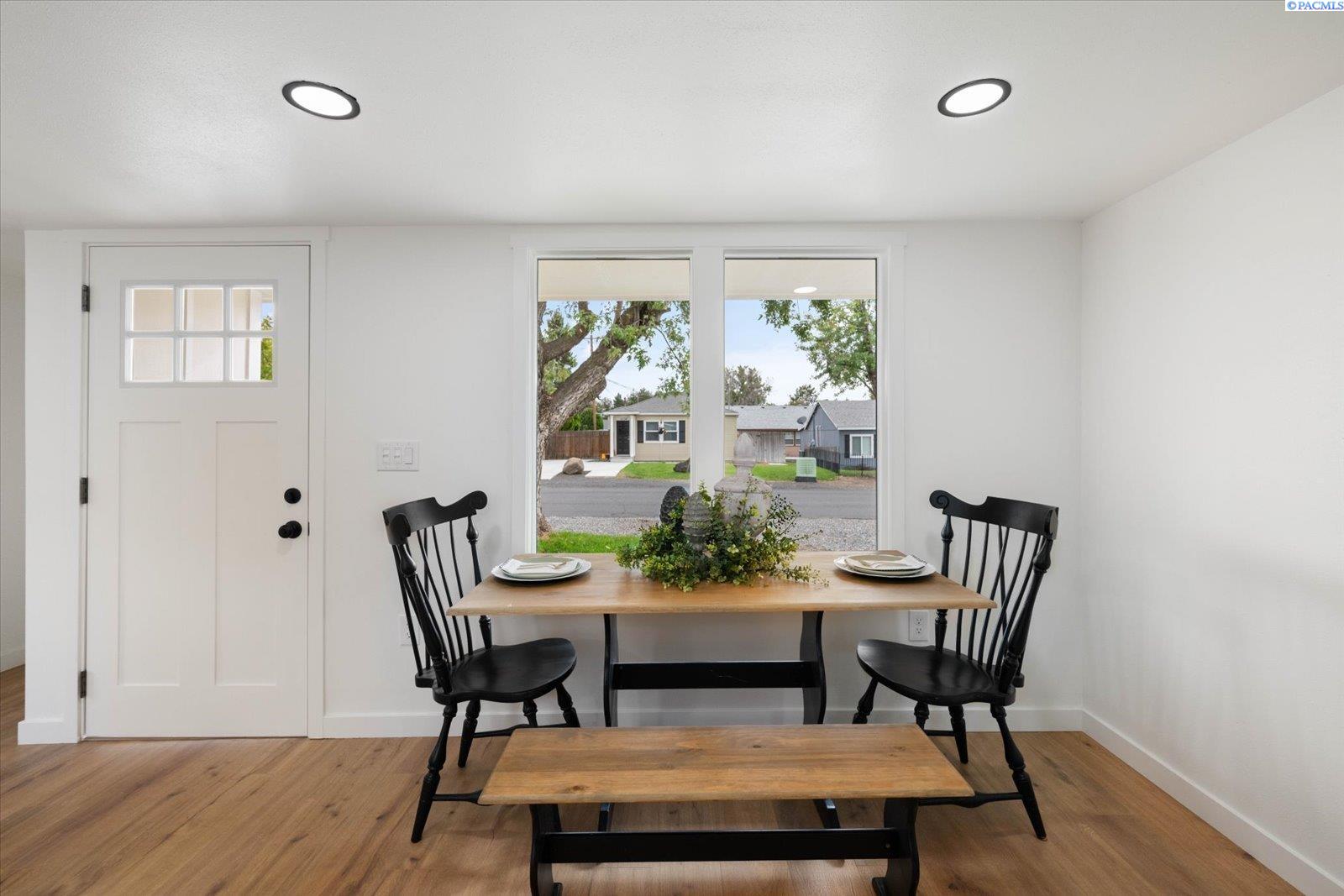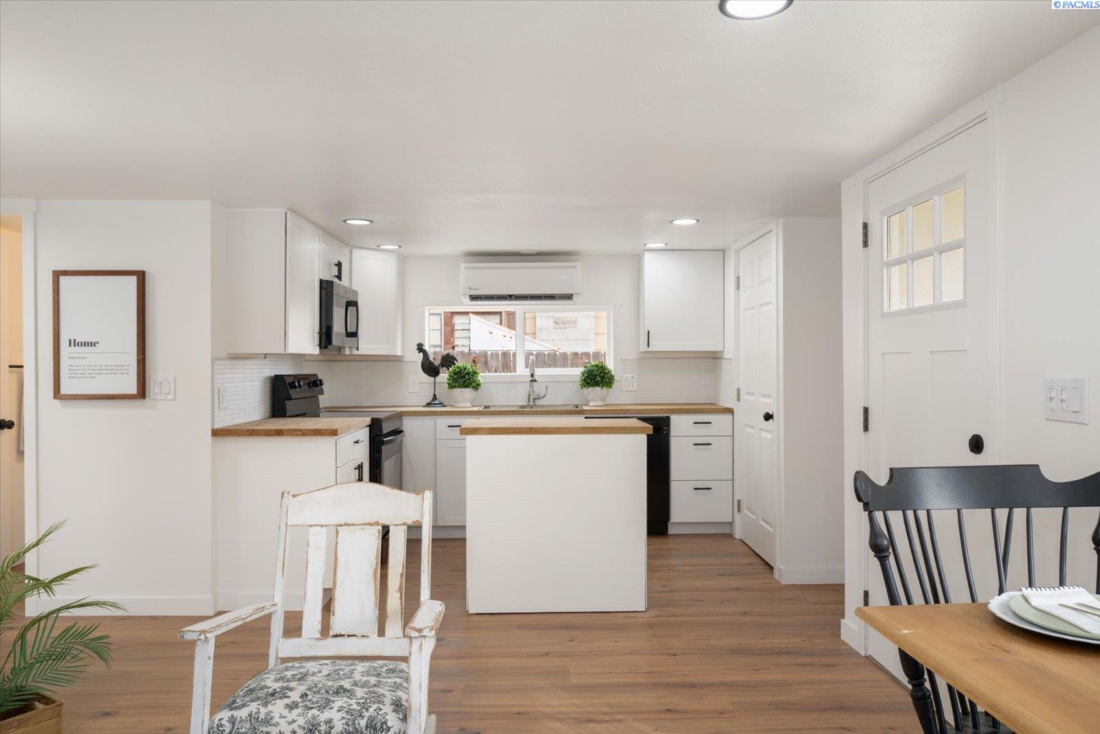 MLS# 287993 This thoughtfully updated Richland home has been refreshed inside and out, offering both modern comfort and peace of mind. Updates include a full electrical rewire and panel, new siding, windows, interior and exterior doors, flooring, lighting, hot water heater, and a high-efficiency mini split HVAC system. Fresh paint and trim throughout ties everything together, creating a clean, inviting look. The kitchen is surprisingly spacious for the size of the home and features brand-new cabinetry, countertops, new appliances, and a movable island that provides flexible prep and serving space. The bathroom has been fully renovated with contemporary finishes, and the home is already plumbed for a second bathroom in the back should you choose to expand. The primary bedroom offers a relaxing retreat, while the secondary bedroom is ideal as a guest room, office, or cozy nook. Outside, curb appeal shines with fresh sod in the front yard and hydroseeding underway in the backyard. The fully fenced property includes a wide gate, perfect for RV parking, and ample outdoor space to make your own. Conveniently located near freeways, shopping, downtown Richland, and the river, this move-in ready home perfectly combines charm, comfort, and location.
