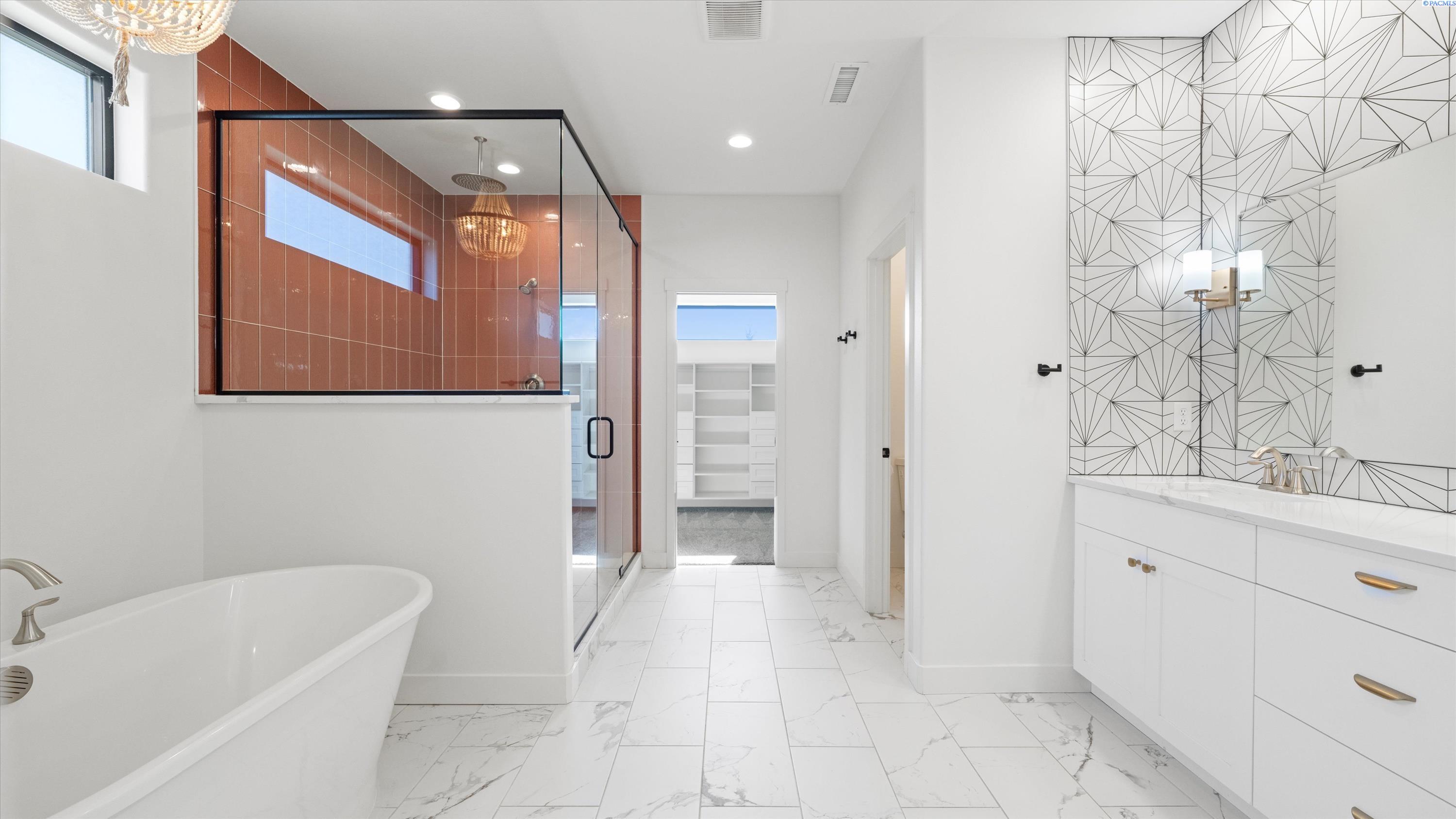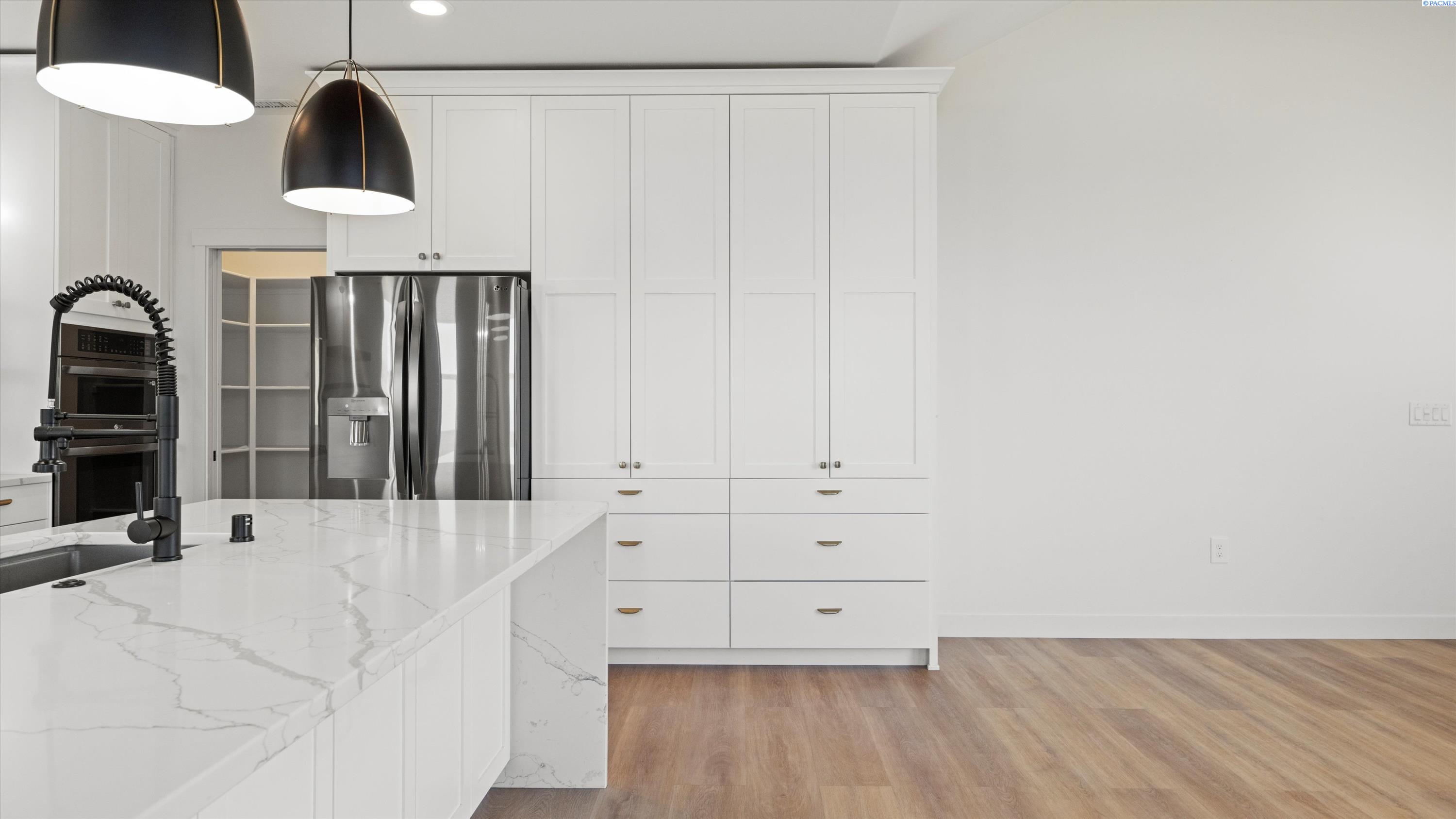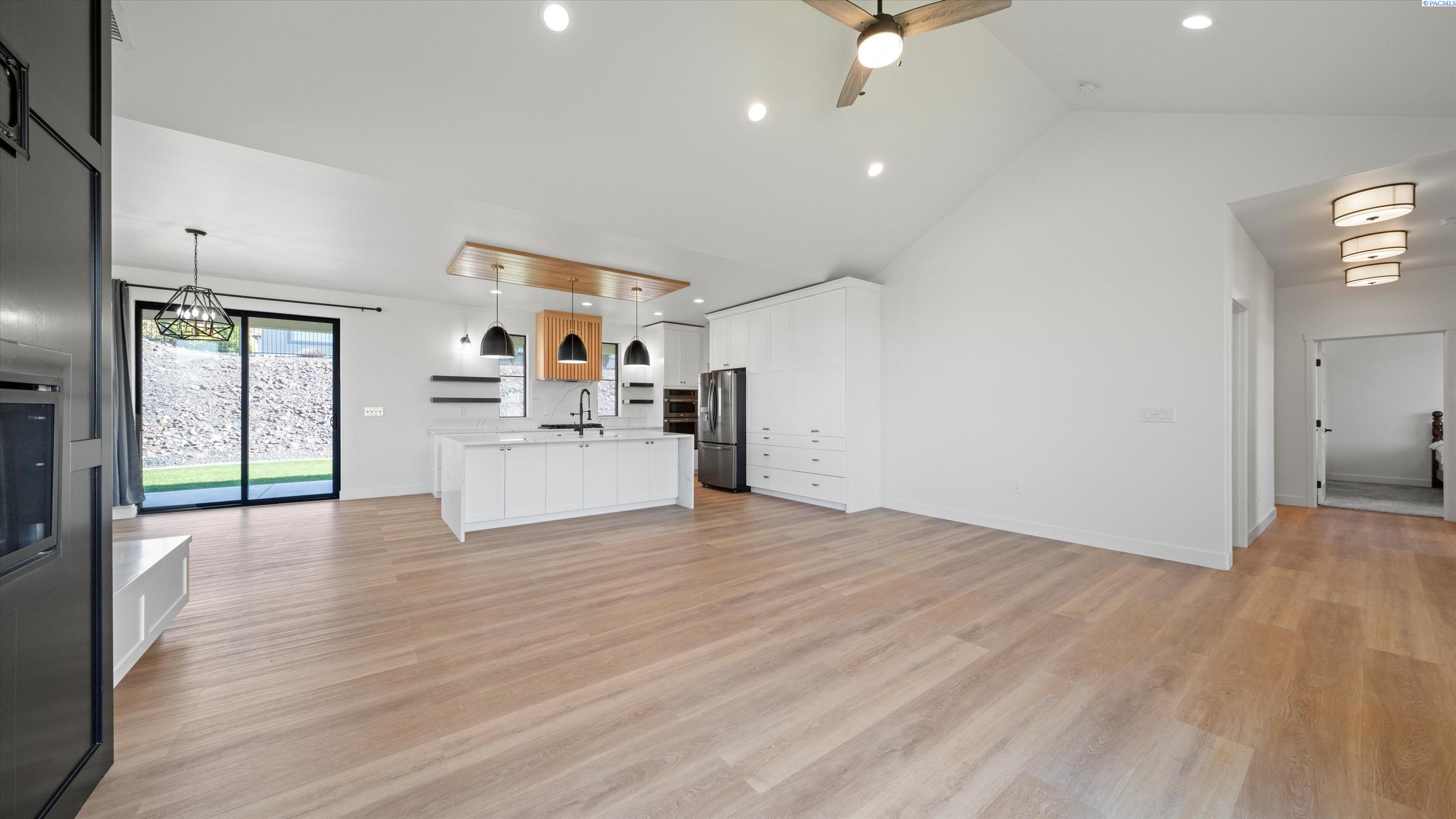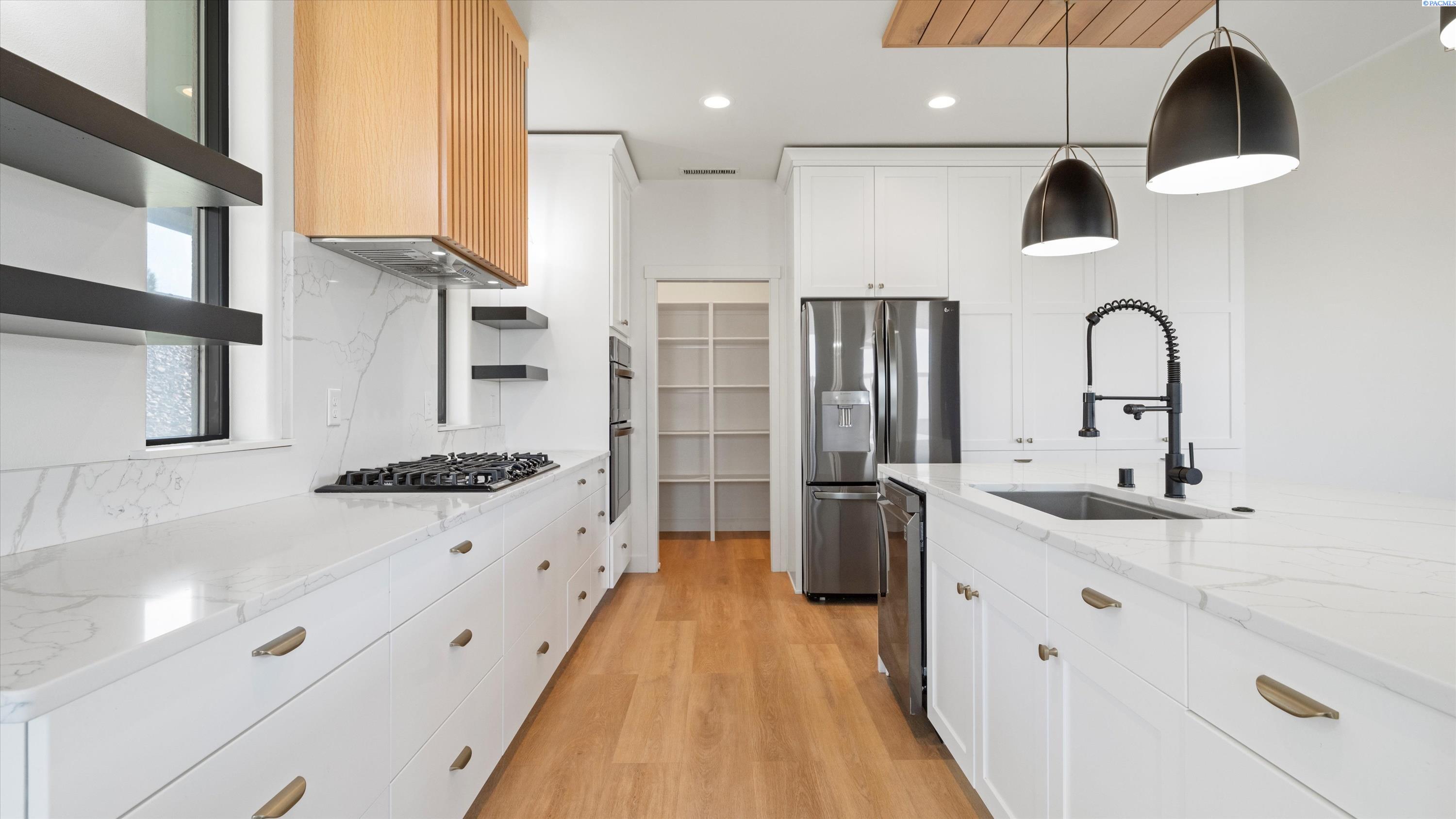 MLS# 288001 Experience designer luxury in this stunning 2022-built home nestled in Southcliffeâs most exclusive neighborhood, boasting million-dollar views of the Columbia River. This 4-bedroom, 3-bath residence showcases exceptional craftsmanship and sophisticated finishes throughout. The interior features wide-plank LVP wood flooring and matching wood accents that create a seamless, contemporary aesthetic. The gourmet kitchen is a true centerpiece, featuring a large island with a striking waterfall granite countertop, open shelving, and a generous bank of cabinets that offer both beauty and functionality. Designer-selected tile accents in all three bathrooms elevate the interiors into a true masterpiece. Thoughtfully designed for todayâs lifestyle, one bedroom easily serves as a den or home office. Modern comforts include geothermal heating and cooling, a soft water system, and reverse osmosis filtration. Whether youâre looking for your first home or a retirement retreat, this property offers low-maintenance, single-level living with no stepsâperfect for ease and comfort. Sit back and enjoy the envious views while entertaining friends and family in style. From its elegant interiors to its energy-efficient systems, every detail of this home embodies refined Northwest living.
