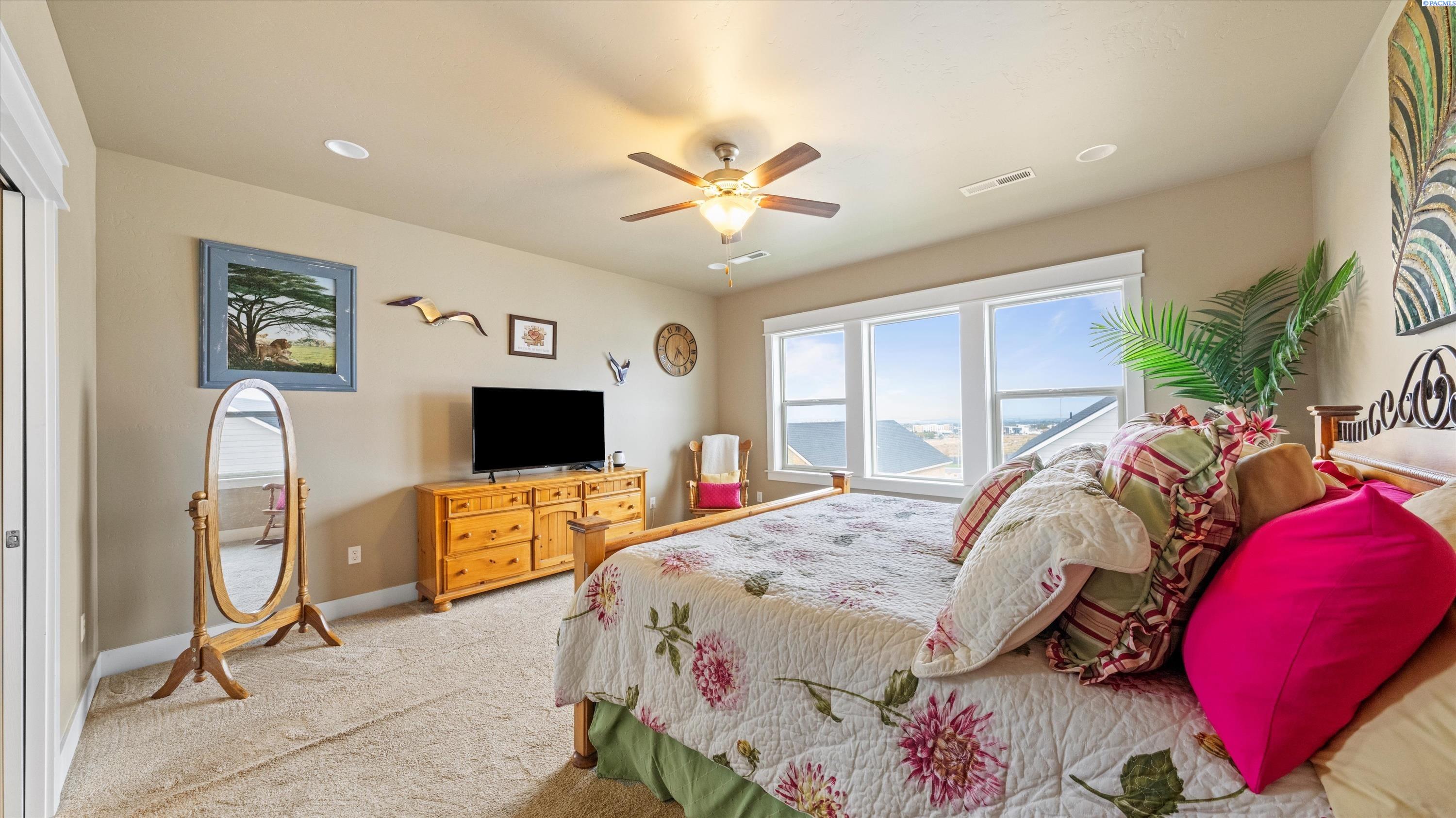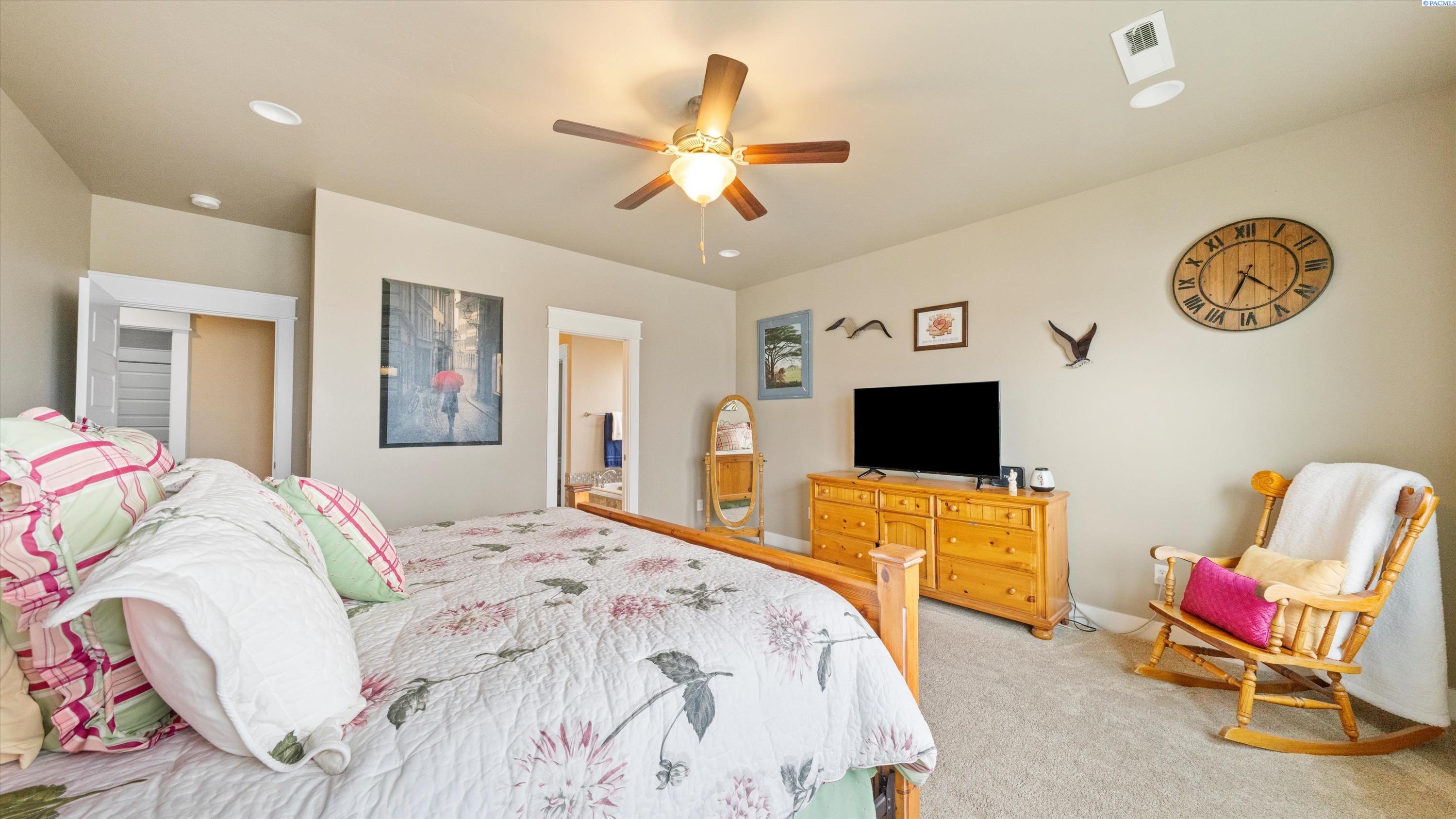 MLS# 288009 This exceptional Riverwood home blends the modern features of new construction with thoughtful upgrades that add versatility and functionality to this well-designed layout. As you step inside, you are welcomed with a wide-open foyer highlighted by a lead-glass front door. Moving toward the great room, the timeless white oak hardwood flooring becomes a beautiful focal point, leading to the heart of the home â the kitchen. The kitchen is a chefâs dream that features granite countertops, double ovens, gas range, large island, and abundant prep space. The breakfast bar on the island adds a casual dining spot or a place for entertaining. The kitchen opens into a spacious great room, filled with natural light and enhanced by a cozy fireplaceâperfect for those large gatherings or a quiet spot to read.Main-Level Living. Three of the homeâs five bedrooms are located on the main level. The two secondary bedrooms are just off the entry, while the primary suite is tucked away down a private hallway. The primary bedroom is generously sized, with large windows with an ensuite bath that is beautifully finished with tile flooring, granite dual vanity, a soaking tub, tiled walk-in shower, and a generously sized walk-in closet with custom shelving.Lower-Level Flexibility. This space offers an expansive and flexible layoutâideal for a family room, game space, or even a home theater. Two additional bedrooms, a full bathroom with granite counter, and direct access to the lower patio and backyard, making this a perfect space for guests, teens, or multi-generational living.From top to bottom, this well-cared-for home offers a thoughtful blend of space, comfort, and style. You will love living here!