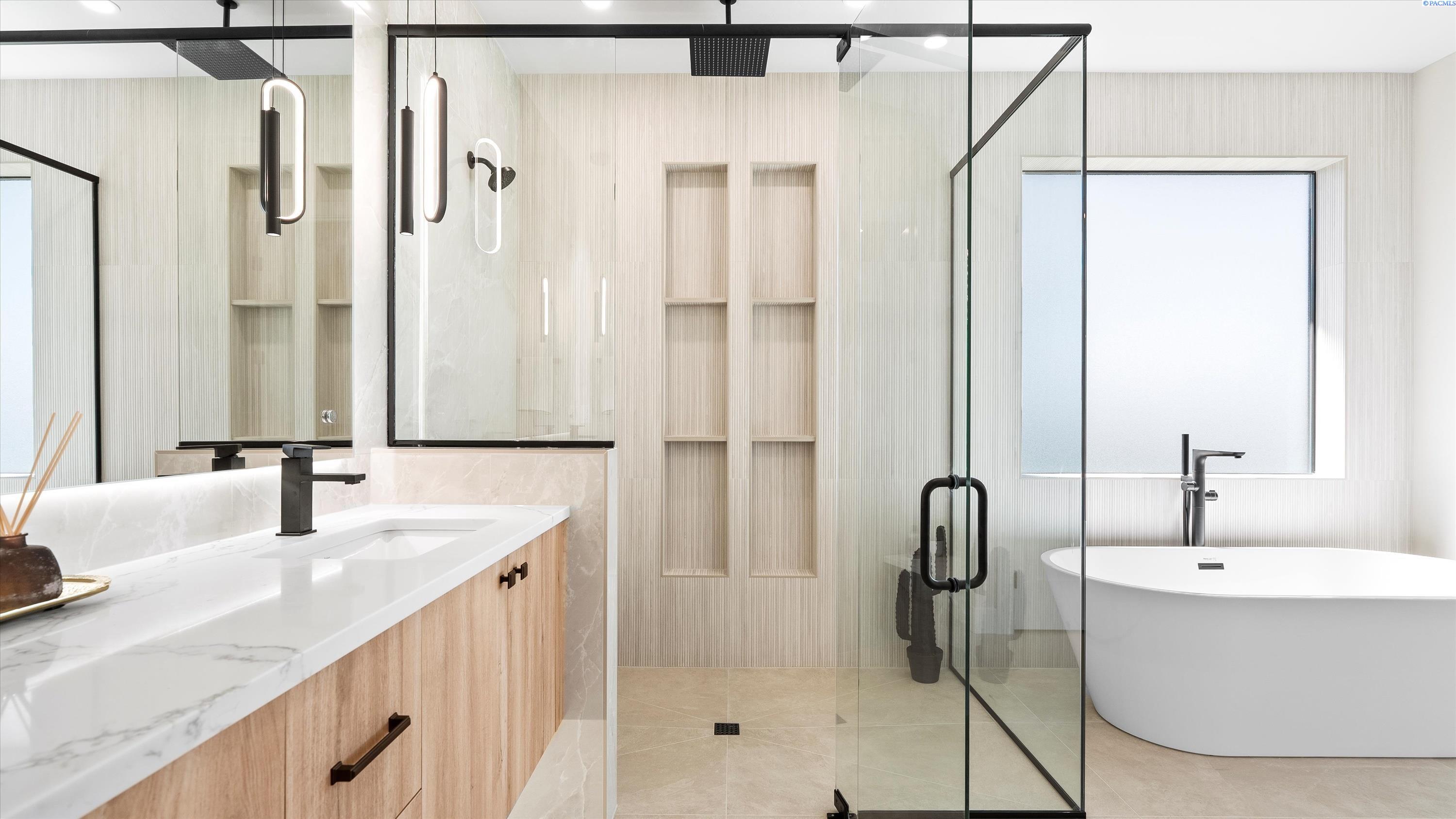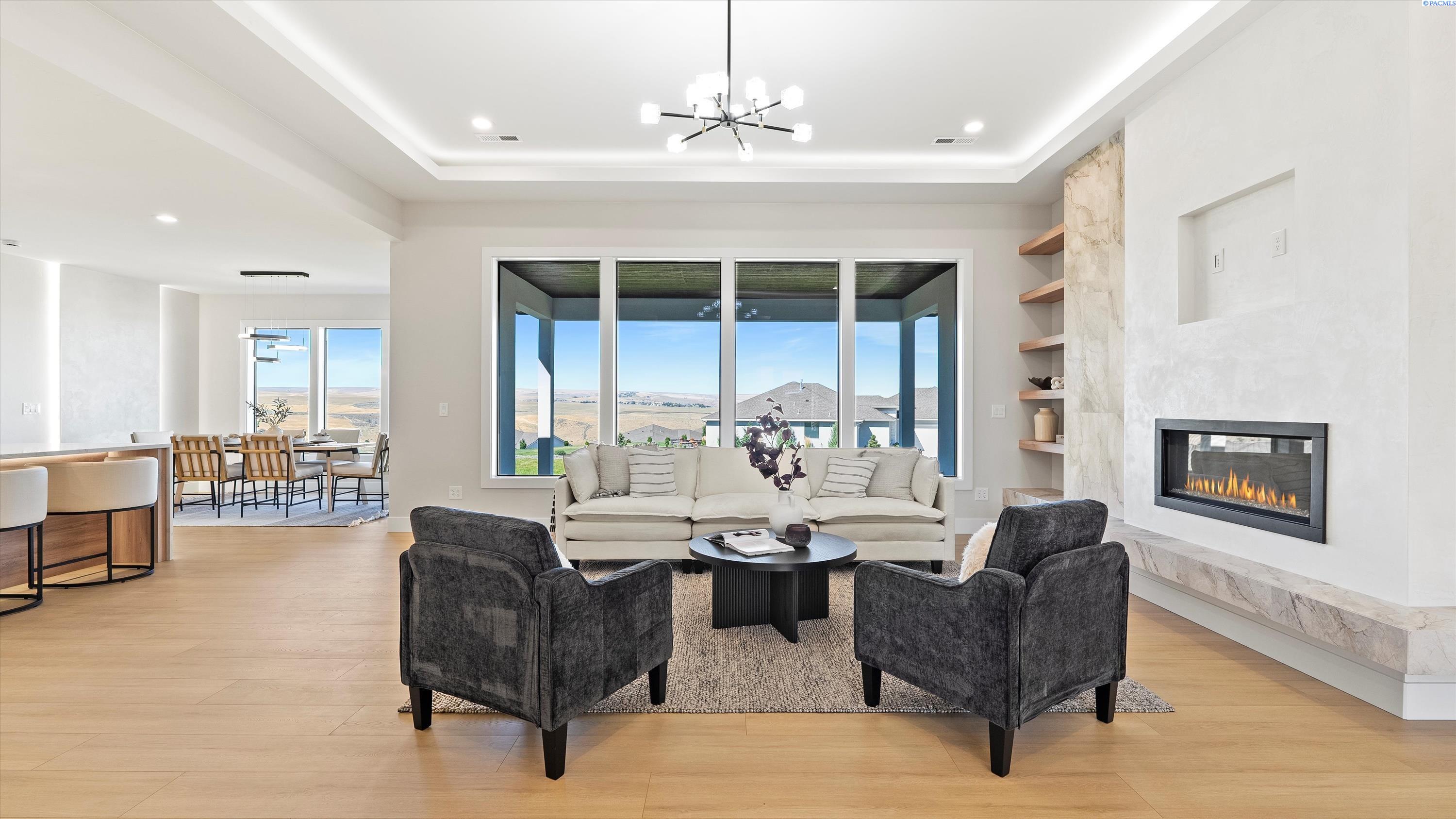 Welcome to Viktory Homes at Southcliffe, where luxury, comfort, and breathtaking views come together in perfect harmony. Step inside to discover soaring ceilings, abundant natural light, and high-end finishes that elevate every detail of this exceptional home. The gourmet kitchen is a chefâs dream, featuring stainless steel appliances, quartz waterfall countertops, a pot filler, custom cabinetry, and a spacious island ideal for entertaining. The open-concept living and dining areas are adorned with durable LVP flooring and expansive windows that flood the space with natural light, creating a warm and inviting atmosphere. The primary suite offers a true retreat, complete with a spa-like ensuite bathroom and a massive walk-in closet. A secondary master suite with a private ensuite bath provides the perfect space for guests or multigenerational living. Step outside to a backyard full of possibilities, with ample room to add a pool and create your own private oasis. The large covered patio extends your living space outdoors and is perfect for year-round enjoyment. Take in the incredible views that make Southcliffe living truly special. Located in one of Kennewickâs most desirable communities, youâll enjoy close proximity to top-rated schools, shopping, dining, and outdoor recreation, including golf, hiking trails and more! Donât miss your chance to own this stunning homeâcontact your favorite agent today to schedule a private tour.