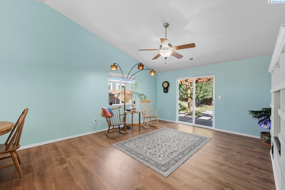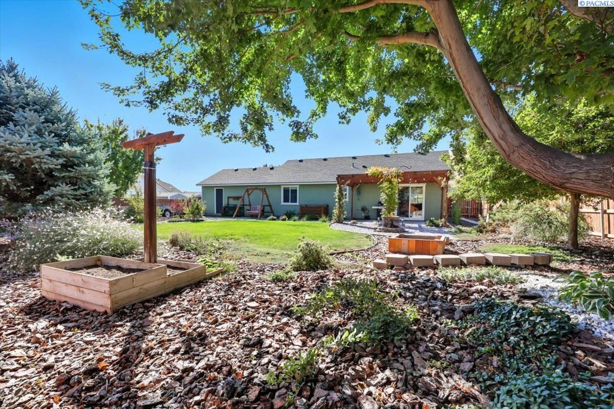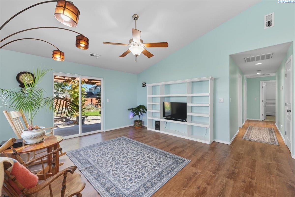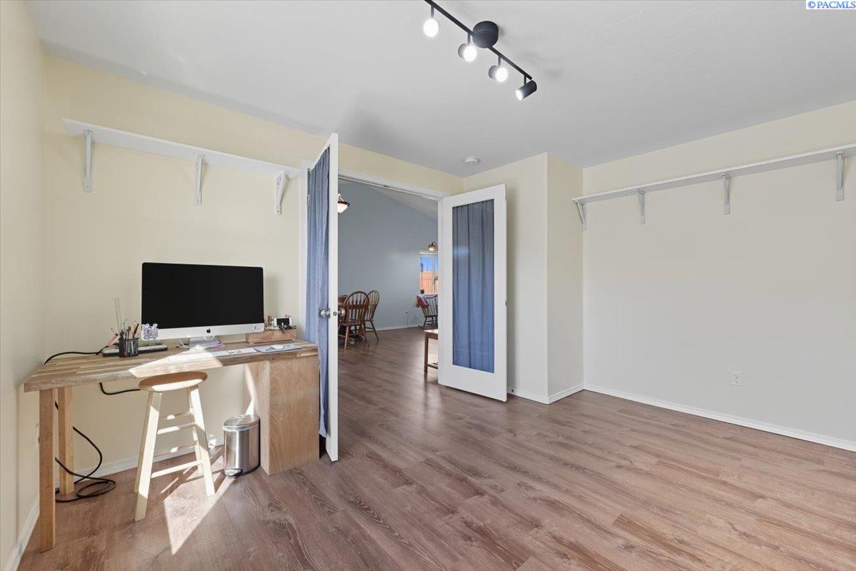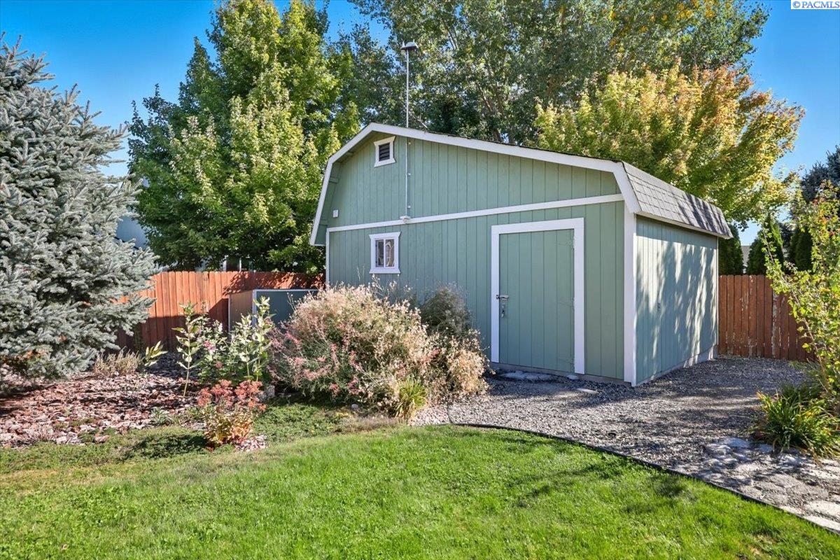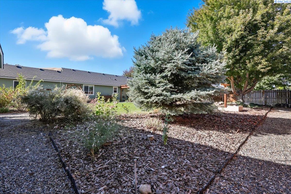 Welcome home to this charming West Richland rambler featuring 3 bedrooms and 2 bathrooms. Enjoy easy-care landscaping, fresh exterior paint, and convenient RV parking. Inside, youâll find beautiful wood LVP flooring throughout, vaulted ceilings, and an open-concept layout that connects the kitchen, dining, and living areas. The kitchen includes all appliancesâplus a newer refrigerator, dishwasher, faucet, tile backsplash, and laminate counters. The versatile front room with French doors can serve as an office or additional bedroom. Interior paint is fresh and bright. The main bath features a vanity with a tub and surround, while the primary suite offers dual closets and a bath with new shower doors and dual sinks. The laundry room leads directly to the 2 car garage with a sink and includes a newer hot water heater. Step outside to your backyard oasis with a covered patio and a 22x16 shop complete with a loft. Surrounded by beautiful Native plants, this property offers comfort, functionality, and tranquility all in one.