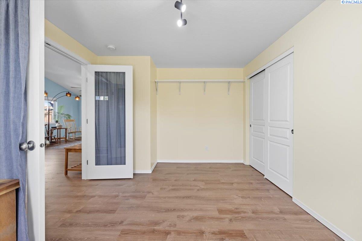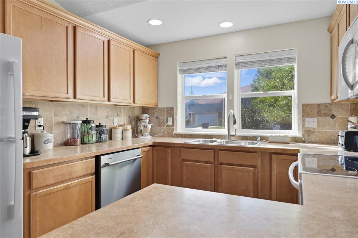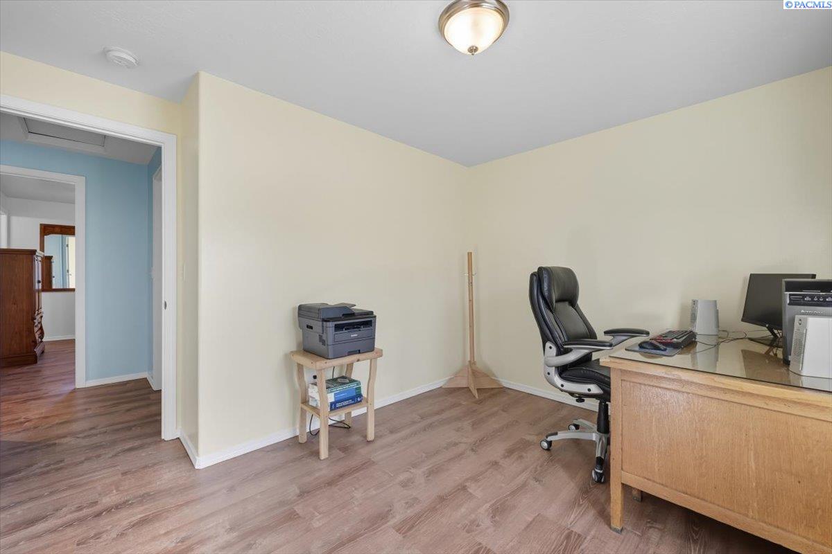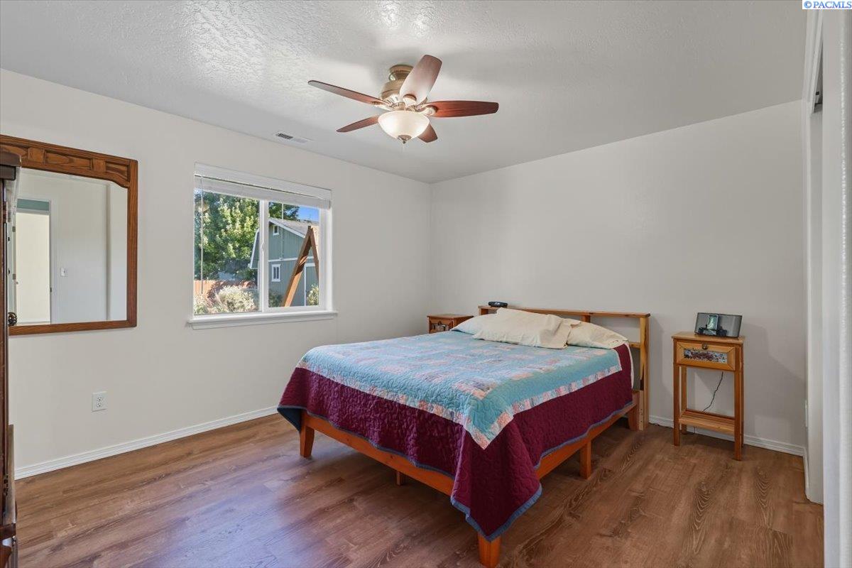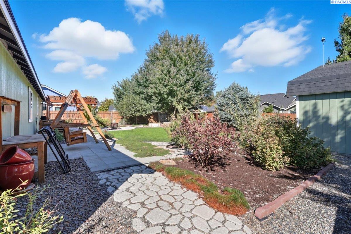 Welcome home to this charming West Richland rambler featuring 3 bedrooms and 2 bathrooms. Enjoy easy-care landscaping, fresh exterior paint, and convenient RV parking. Inside, youâll find beautiful wood LVP flooring throughout, vaulted ceilings, and an open-concept layout that connects the kitchen, dining, and living areas. The kitchen includes all appliancesâplus a newer refrigerator, dishwasher, faucet, tile backsplash, and laminate counters. The versatile front room with French doors can serve as an office or additional bedroom. Interior paint is fresh and bright. The main bath features a vanity with a tub and surround, while the primary suite offers dual closets and a bath with new shower doors and dual sinks. The laundry room leads directly to the 2 car garage with a sink and includes a newer hot water heater. Step outside to your backyard oasis with a covered patio and a 22x16 shop complete with a loft. Surrounded by beautiful Native plants, this property offers comfort, functionality, and tranquility all in one.