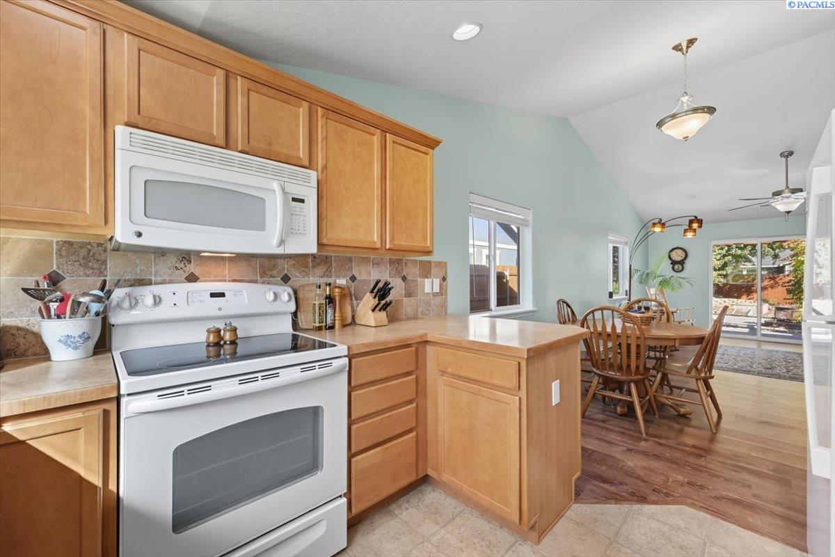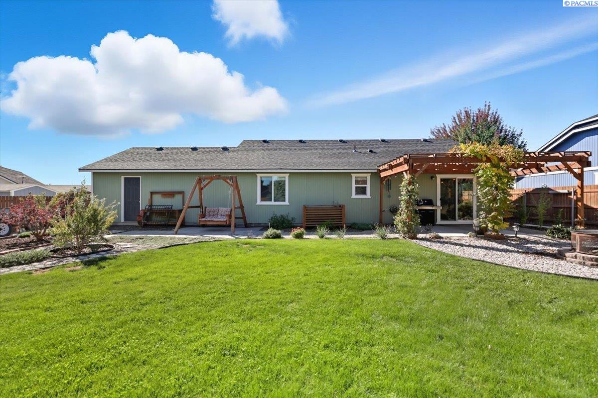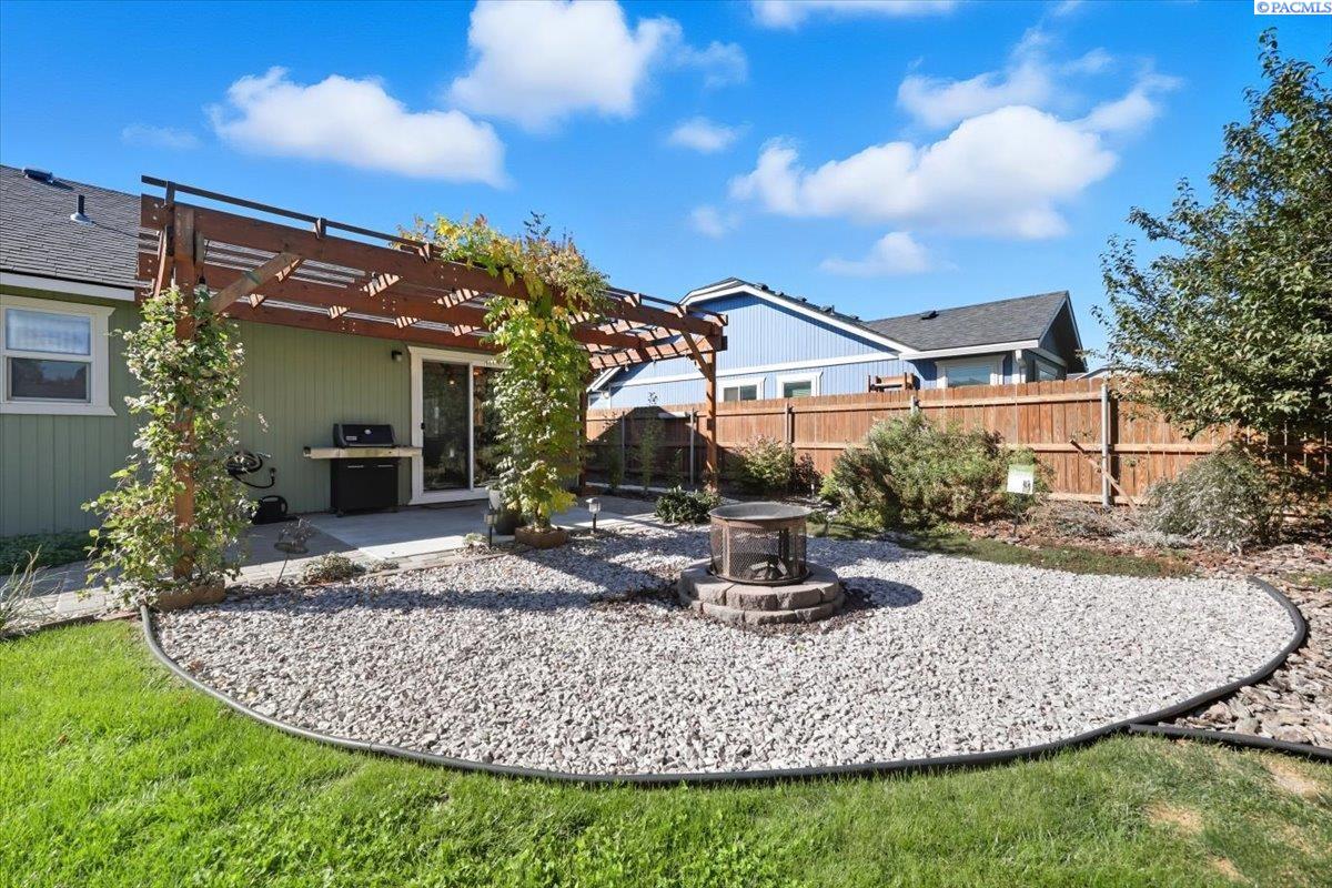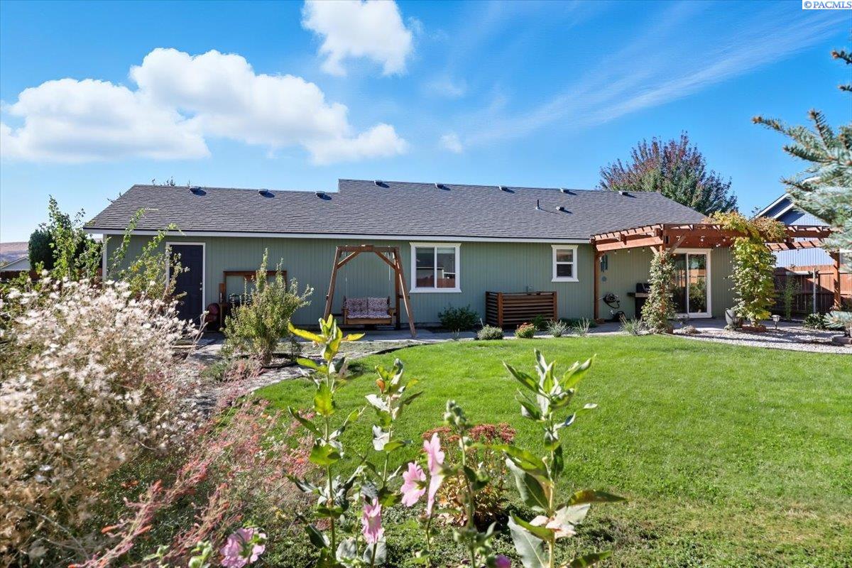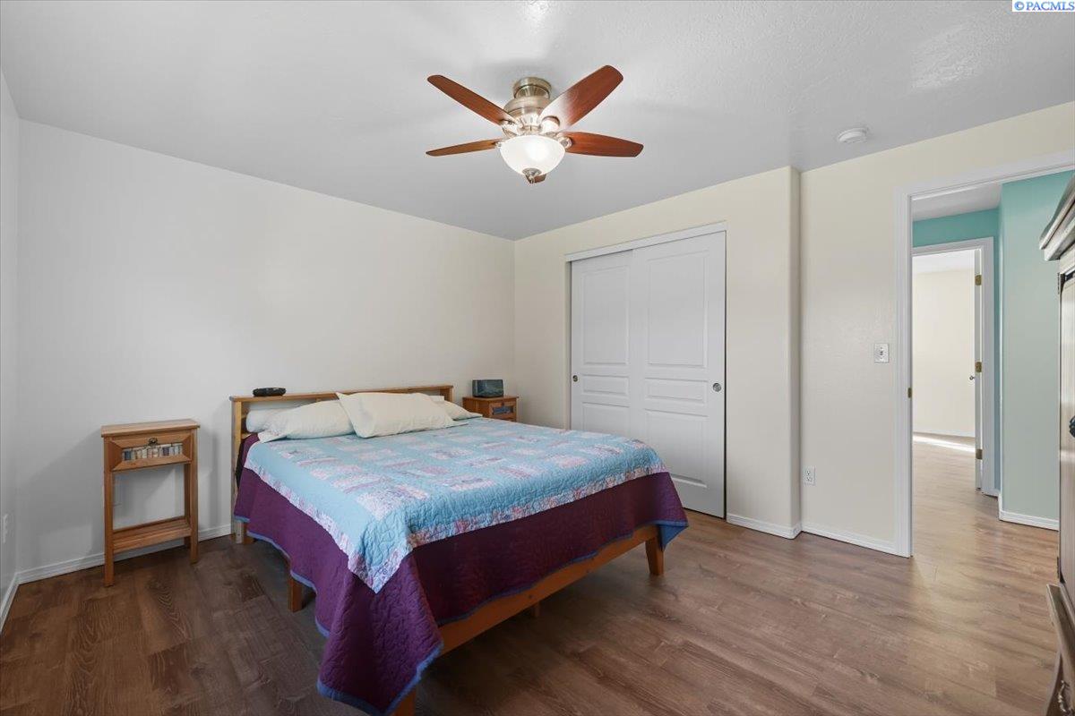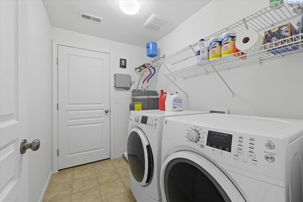 Welcome home to this charming West Richland rambler featuring 3 bedrooms and 2 bathrooms. Enjoy easy-care landscaping, fresh exterior paint, and convenient RV parking. Inside, youâll find beautiful wood LVP flooring throughout, vaulted ceilings, and an open-concept layout that connects the kitchen, dining, and living areas. The kitchen includes all appliancesâplus a newer refrigerator, dishwasher, faucet, tile backsplash, and laminate counters. The versatile front room with French doors can serve as an office or additional bedroom. Interior paint is fresh and bright. The main bath features a vanity with a tub and surround, while the primary suite offers dual closets and a bath with new shower doors and dual sinks. The laundry room leads directly to the 2 car garage with a sink and includes a newer hot water heater. Step outside to your backyard oasis with a covered patio and a 22x16 shop complete with a loft. Surrounded by beautiful Native plants, this property offers comfort, functionality, and tranquility all in one.