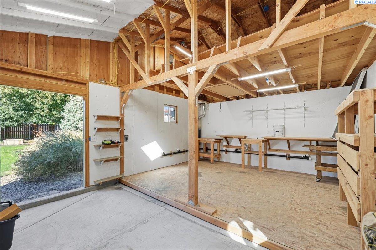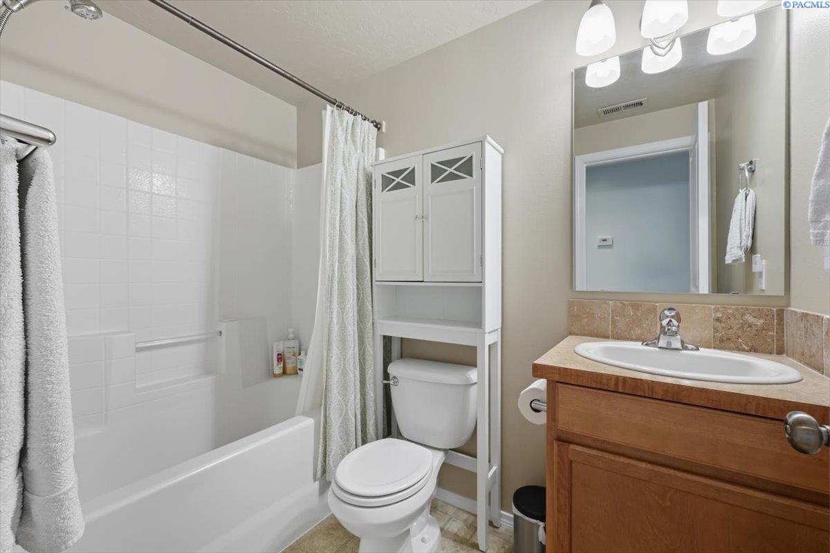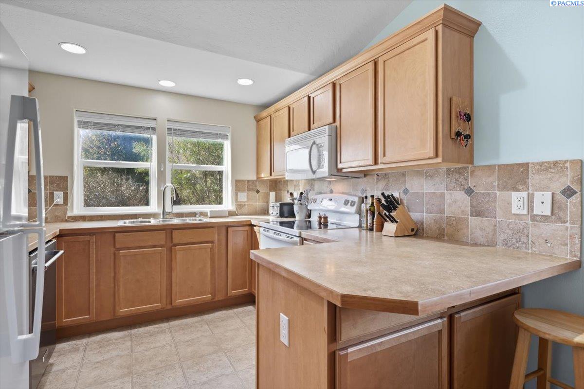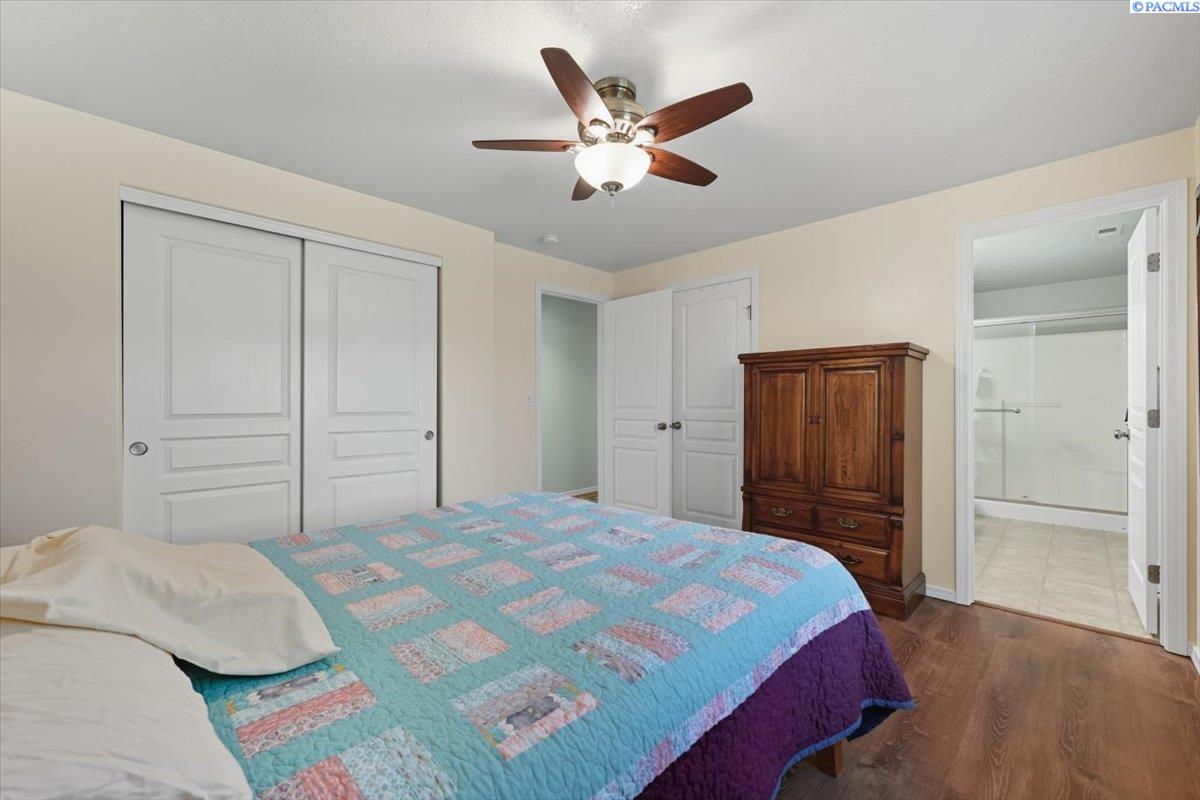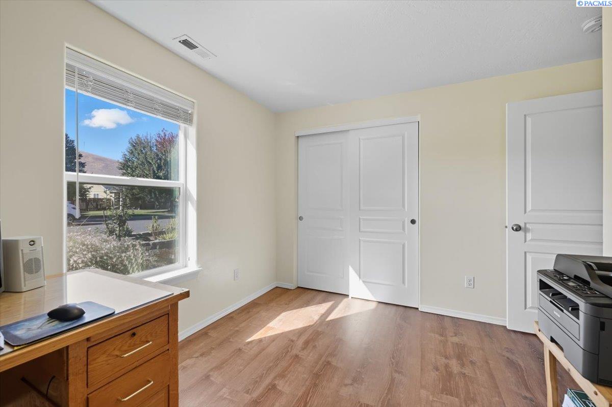 Welcome home to this charming West Richland rambler featuring 3 bedrooms and 2 bathrooms. Enjoy easy-care landscaping, fresh exterior paint, and convenient RV parking. Inside, youâll find beautiful wood LVP flooring throughout, vaulted ceilings, and an open-concept layout that connects the kitchen, dining, and living areas. The kitchen includes all appliancesâplus a newer refrigerator, dishwasher, faucet, tile backsplash, and laminate counters. The versatile front room with French doors can serve as an office or additional bedroom. Interior paint is fresh and bright. The main bath features a vanity with a tub and surround, while the primary suite offers dual closets and a bath with new shower doors and dual sinks. The laundry room leads directly to the 2 car garage with a sink and includes a newer hot water heater. Step outside to your backyard oasis with a covered patio and a 22x16 shop complete with a loft. Surrounded by beautiful Native plants, this property offers comfort, functionality, and tranquility all in one.