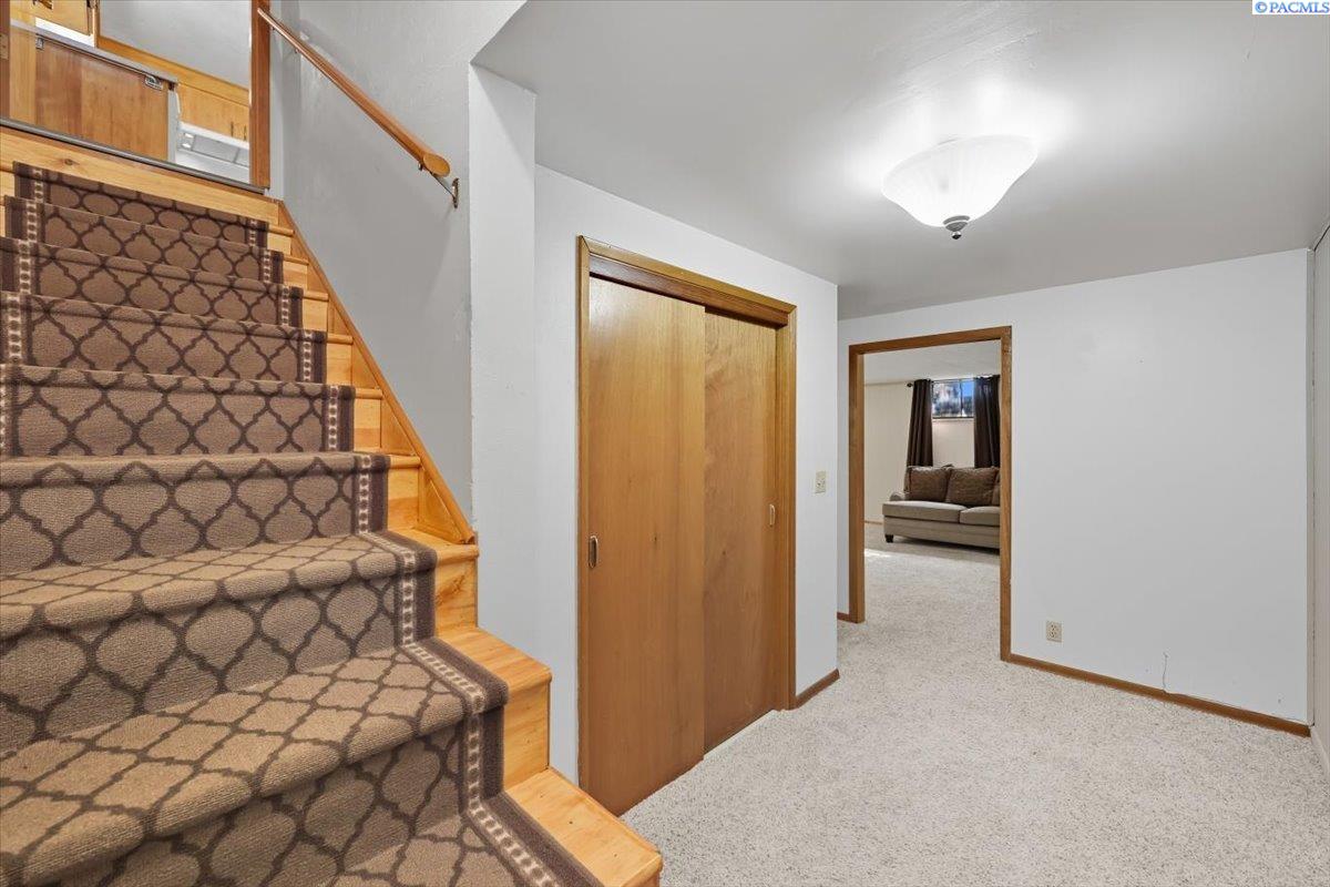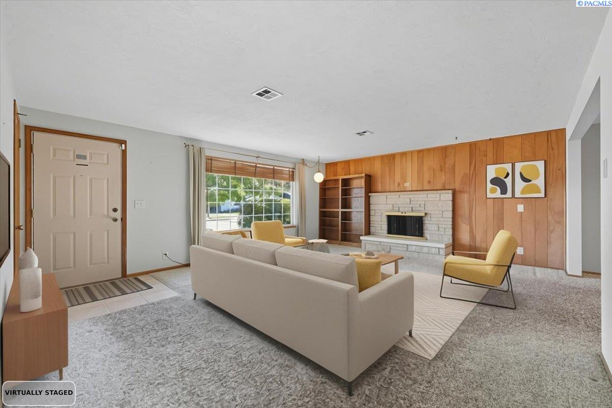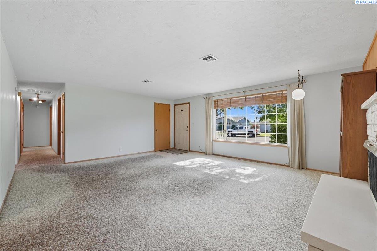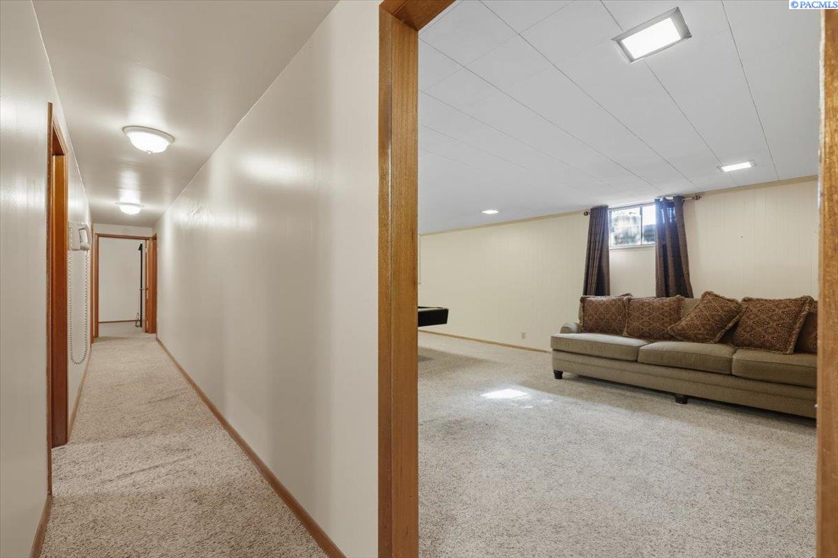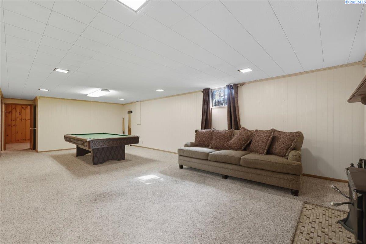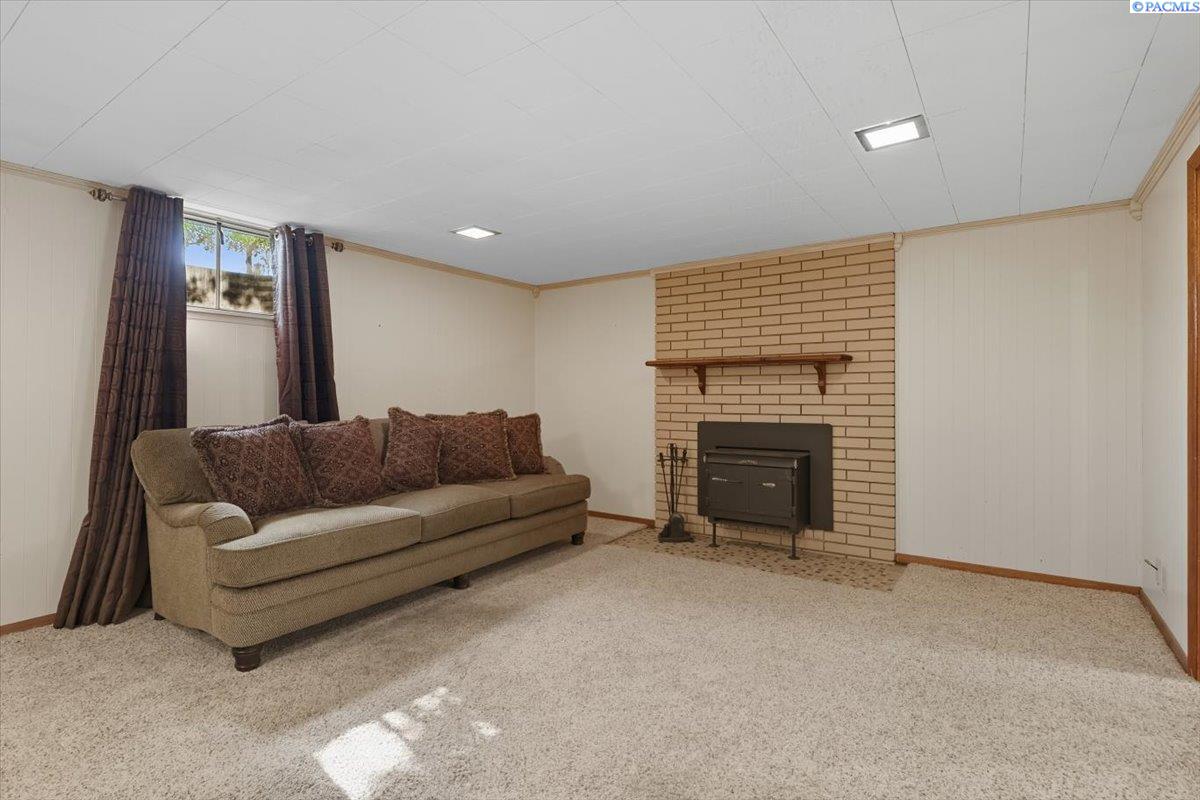 Spacious Richland Rambler Basement with 5 Bedrooms and 3 Baths Located in a desirable Richland neighborhood. This charming rambler with a basement offers plenty of space and timeless appeal. Featuring five bedrooms and three bathrooms, this home boasts great curb appeal and an oversized garage with room for up to four carsâideal for a workshop, hobby space, or extra storage. The main level features a spacious living room with a wood-burning fireplace and a formal dining room with built-in hutches. The kitchen is well-equipped with wood cabinetry, a large sink and new garbage disposal, wall oven, cooktop, dishwasher, and refrigeratorâall included. Original hardwood floors lie beneath the carpet, offering the opportunity to showcase the homeâs mid-century character. Three bedrooms are located on the main level, one featuring exposed hardwood flooring, and the primary bedroom includes a convenient bathroom. Downstairs, the basement expands your living space with two additional bedrooms, a full bath, laundry room with washer and dryer, a large family or rec room, and plenty of storage options. This flexible layout is perfect for multigenerational living, guests, or a home office setup.Outside you will enjoy the patio with pergola and landscaped fenced yard. Back yard is equipped with underground timed sprinklers. Updates include newer kitchen flooring, additional insulation in attic, Trane HVAC unit, and toilets. This home has been well taken care of and is the perfect family home! Don't miss this one.