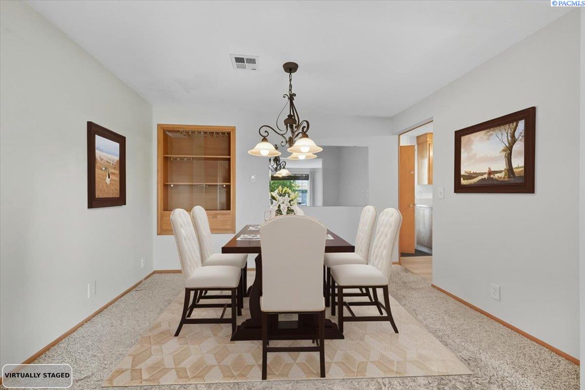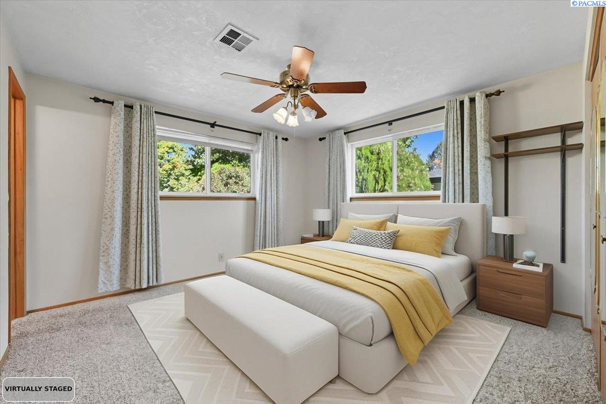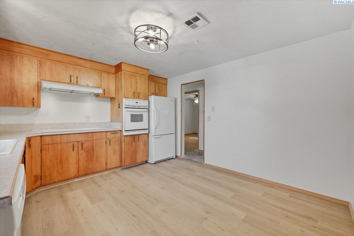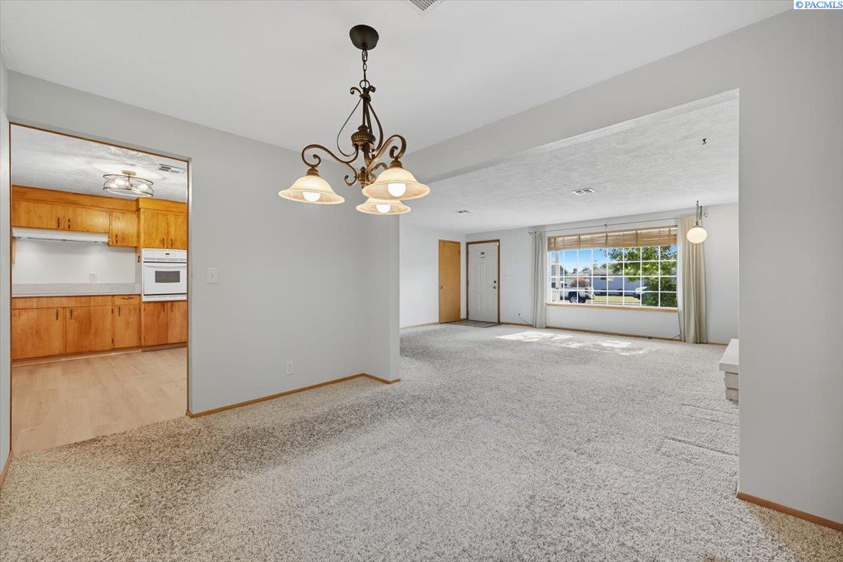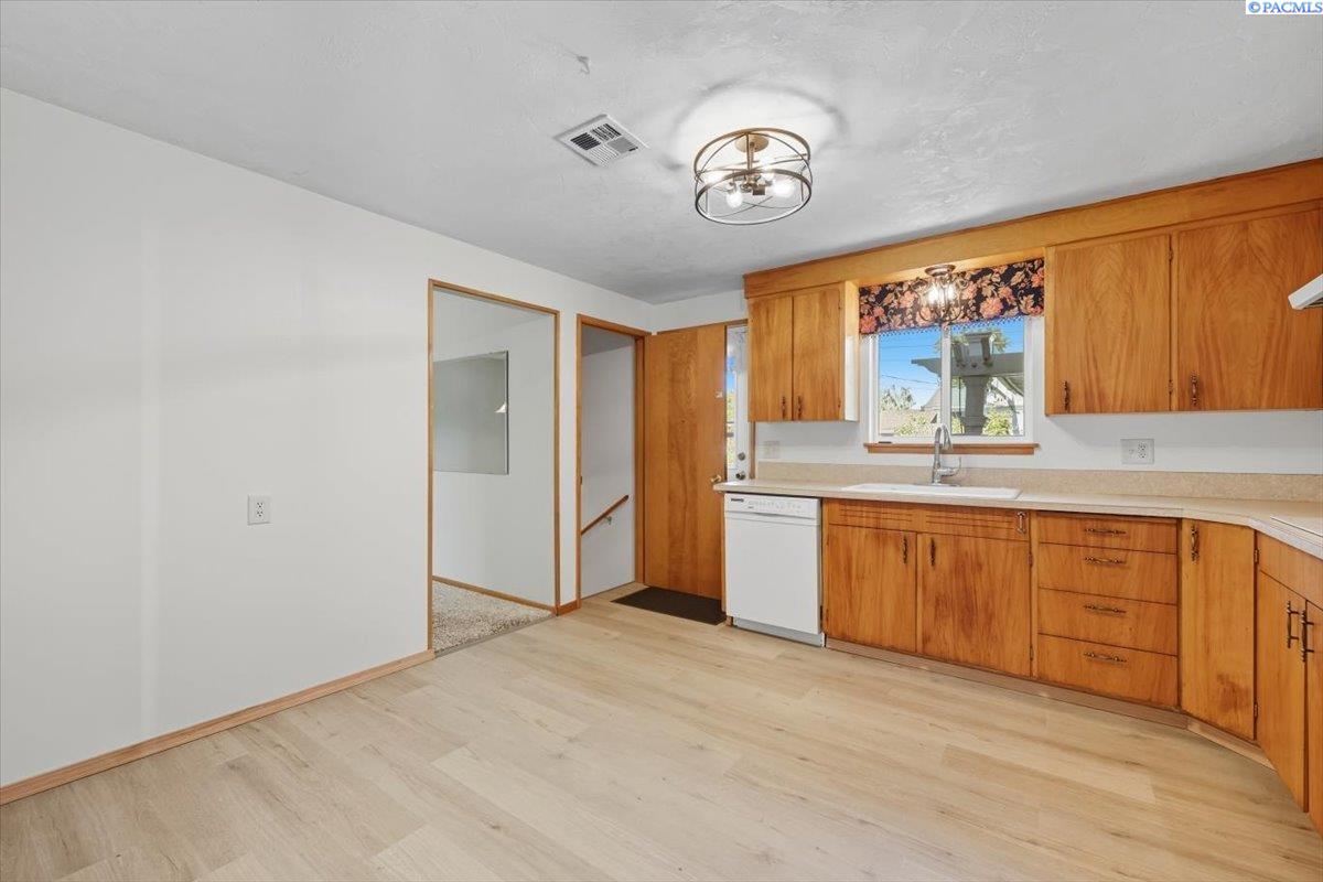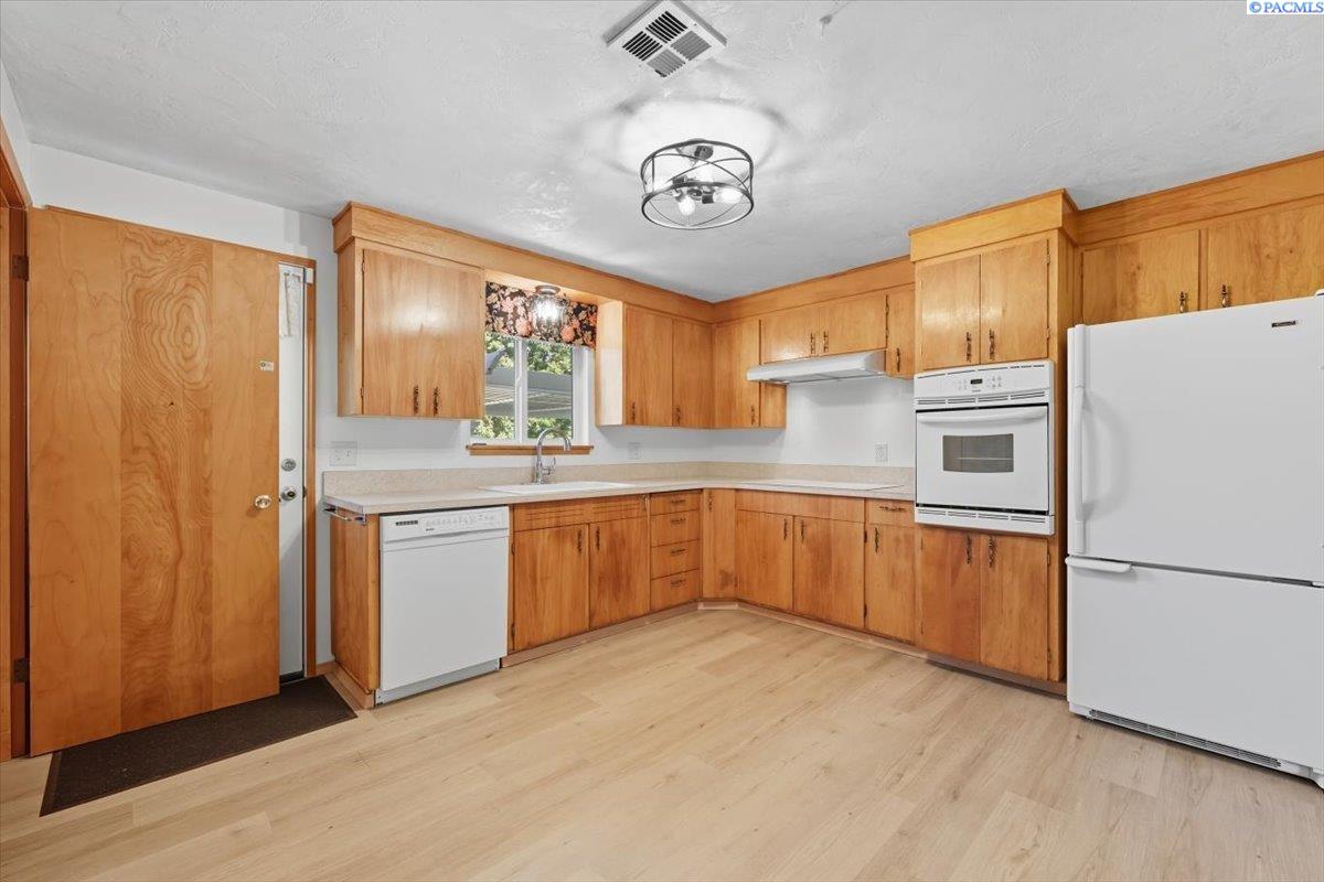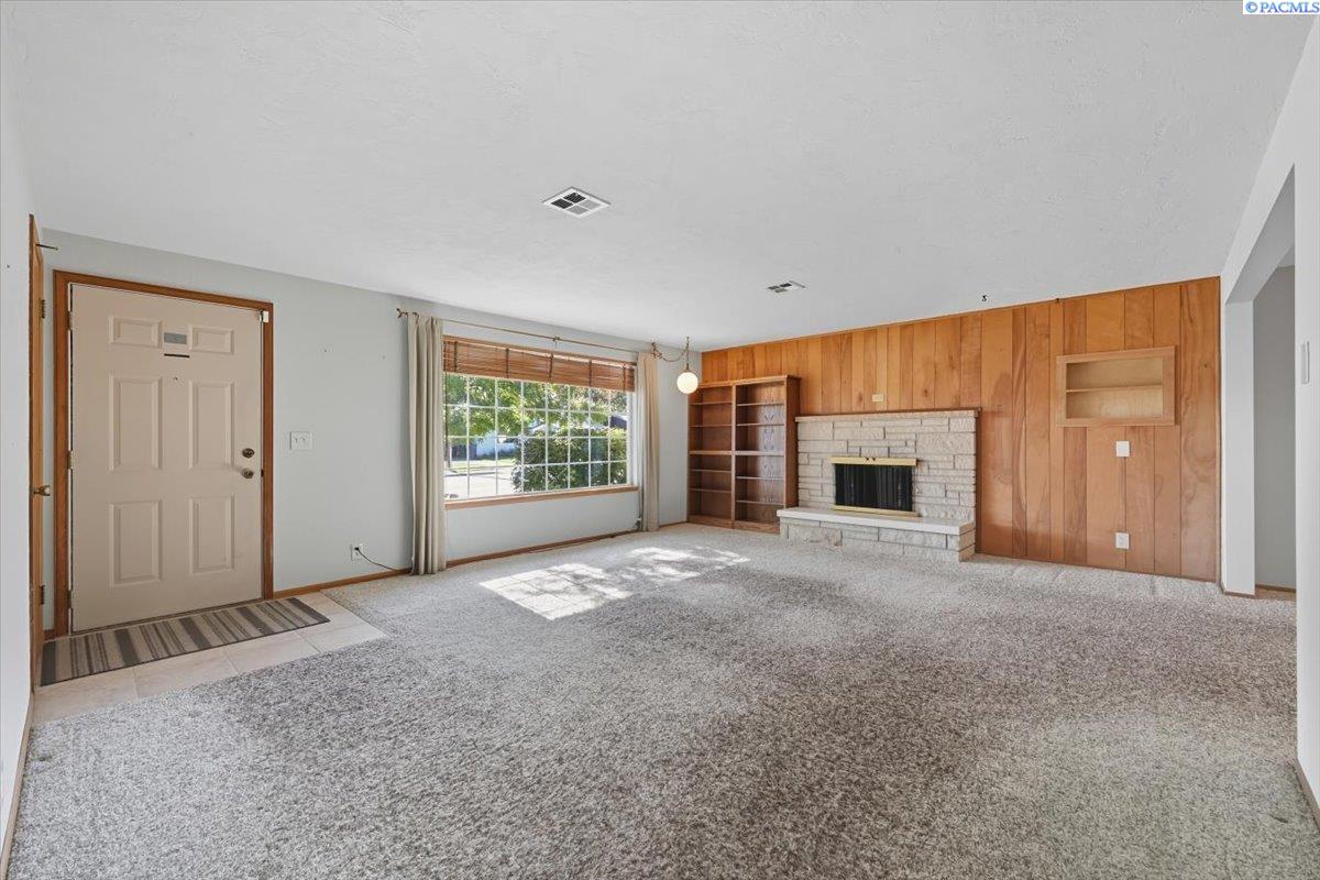 Spacious Richland Rambler Basement with 5 Bedrooms and 3 Baths Located in a desirable Richland neighborhood. This charming rambler with a basement offers plenty of space and timeless appeal. Featuring five bedrooms and three bathrooms, this home boasts great curb appeal and an oversized garage with room for up to four carsâideal for a workshop, hobby space, or extra storage. The main level features a spacious living room with a wood-burning fireplace and a formal dining room with built-in hutches. The kitchen is well-equipped with wood cabinetry, a large sink and new garbage disposal, wall oven, cooktop, dishwasher, and refrigeratorâall included. Original hardwood floors lie beneath the carpet, offering the opportunity to showcase the homeâs mid-century character. Three bedrooms are located on the main level, one featuring exposed hardwood flooring, and the primary bedroom includes a convenient bathroom. Downstairs, the basement expands your living space with two additional bedrooms, a full bath, laundry room with washer and dryer, a large family or rec room, and plenty of storage options. This flexible layout is perfect for multigenerational living, guests, or a home office setup.Outside you will enjoy the patio with pergola and landscaped fenced yard. Back yard is equipped with underground timed sprinklers. Updates include newer kitchen flooring, additional insulation in attic, Trane HVAC unit, and toilets. This home has been well taken care of and is the perfect family home! Don't miss this one.