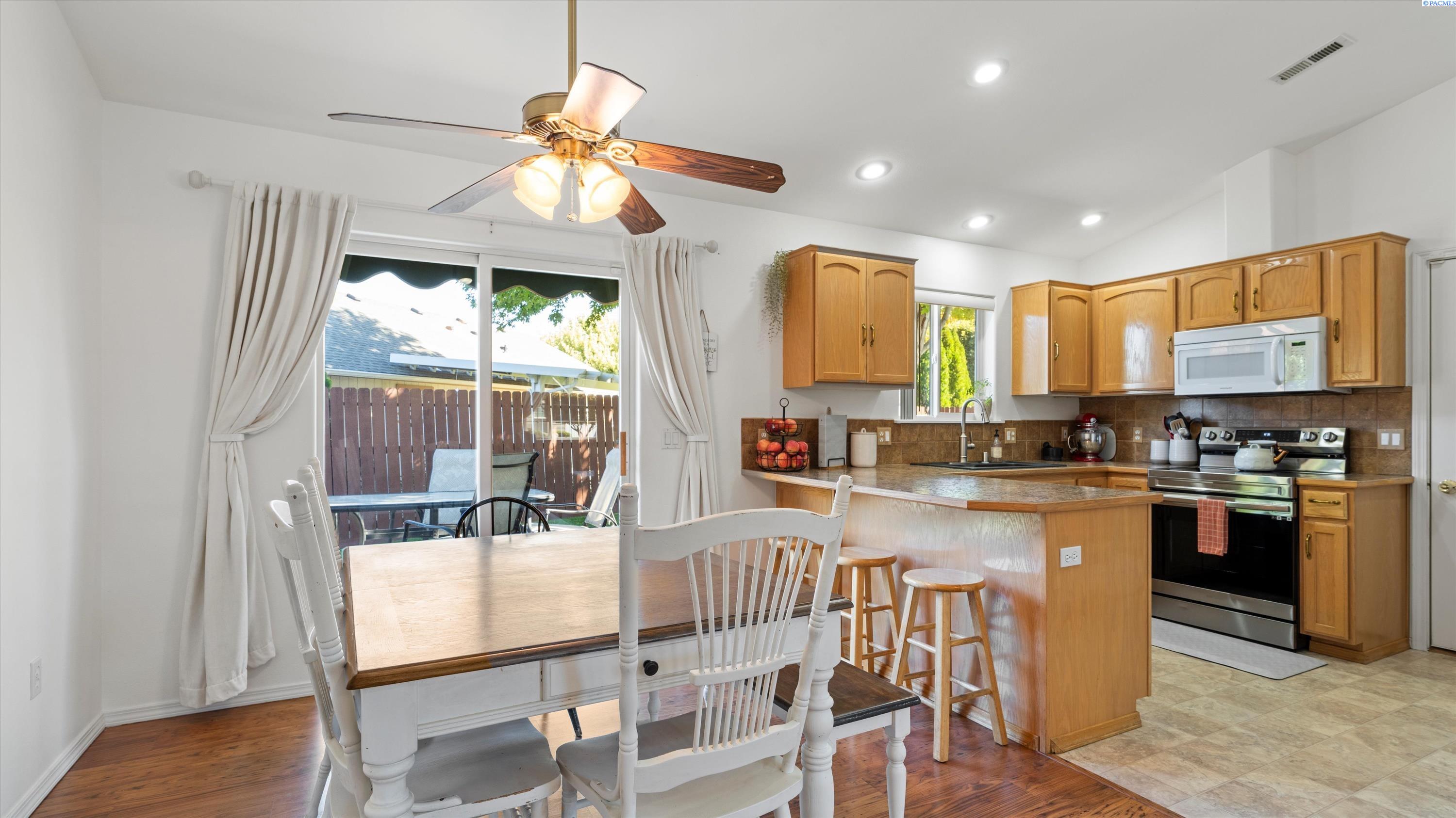 MLS# 288078 This is the one!!! Talk about prime location- amazing West Kennewick spot - walk to the park, school, library OR amazing coffee and food at Cafe Magnolia! This well-maintained 3-bed, 2-bath rambler offering 1,238 sq ft is tucked away on a corner lot in a cul-de-sac so no through traffic and yet just moments from schools, restaurants, shopping, and the library! This home perfectly blends home, play, and convenience. Step inside to a bright, functional layout featuring a spacious living area, convenient dining area and kitchen with a breakfast bar and pantry. Three comfortable bedrooms with generous closets provide plenty of storage and flexibility. Outside, the fully fenced yard is ideal for gatherings or a quiet afternoon in your shaded retreatâwith a patio for relaxing, a mature tree perfect for climbing or swinging and storage shed to keep that garage from being cluttered with yard tools! The extended garage offers extra storage, and the new roof (installed October 2025) provides added peace of mind. Additional highlights include a gas water heater and a completed pre-inspection along with serviced HVAC, making this home truly move-in ready. Pride of ownership and location, location, location truly shines here!