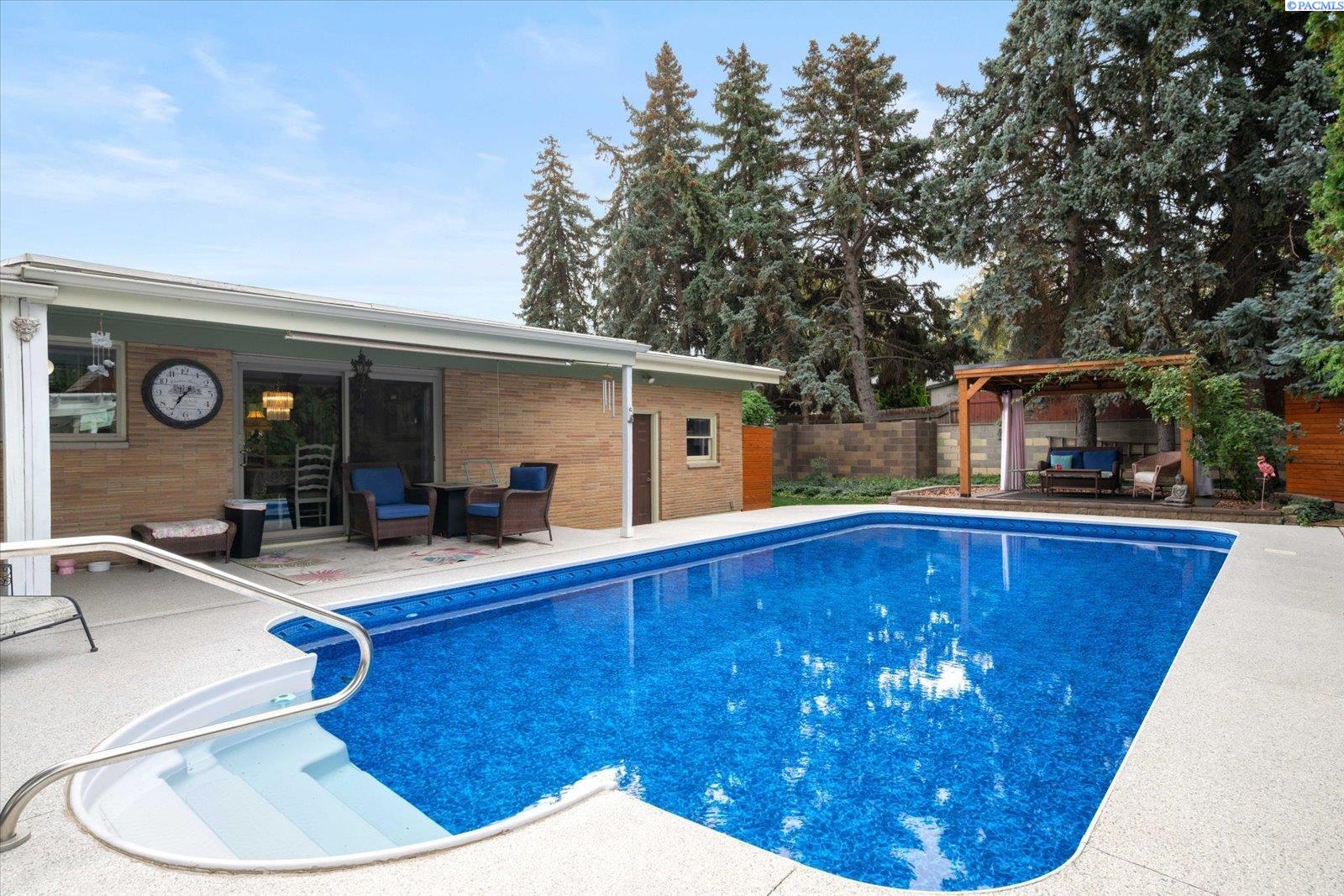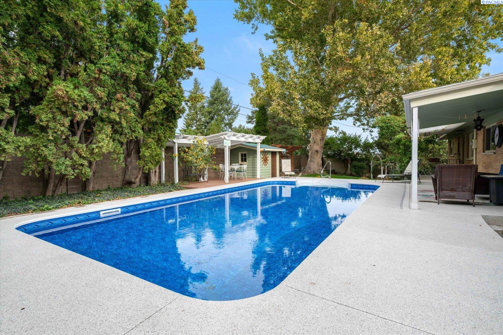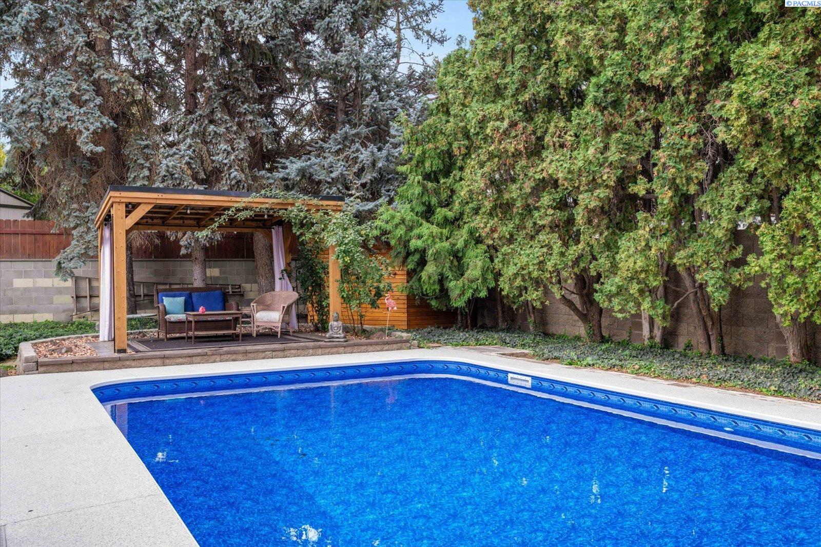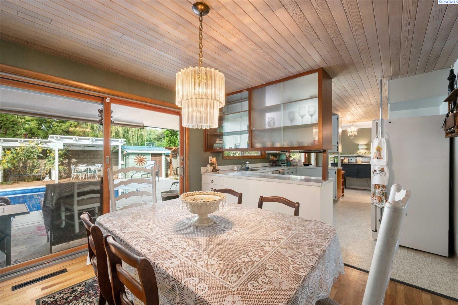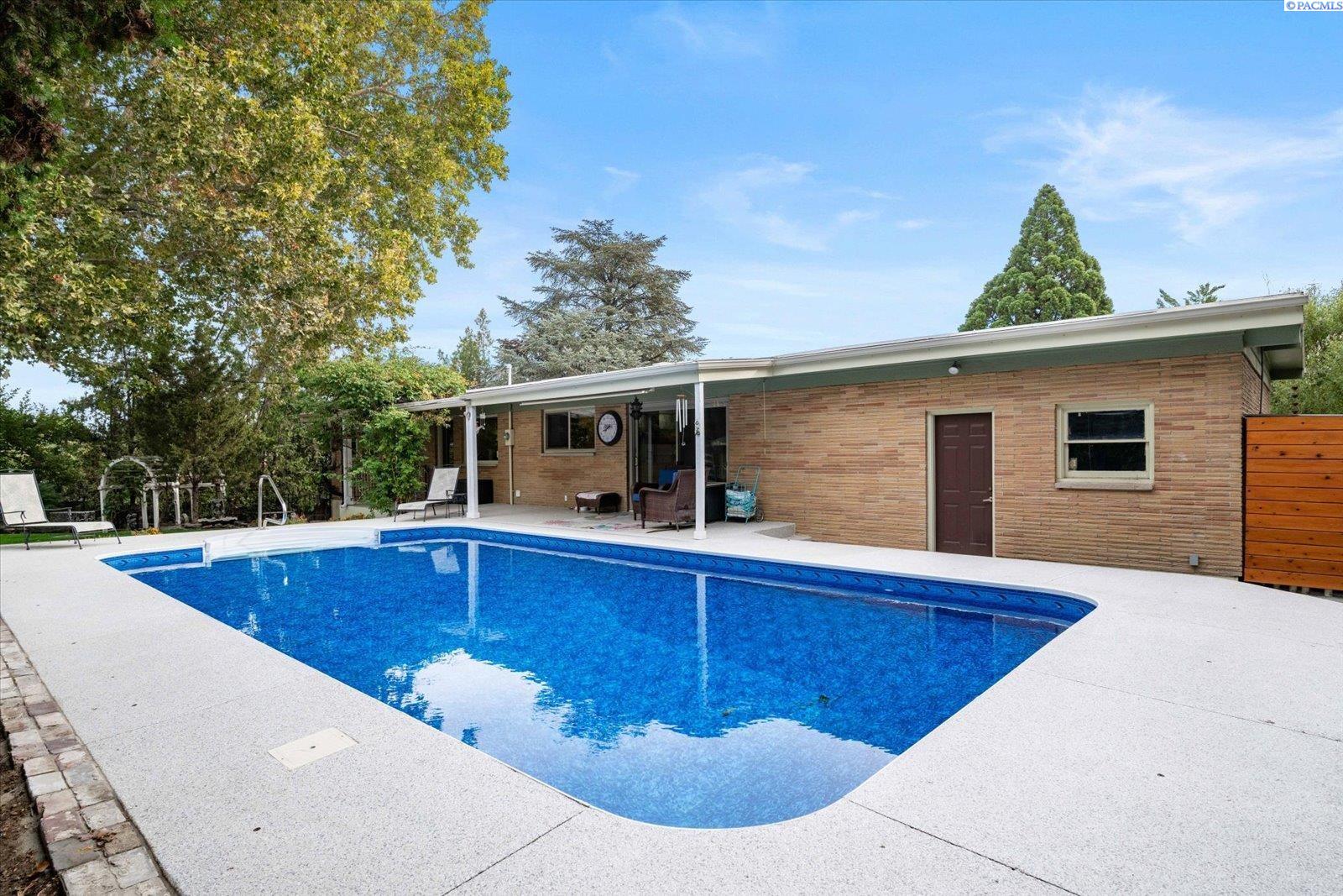 MLS# 288099 Lovingly maintained, this charming mid-century gem seamlessly blends nostalgic character with thoughtful modern updates. Step inside to discover the home's signature wood-planked ceilings and beautifully refinished original hardwood floors that set the stage for comfortable living. The heart of this home celebrates its era with preserved original tile work that remains as attractive today as when first installed, while the master suite now features a brand-new custom cultured marble shower.Major systems have been comprehensively updated for peace of mind, including a new gas furnace with central air, updated plumbing throughout, a newer TPO roof, and a complete sewer line replacement from home to street.The outdoor spaces are truly exceptionalâbegin your relaxation in the secluded brick paver courtyard featuring a hot tub, perfect for unwinding after a long day while surrounded by mature landscaping that ensures complete privacy. Beyond the courtyard, the backyard oasis boasts a stunning in-ground pool installed just two years ago, offering the perfect retreat for creating new memories while enjoying serene NE Kennewick views.This isn't just a house with great bones and smart upgradesâit's a home where vintage charm meets modern comfort, ready to welcome its next chapter of love and laughter.
