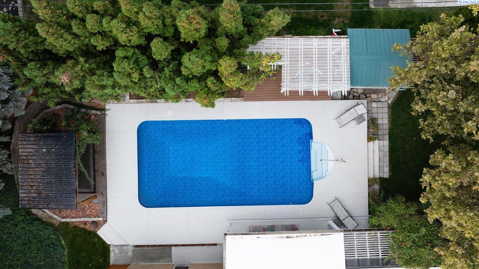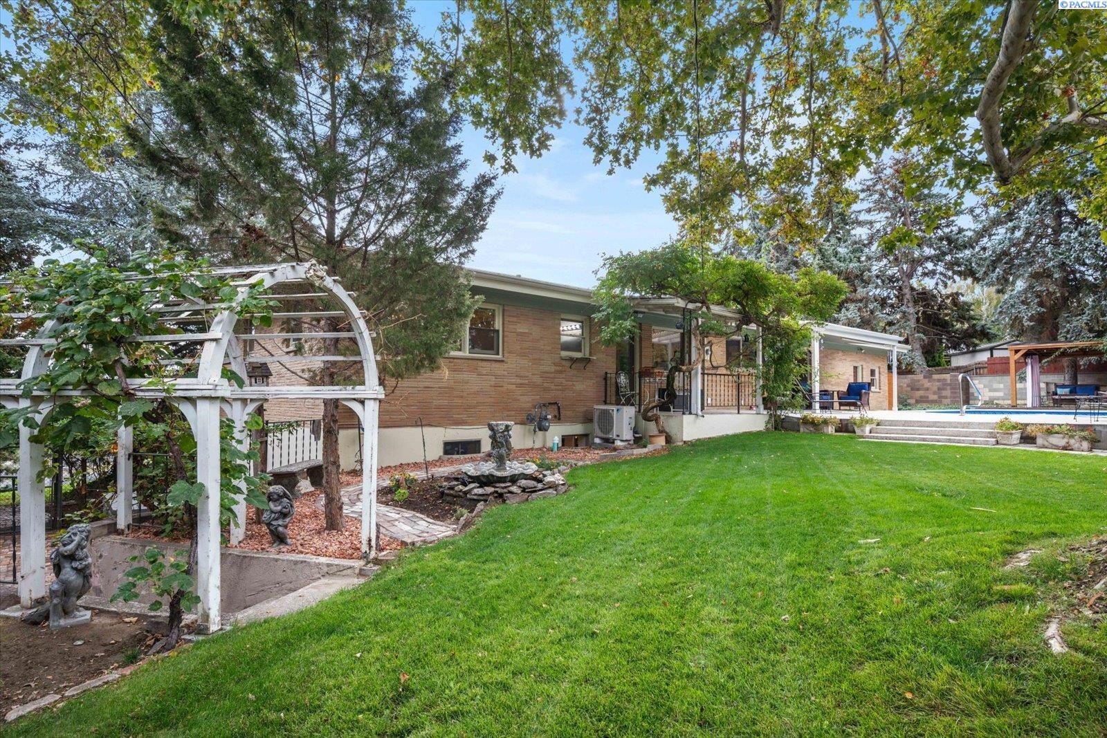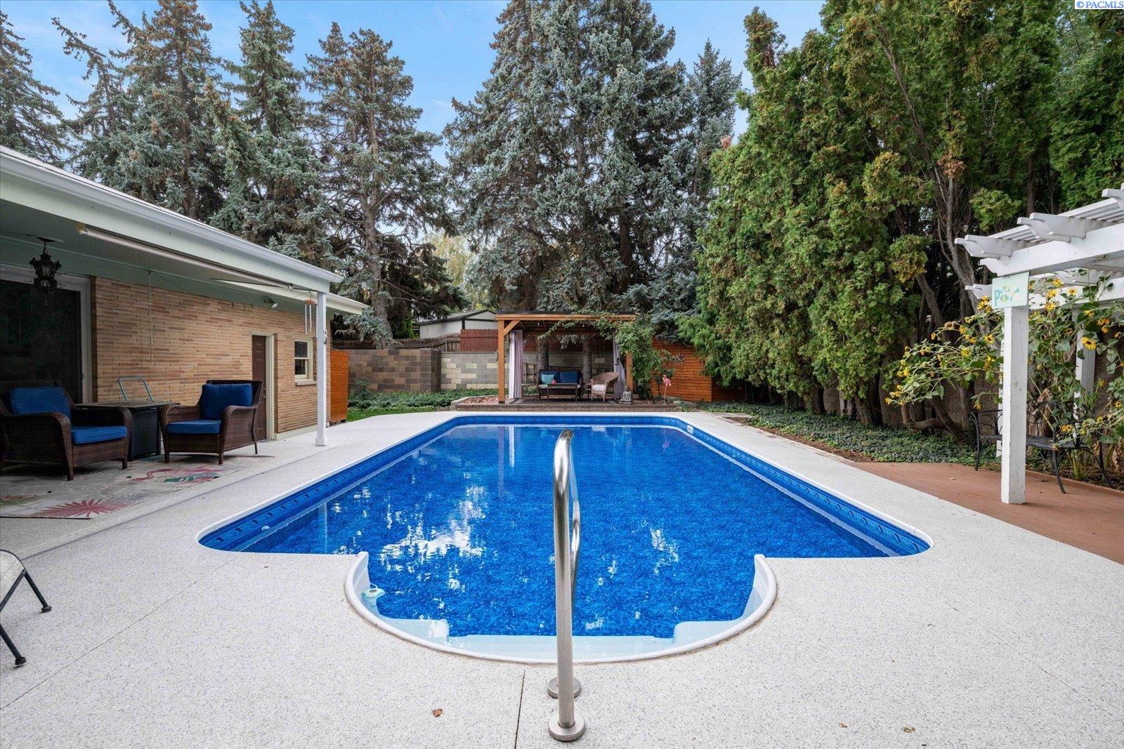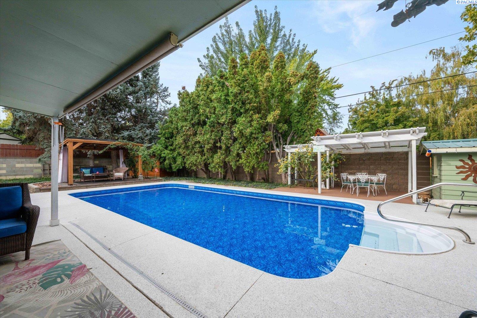 MLS# 288099 Lovingly maintained, this charming mid-century gem seamlessly blends nostalgic character with thoughtful modern updates. Step inside to discover the home's signature wood-planked ceilings and beautifully refinished original hardwood floors that set the stage for comfortable living. The heart of this home celebrates its era with preserved original tile work that remains as attractive today as when first installed, while the master suite now features a brand-new custom cultured marble shower.Major systems have been comprehensively updated for peace of mind, including a new gas furnace with central air, updated plumbing throughout, a newer TPO roof, and a complete sewer line replacement from home to street.The outdoor spaces are truly exceptionalâbegin your relaxation in the secluded brick paver courtyard featuring a hot tub, perfect for unwinding after a long day while surrounded by mature landscaping that ensures complete privacy. Beyond the courtyard, the backyard oasis boasts a stunning in-ground pool installed just two years ago, offering the perfect retreat for creating new memories while enjoying serene NE Kennewick views.This isn't just a house with great bones and smart upgradesâit's a home where vintage charm meets modern comfort, ready to welcome its next chapter of love and laughter.