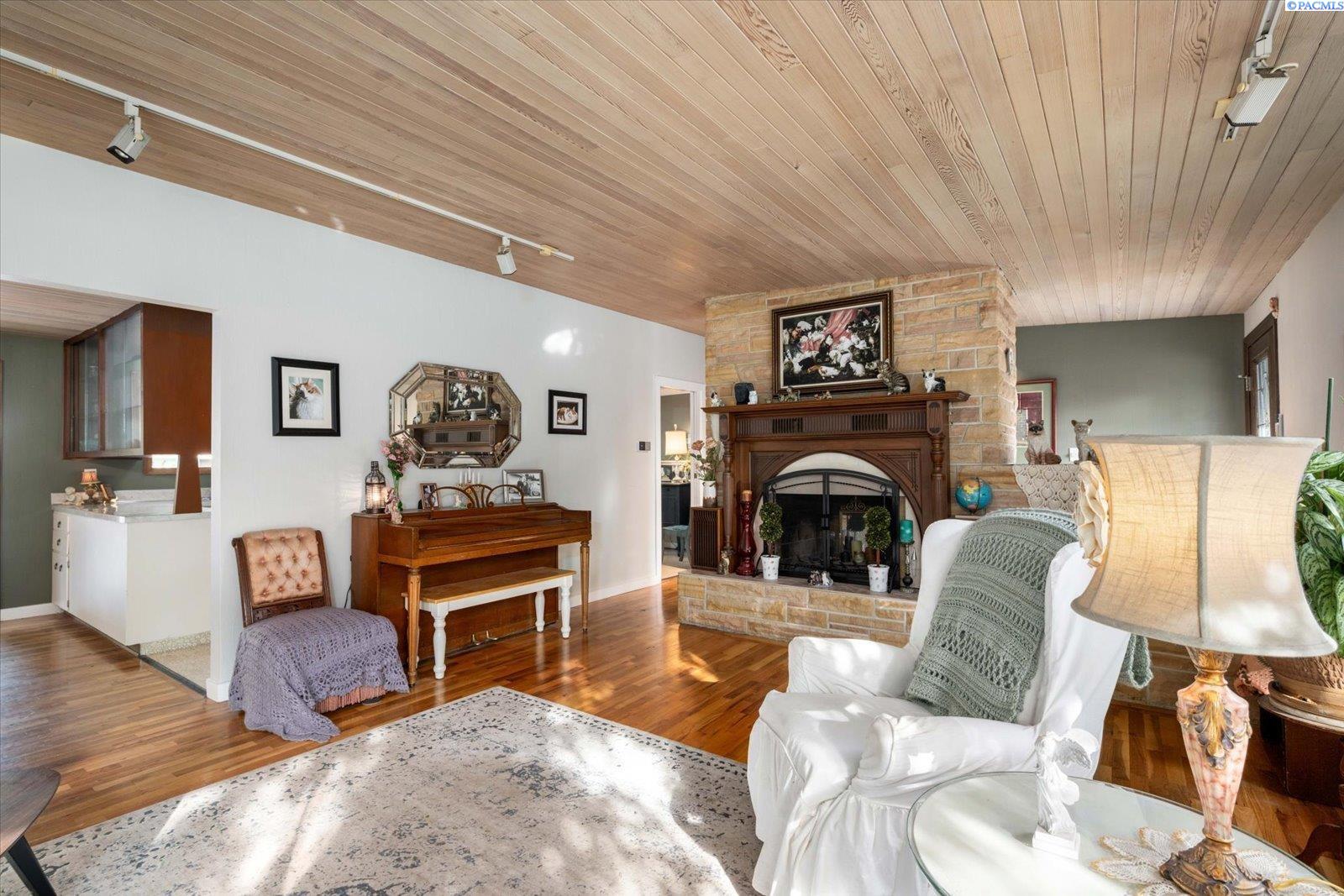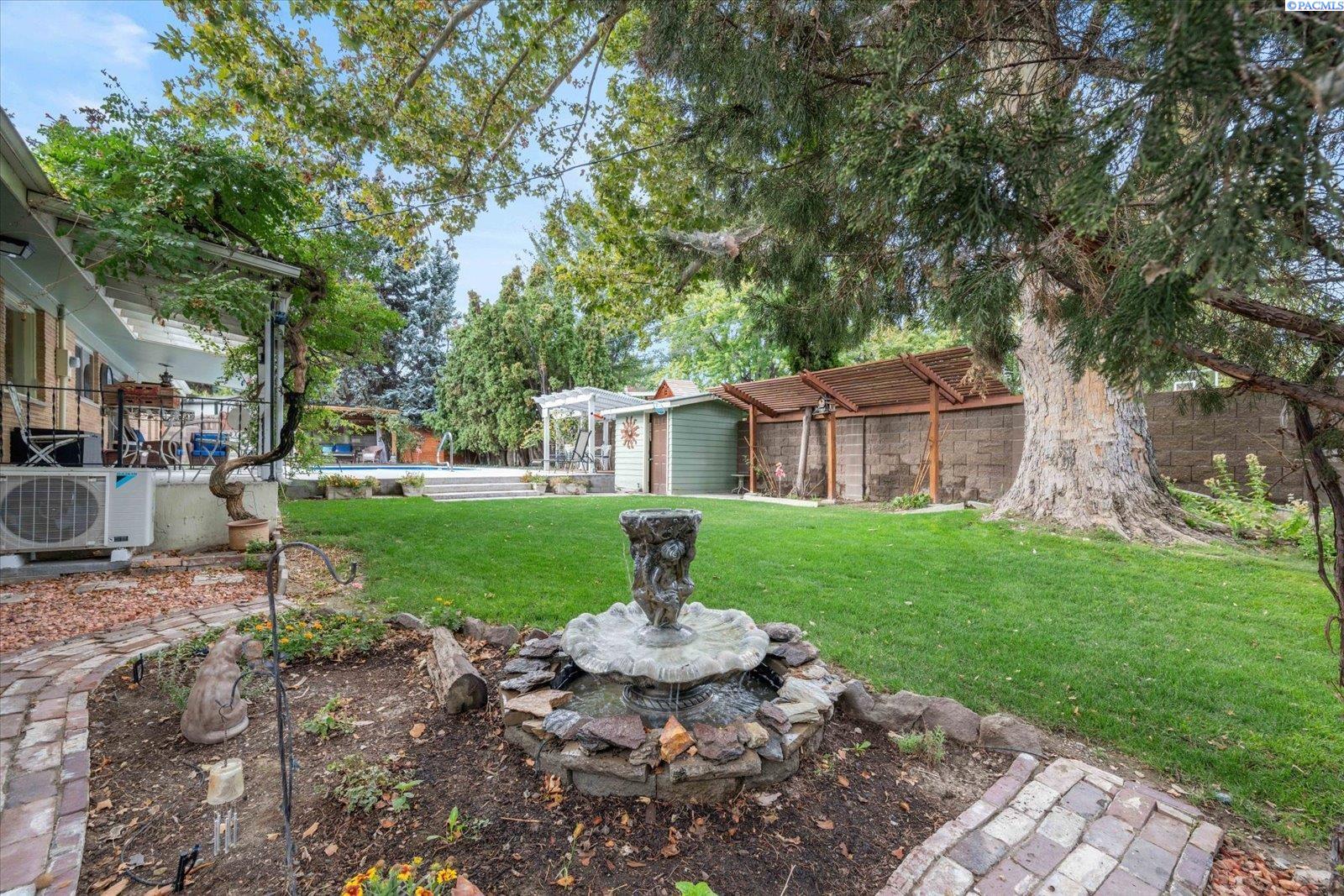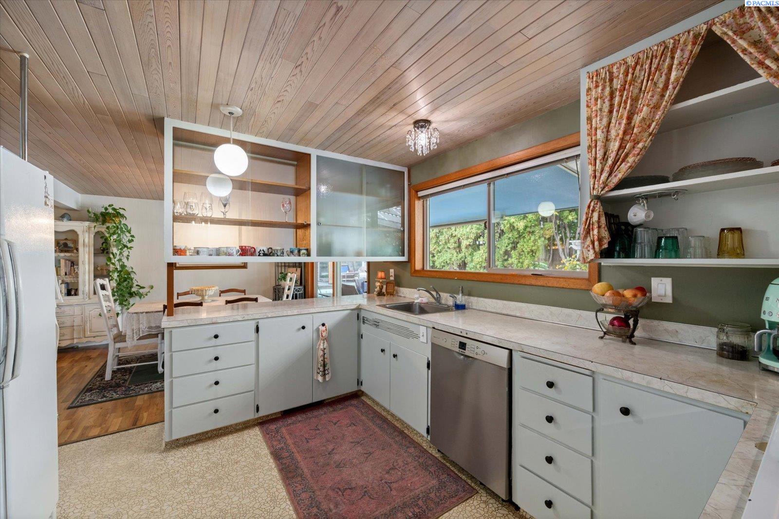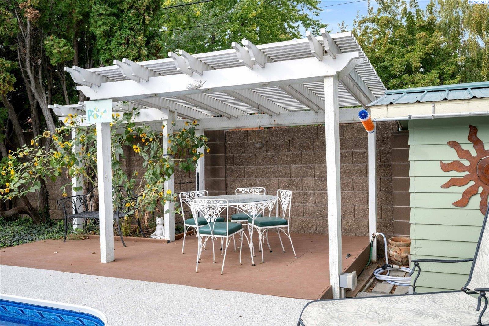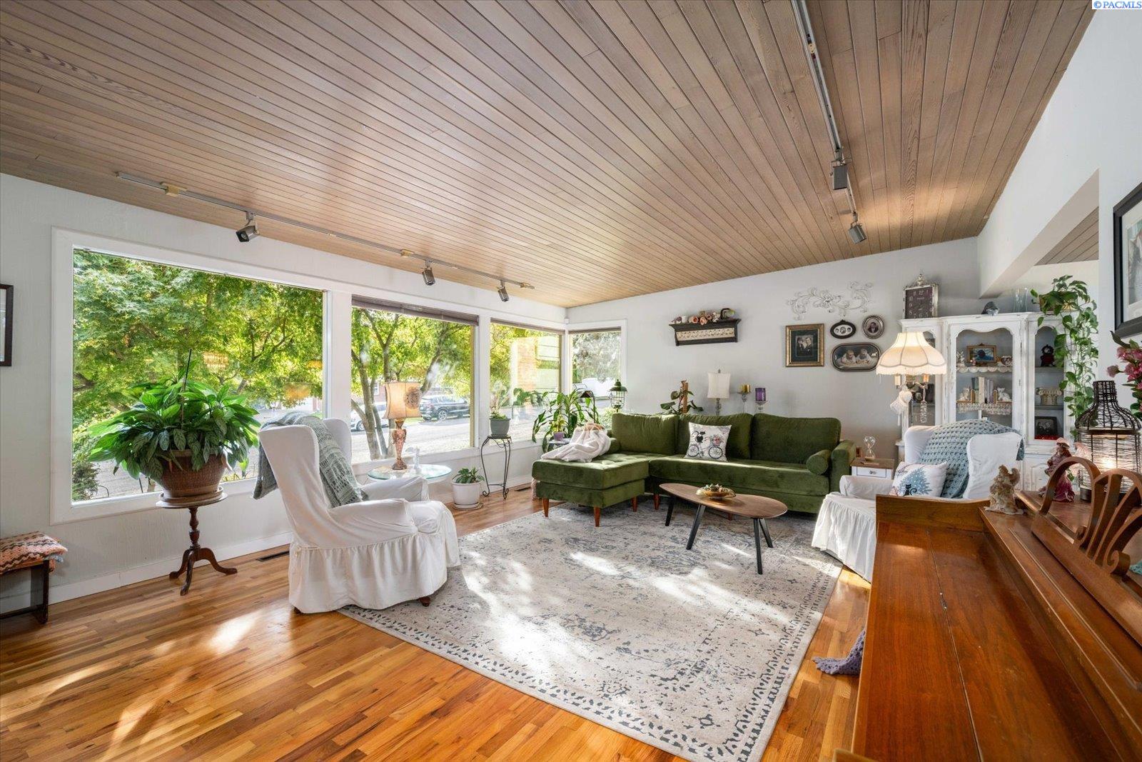 MLS# 288099 Lovingly maintained, this charming mid-century gem seamlessly blends nostalgic character with thoughtful modern updates. Step inside to discover the home's signature wood-planked ceilings and beautifully refinished original hardwood floors that set the stage for comfortable living. The heart of this home celebrates its era with preserved original tile work that remains as attractive today as when first installed, while the master suite now features a brand-new custom cultured marble shower.Major systems have been comprehensively updated for peace of mind, including a new gas furnace with central air, updated plumbing throughout, a newer TPO roof, and a complete sewer line replacement from home to street.The outdoor spaces are truly exceptionalâbegin your relaxation in the secluded brick paver courtyard featuring a hot tub, perfect for unwinding after a long day while surrounded by mature landscaping that ensures complete privacy. Beyond the courtyard, the backyard oasis boasts a stunning in-ground pool installed just two years ago, offering the perfect retreat for creating new memories while enjoying serene NE Kennewick views.This isn't just a house with great bones and smart upgradesâit's a home where vintage charm meets modern comfort, ready to welcome its next chapter of love and laughter.