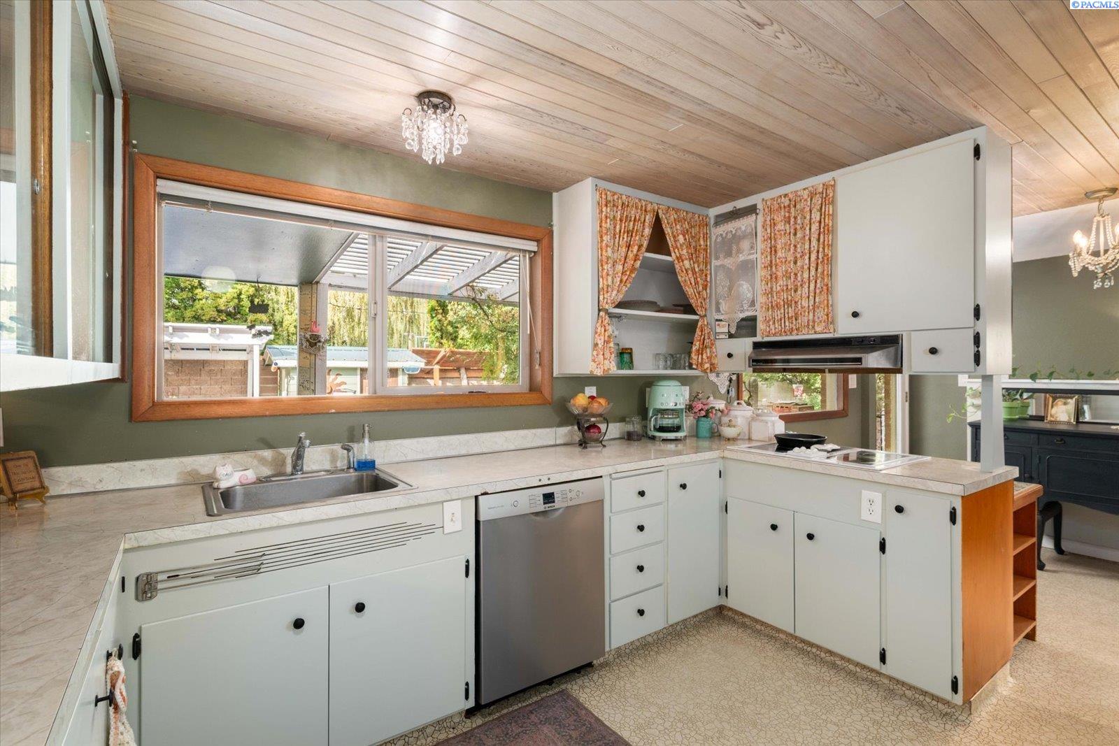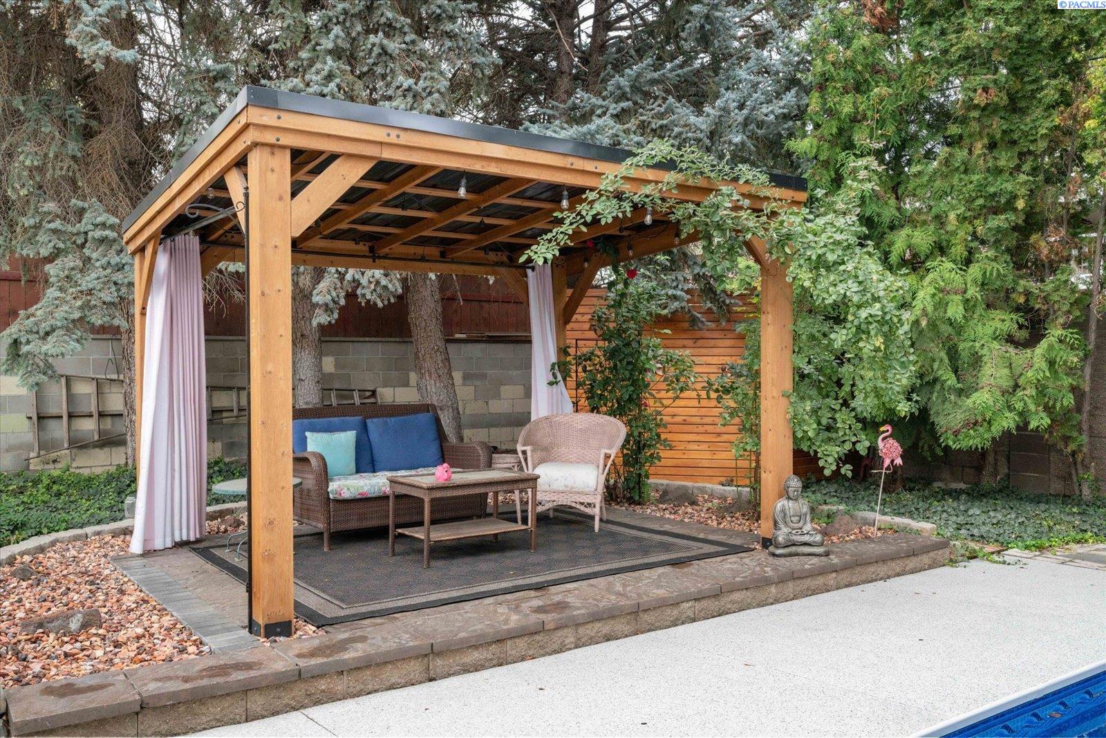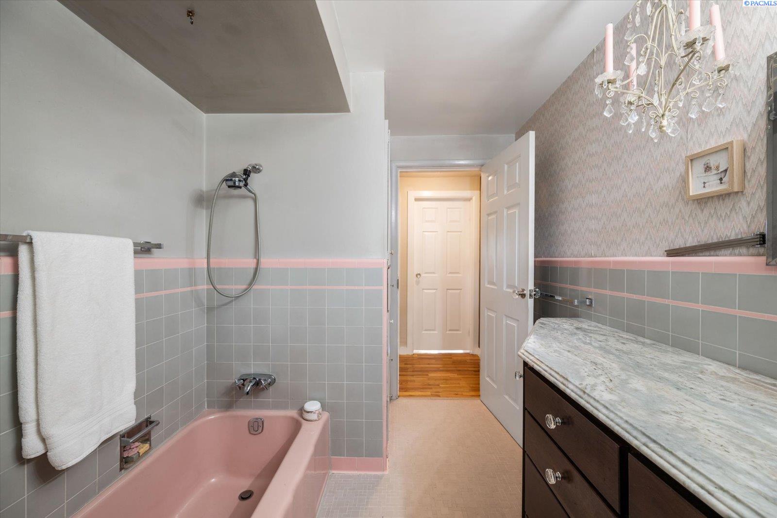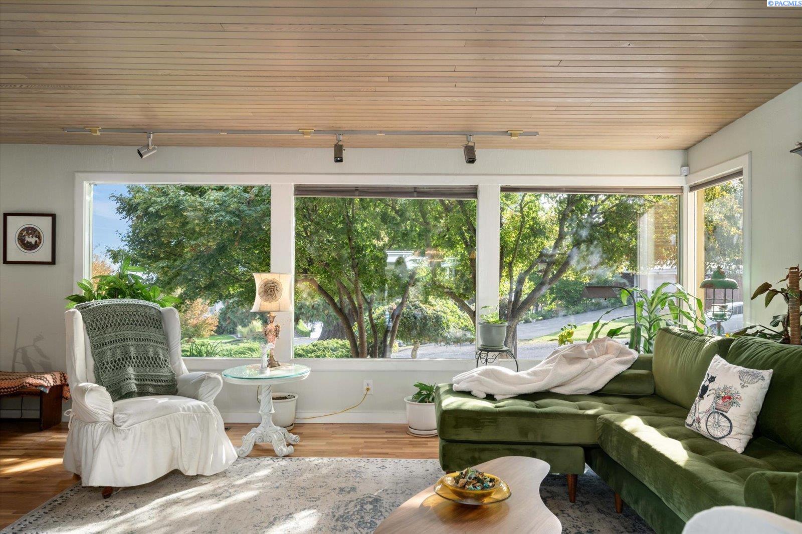 MLS# 288099 Lovingly maintained, this charming mid-century gem seamlessly blends nostalgic character with thoughtful modern updates. Step inside to discover the home's signature wood-planked ceilings and beautifully refinished original hardwood floors that set the stage for comfortable living. The heart of this home celebrates its era with preserved original tile work that remains as attractive today as when first installed, while the master suite now features a brand-new custom cultured marble shower.Major systems have been comprehensively updated for peace of mind, including a new gas furnace with central air, updated plumbing throughout, a newer TPO roof, and a complete sewer line replacement from home to street.The outdoor spaces are truly exceptionalâbegin your relaxation in the secluded brick paver courtyard featuring a hot tub, perfect for unwinding after a long day while surrounded by mature landscaping that ensures complete privacy. Beyond the courtyard, the backyard oasis boasts a stunning in-ground pool installed just two years ago, offering the perfect retreat for creating new memories while enjoying serene NE Kennewick views.This isn't just a house with great bones and smart upgradesâit's a home where vintage charm meets modern comfort, ready to welcome its next chapter of love and laughter.